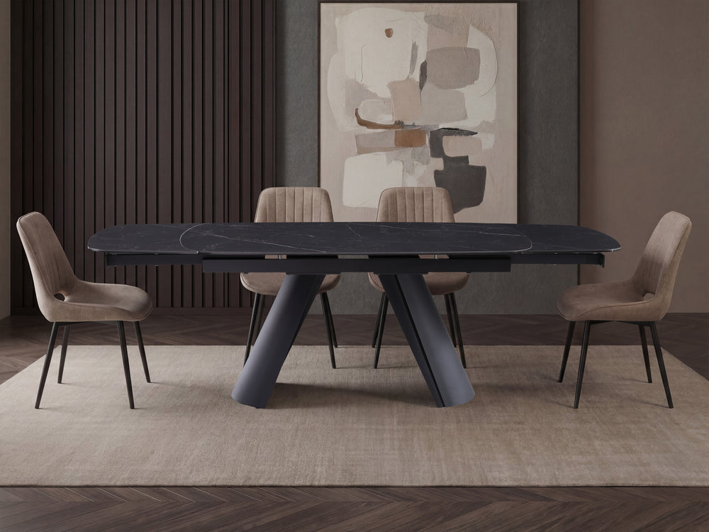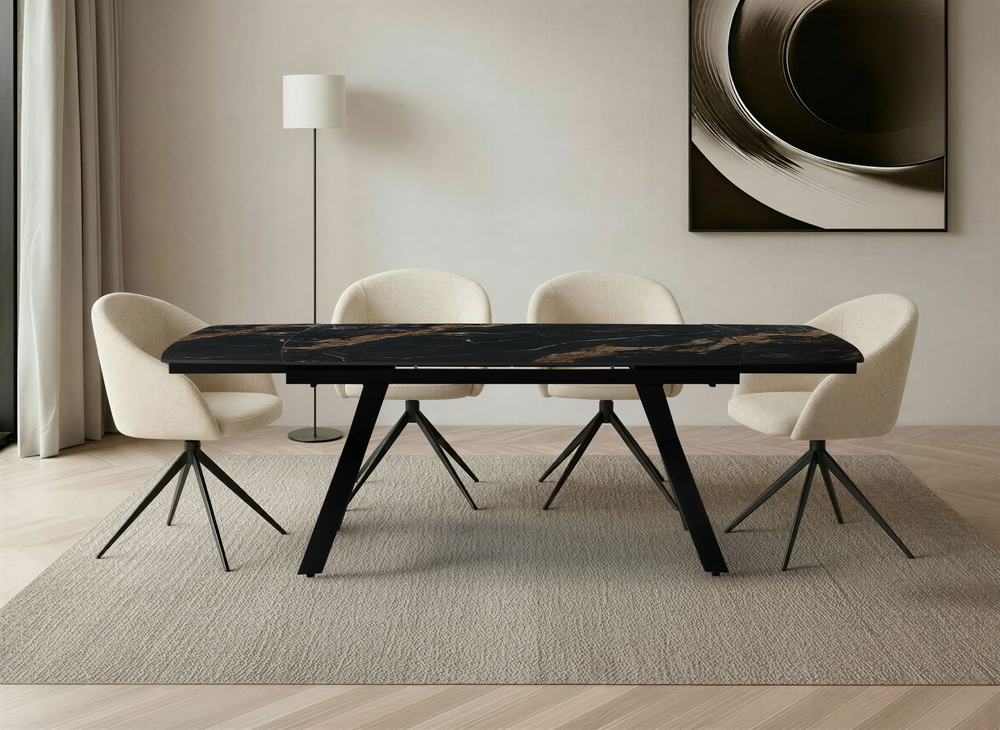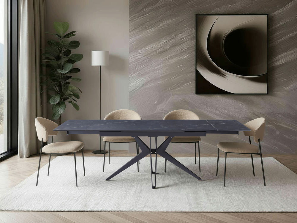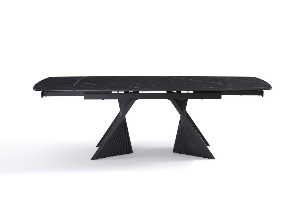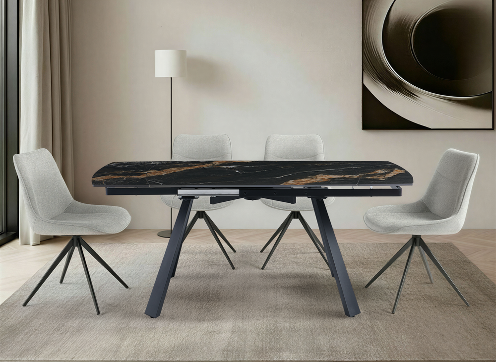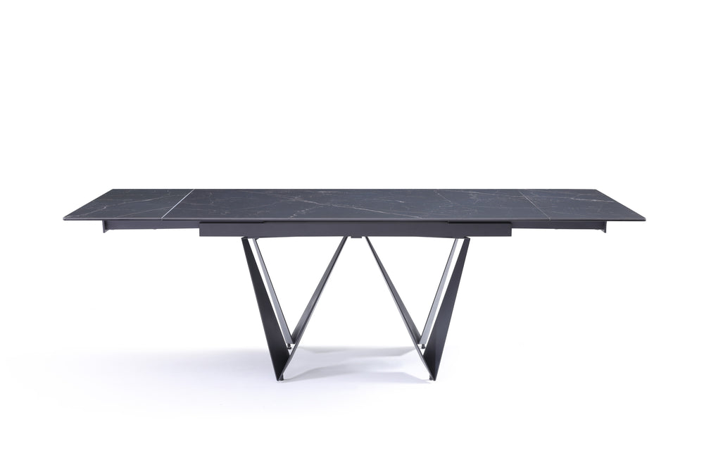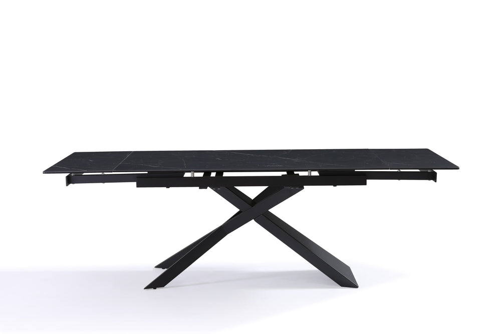 Stół Do Jadalni Ceramiczny 160–240x90 Marmur Nogi Metalowe Czarne Ischia