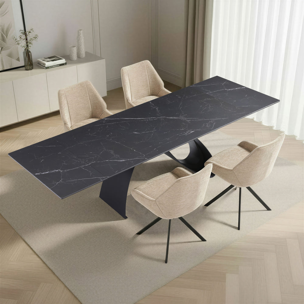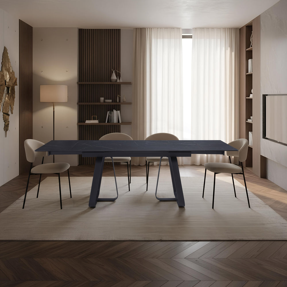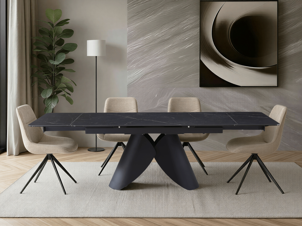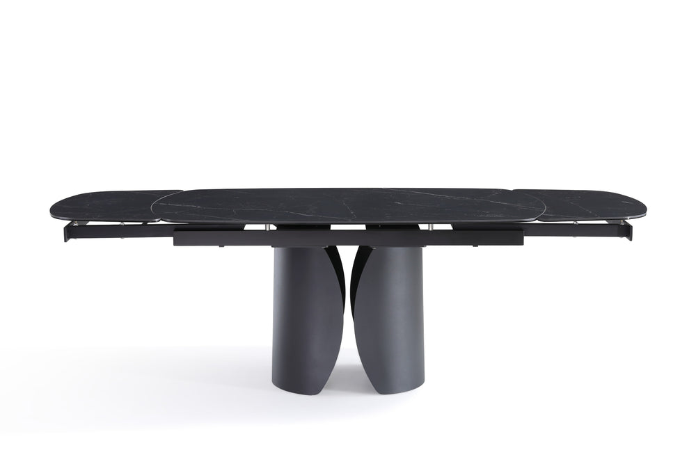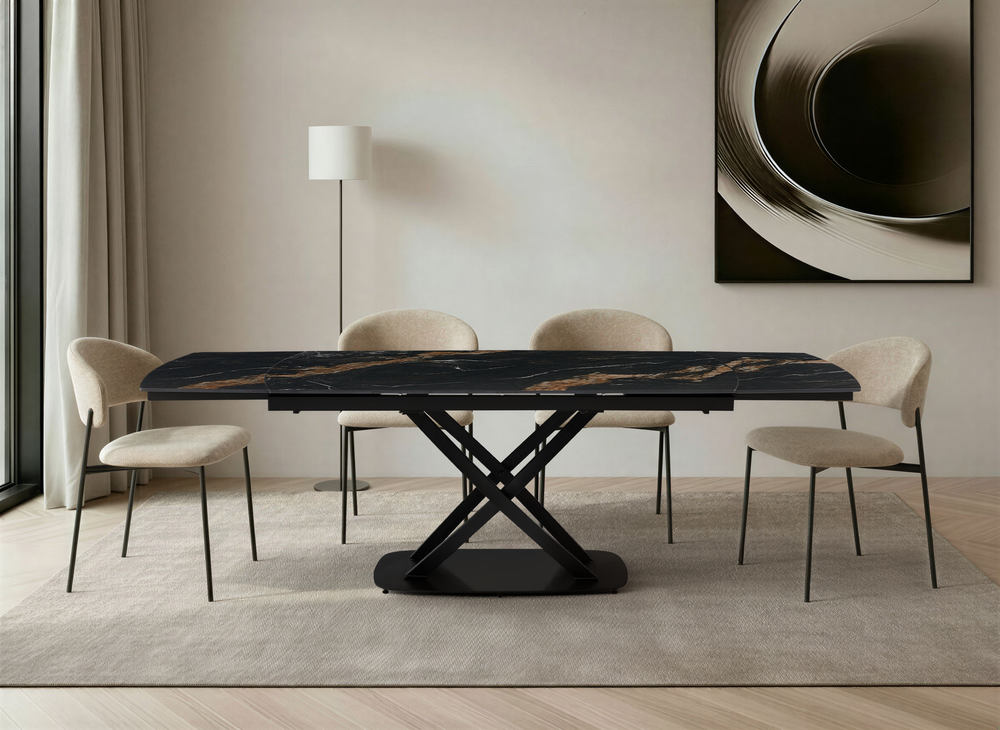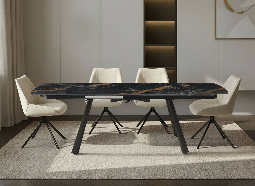 Stół Do Jadalni Ceramiczny 160–240x90 Marmur Nogi Metalowe Czarne Ischia