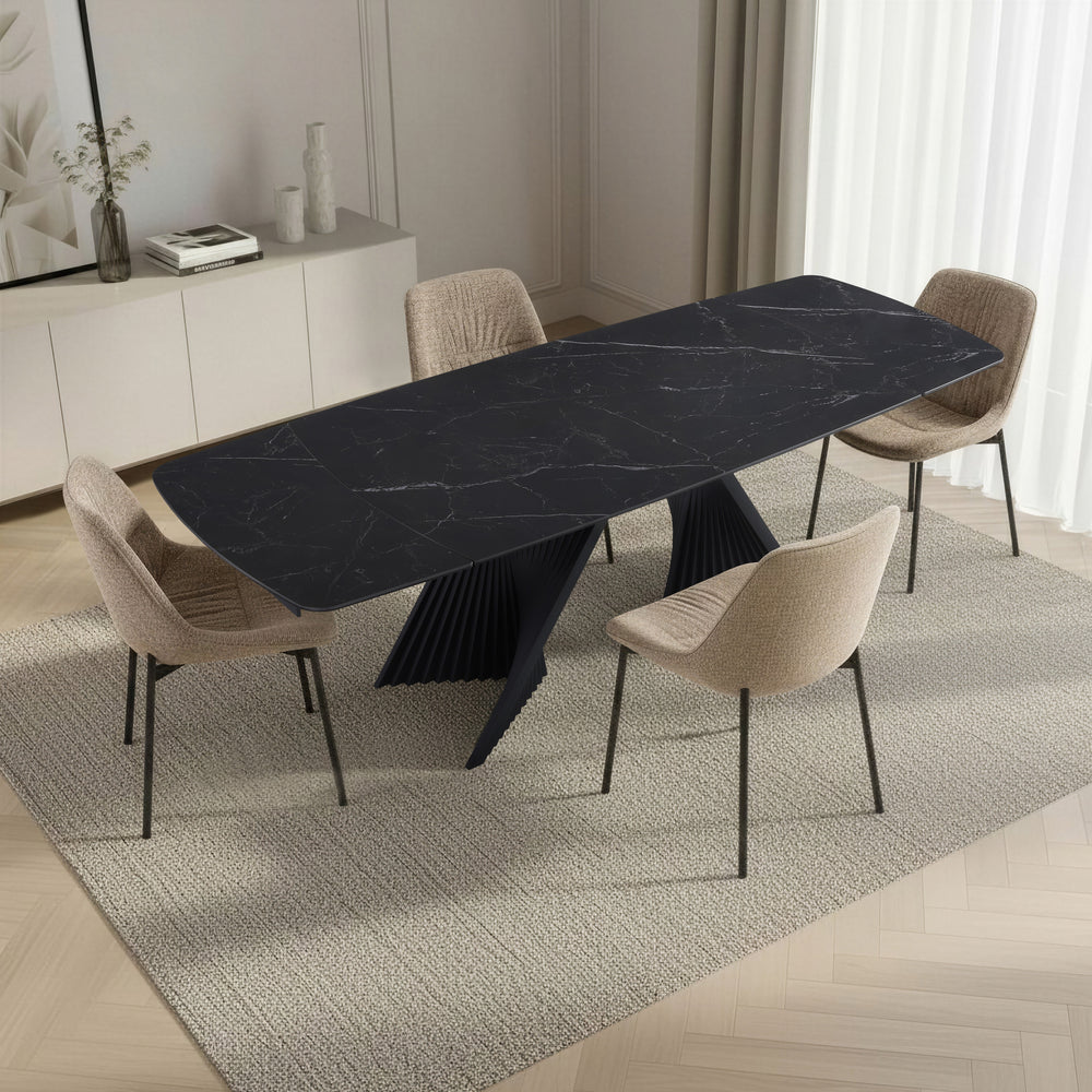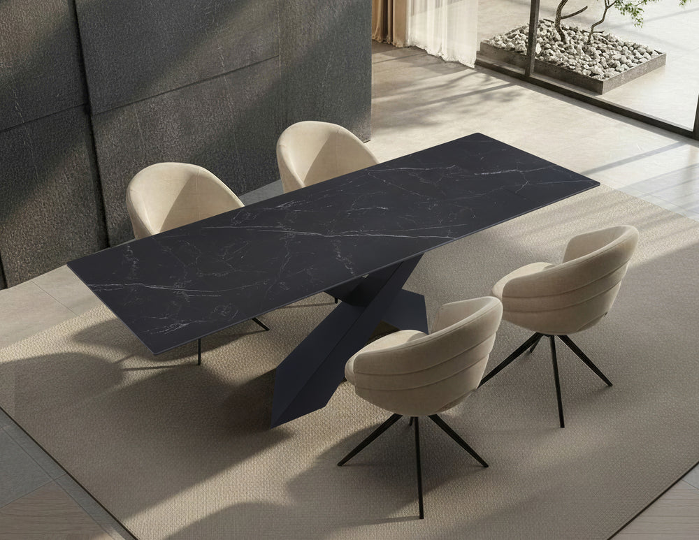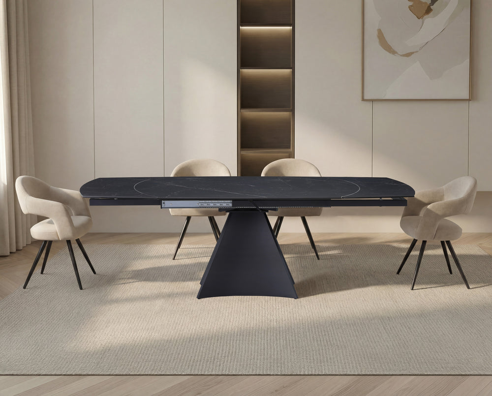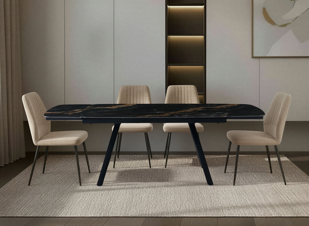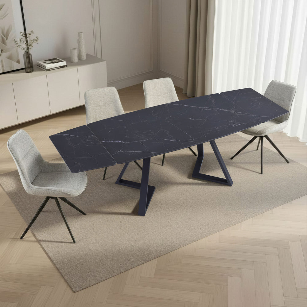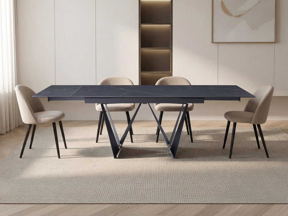Stół Do Jadalni Ceramiczny 160–240x90 Marmur Nogi Metalowe Czarne Ischia