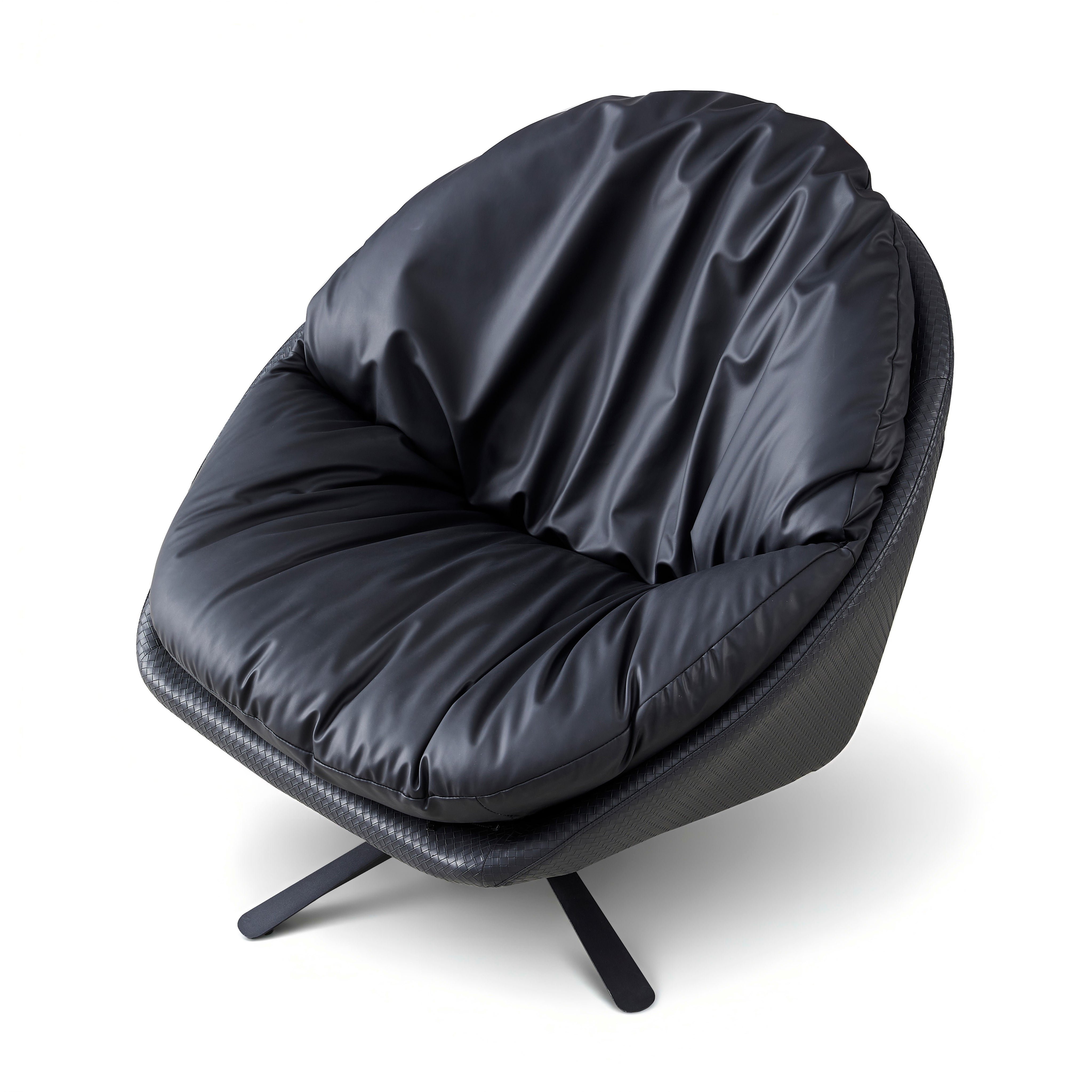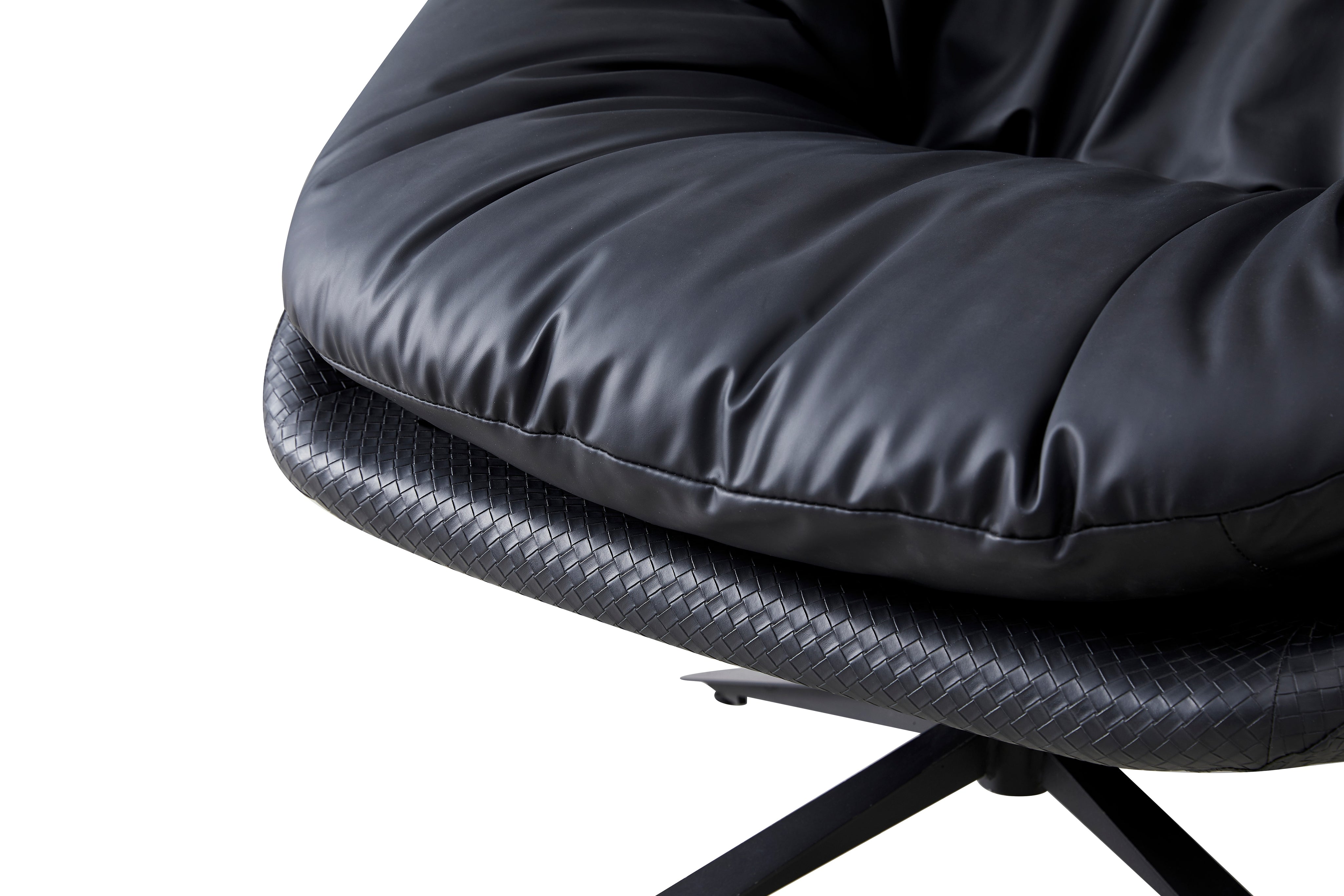 Fotel Wypoczynkowy Obrotowy Eco Skóra Czarny Nowoczesny Nogi Stal Malmo