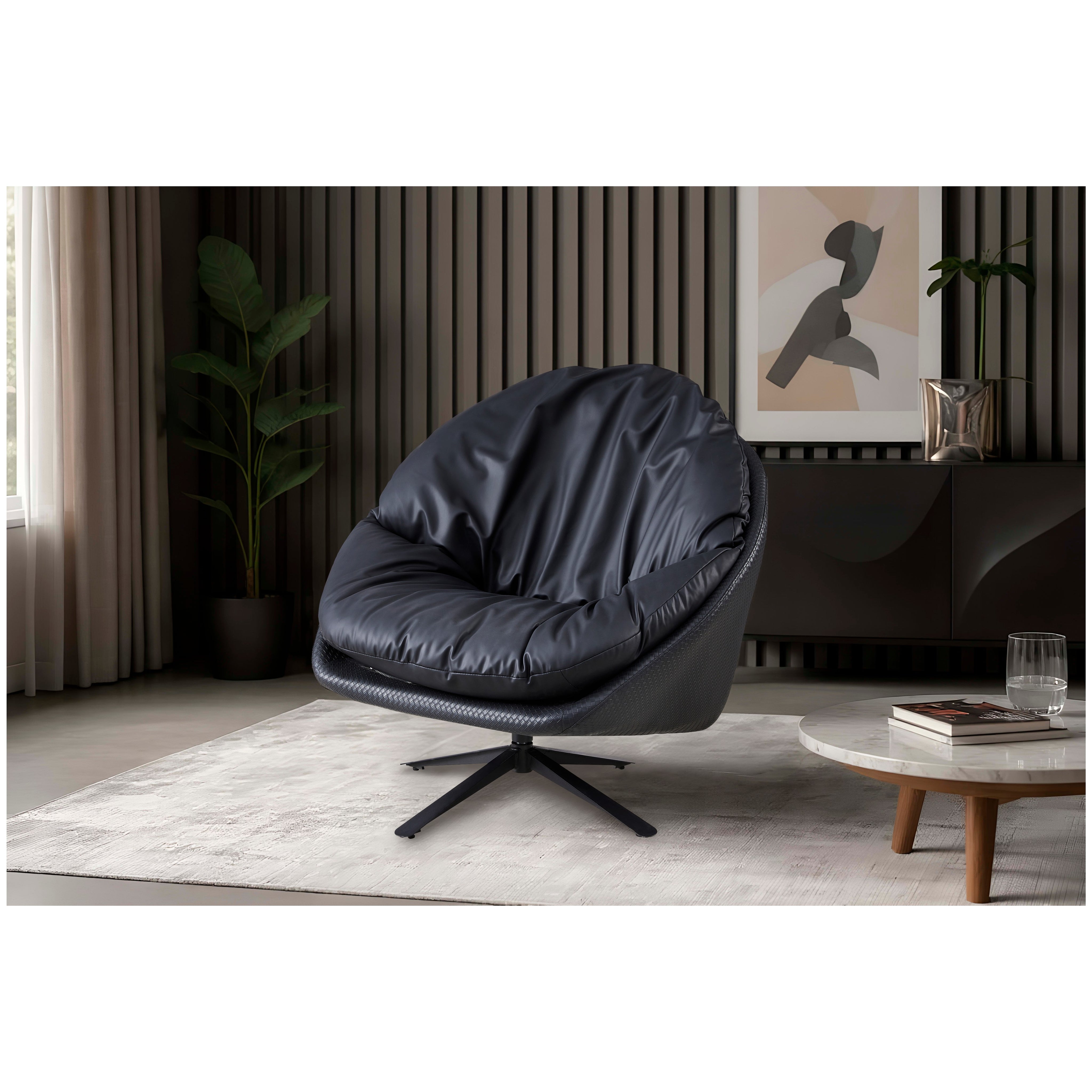 Ten wyjątkowy fotel wypoczynkowy stanowi kwintesencję nowoczesnej elegancji i funkcjonalności. Wykonany z wysokiej jakości czarnej skóry ekologicznej, zachwyca gładką fakturą oraz wyrafinowanym wykończeniem, które doskonale komponuje się z różnorodnymi aranżacjami wnętrz. Obrotowa konstrukcja zapewnia swobodę ruchów i wygodę użytkowania, a solidna podstawa ze stali malowanej proszkowo gwarantuje stabilność oraz trwałość na lata. Mebel ten idealnie odnajdzie się w salonie, strefie relaksu czy nowoczesnym biurze, oferując użytkownikom niepowtarzalny komfort i stylowy akcent wizualny.