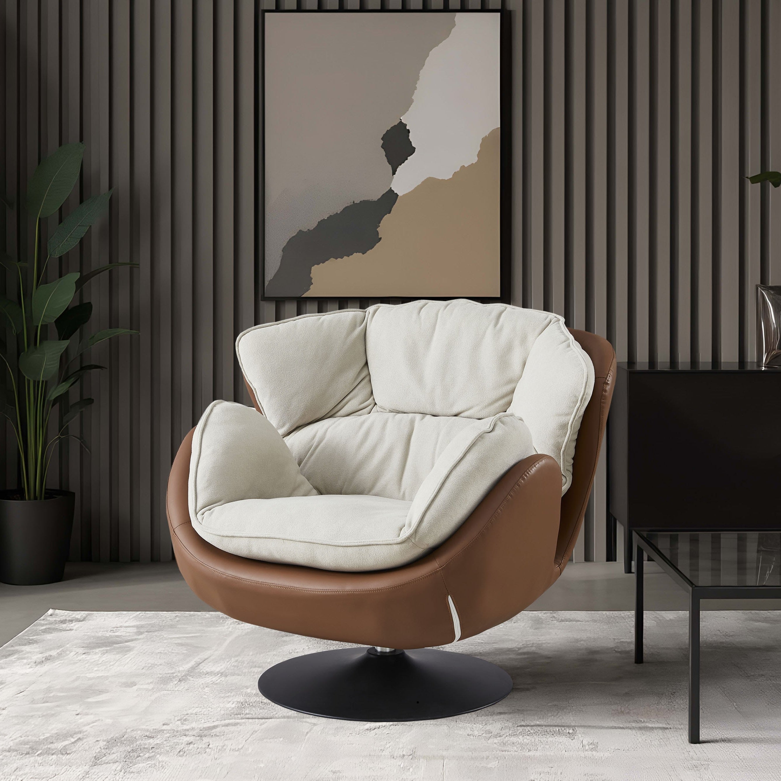 Wygodny obrotowy fotel wypoczynkowy Roma z skóry ekologicznej