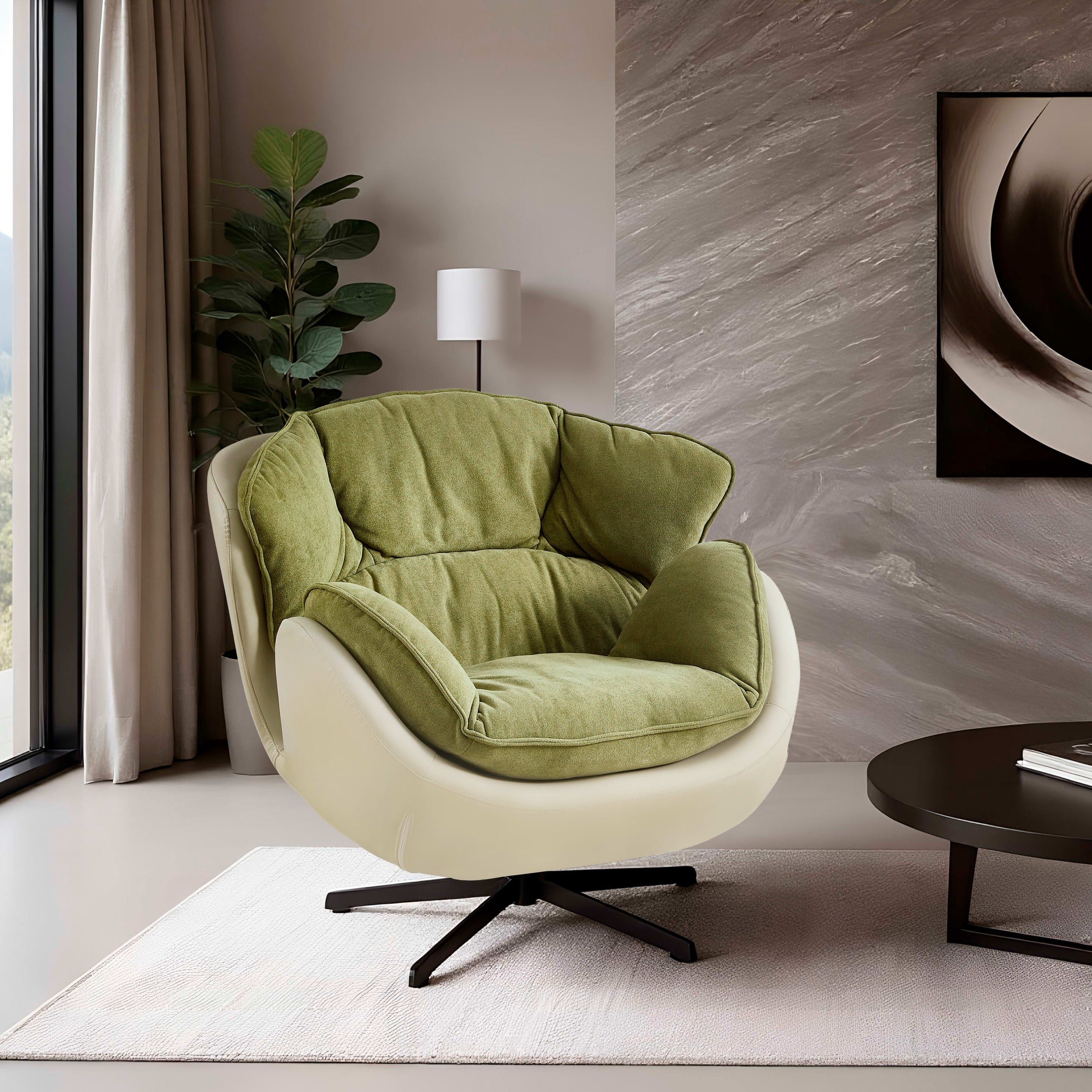 - Wygodny obrotowy fotel wypoczynkowy Eskar z miękkiej tapicerki