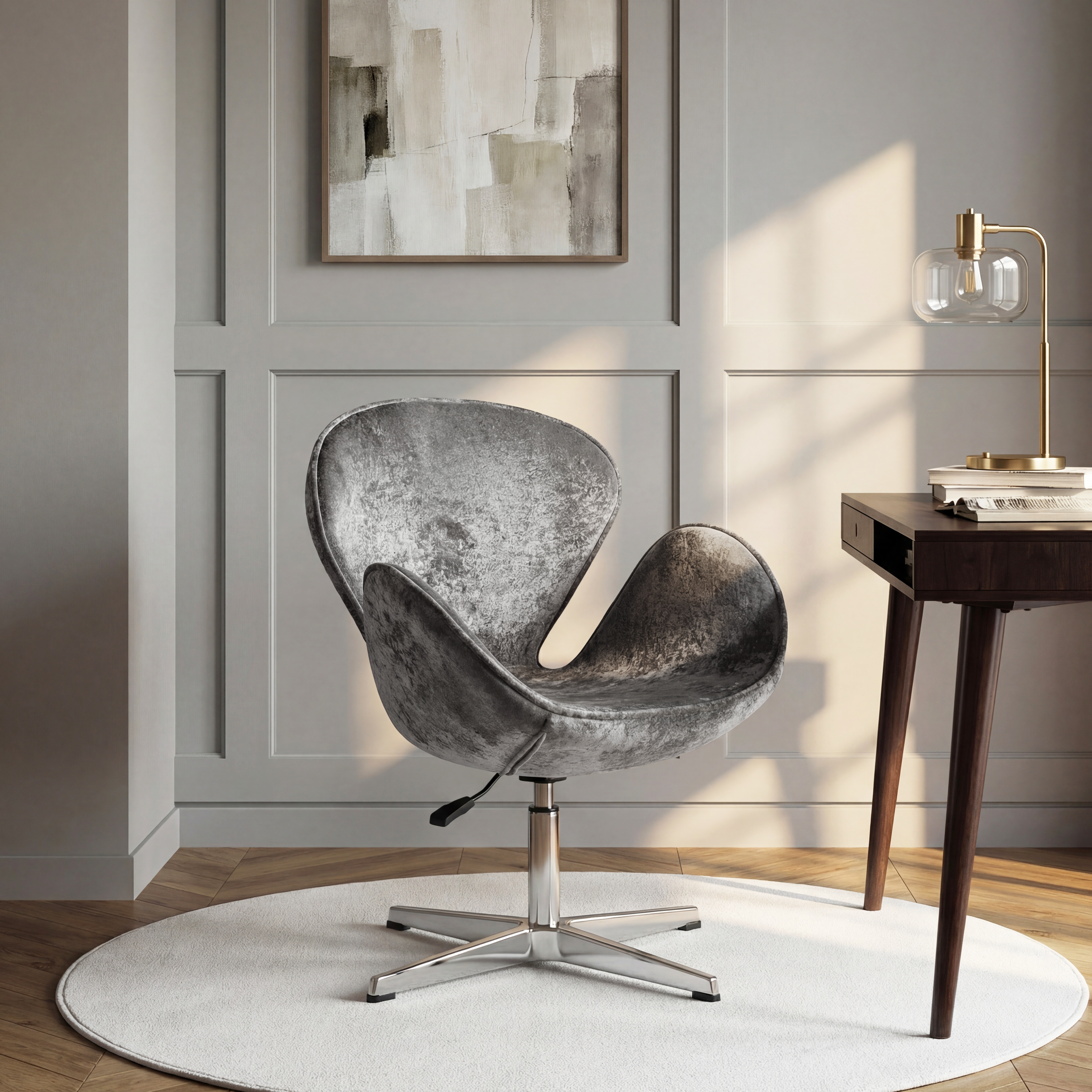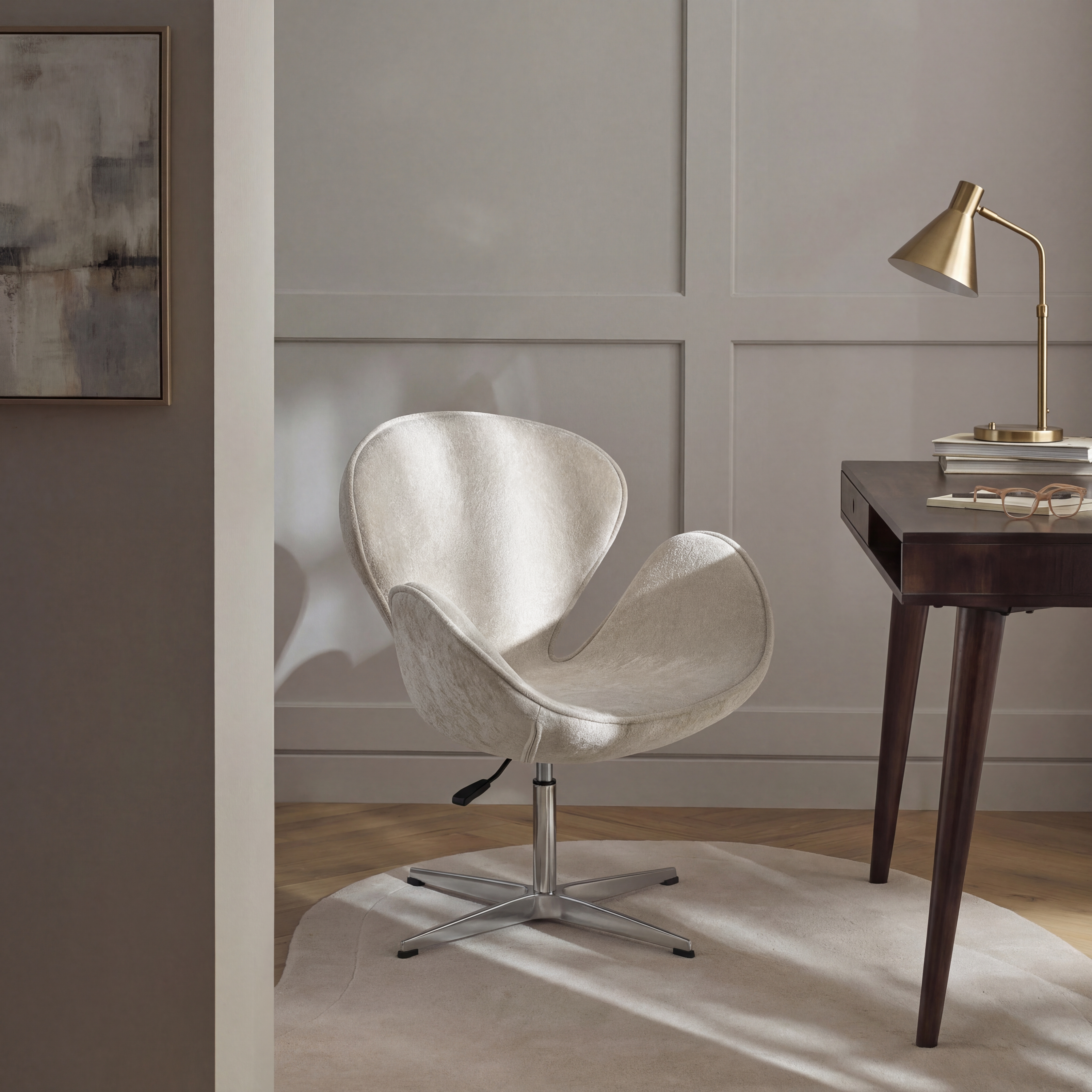 Model wyposażony jest w funkcję obrotową oraz regulację wysokości, dzięki czemu można łatwo dopasować fotel do własnych potrzeb. Stabilne metalowe nogi w nowoczesnym stylu zapewniają solidne podparcie i trwałość konstrukcji.