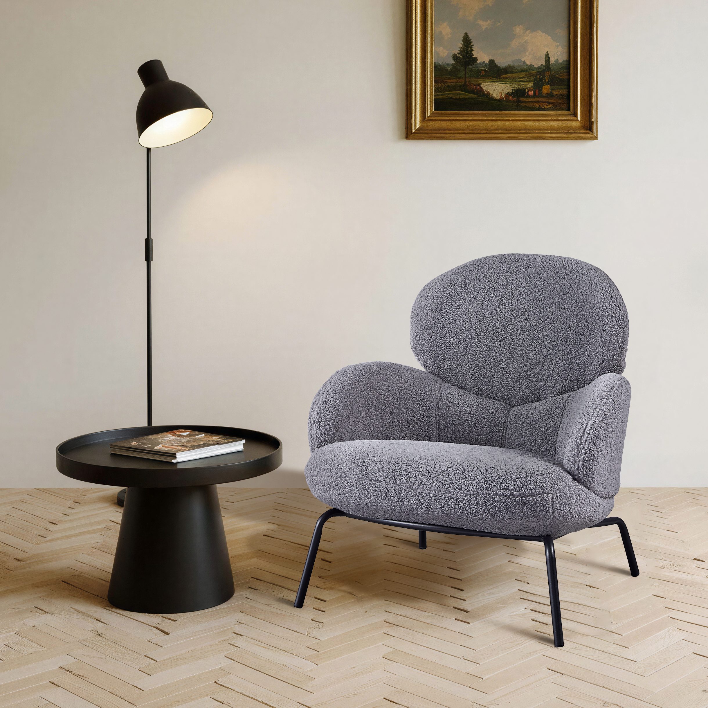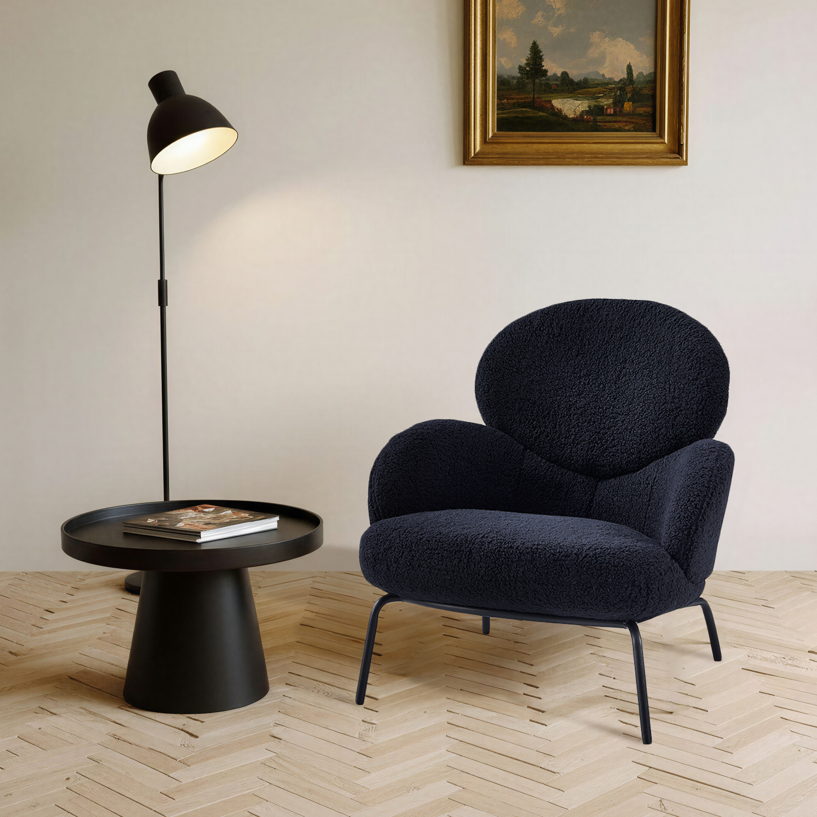 Fotel Wypoczynkowy Bloom Czarny – nowoczesny design, tkanina bouclé i stalowe nogi