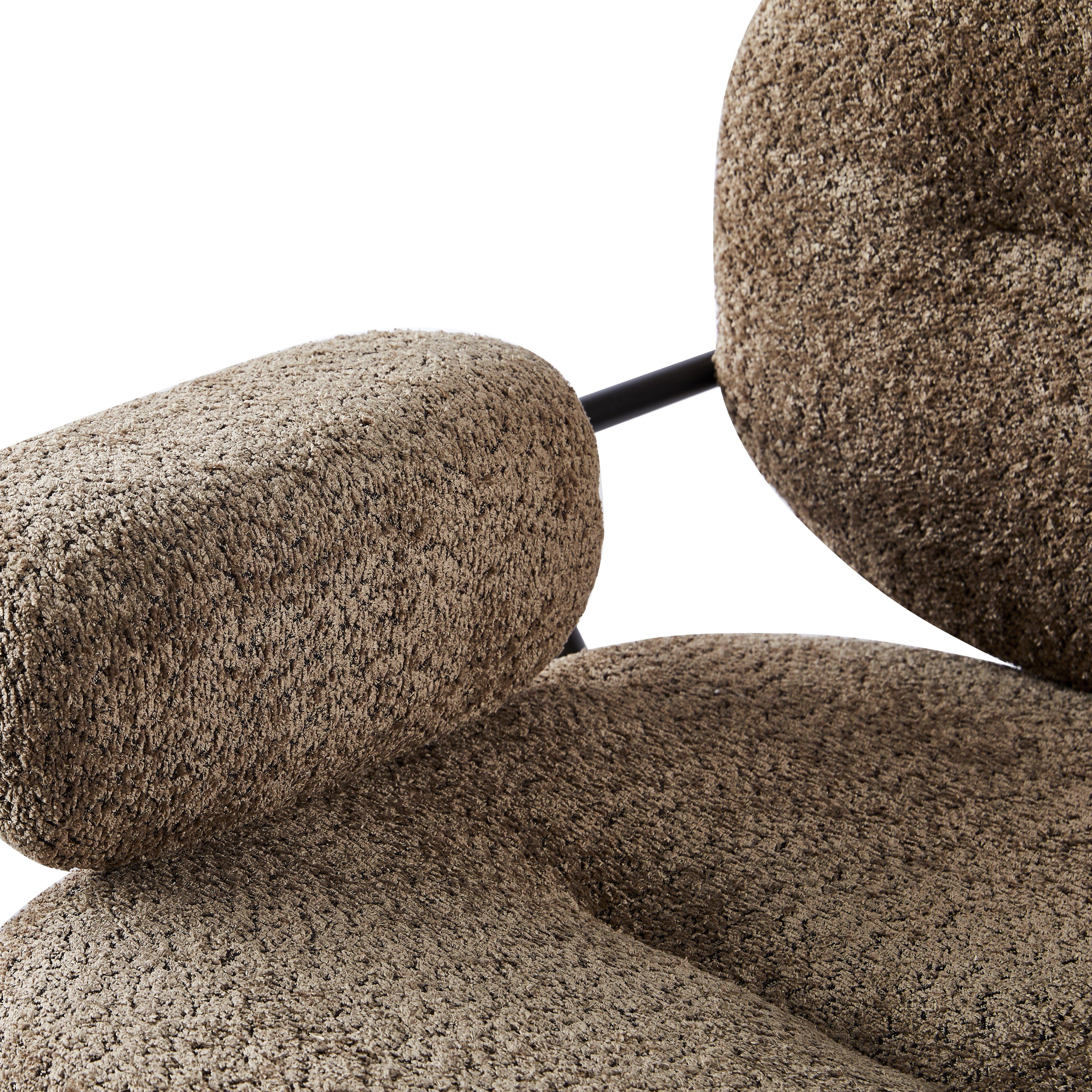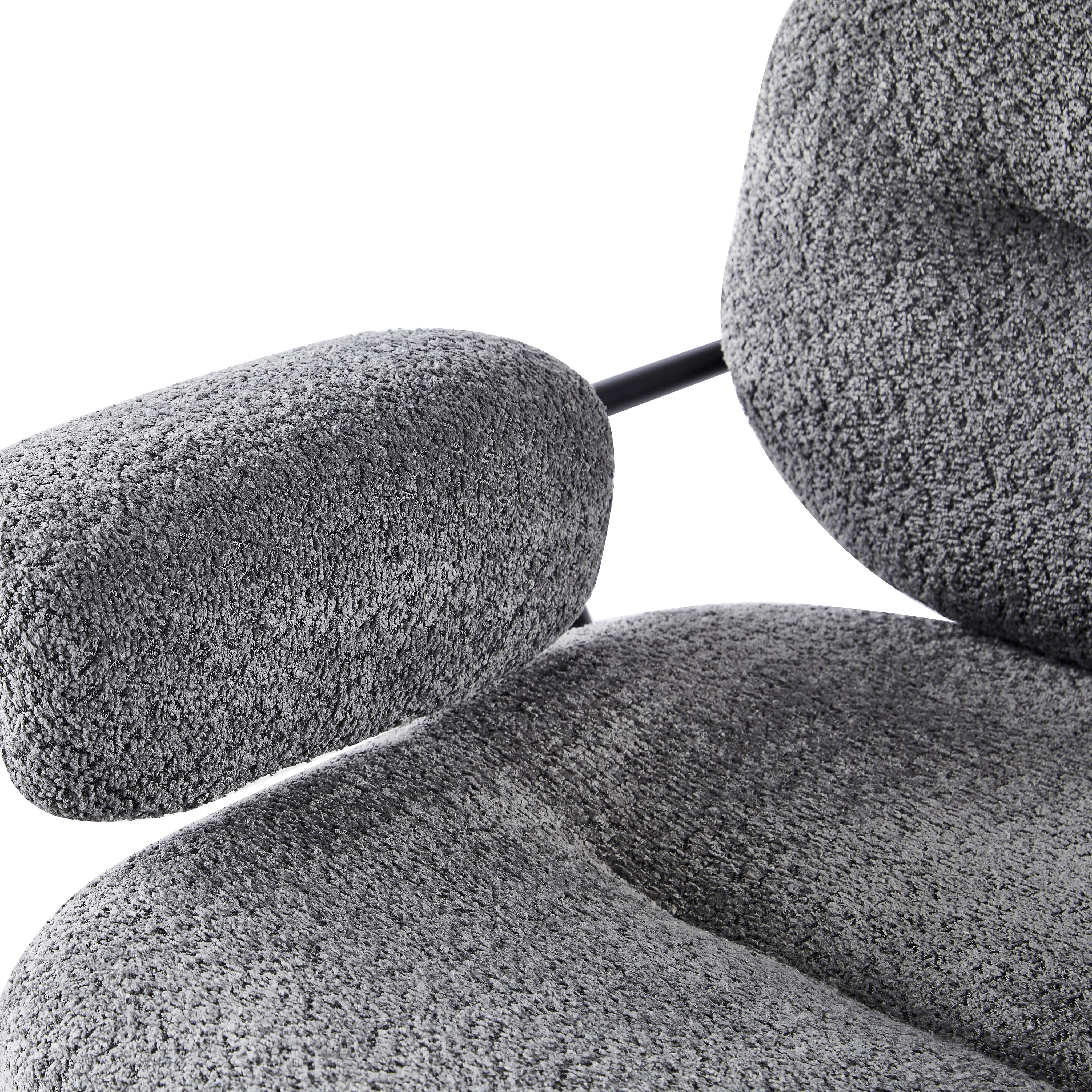 Fotel wypoczynkowy Harmony to esencja współczesnego designu, która zachwyca unikalną fakturą i niebanalną formą. Tapicerowany modną tkaniną typu bouclé w głębokim, czarnym kolorze, wprowadza do wnętrza nutę wyrafinowanej elegancji oraz przytulności, zachęcając do dotyku swoją miękkością.