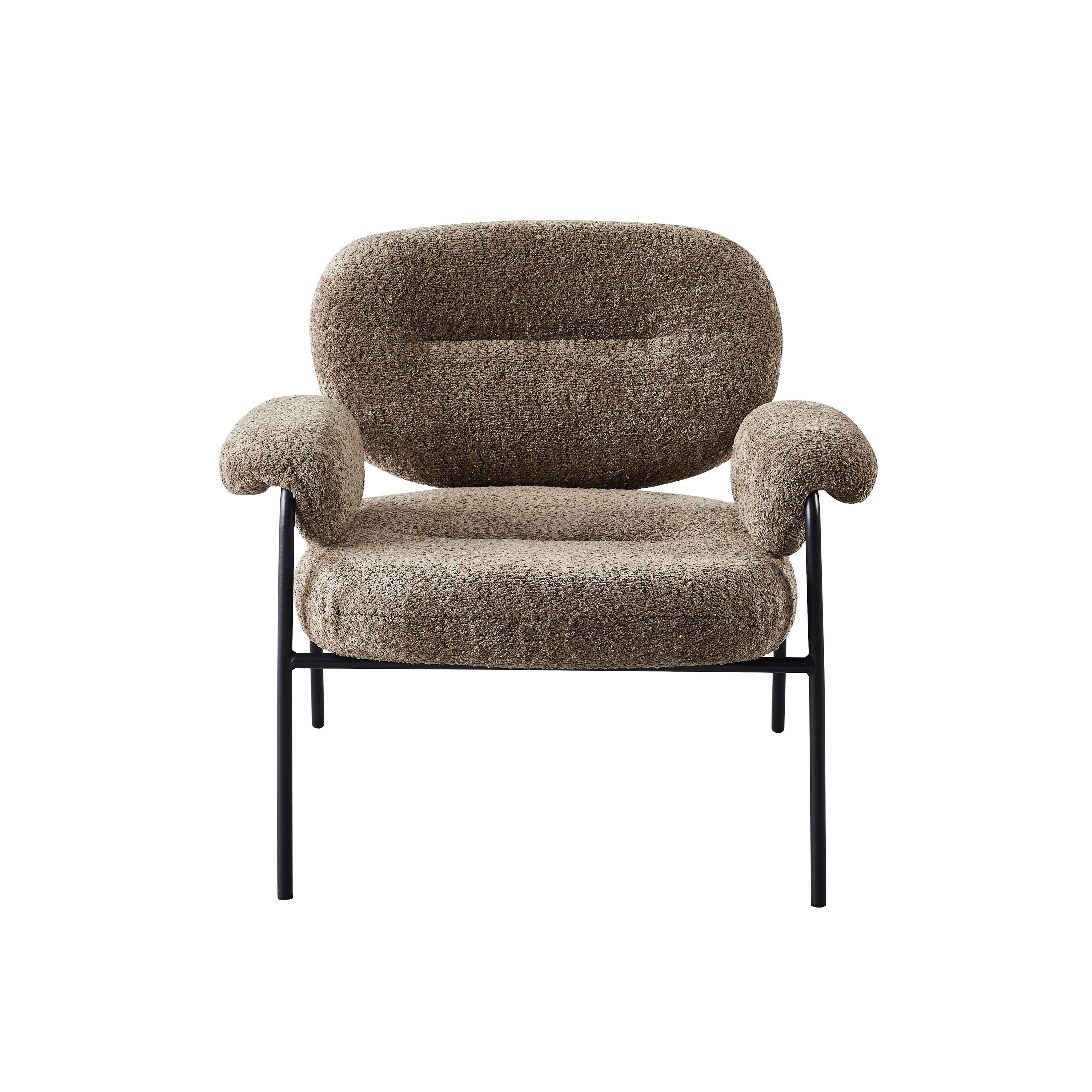 Jego zaokrąglona, organiczna sylwetka idealnie koresponduje z surową, czarną podstawą ze stali, tworząc mebel o charakterze loftowym, a zarazem niezwykle komfortowym. To idealny wybór do nowoczesnego salonu, kącika czytelniczego czy sypialni, gdzie staje się nie tylko miejscem relaksu, ale i stylową dekoracją.