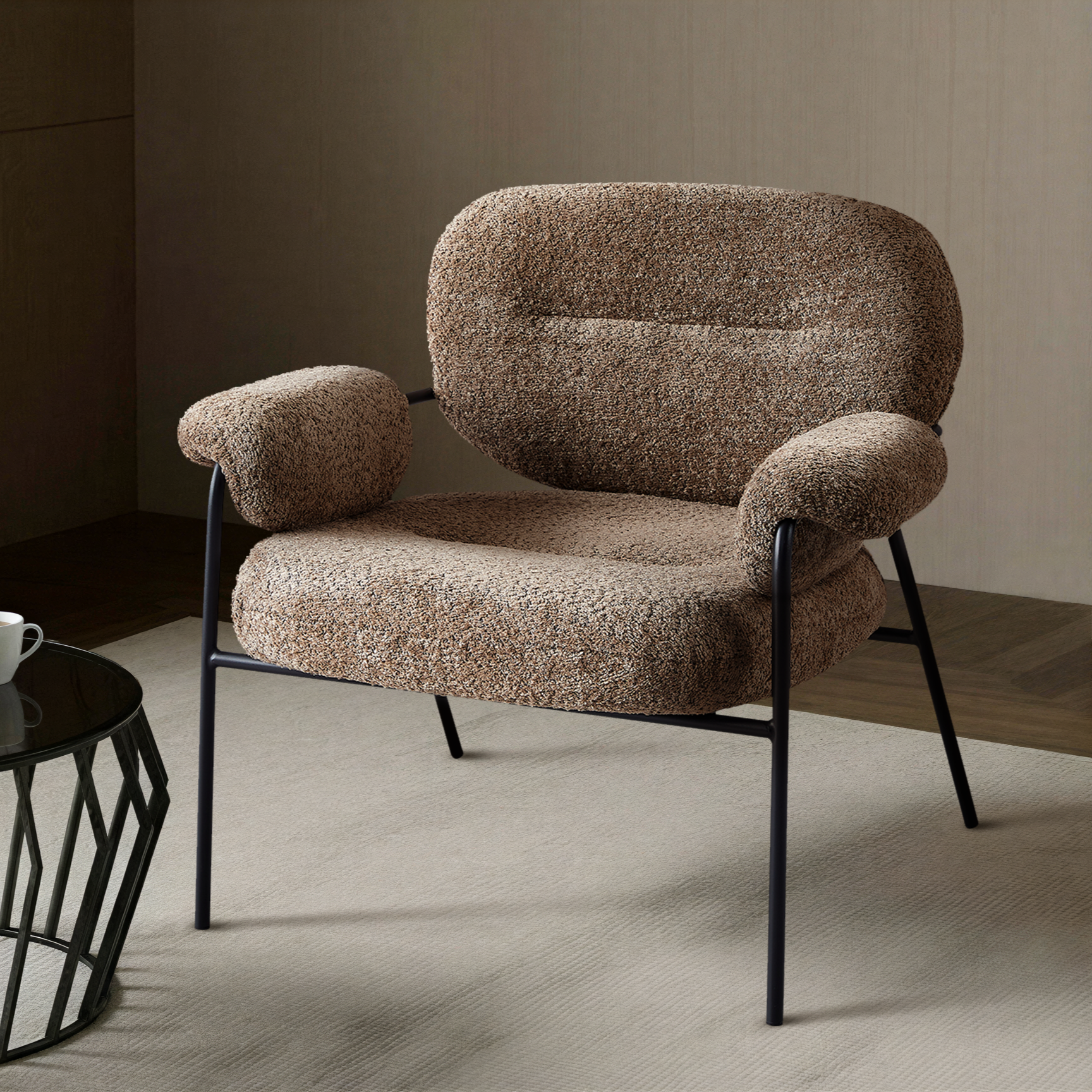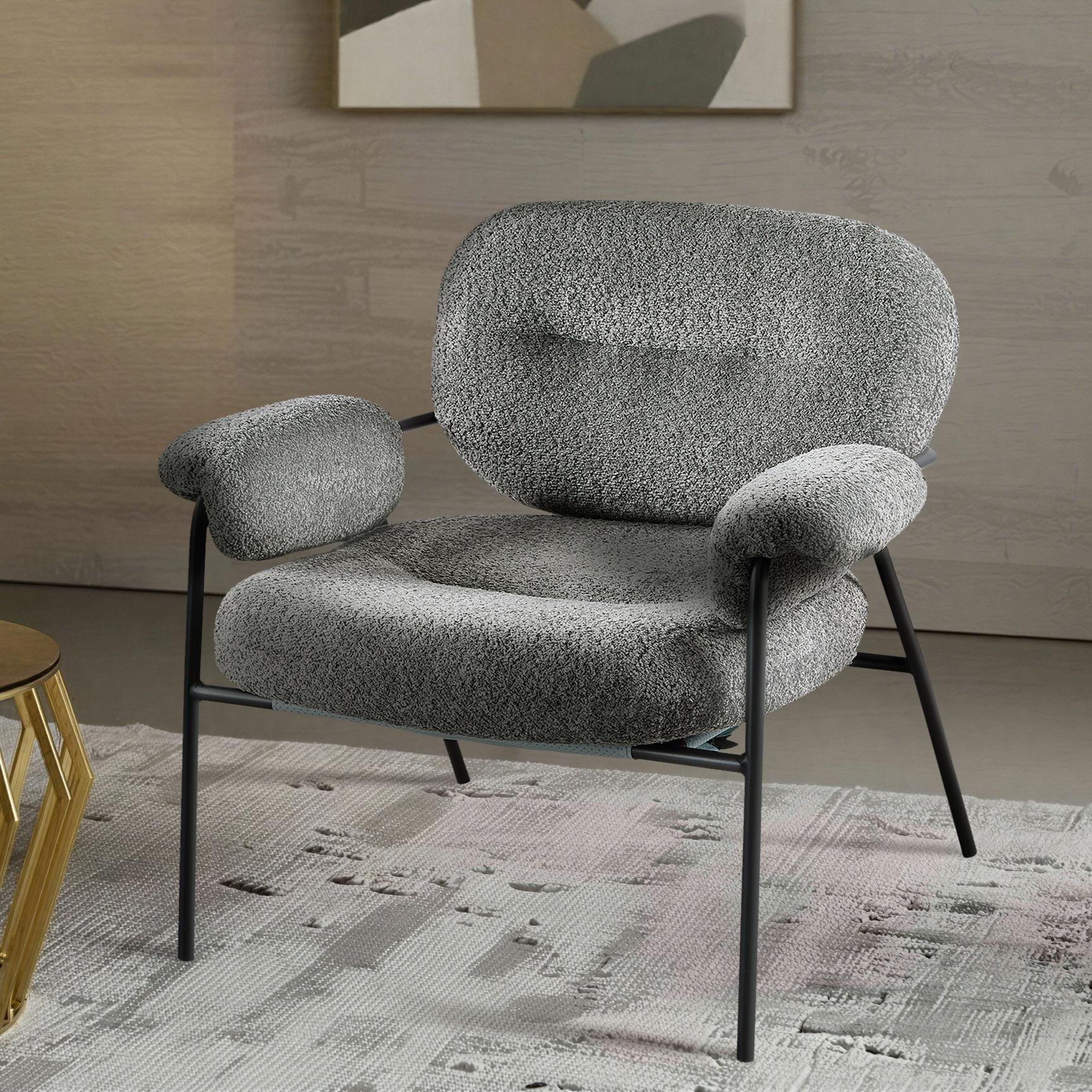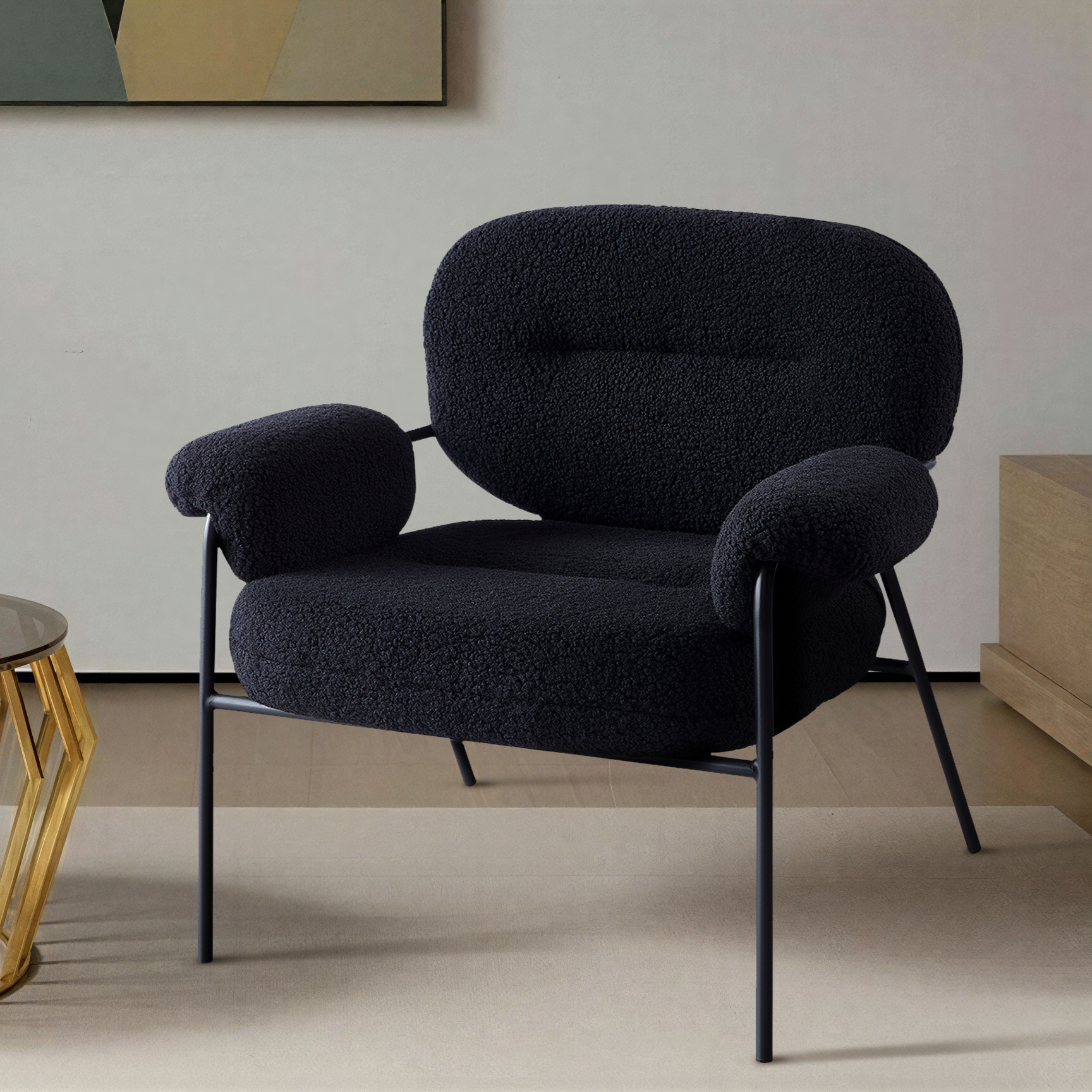 Fotel Wypoczynkowy Harmony Czarny – nowoczesny design, tkanina bouclé i stalowe nogi