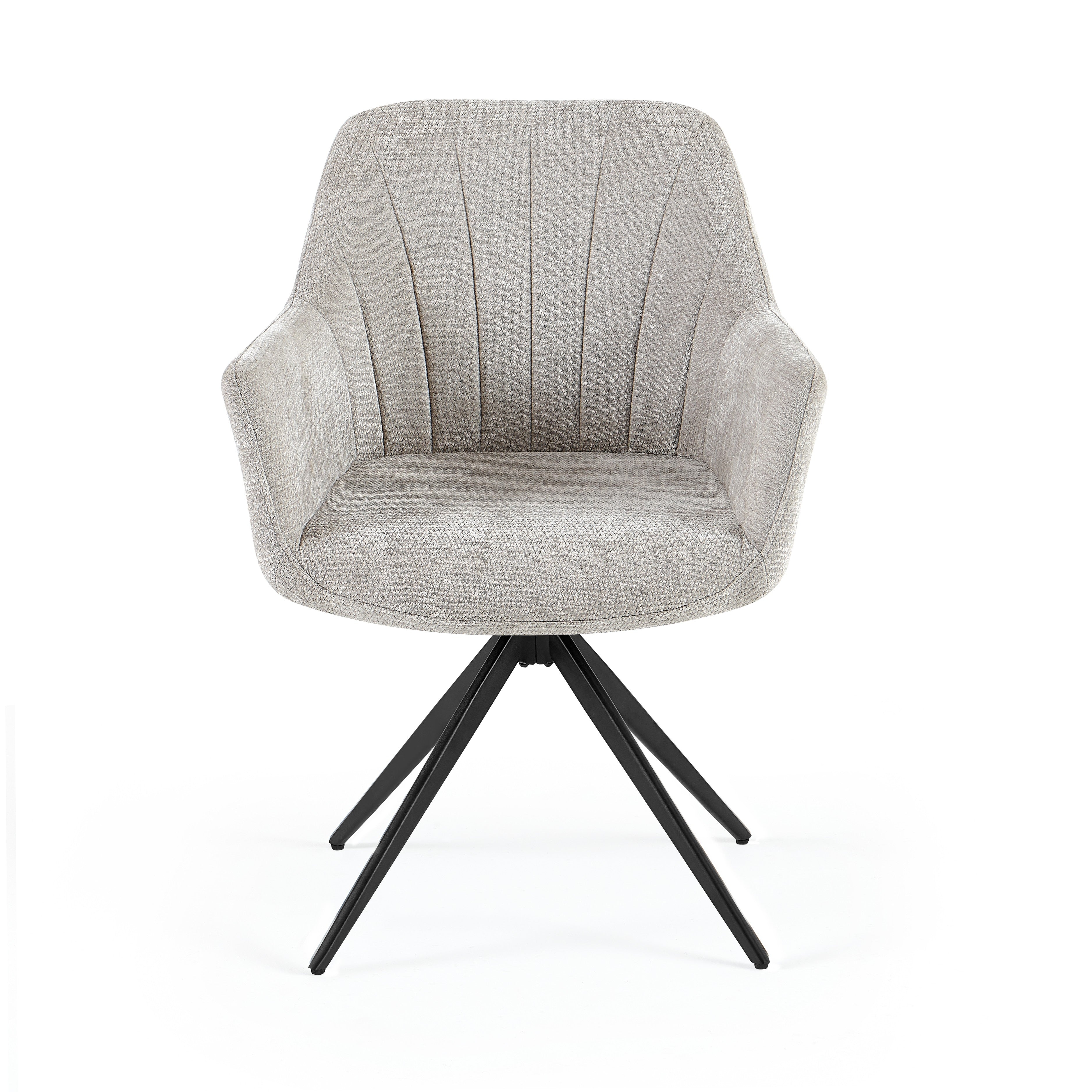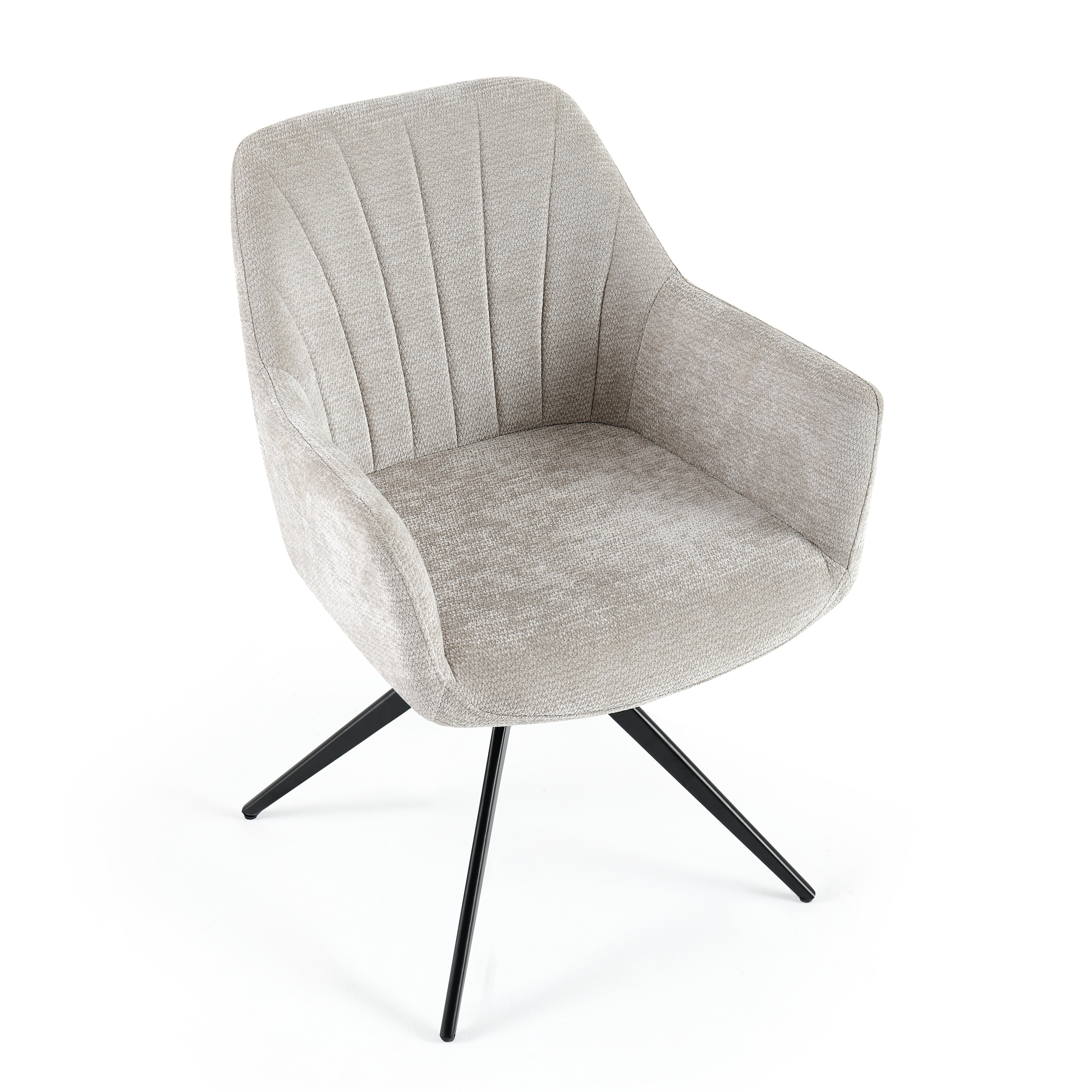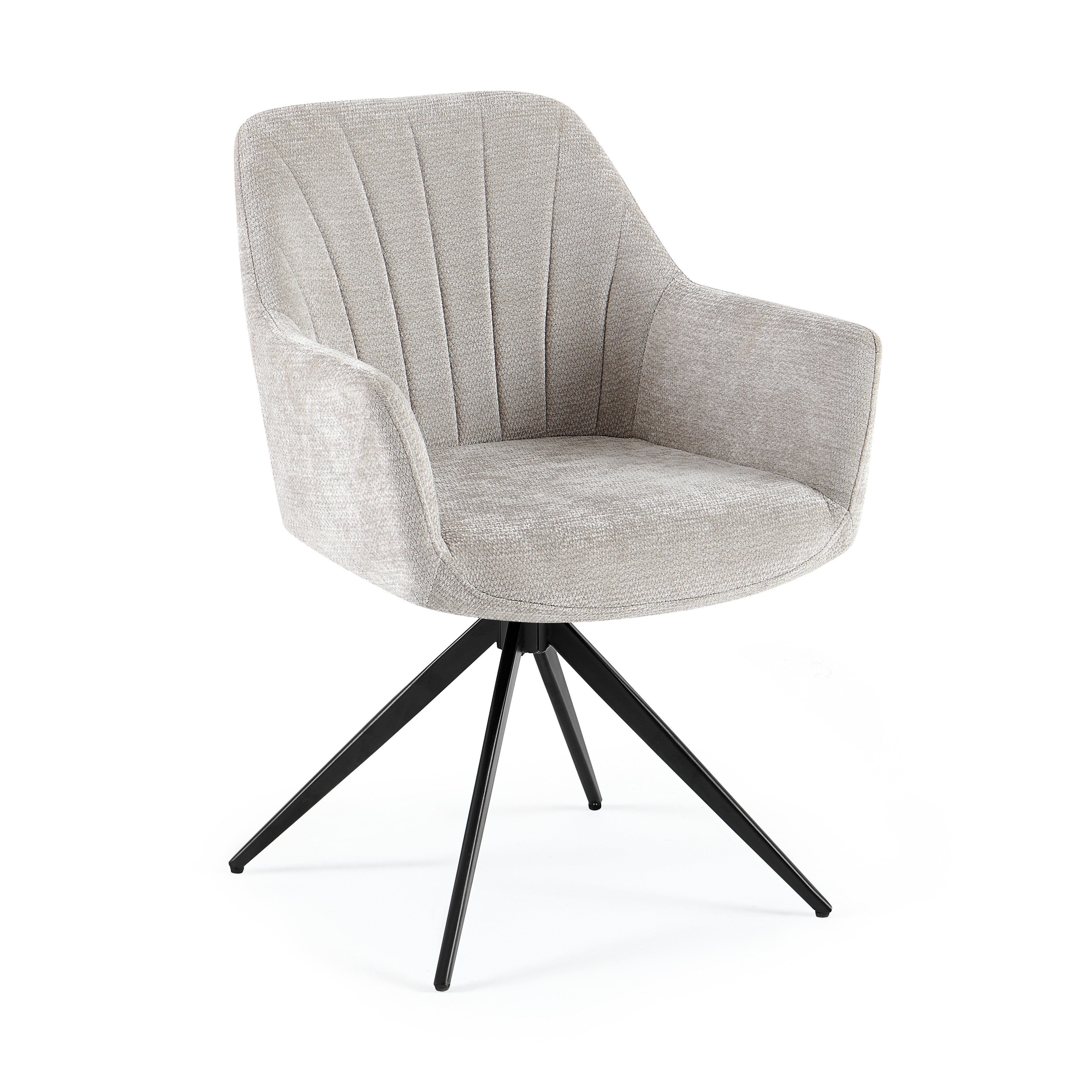 Mechanizm obrotu 180° ułatwia wstawanie od stołu i codzienne użytkowanie, a grube, miękkie wypełnienie siedziska oraz ergonomiczne podłokietniki gwarantują wyjątkowy komfort nawet przy długim siedzeniu.