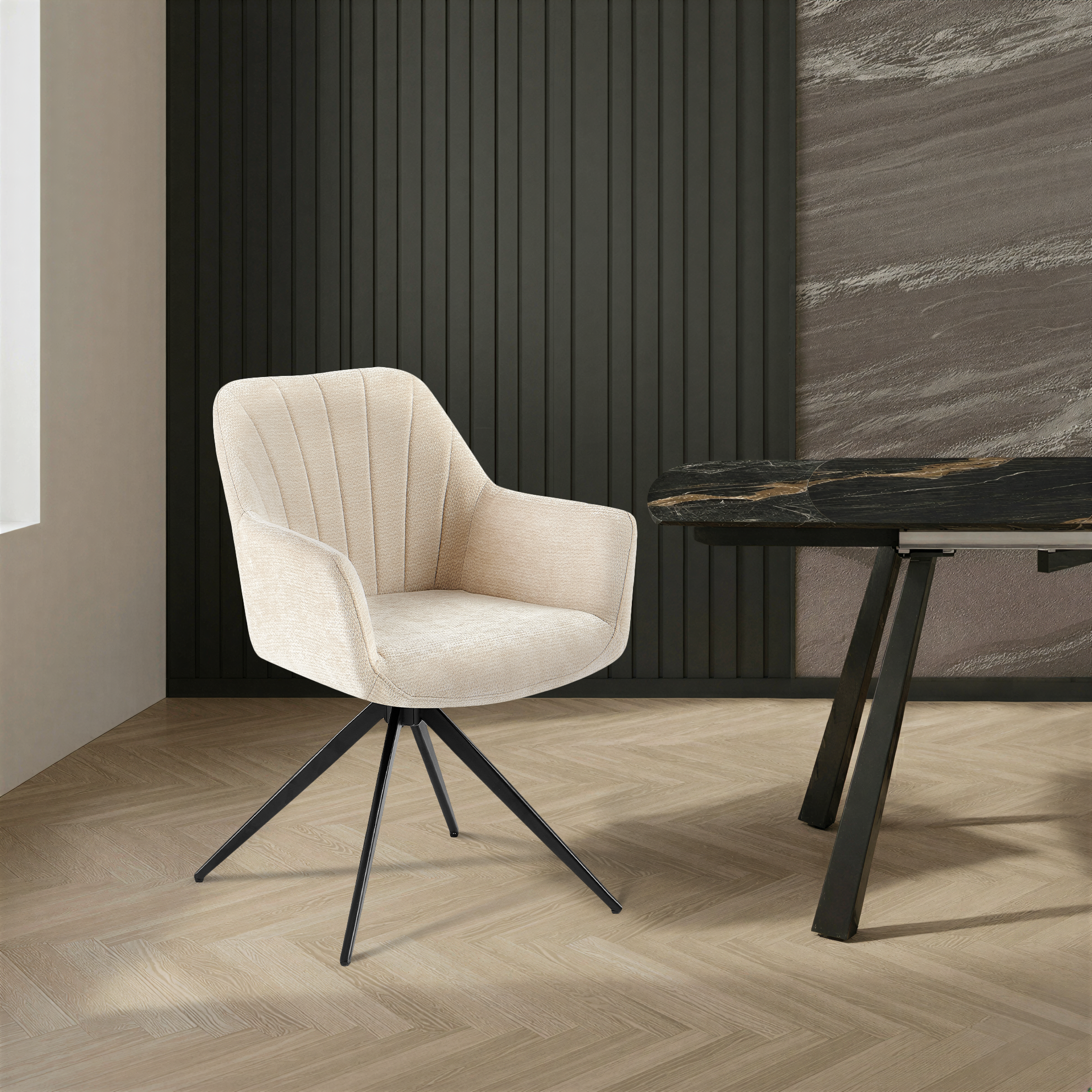 Obrotowe krzesło do jadalni tapicerowane 180° w kolorze beżowym – wygoda, elegancja i nowoczesny styl Prism