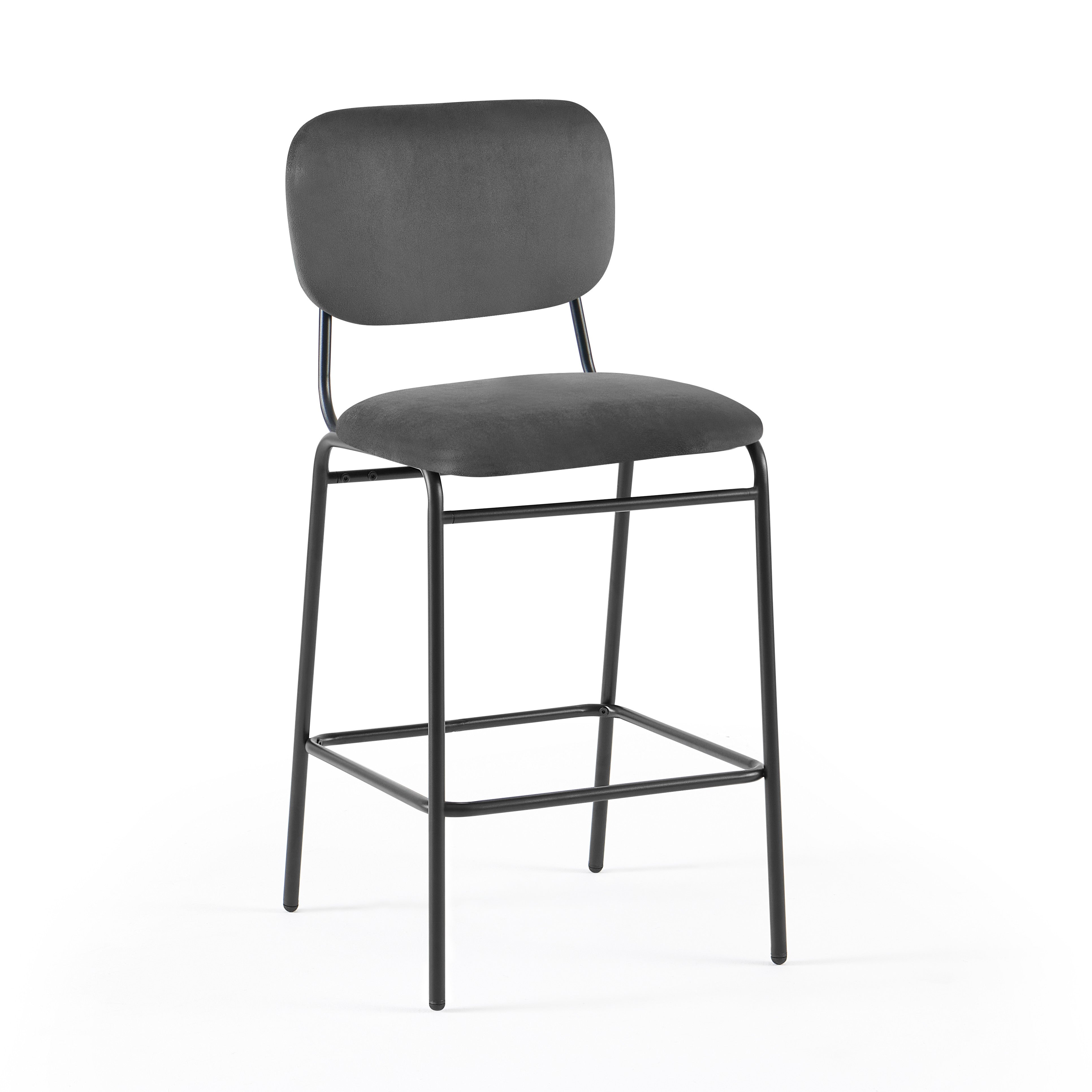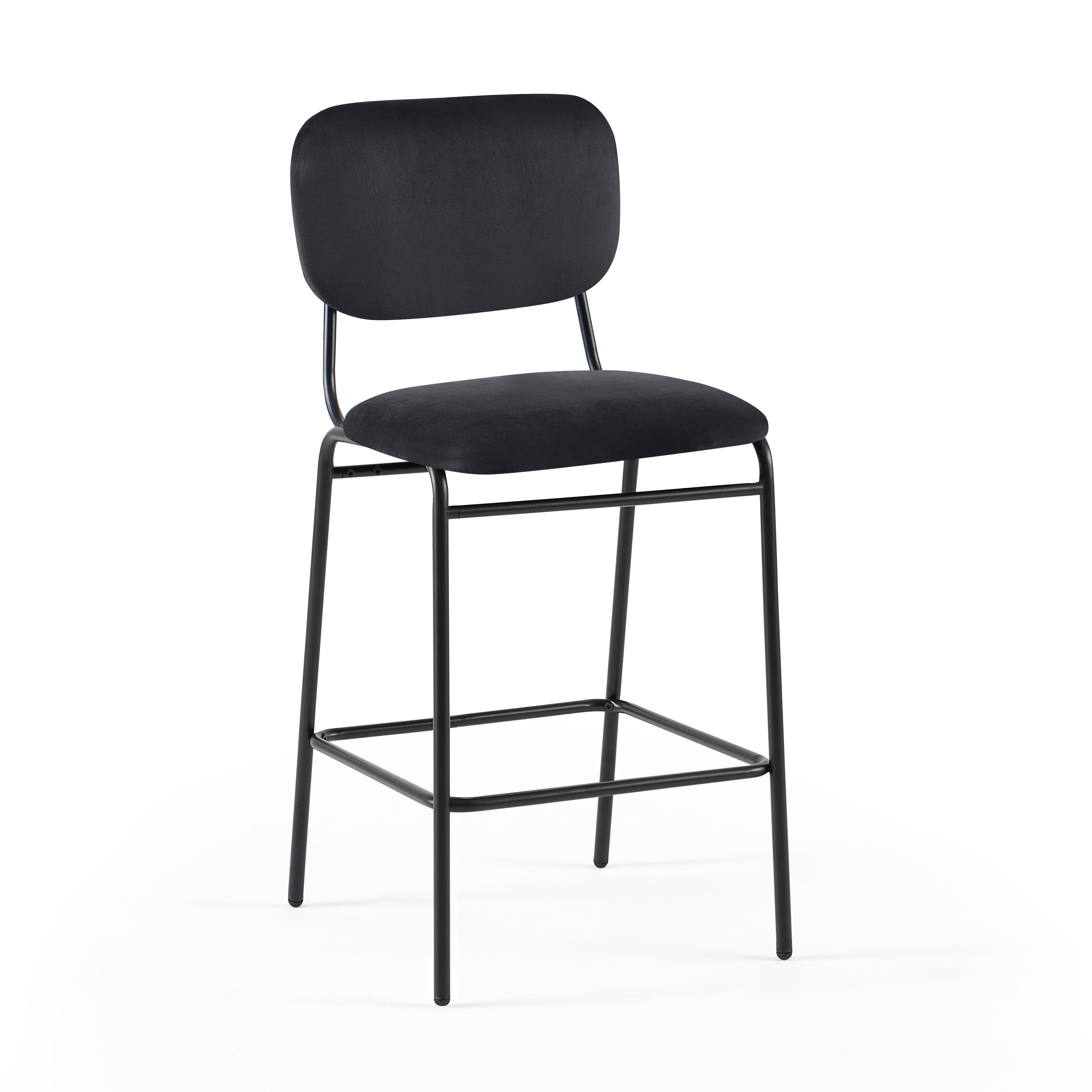 - Hoker Barowe Welurowe Nowoczesne Wysokie Nogi Stalowe Czarne DR256