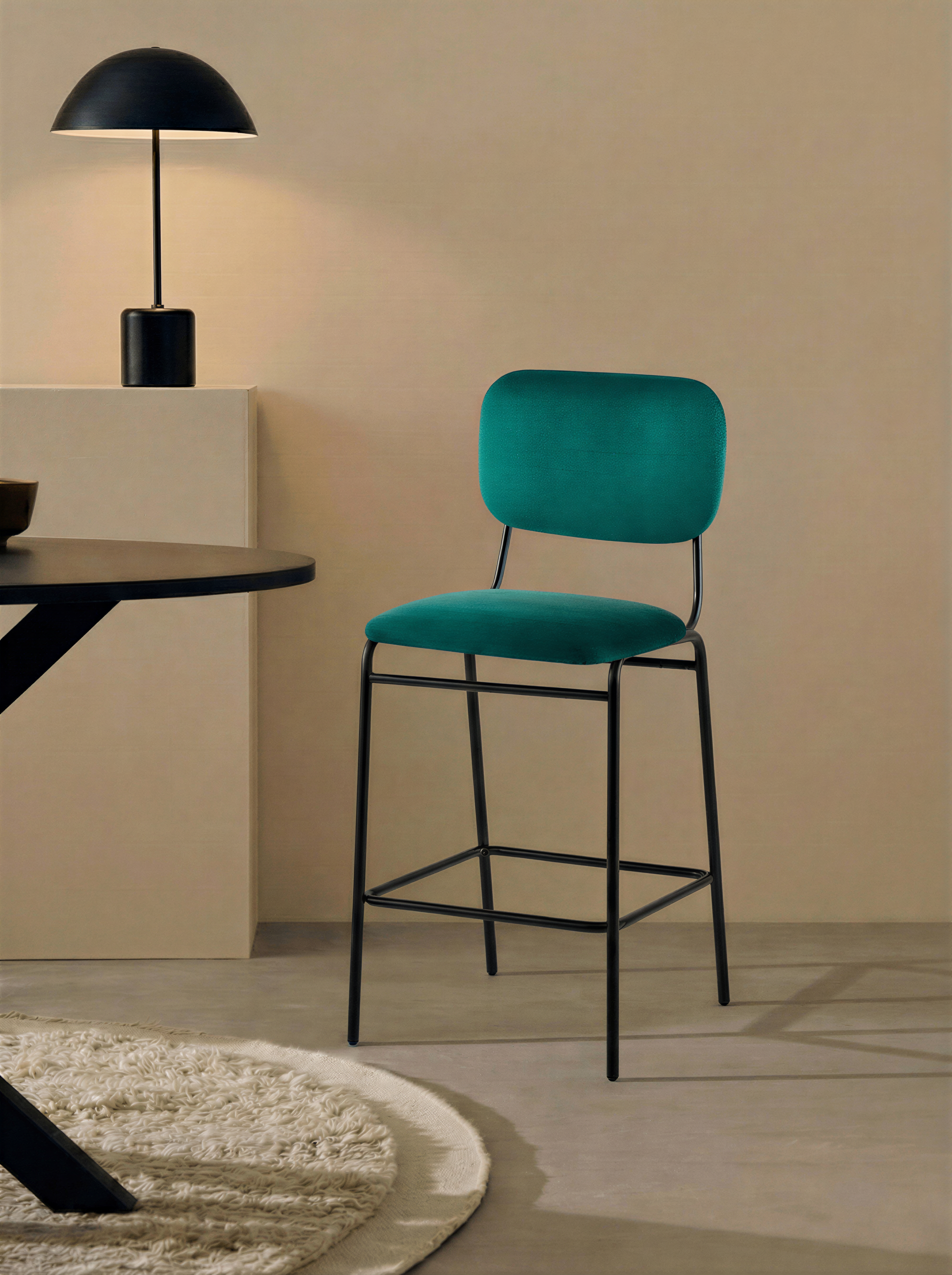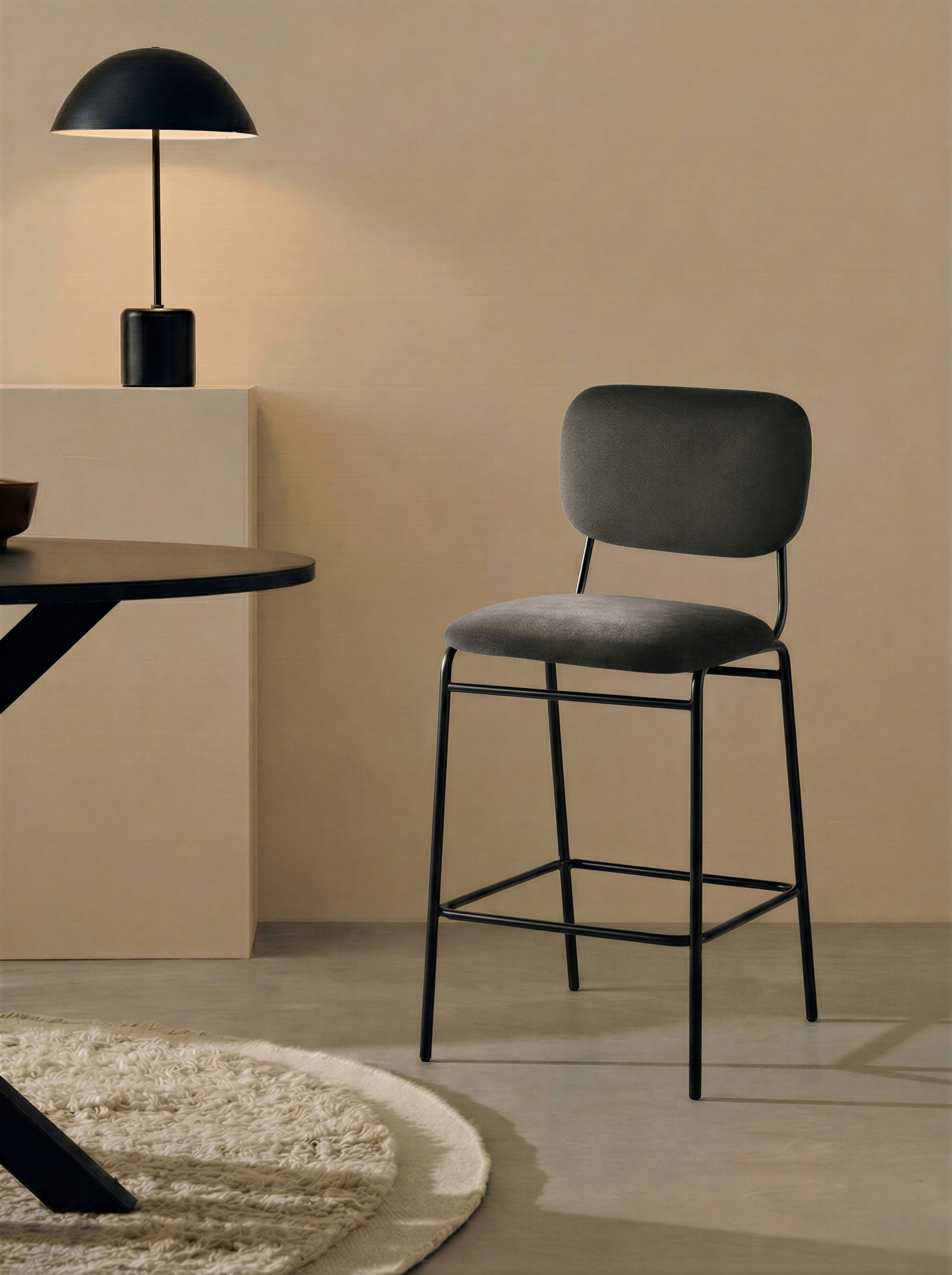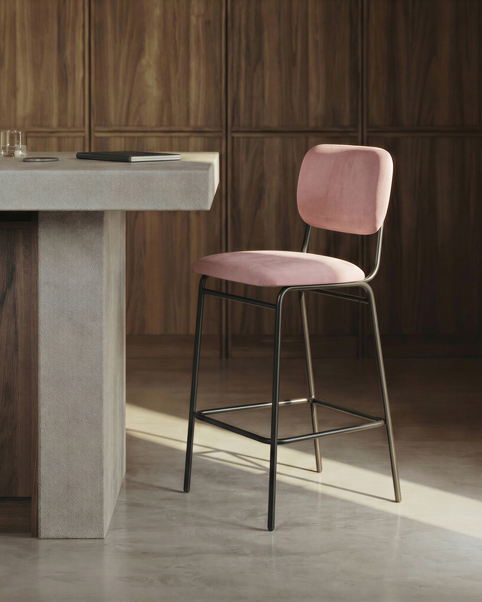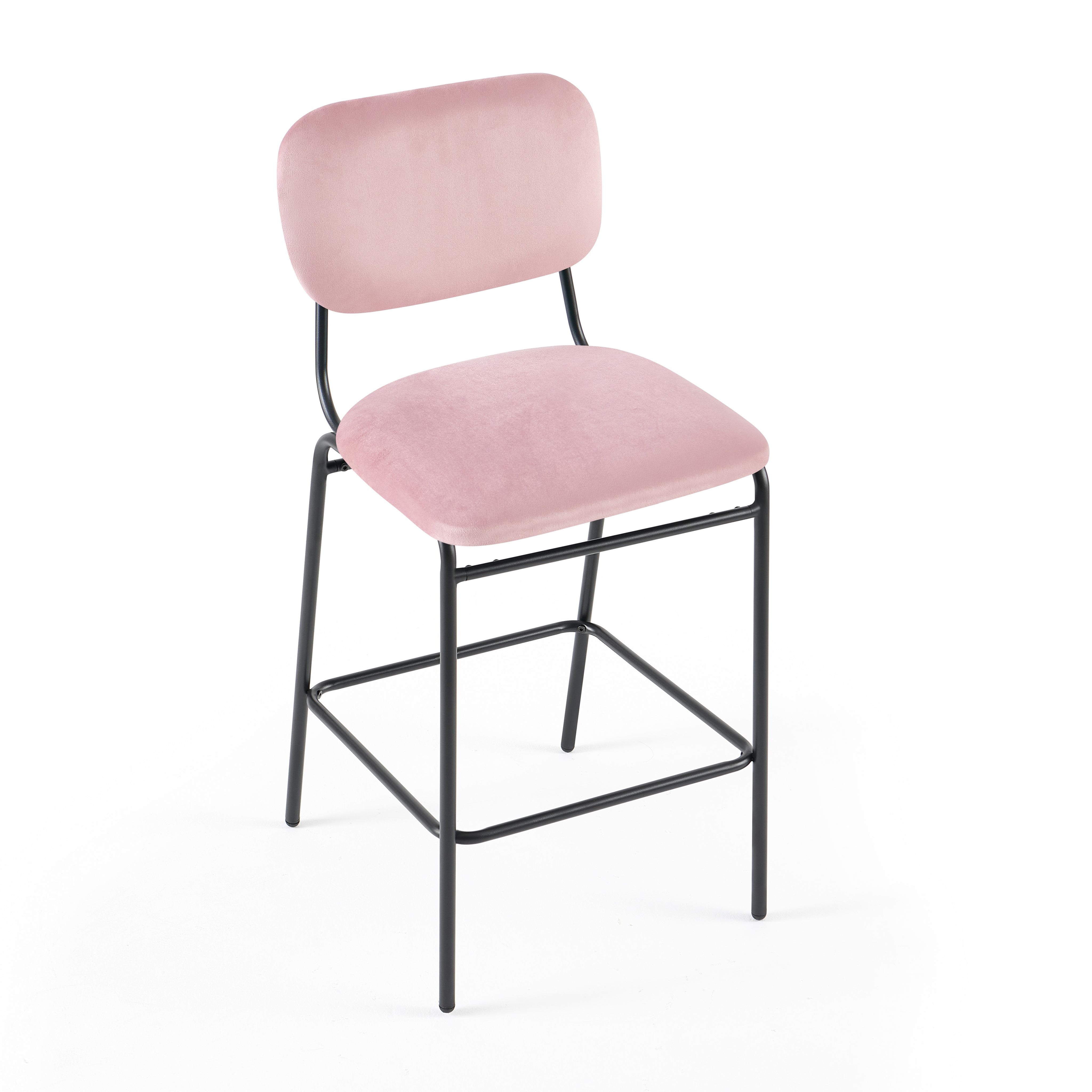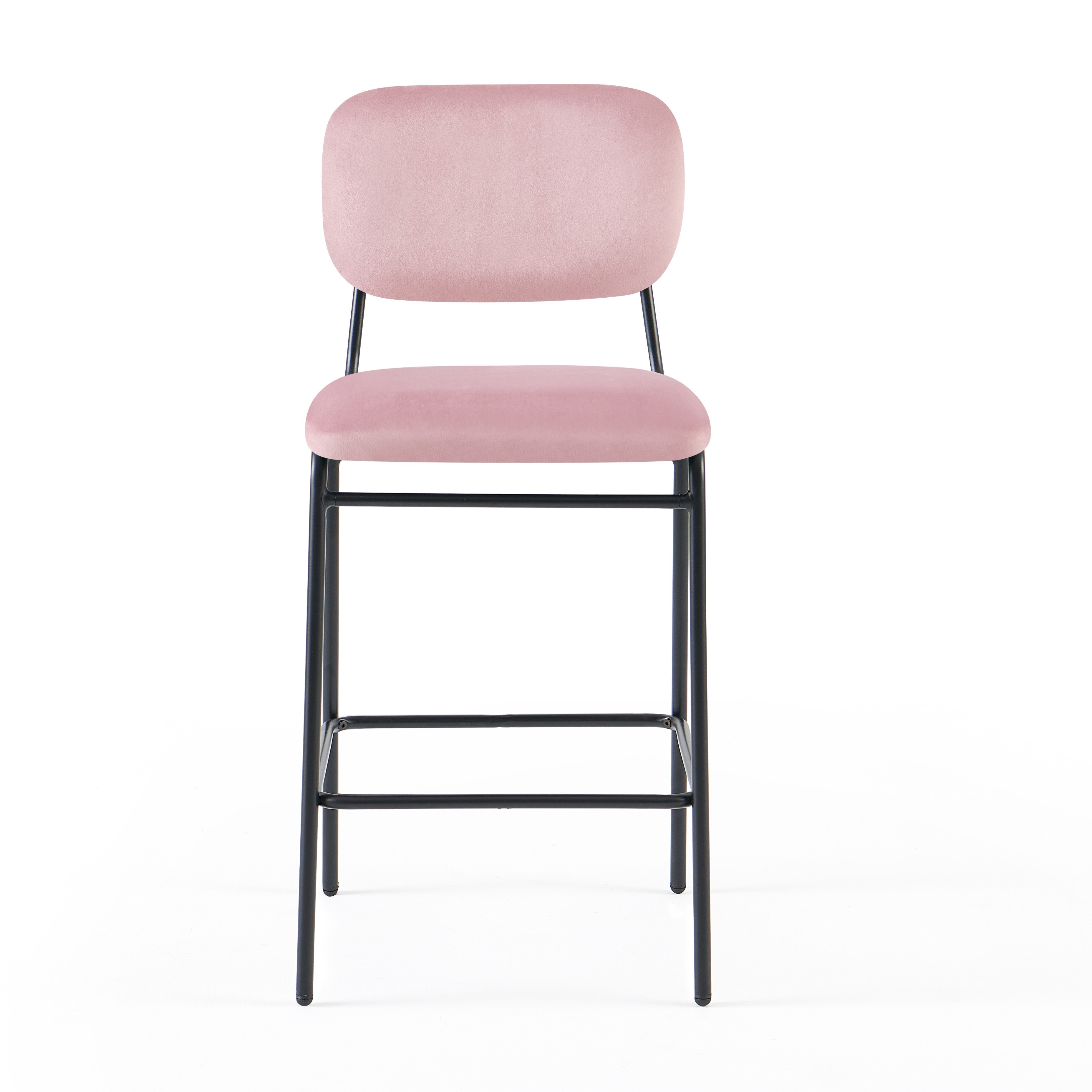 Krzesło Barowe Essenzae to stylowe połączenie elegancji i funkcjonalności, które doskonale uzupełni aranżację nowoczesnej kuchni, wyspy lub domowej strefy barowej. Miękka, aksamitna w dotyku tapicerka welurowa w różowym kolorze otula siedzisko oraz ergonomicznie wyprofilowane oparcie, zapewniając wygodę nawet podczas dłuższego siedzenia. Stabilna, stalowa konstrukcja z czarnymi nogami malowanymi proszkowo nadaje całości lekkości wizualnej, a jednocześnie gwarantuje trwałość i bezpieczeństwo użytkowania.