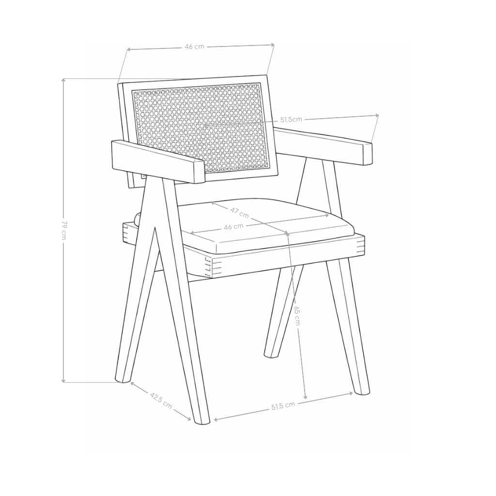 Zintegrowane drewniane podłokietniki podnoszą komfort użytkowania i stabilizują pozycję siedzącą. Solidna konstrukcja z naturalnego drewna oraz staranne połączenia elementów gwarantują trwałość i odporność na codzienne użytkowanie. Krzesło Aether sprawdzi się zarówno w jadalni i kuchni, jak i w restauracjach, kawiarniach czy przestrzeniach hotelowych.