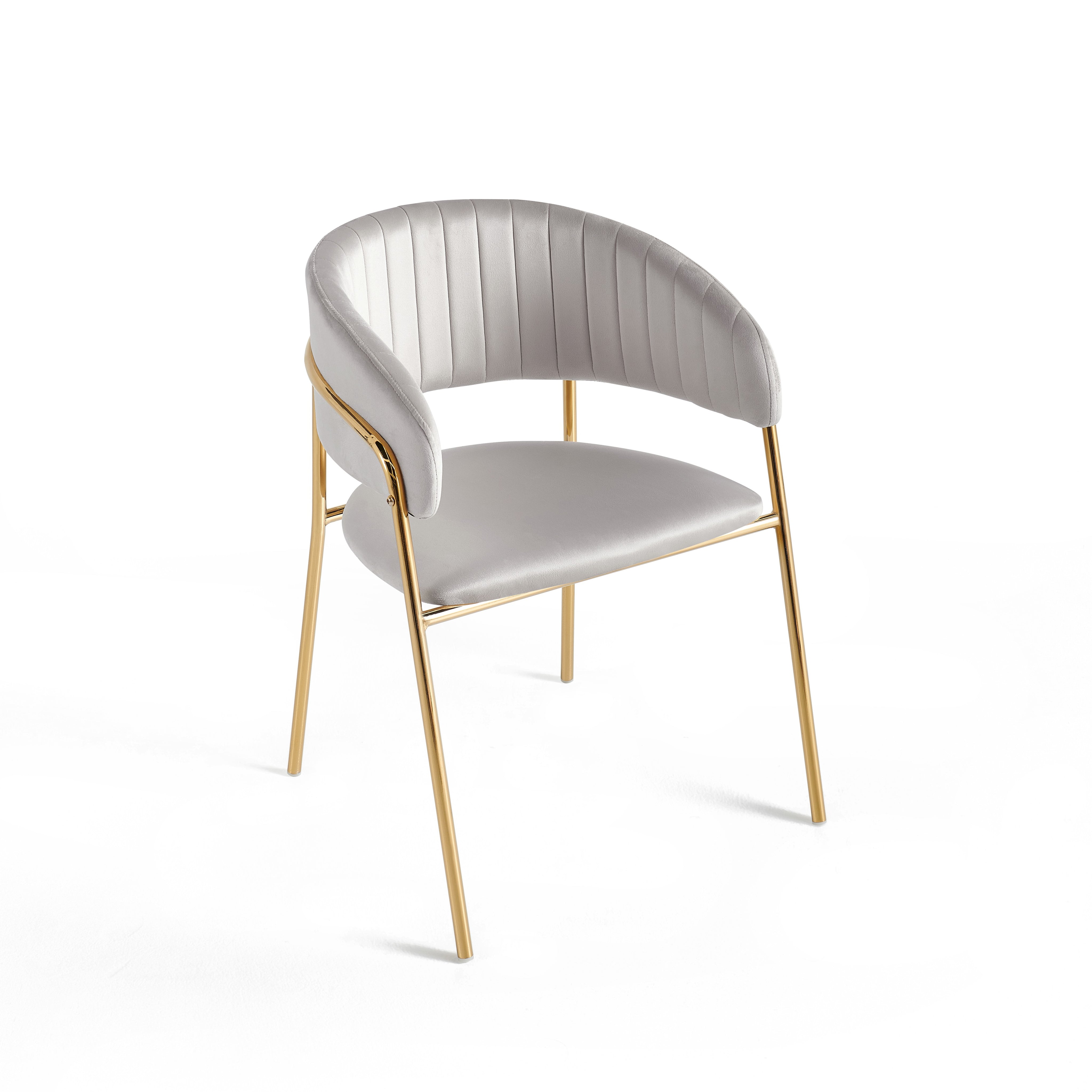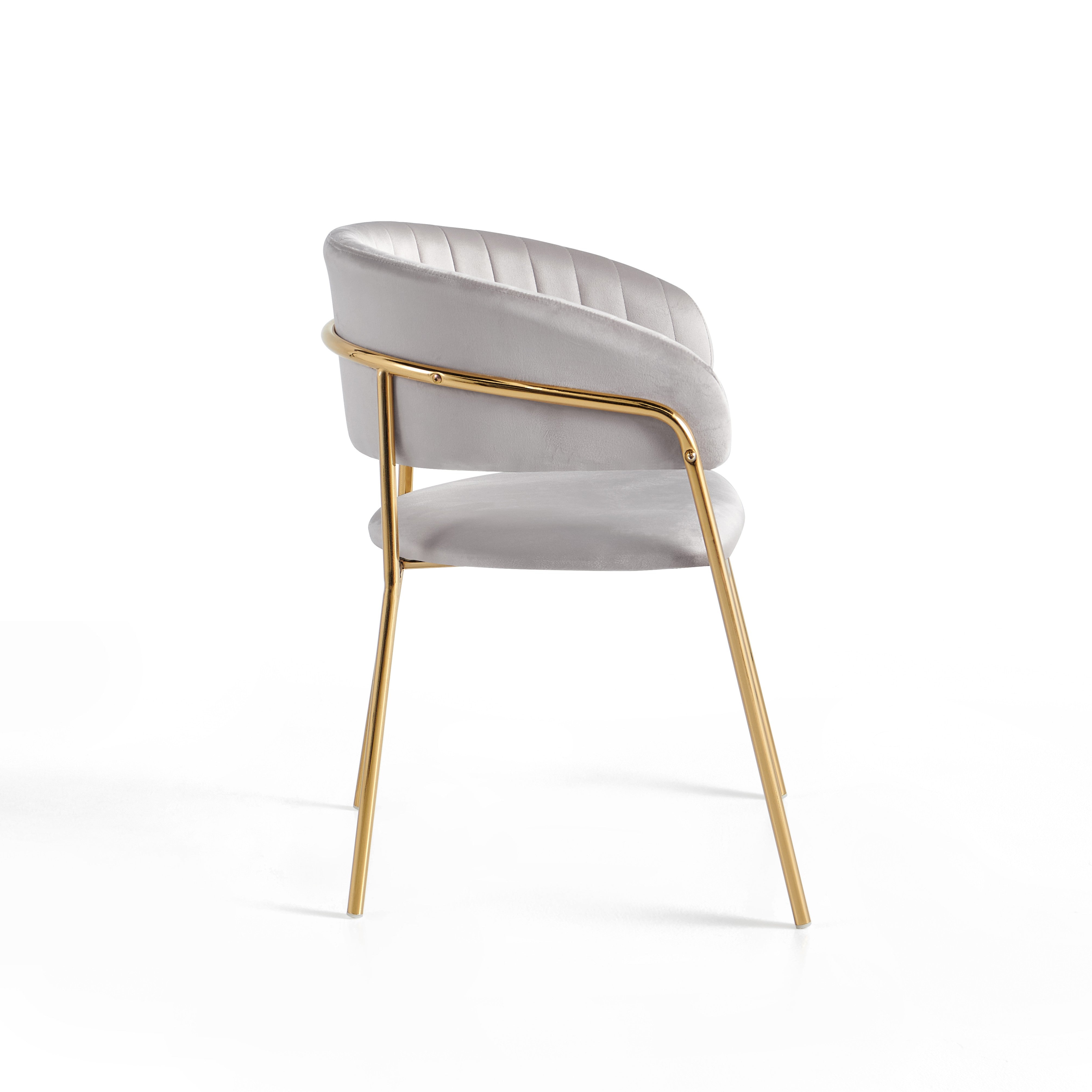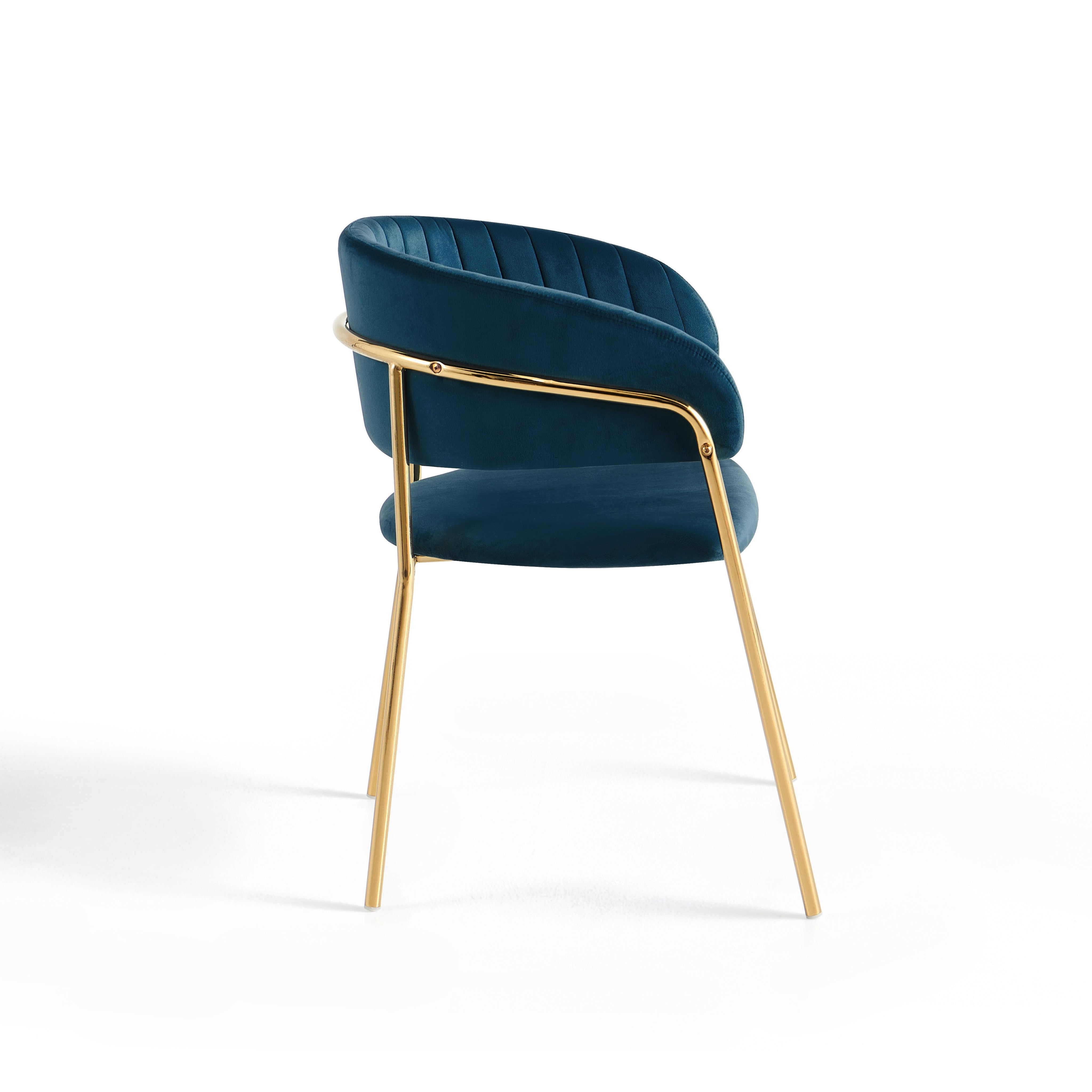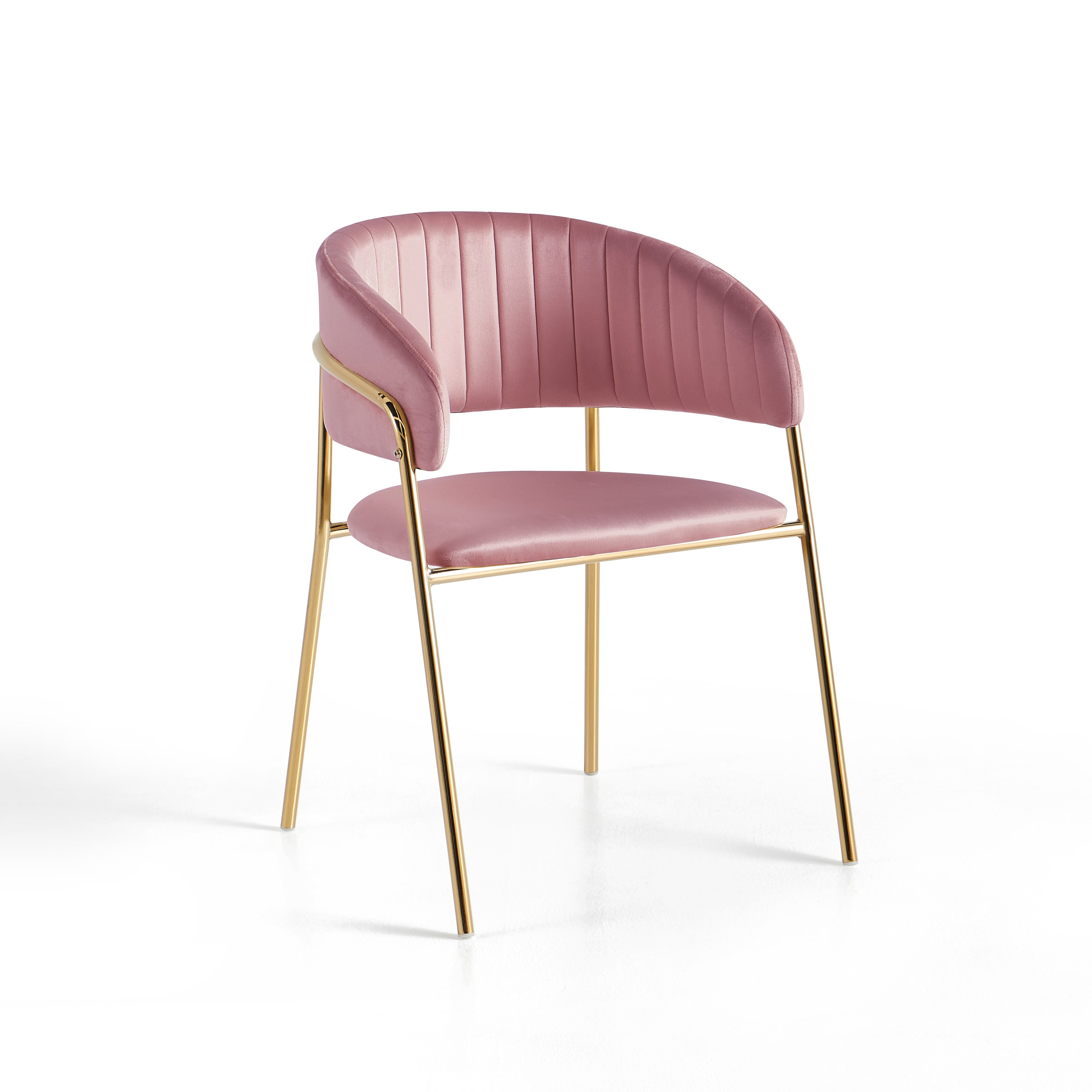 Smukłe nogi wykonane ze stali, wykończone w kolorze złotym, zapewniają stabilność konstrukcji i podkreślają nowoczesno-glamour charakter krzesła. Model 331 sprawdzi się w jadalni, salonie, a także w przestrzeniach komercyjnych – restauracjach, hotelach czy strefach lounge.