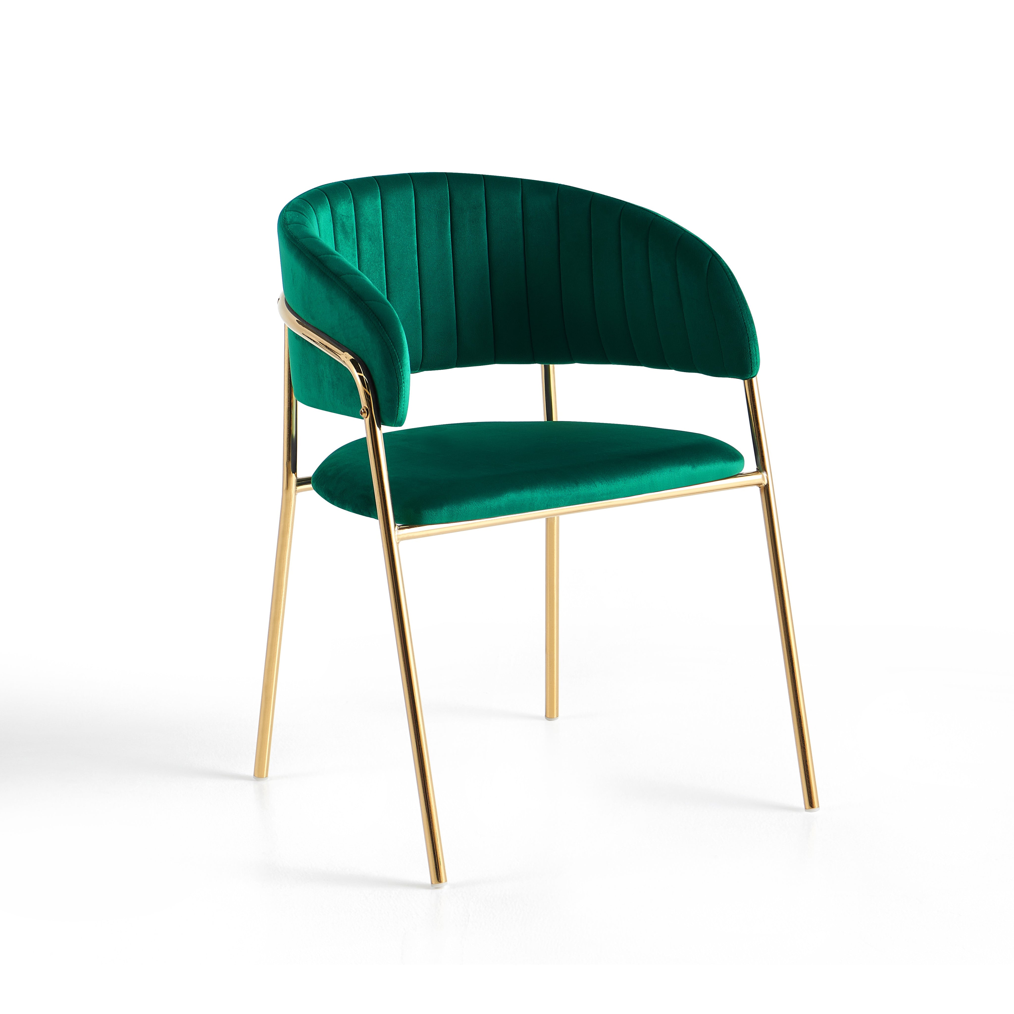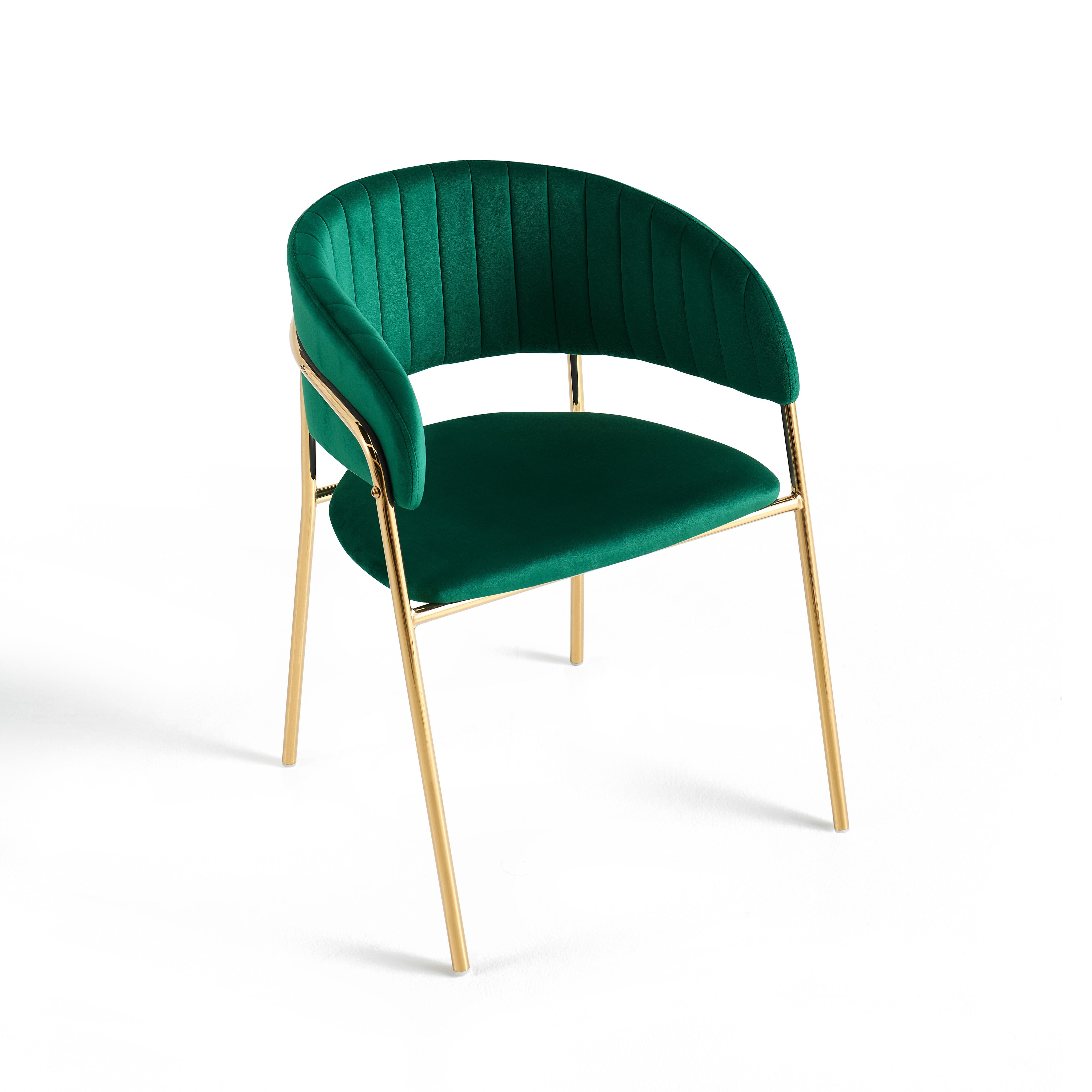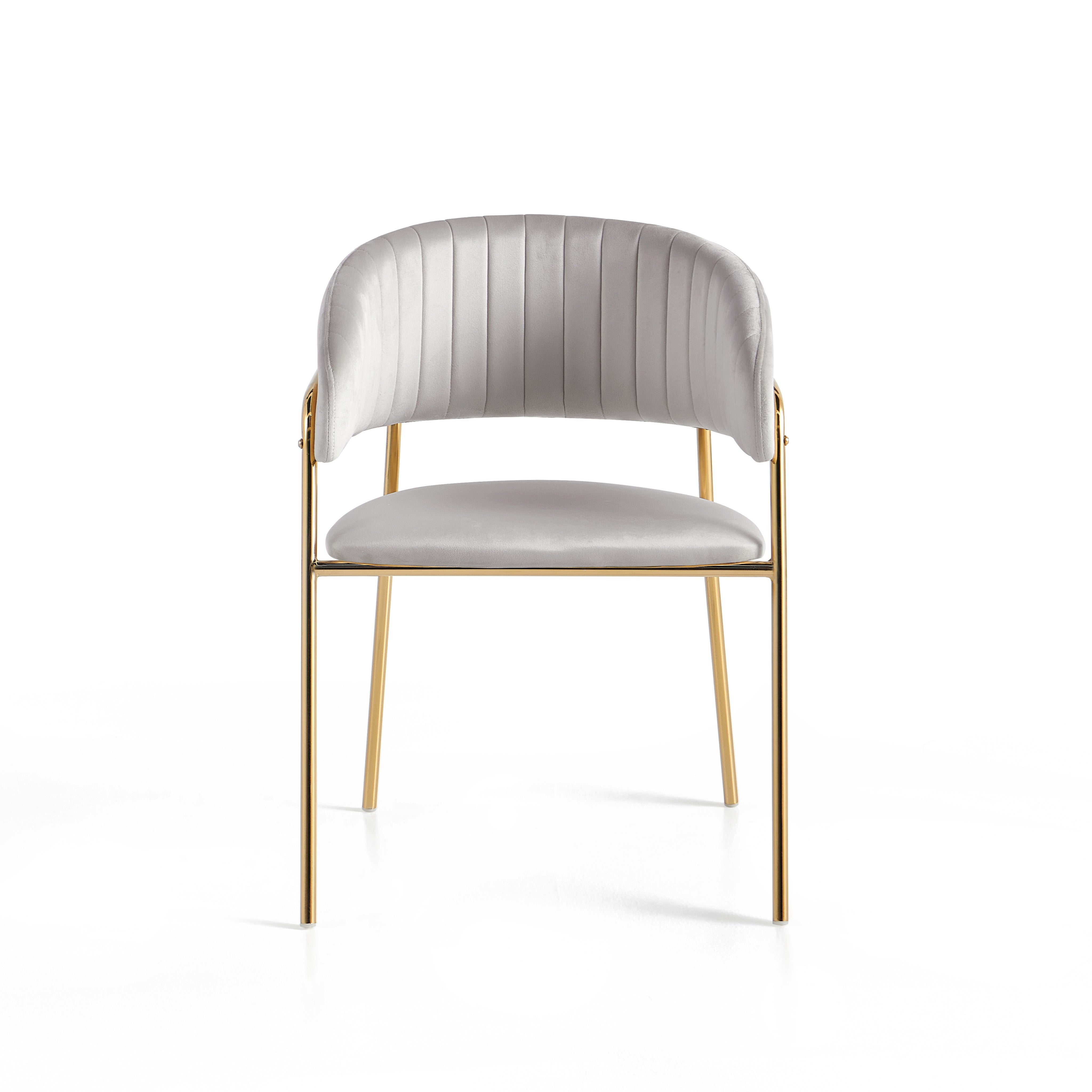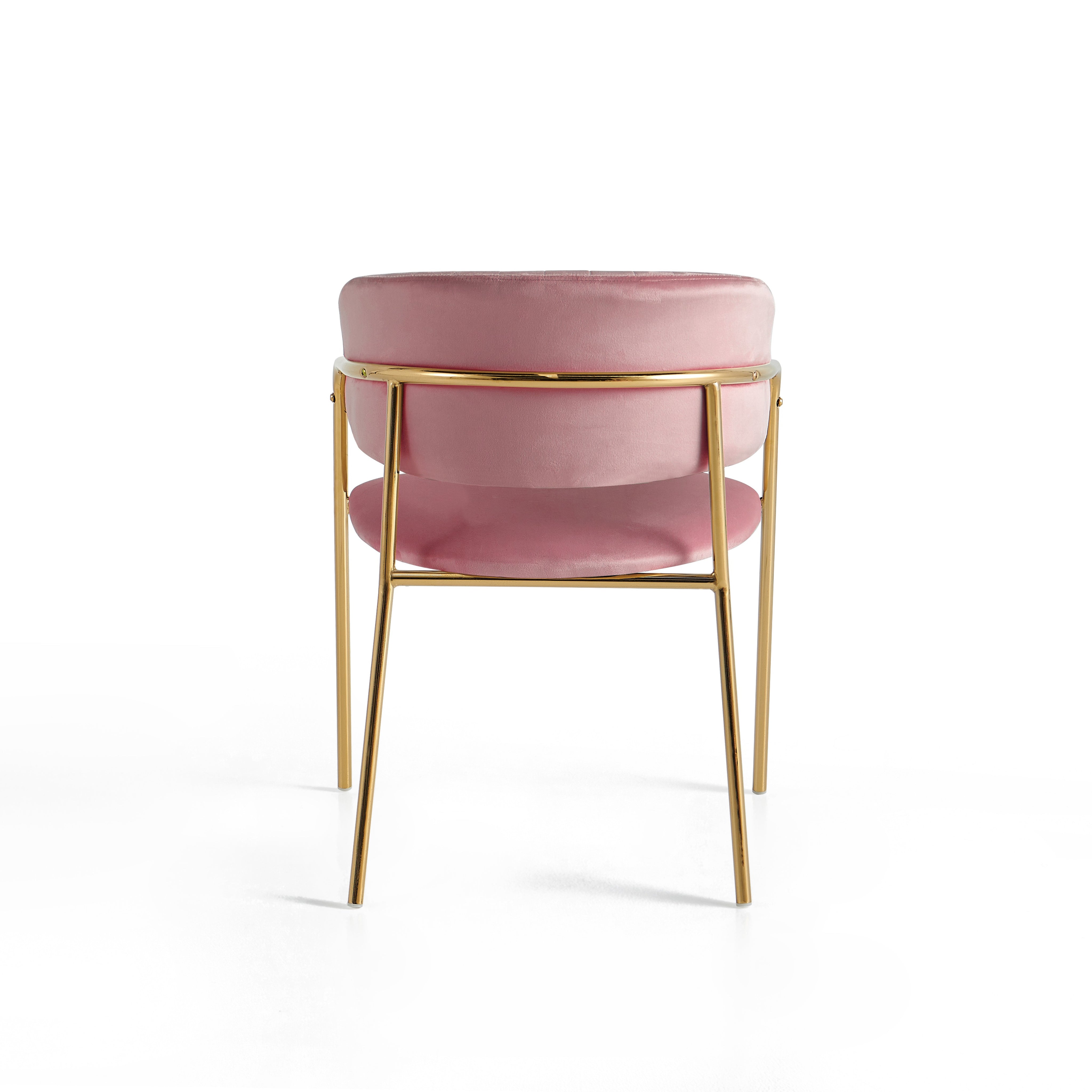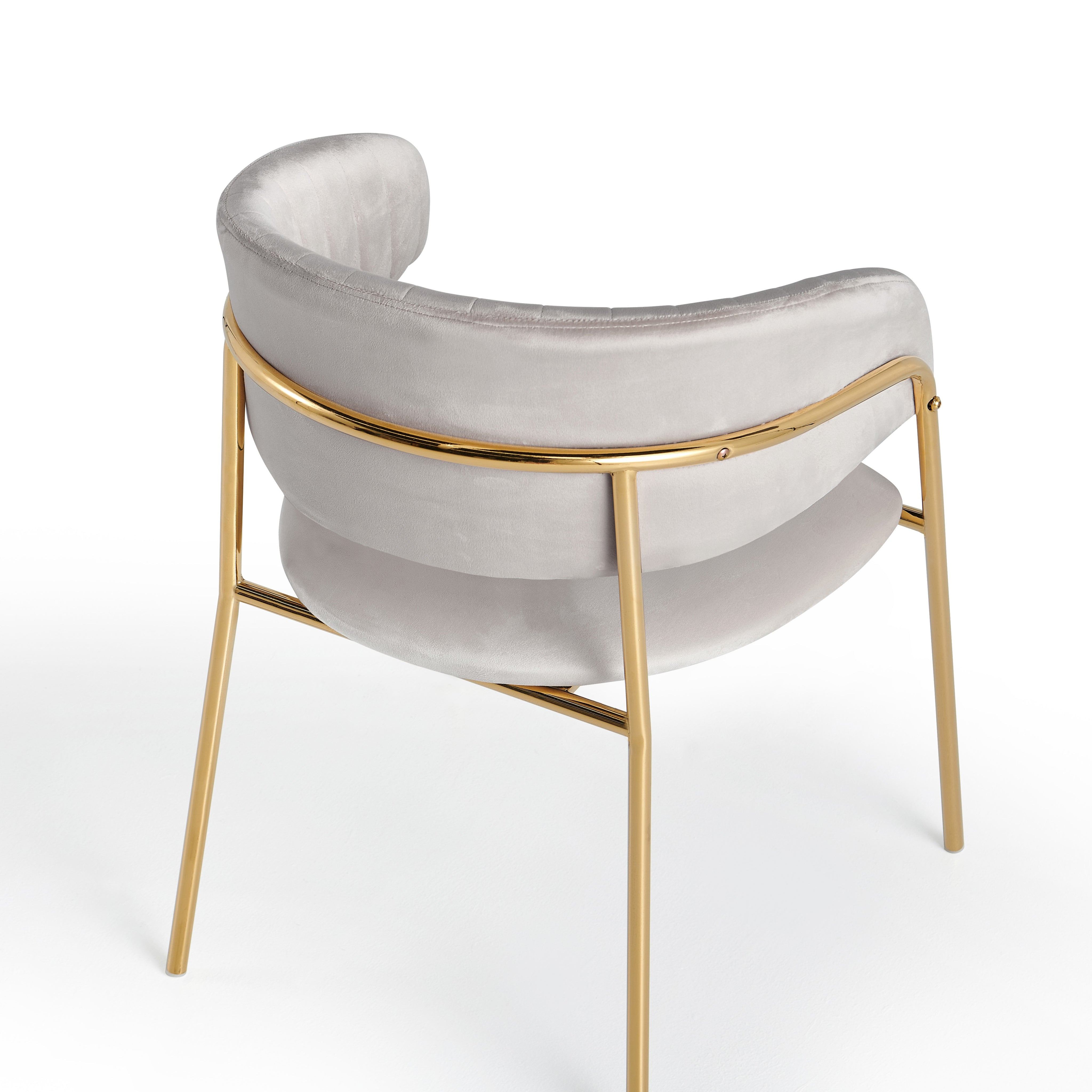 Smukłe nogi wykonane ze stali, wykończone w kolorze złotym, zapewniają stabilność konstrukcji i podkreślają nowoczesno-glamour charakter krzesła. Model 331 sprawdzi się w jadalni, salonie, a także w przestrzeniach komercyjnych – restauracjach, hotelach czy strefach lounge.