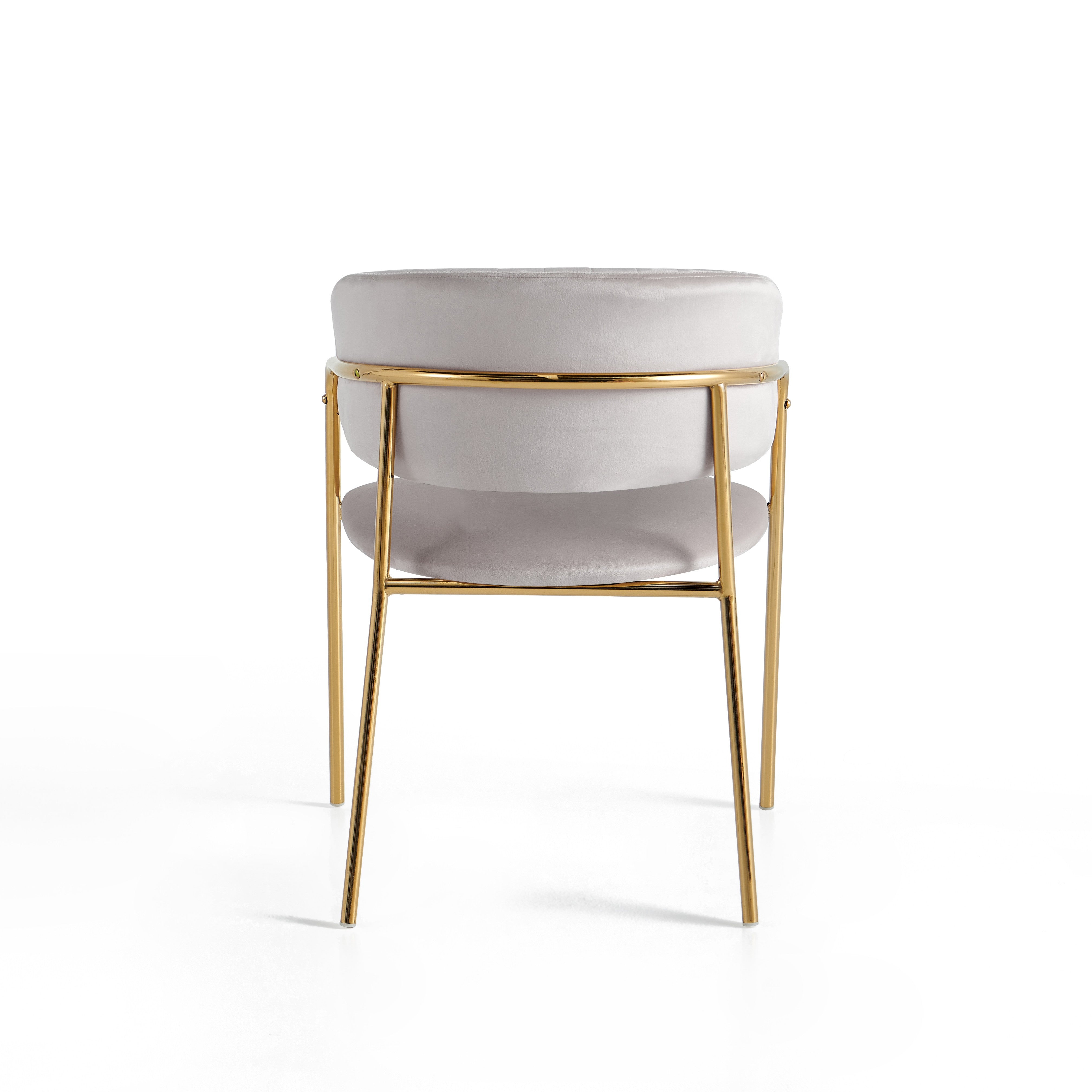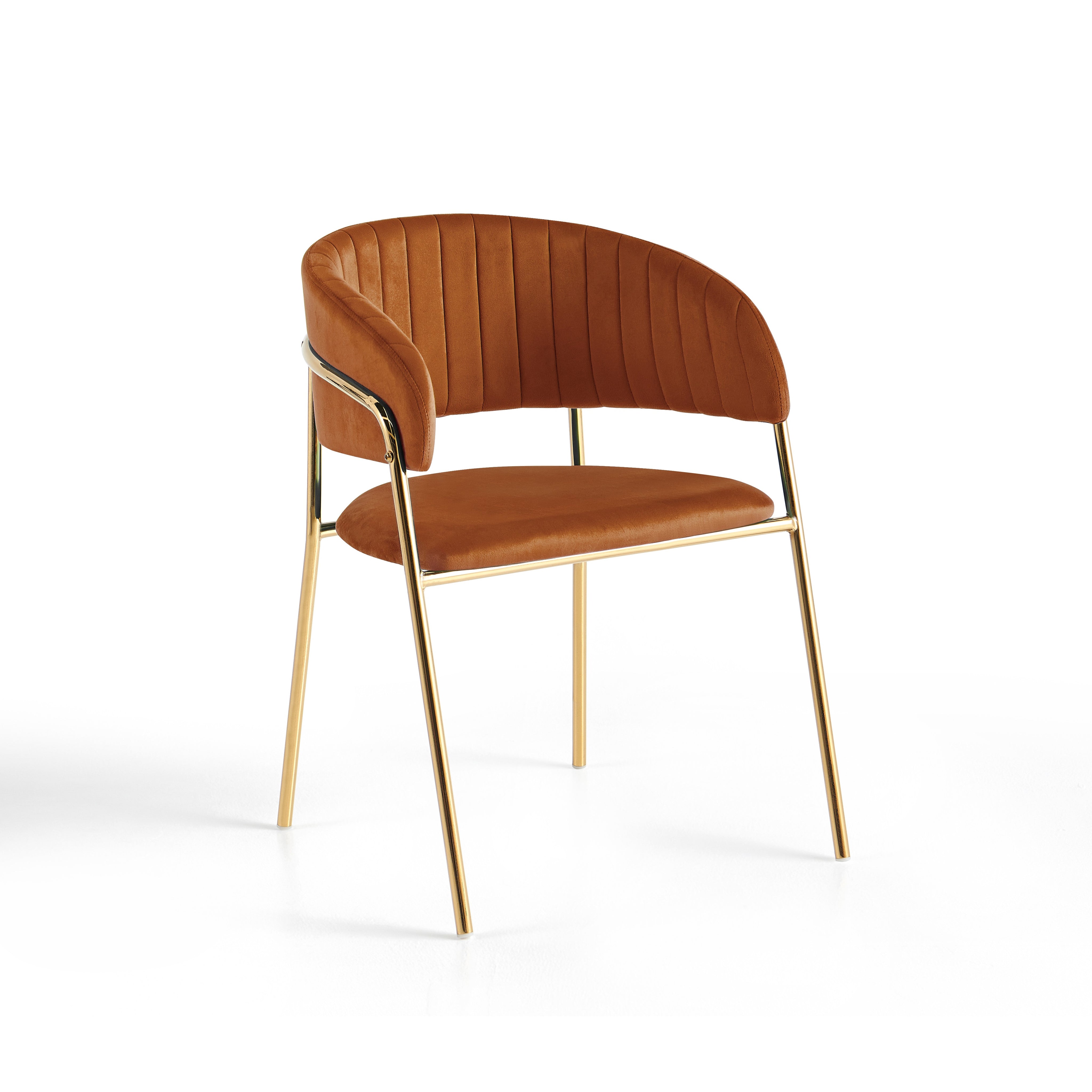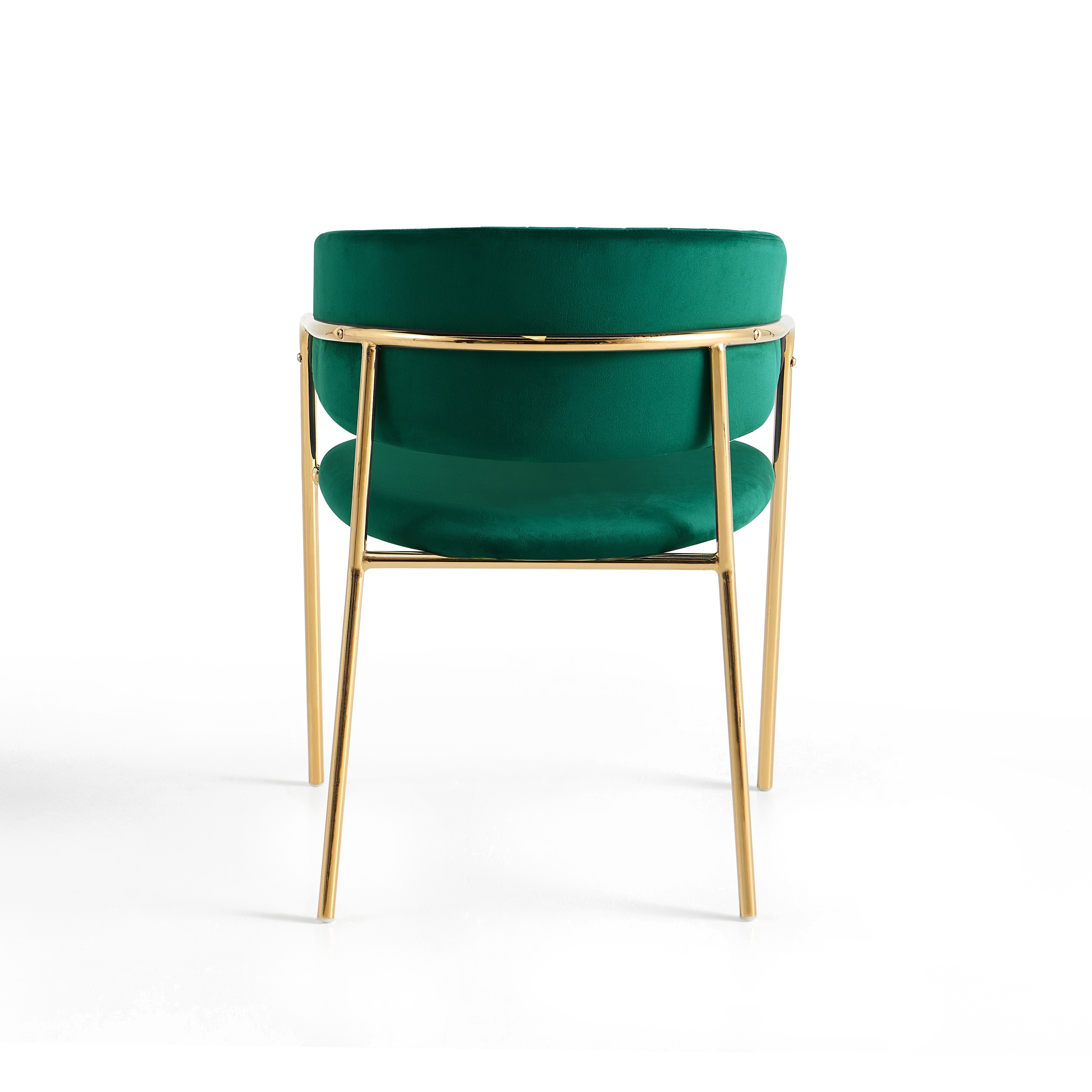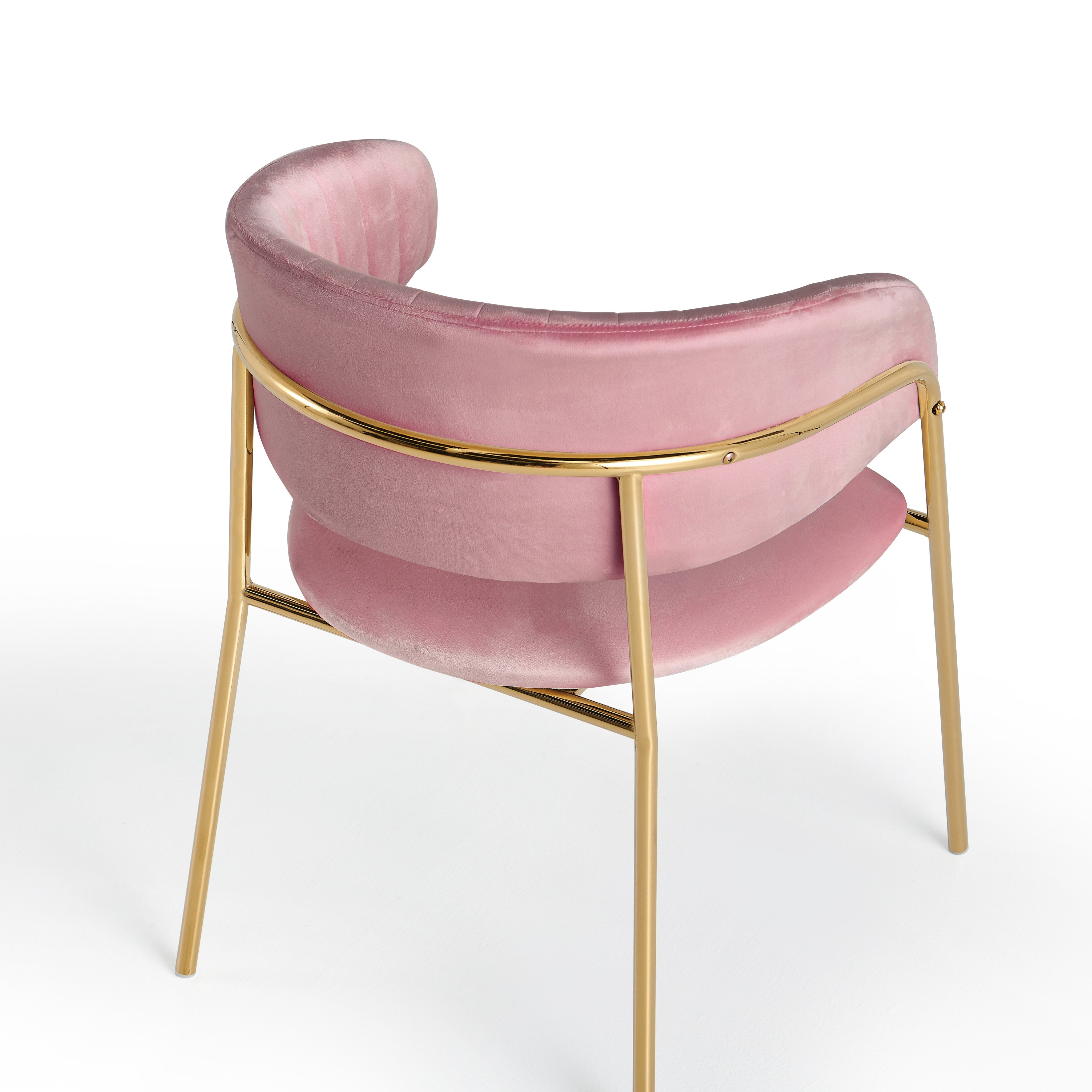 Smukłe nogi wykonane ze stali, wykończone w kolorze złotym, zapewniają stabilność konstrukcji i podkreślają nowoczesno-glamour charakter krzesła. Model 331 sprawdzi się w jadalni, salonie, a także w przestrzeniach komercyjnych – restauracjach, hotelach czy strefach lounge.
