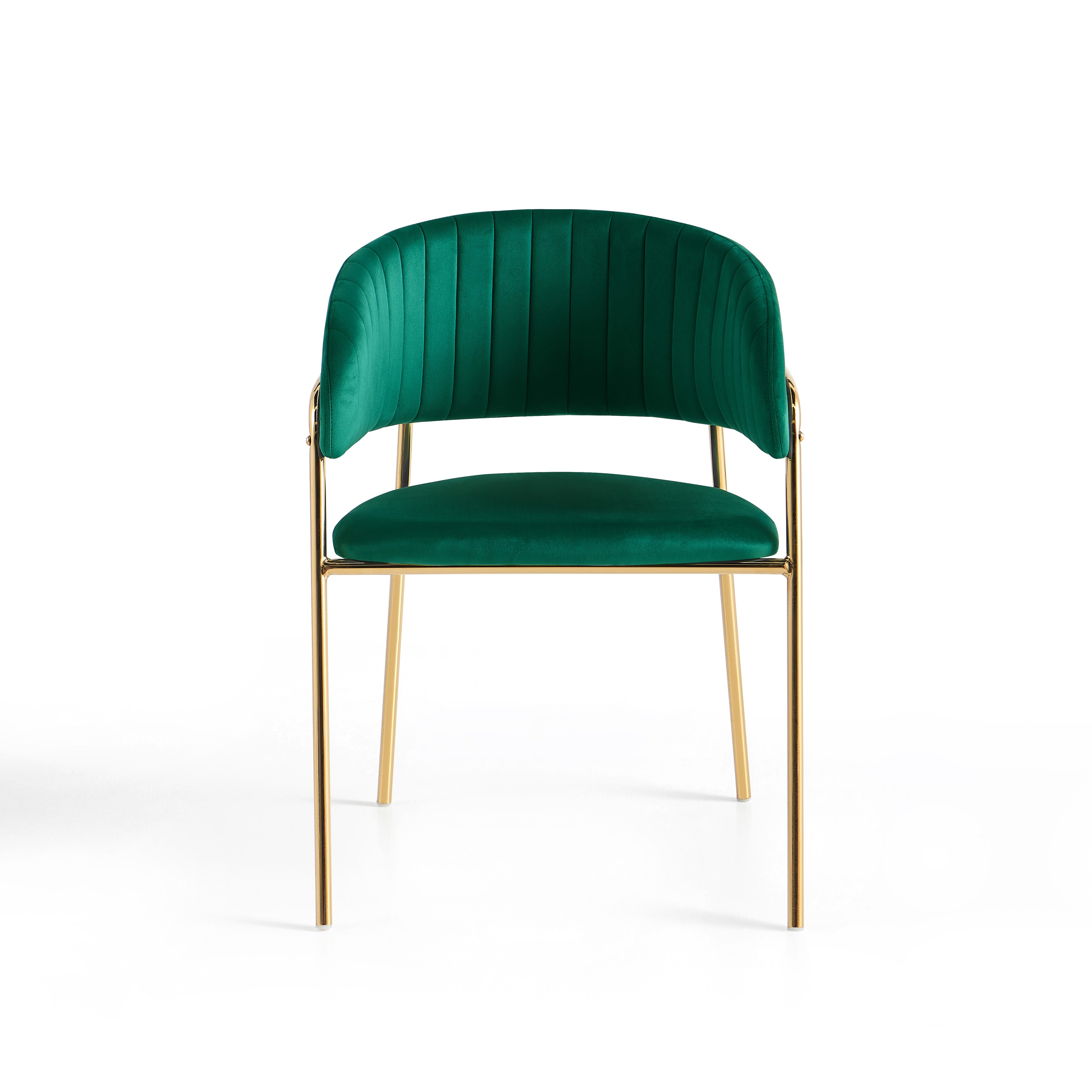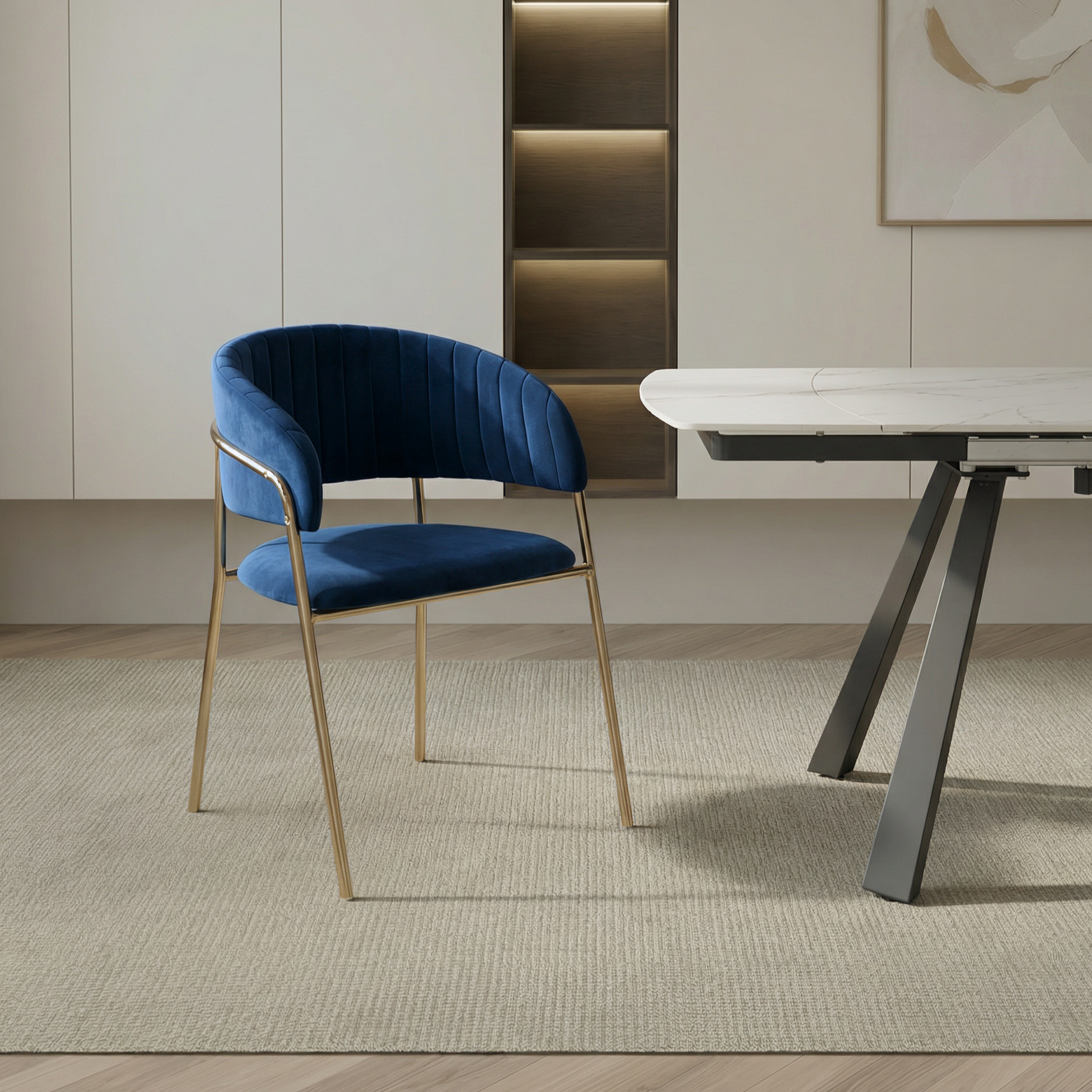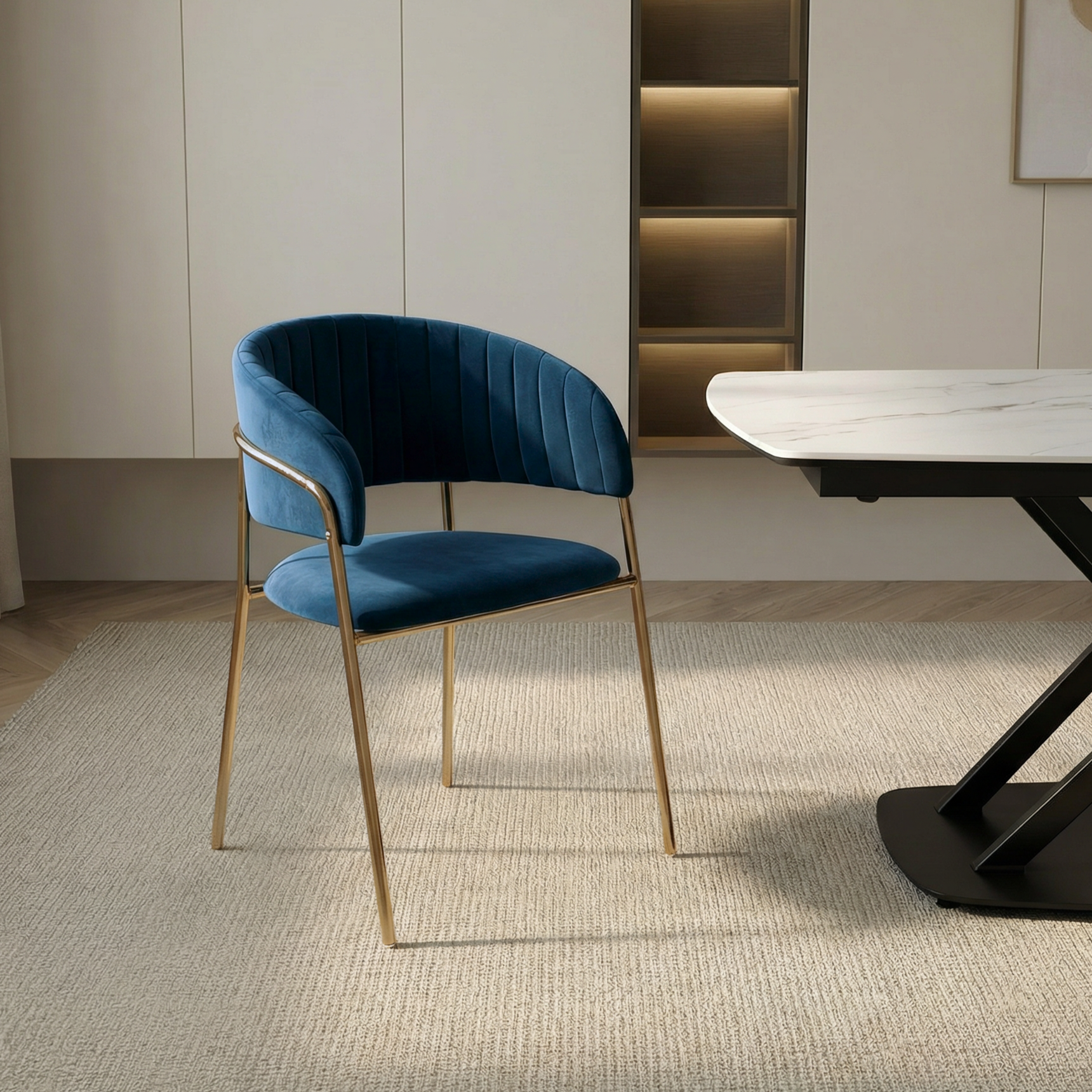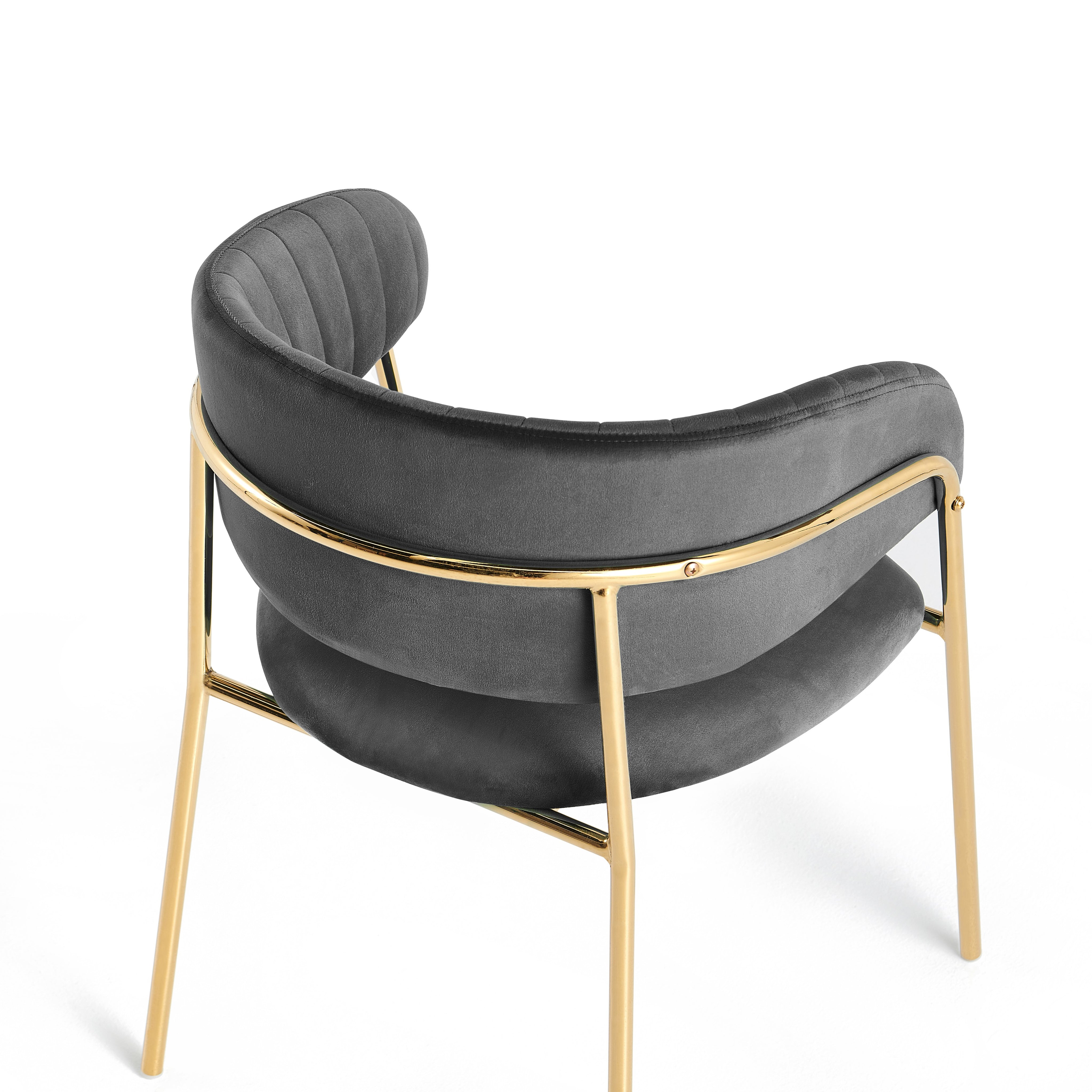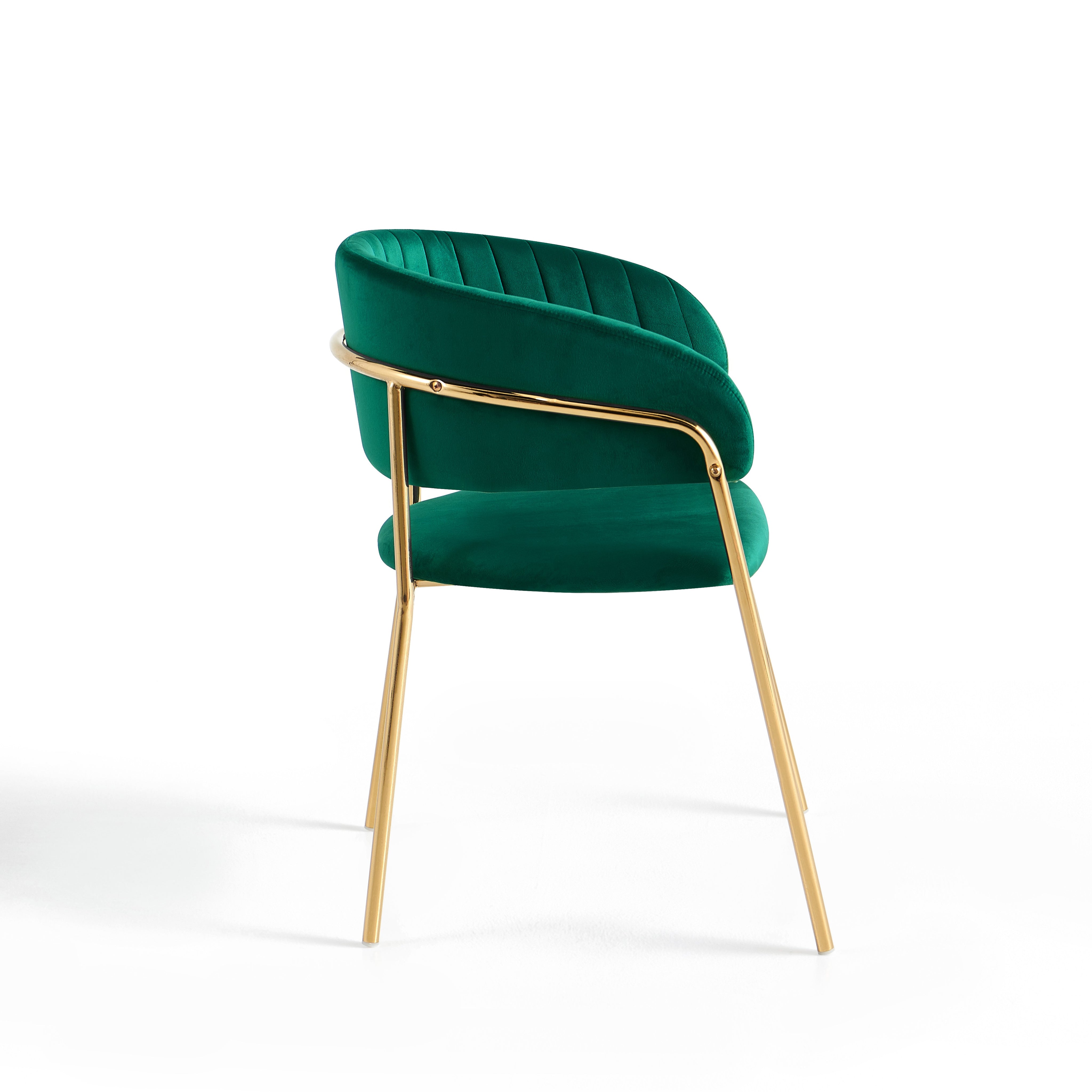 Smukłe nogi wykonane ze stali, wykończone w kolorze złotym, zapewniają stabilność konstrukcji i podkreślają nowoczesno-glamour charakter krzesła. Model 331 sprawdzi się w jadalni, salonie, a także w przestrzeniach komercyjnych – restauracjach, hotelach czy strefach lounge.