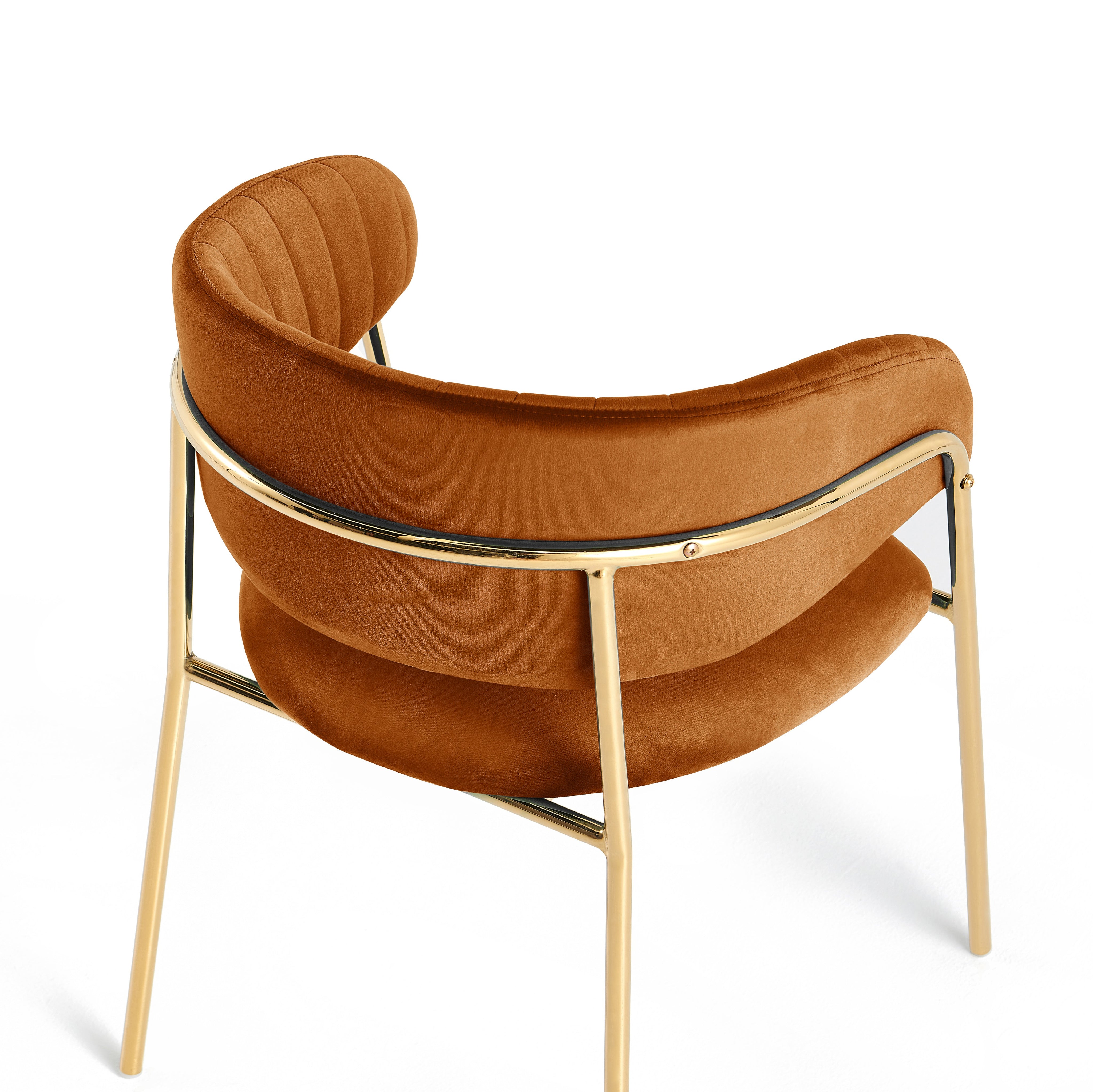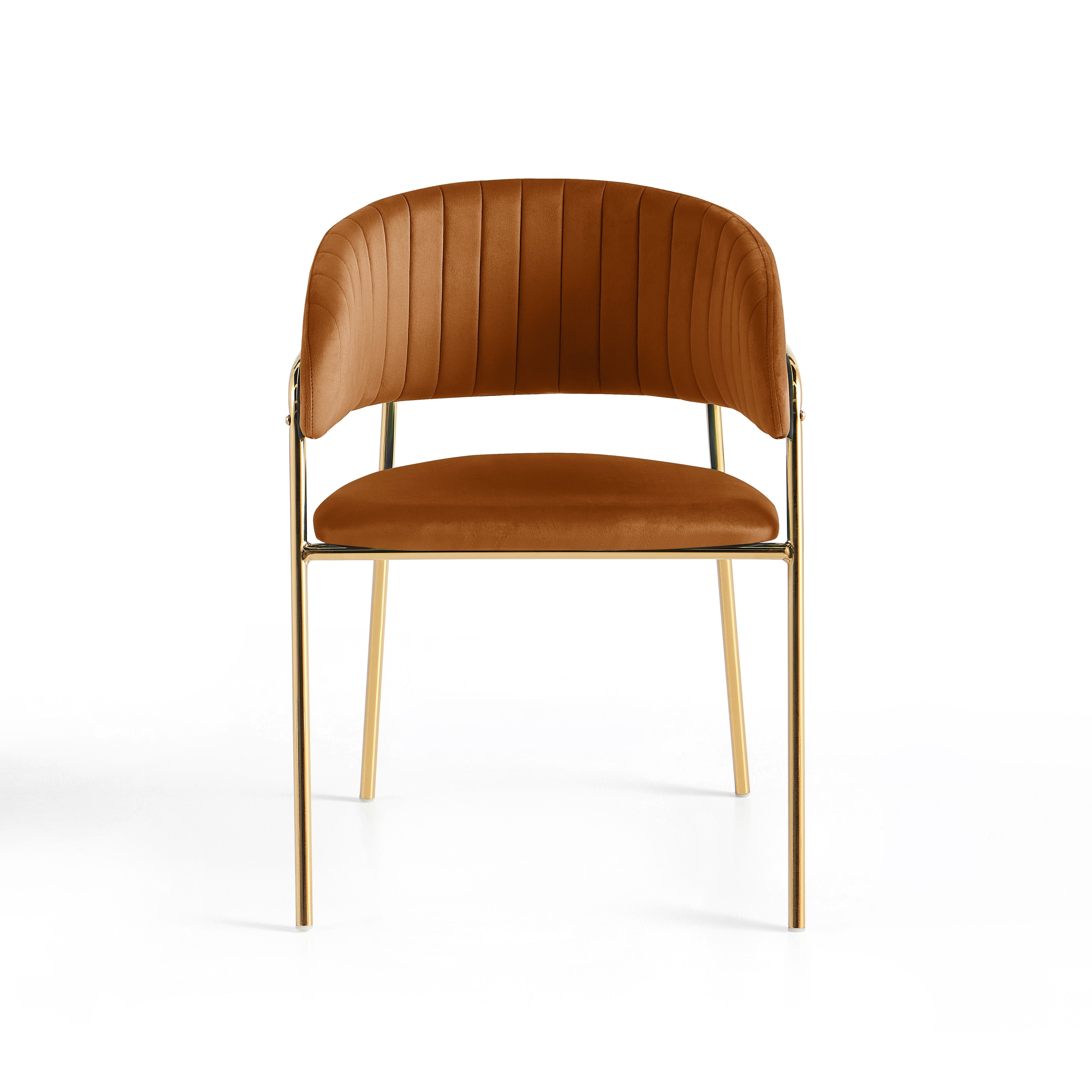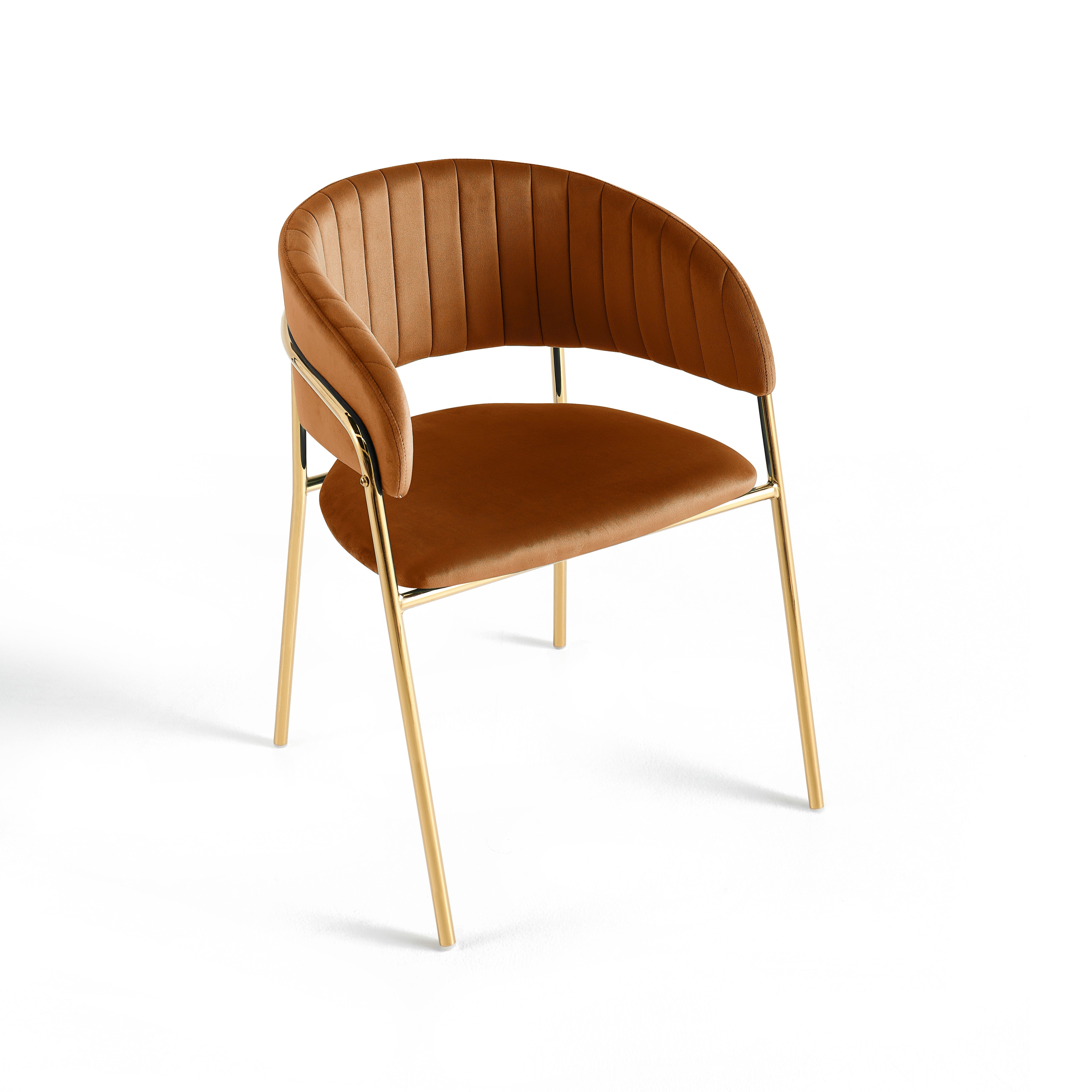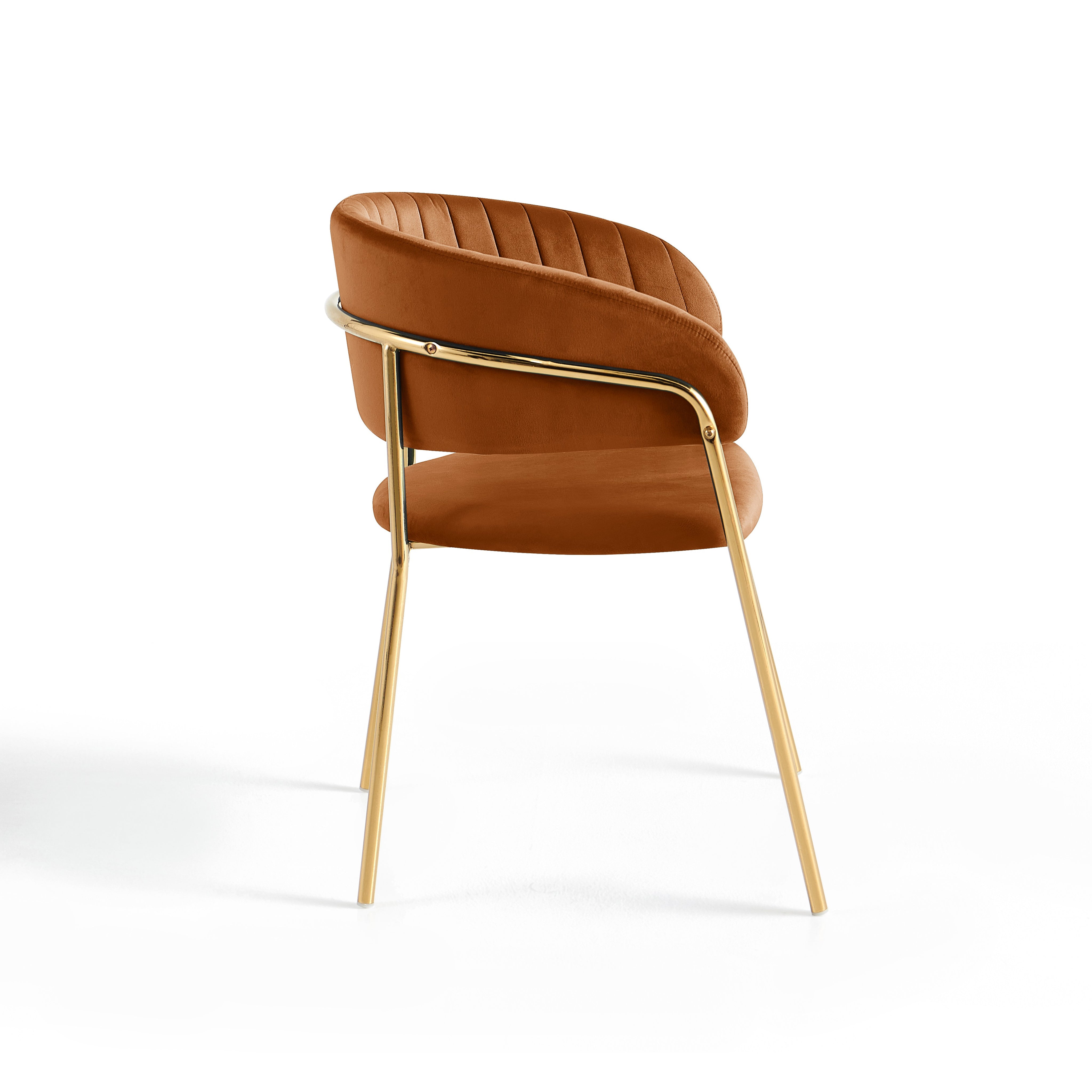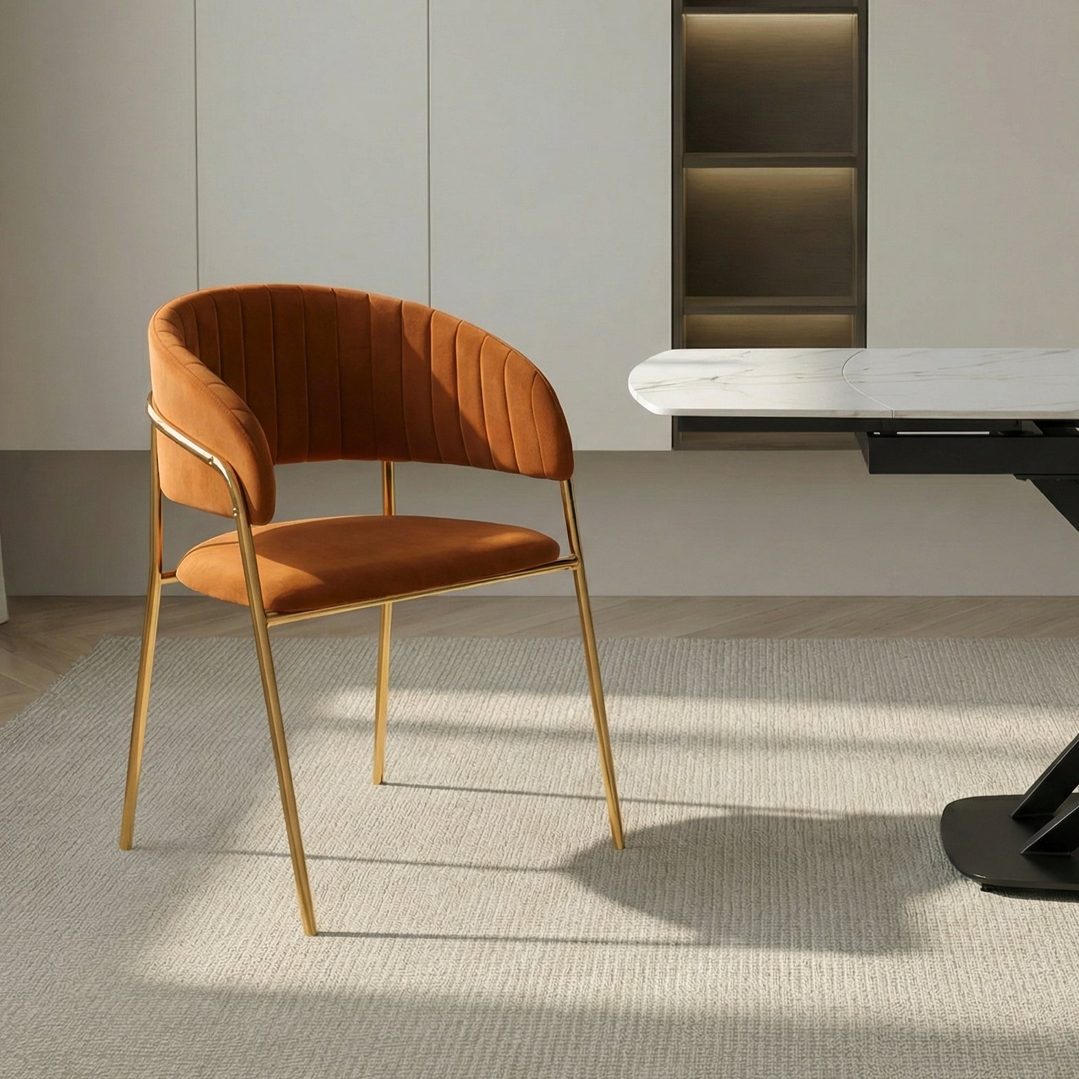 Krzesło 331 to eleganckie krzesło do jadalni tapicerowane welurem w głębokim, beżowym kolorze, łączące nowoczesną formę z wyraźnym, luksusowym akcentem. Beżowy kolor tapicerki w połączeniu ze złotymi nogami nadaje meblowi stylowy, reprezentacyjny wygląd, który dobrze odnajduje się w nowoczesnych i eleganckich wnętrzach.