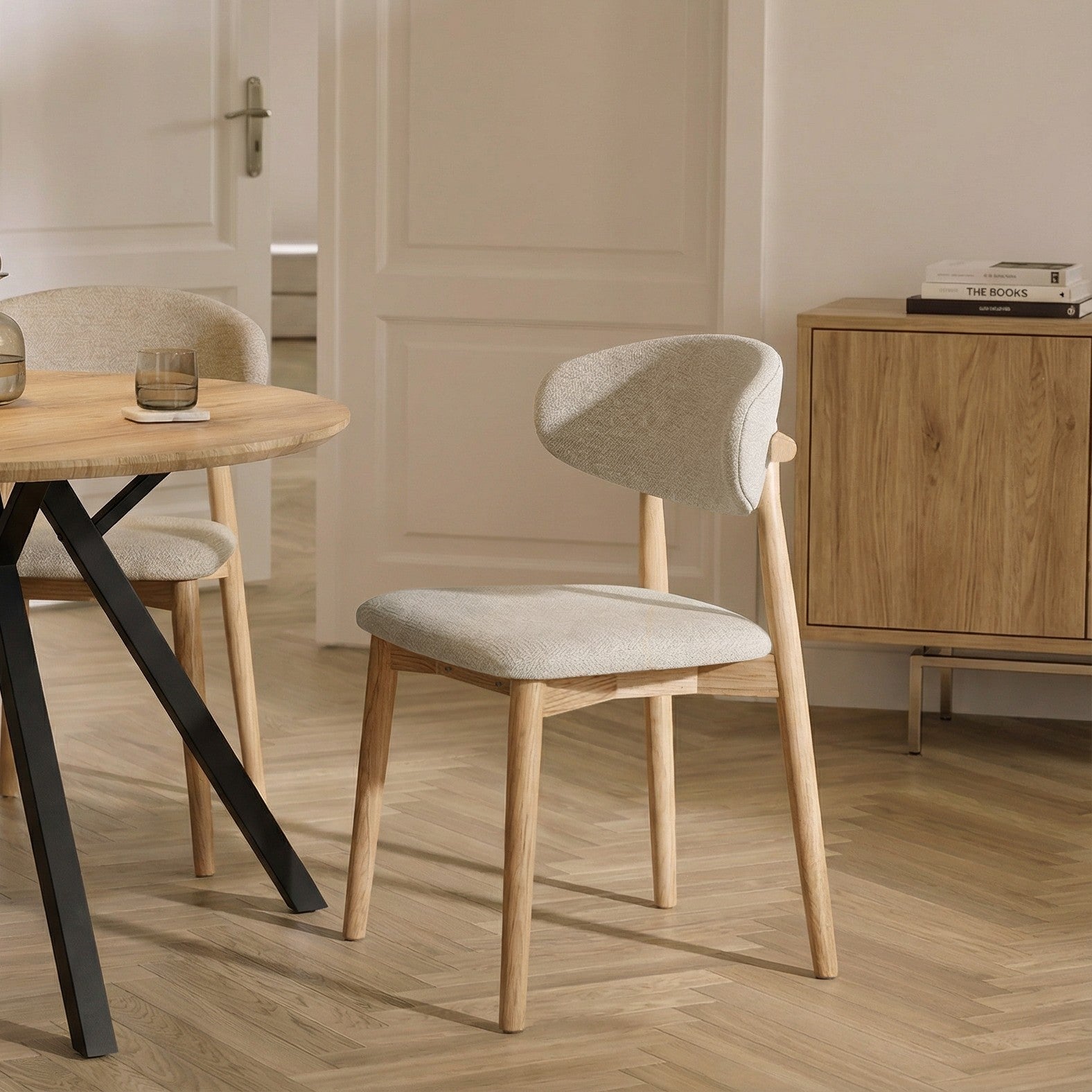 - Krzesło Naturalne Drewniane W Kolorze Dębu Tapicerowane Stylowe HSC2506