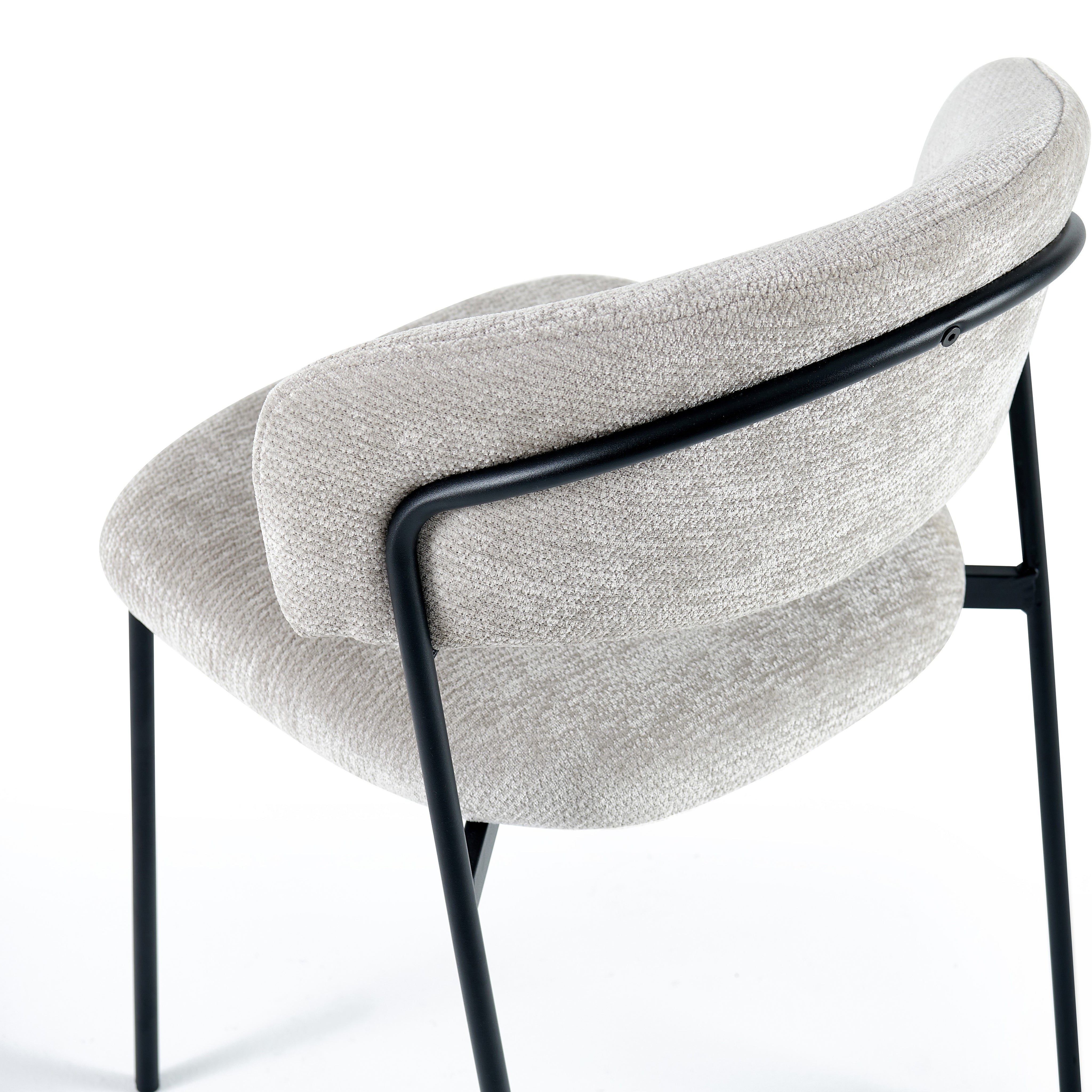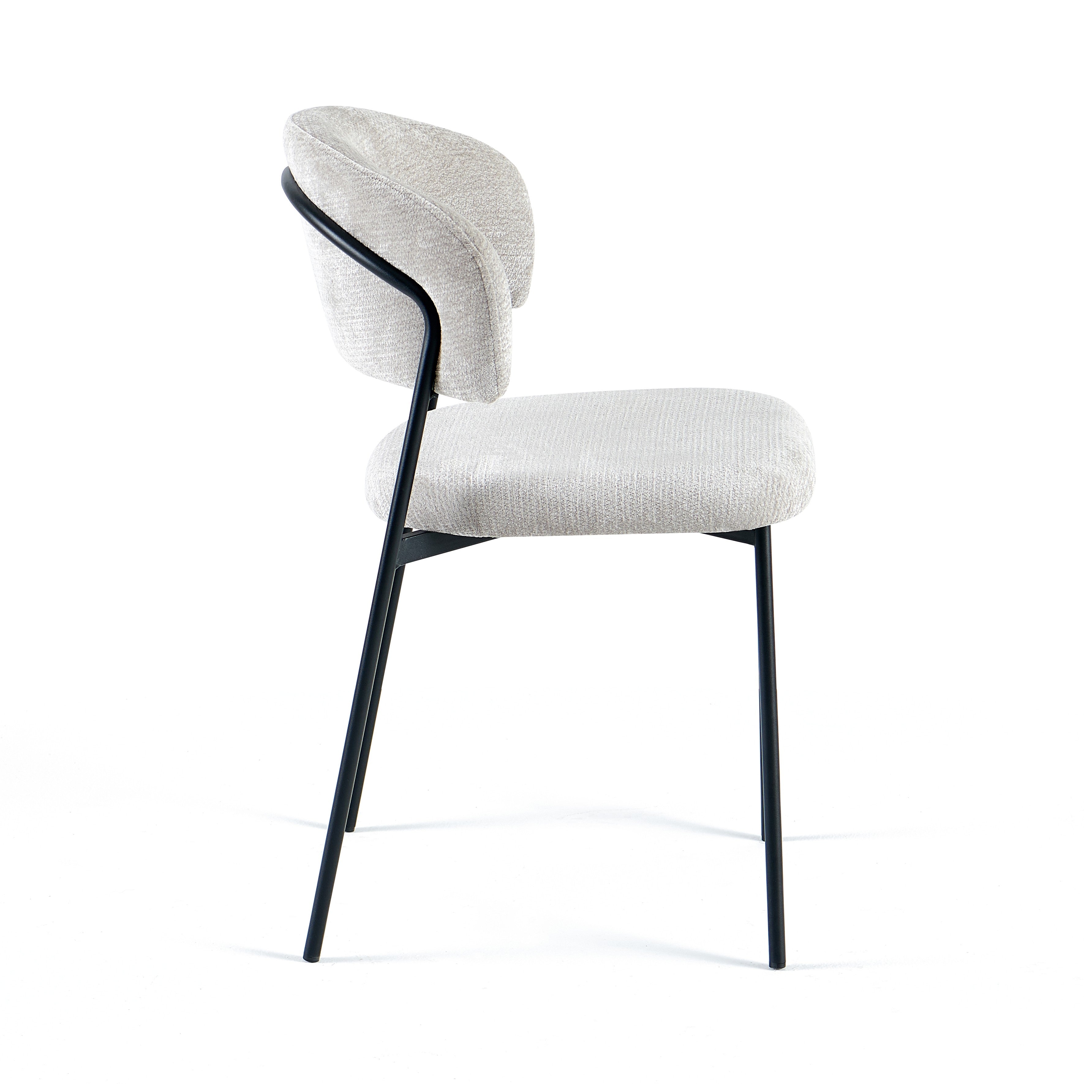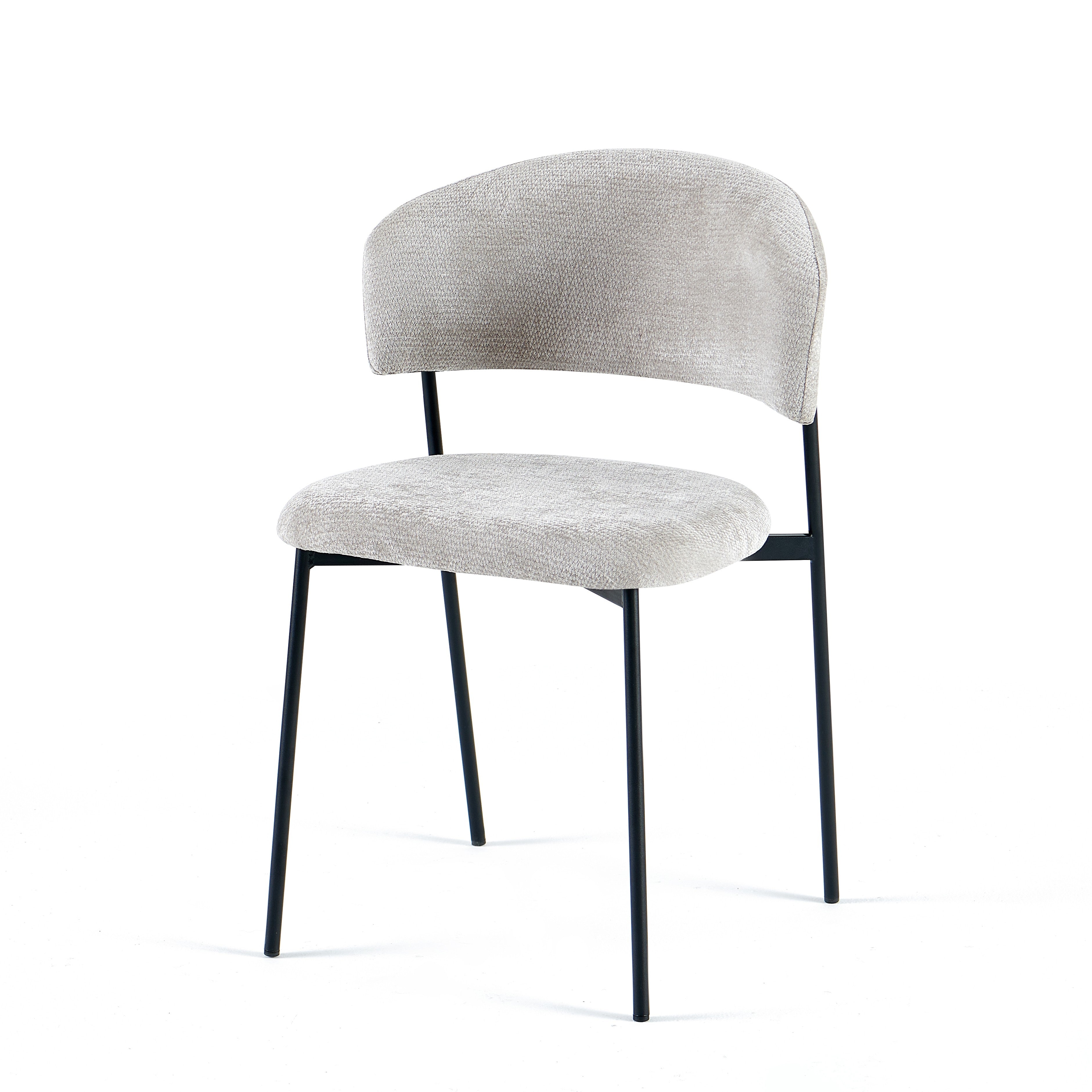Grube, miękkie siedzisko zapewnia komfort nawet podczas dłuższego siedzenia, a stabilna konstrukcja z czarnymi metalowymi nogami sprawia, że krzesło świetnie sprawdzi się w jadalni, kuchni, salonie, biurze lub przestrzeniach komercyjnych. Jasnoszary kolor nadaje wnętrzu świeżości i jest wyjątkowo łatwy do łączenia z innymi barwami.