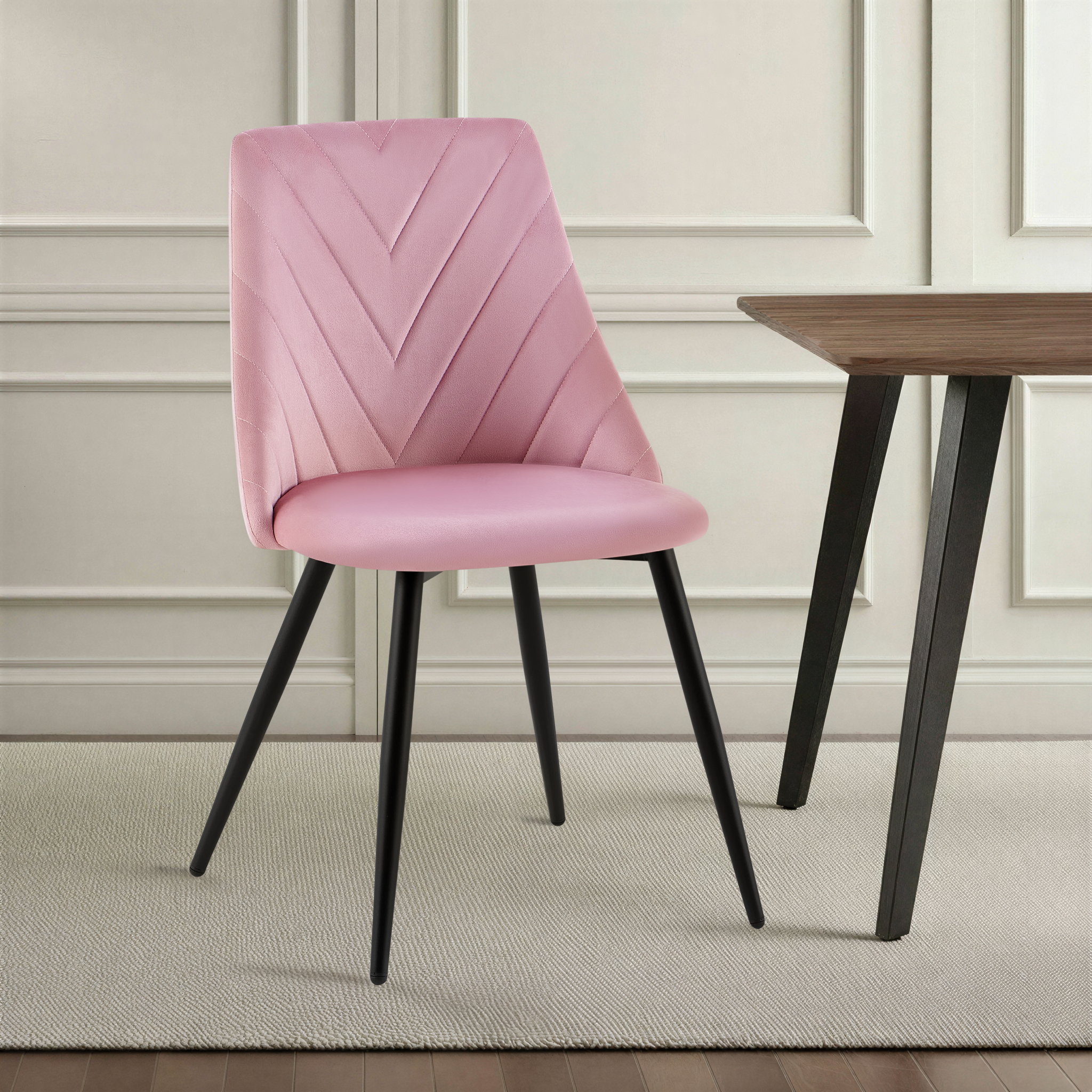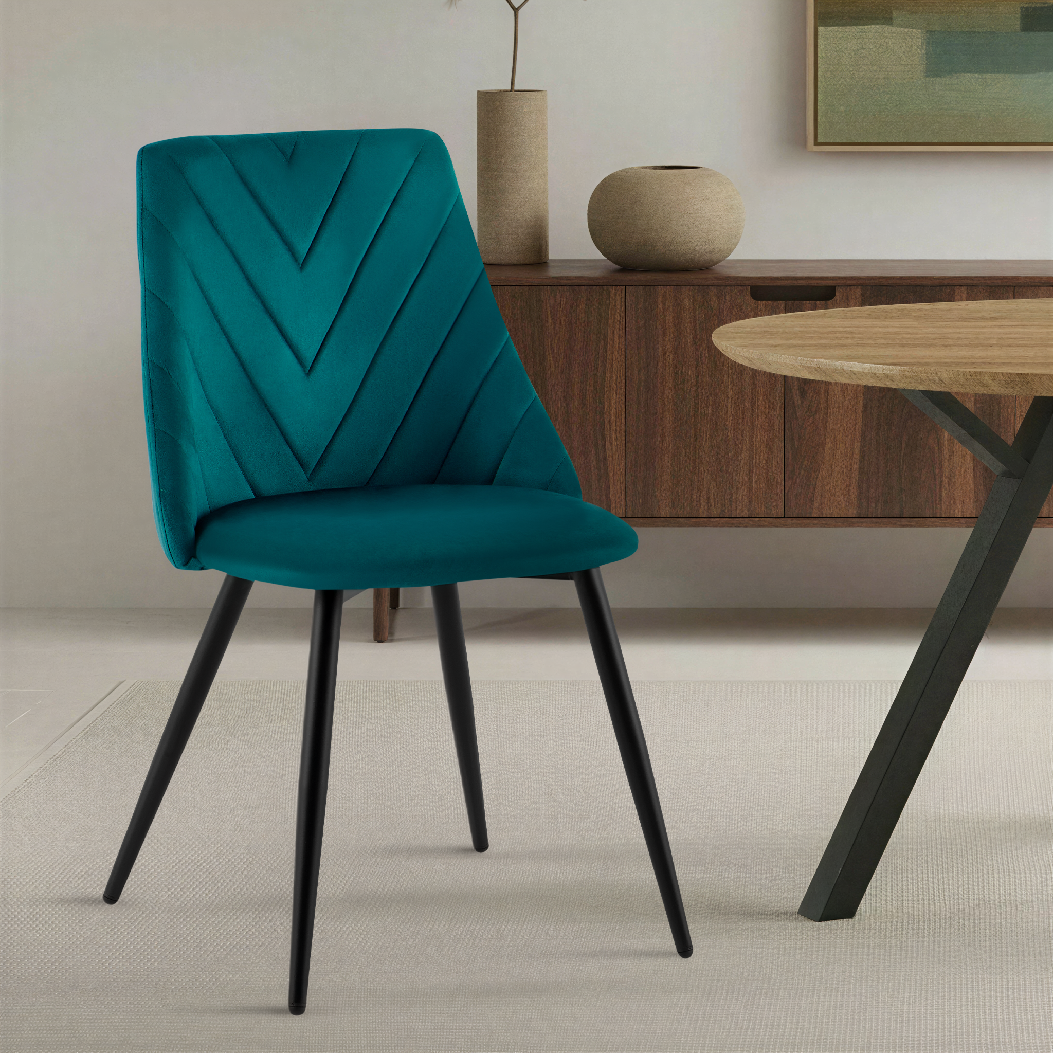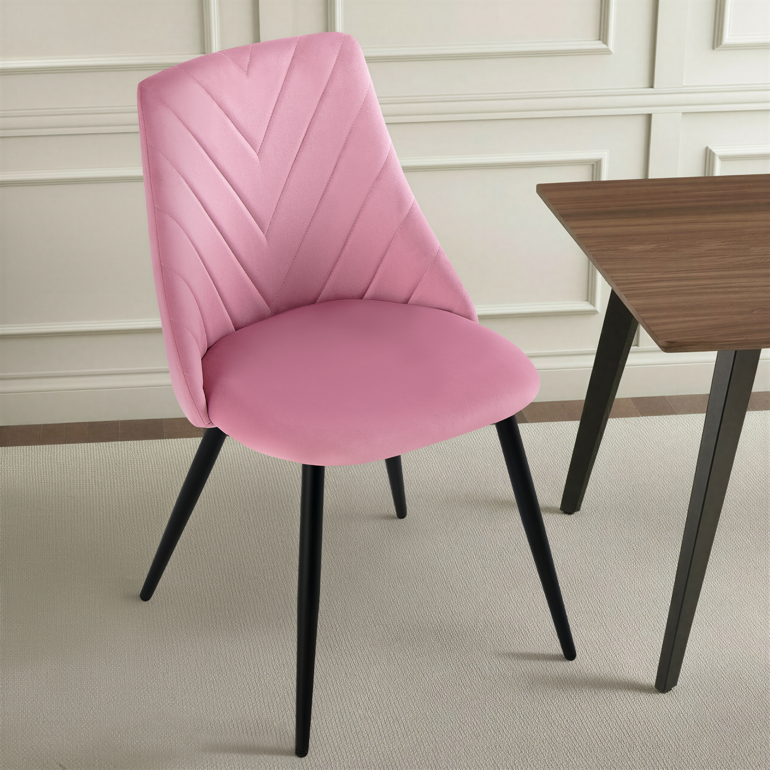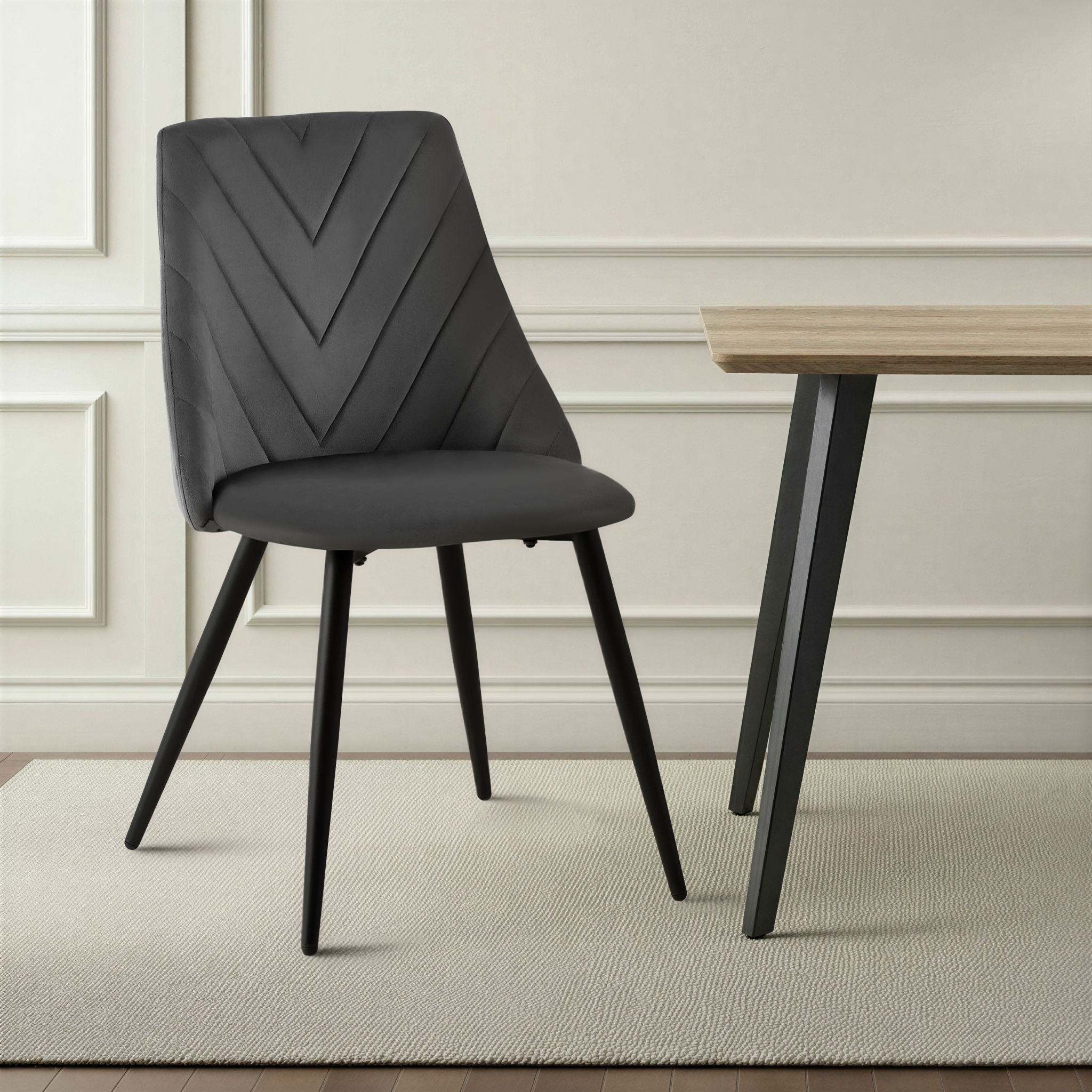 Krzesło Zephyr w odcieniu czarnym to propozycja dla wnętrz pełnych lekkości i elegancji. Idealne do jadalni, kawiarni, salonów beauty lub aranżacji w stylu nowoczesnym, boho czy glam. Aksamitna tapicerka w połączeniu z przeszyciem w jodełkę nadaje krzesłu wyjątkową miękkość wizualną i dekoracyjność. Zaokrąglone oparcie, sprężyste siedzisko oraz stabilne metalowe nogi malowane proszkowo sprawiają, że Zephyr doskonale sprawdzi się w jadalni, salonie, kawiarni lub nowoczesnych wnętrzach typu studio.