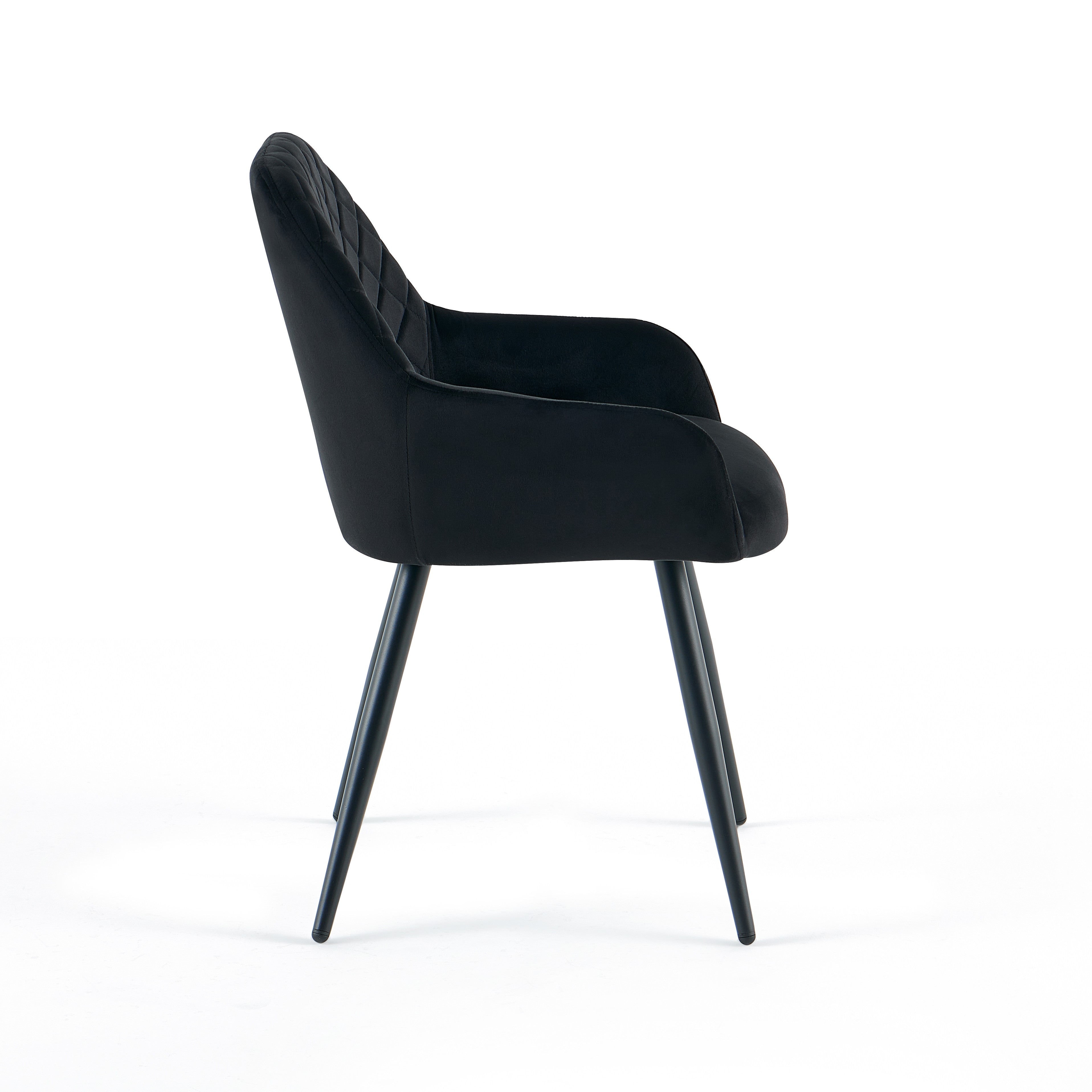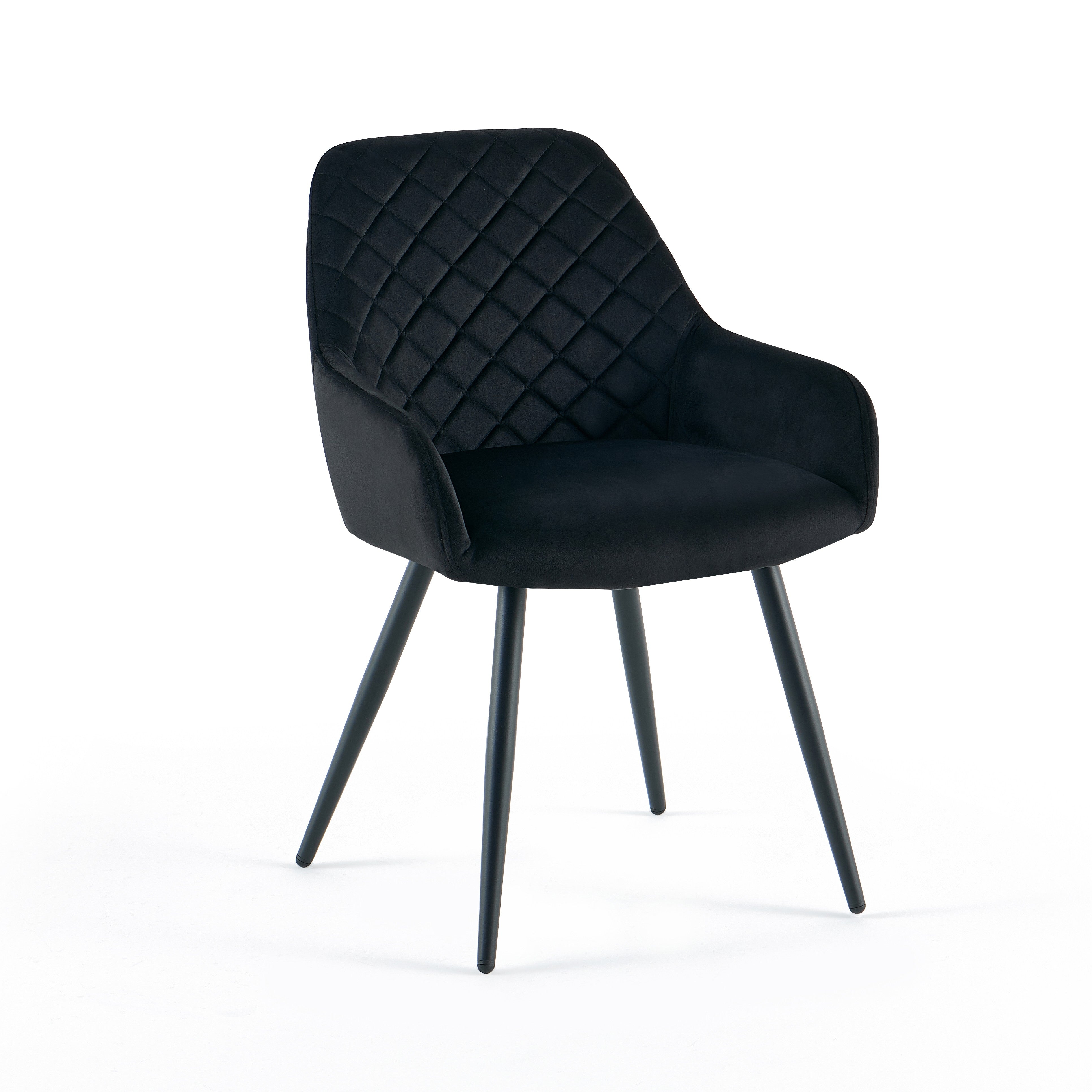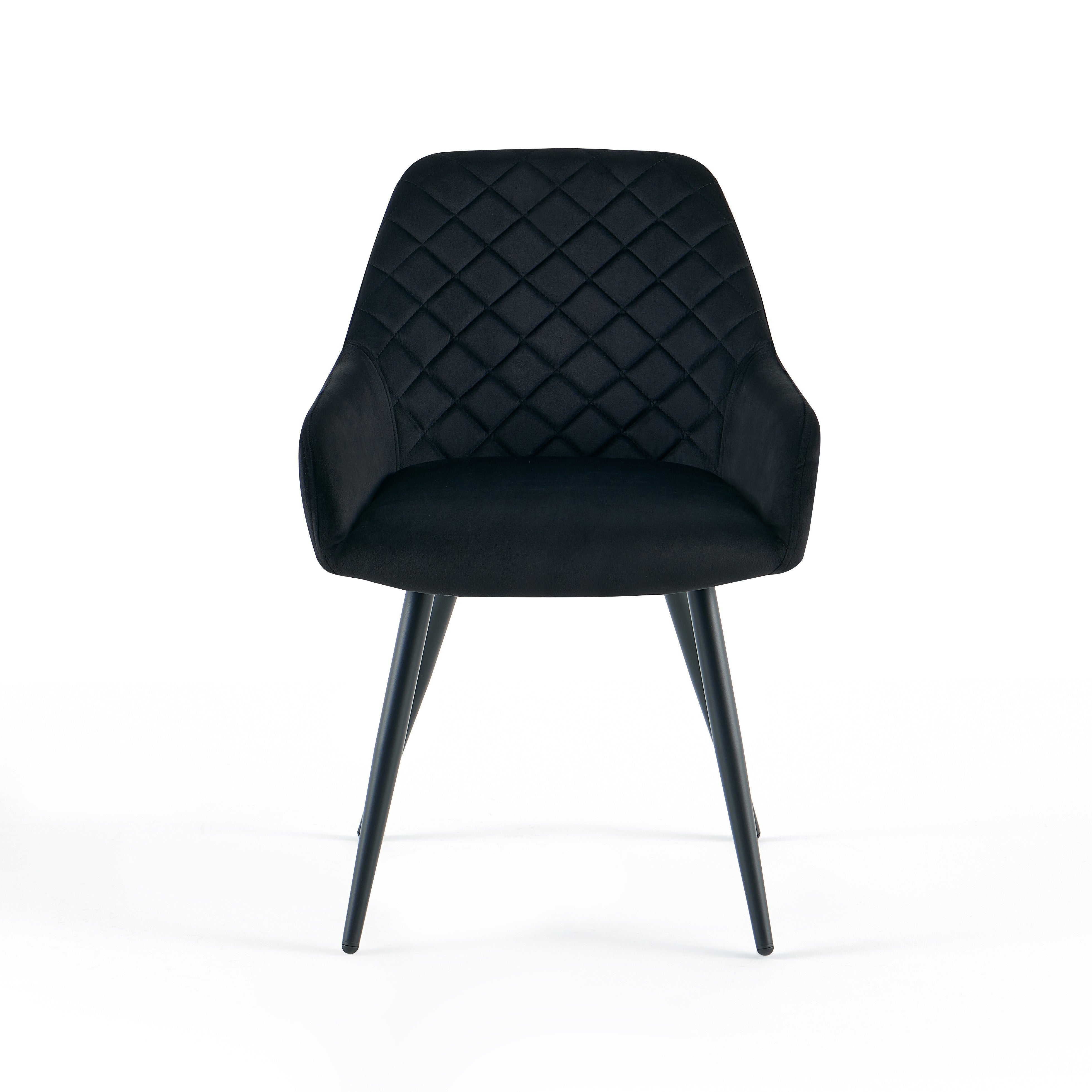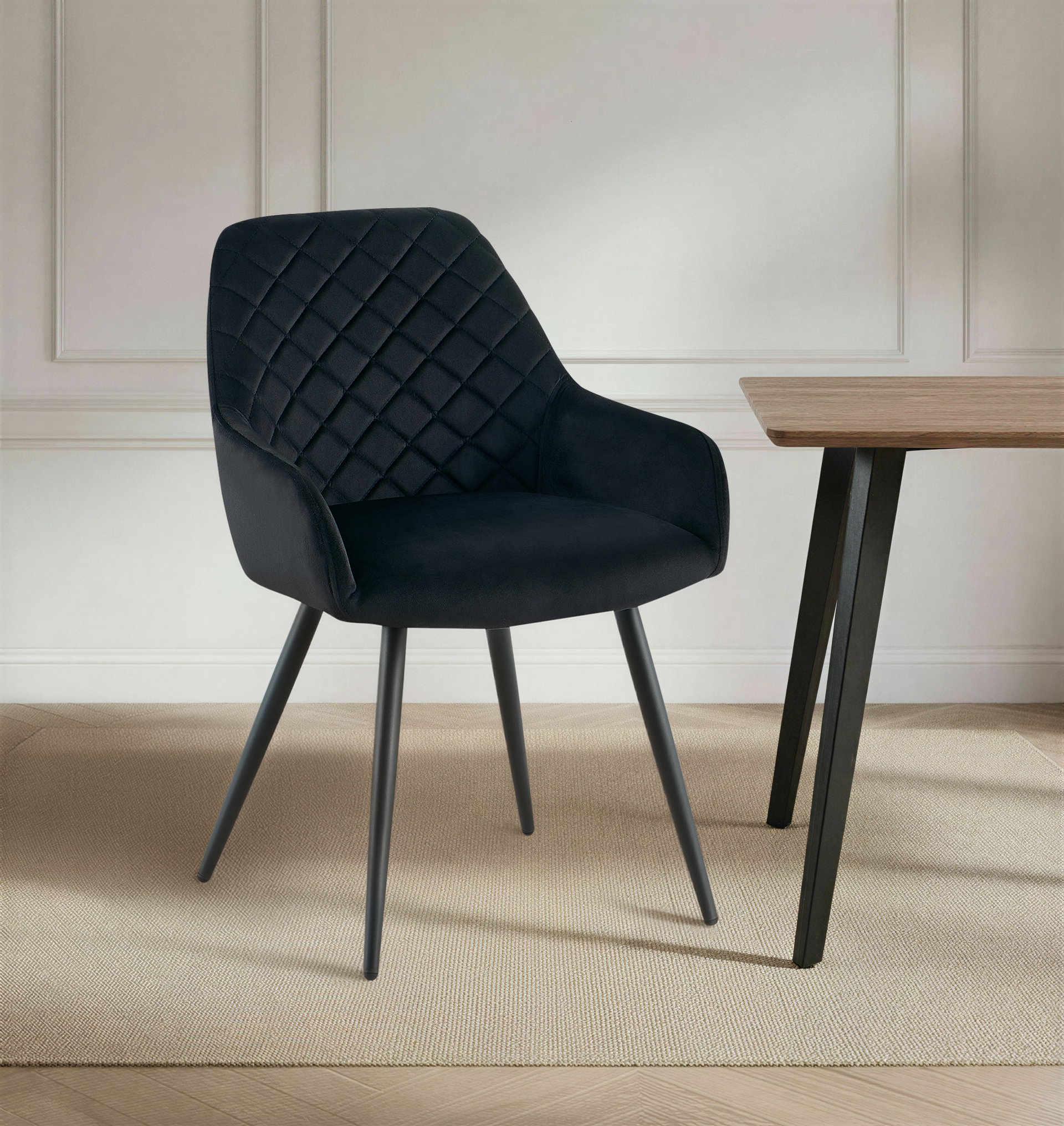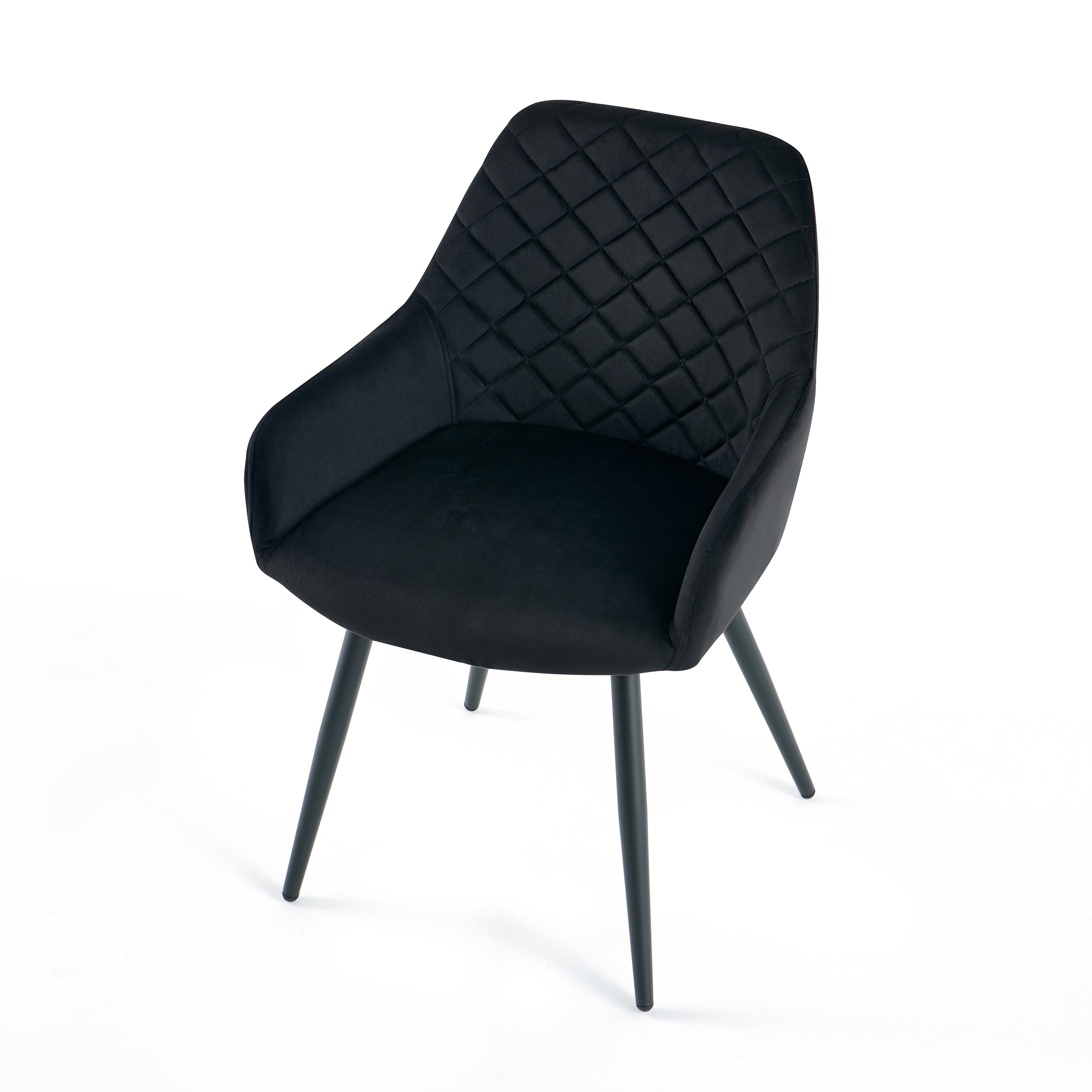 Krzesło Do Jadalni Welurowe Czarne Pikowane Nogi Stalowe Malowane Opulence