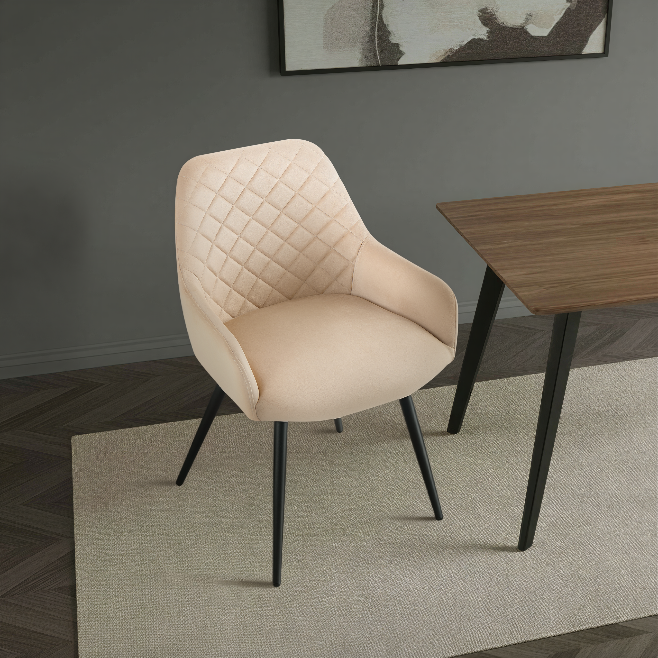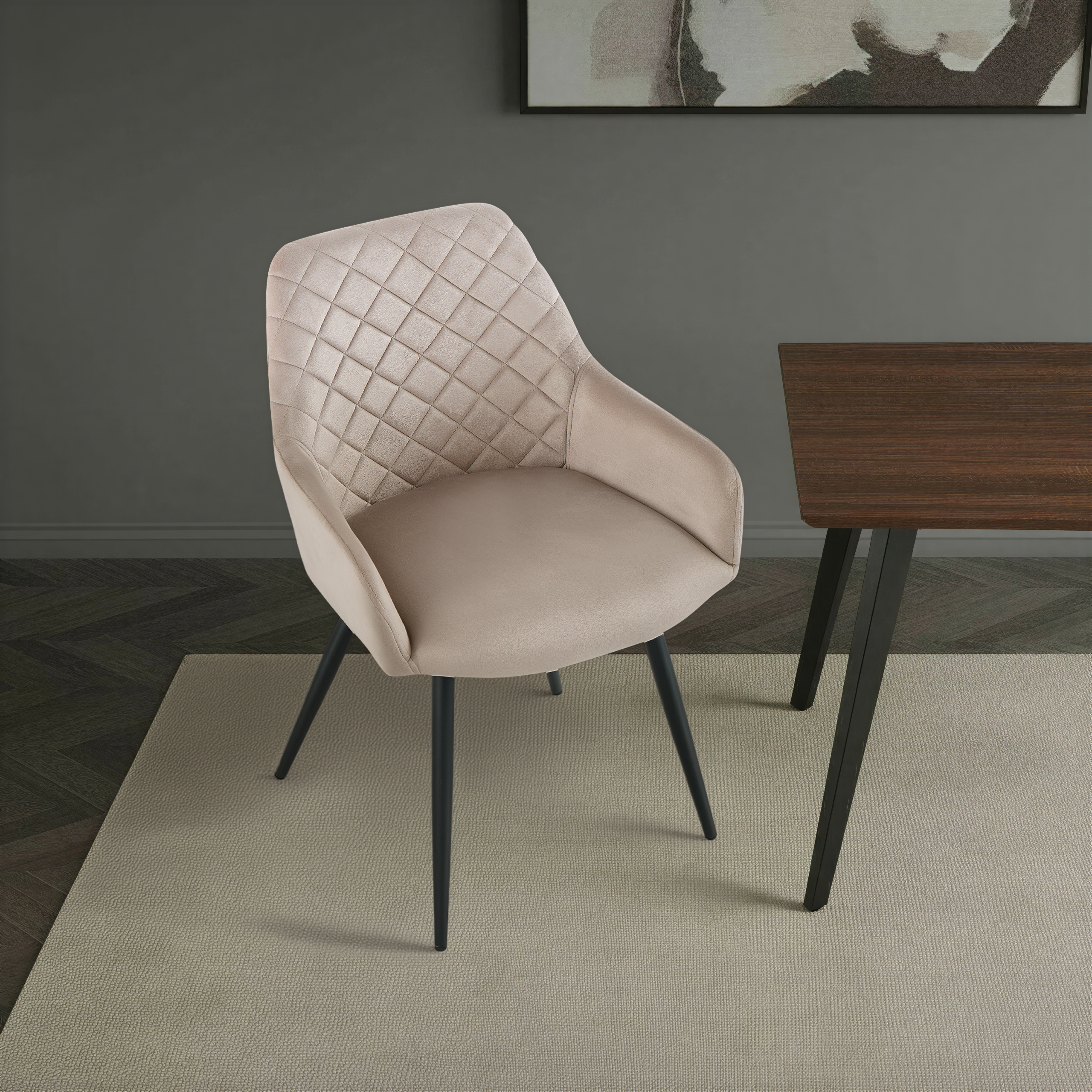 Krzesło Opulence w głębokim, czarnym kolorze to propozycja dla osób ceniących elegancję, wyrazisty styl i nowoczesne wykończenia. Aksamitna tapicerka o subtelnym połysku nadaje wnętrzu luksusowego charakteru, a pikowane oparcie w romby sprawia, że krzesło staje się efektowną dekoracją przestrzeni. Czerń podkreśla nowoczesny wygląd modelu i świetnie komponuje się zarówno z jasnymi, jak i ciemnymi aranżacjami.