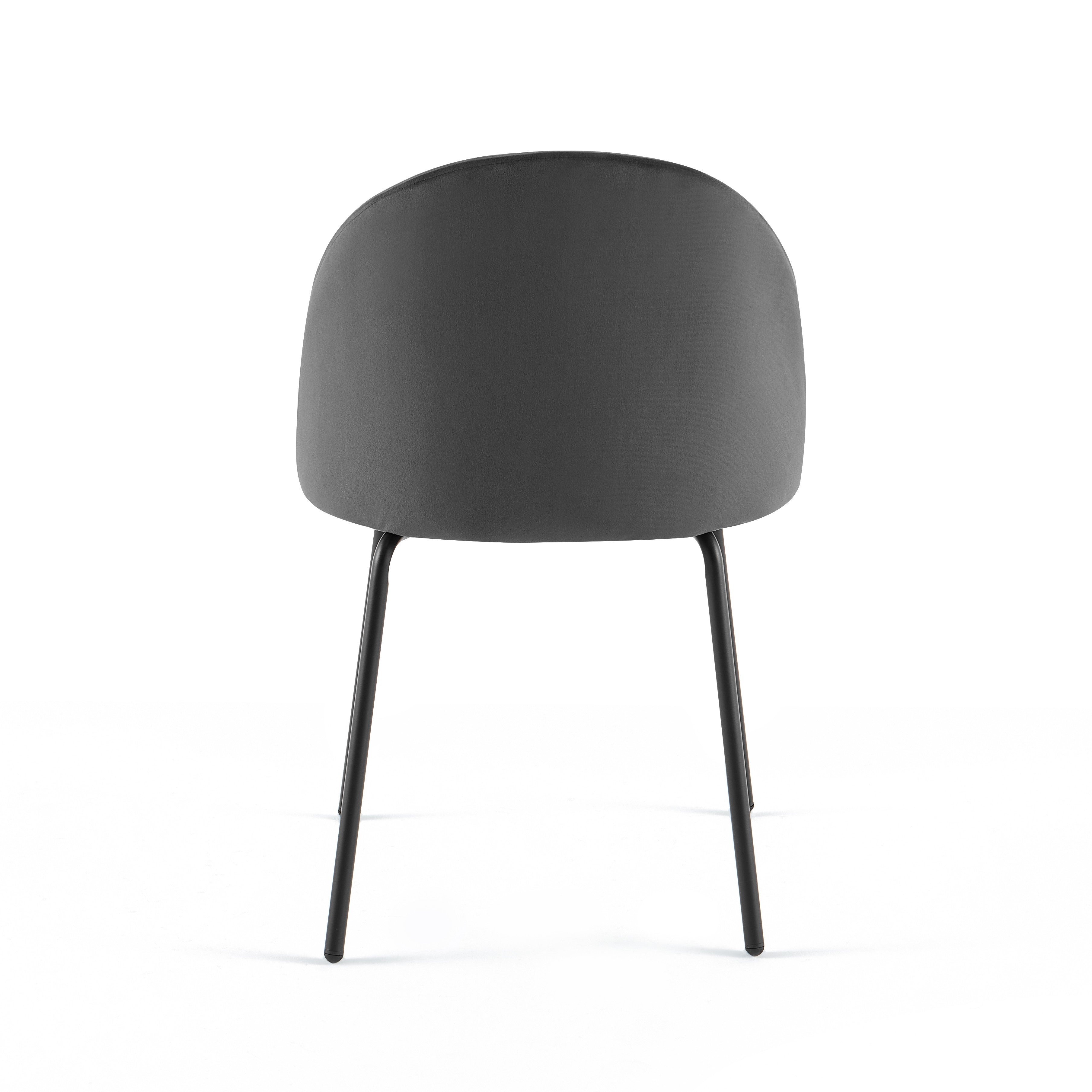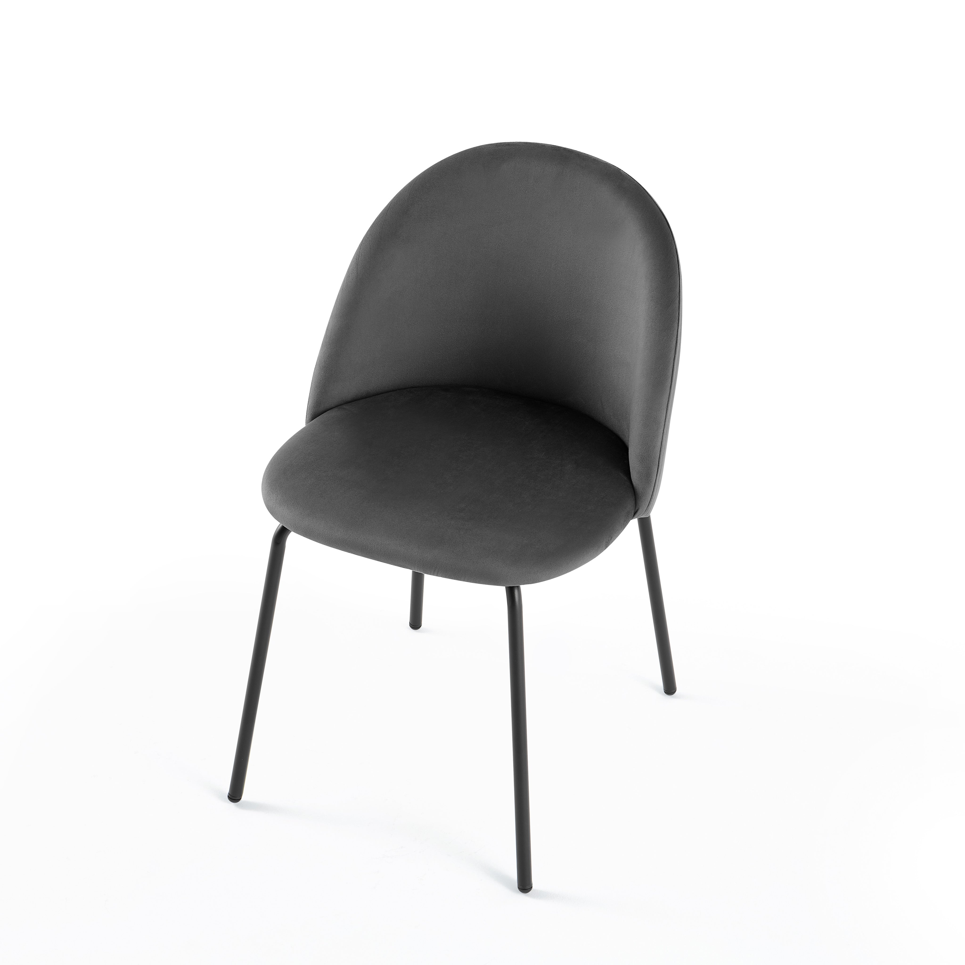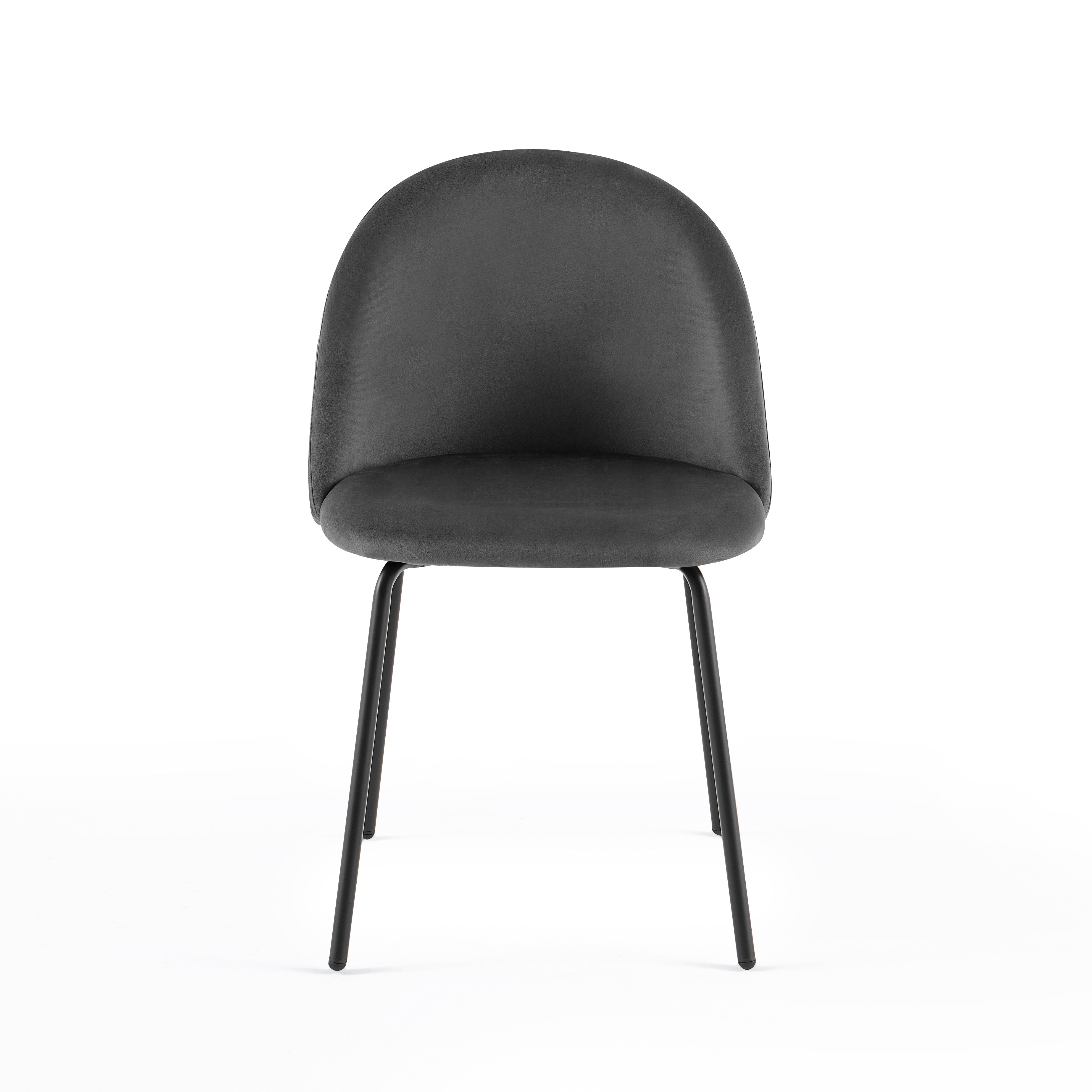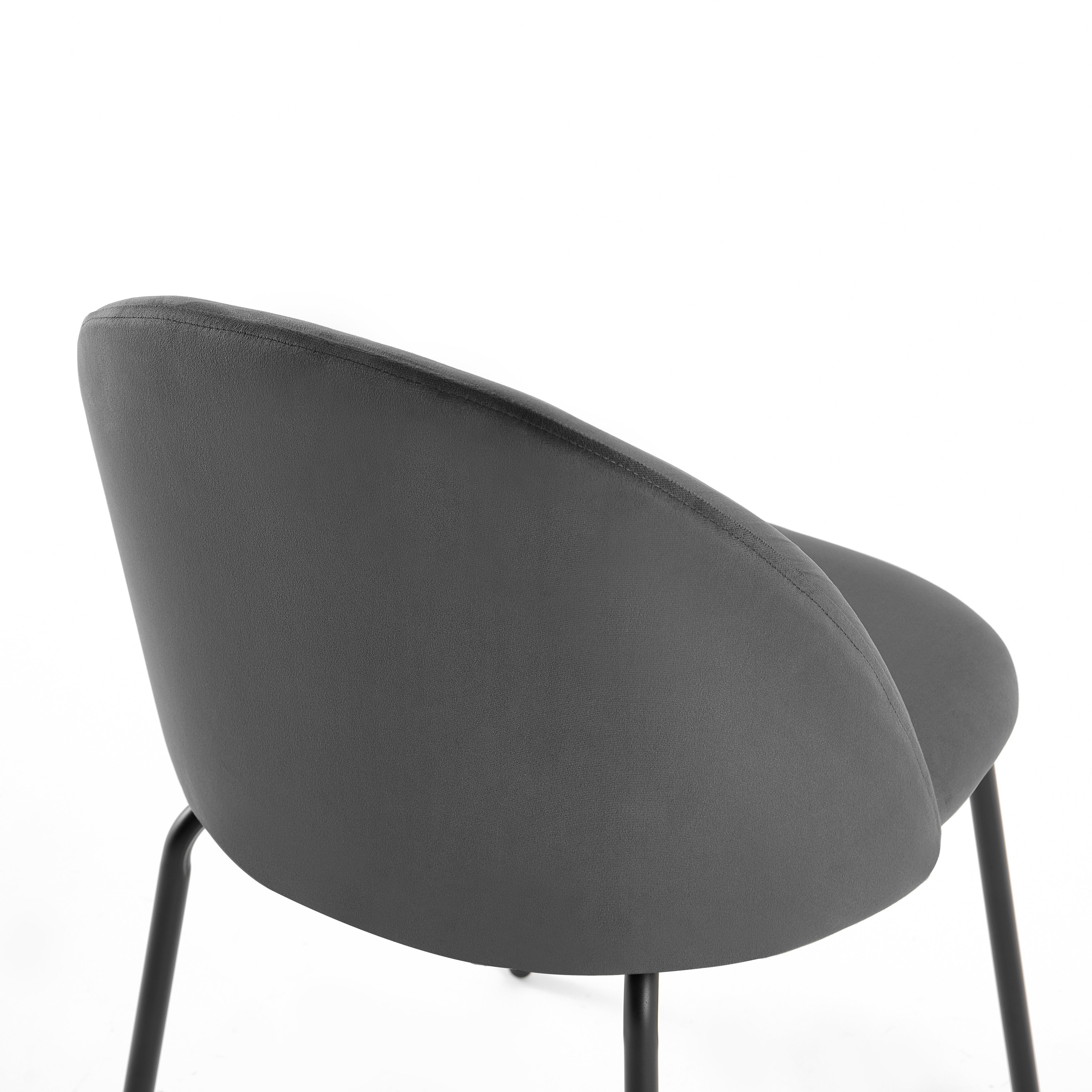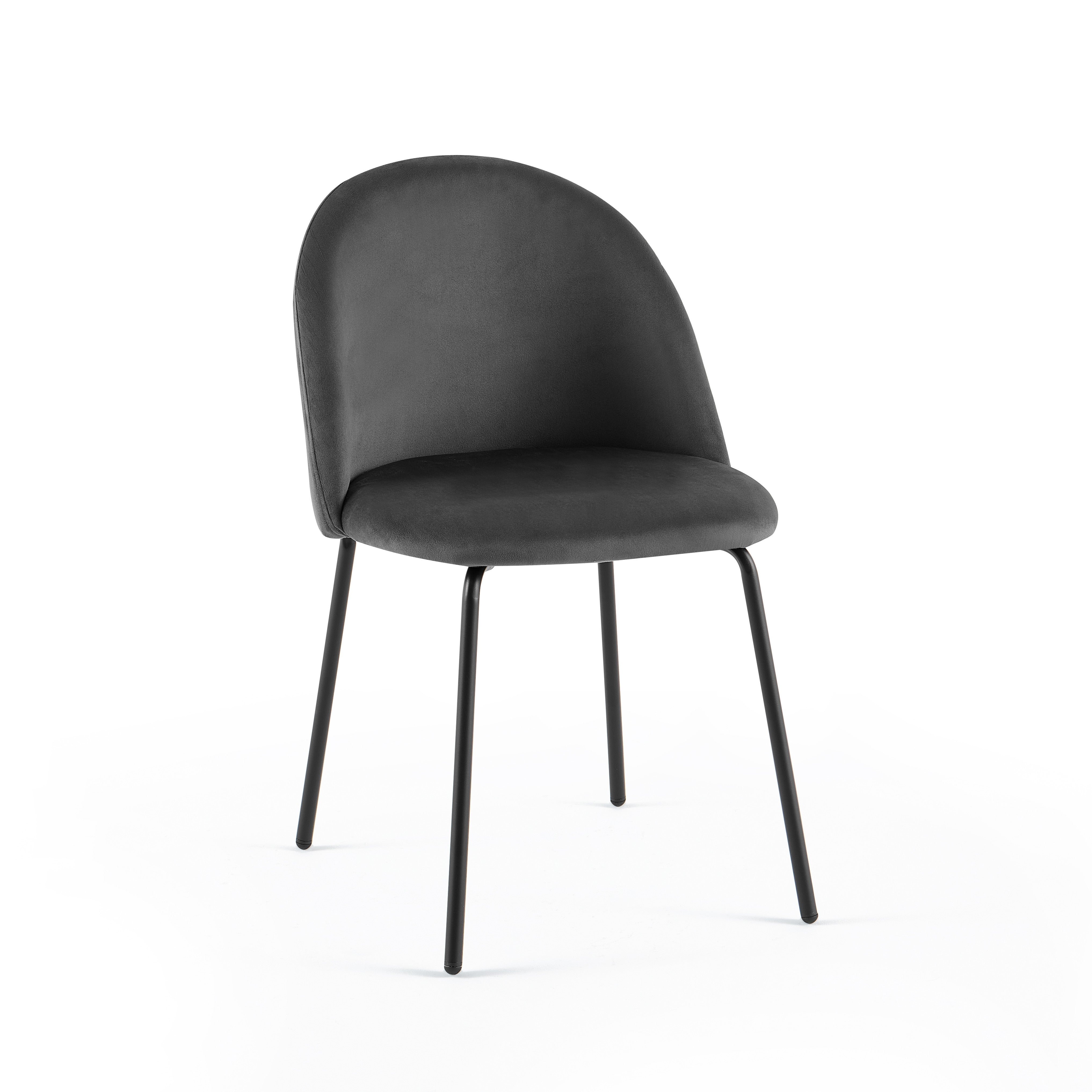 Krzesło Ethereal to idealny wybór dla osób ceniących nowoczesny styl połączony z subtelną elegancją. Miękka, wysokiej jakości tapicerka welurowa w szarym kolorze o gładkiej, aksamitnej strukturze otula zaokrąglone oparcie i siedzisko, tworząc spójną, harmonijną formę. Delikatne krzywizny, wygodne podparcie oraz czarne nogi stalowe malowane proszkowo sprawiają, że Ethereal doskonale sprawdzi się w jadalni, salonie, domowym biurze czy eleganckich przestrzeniach usługowych.