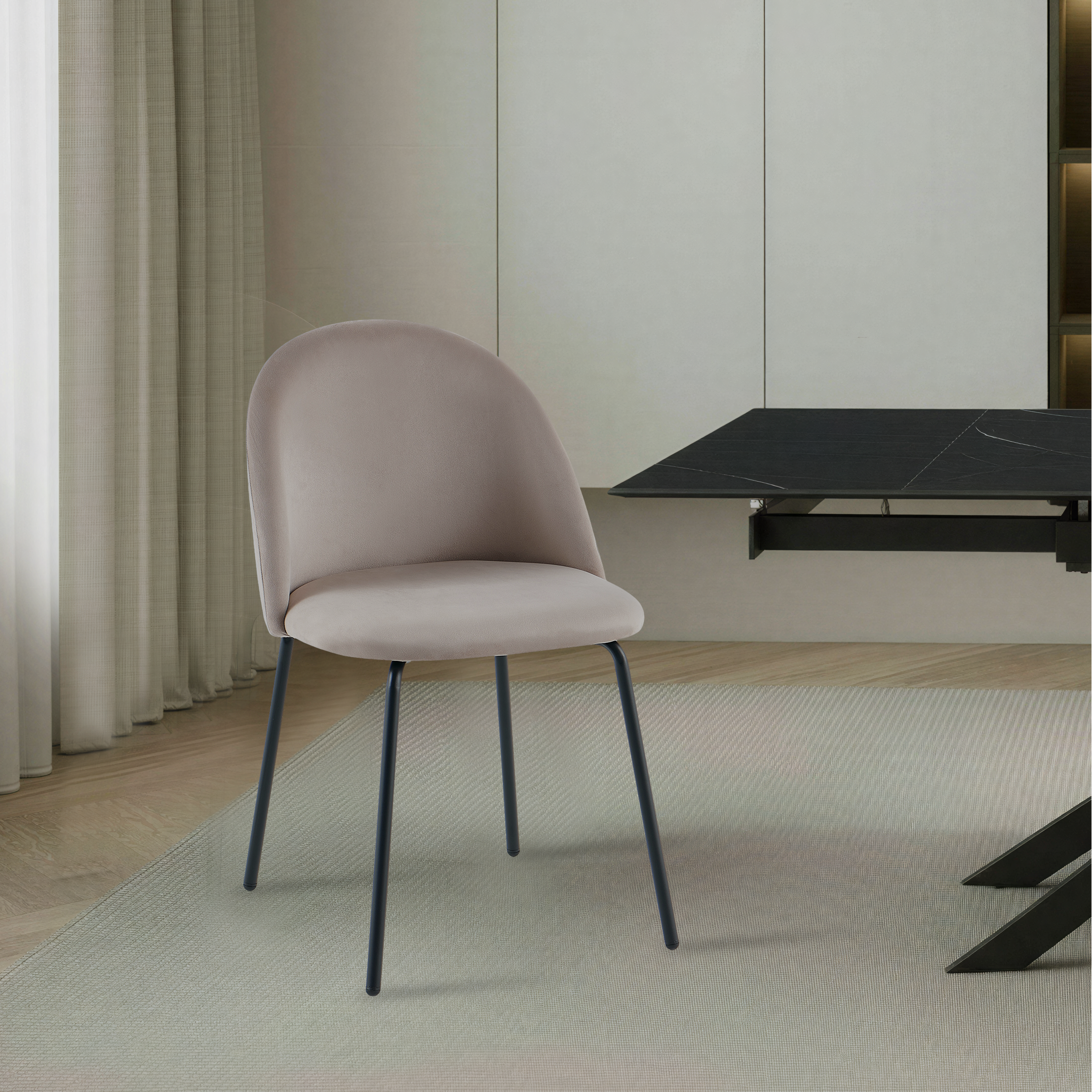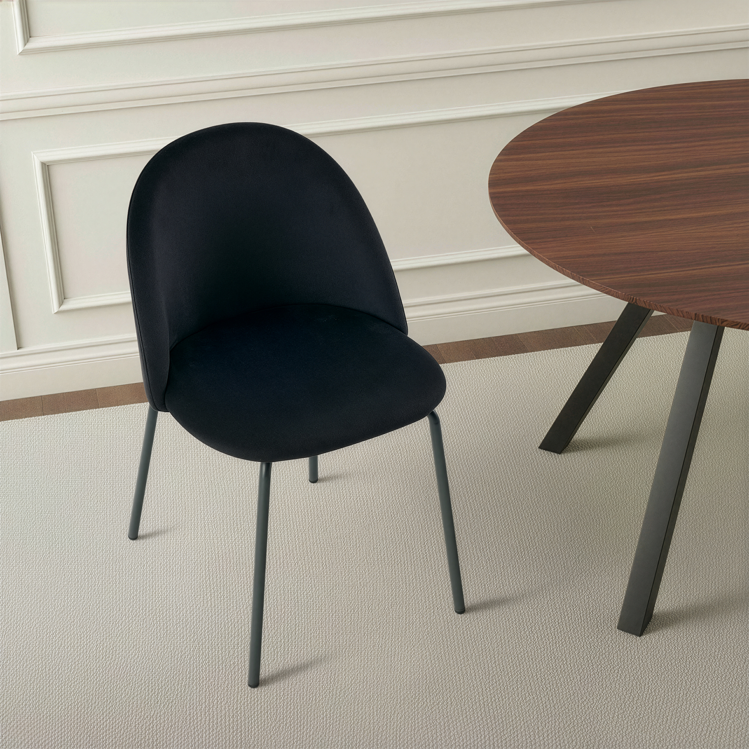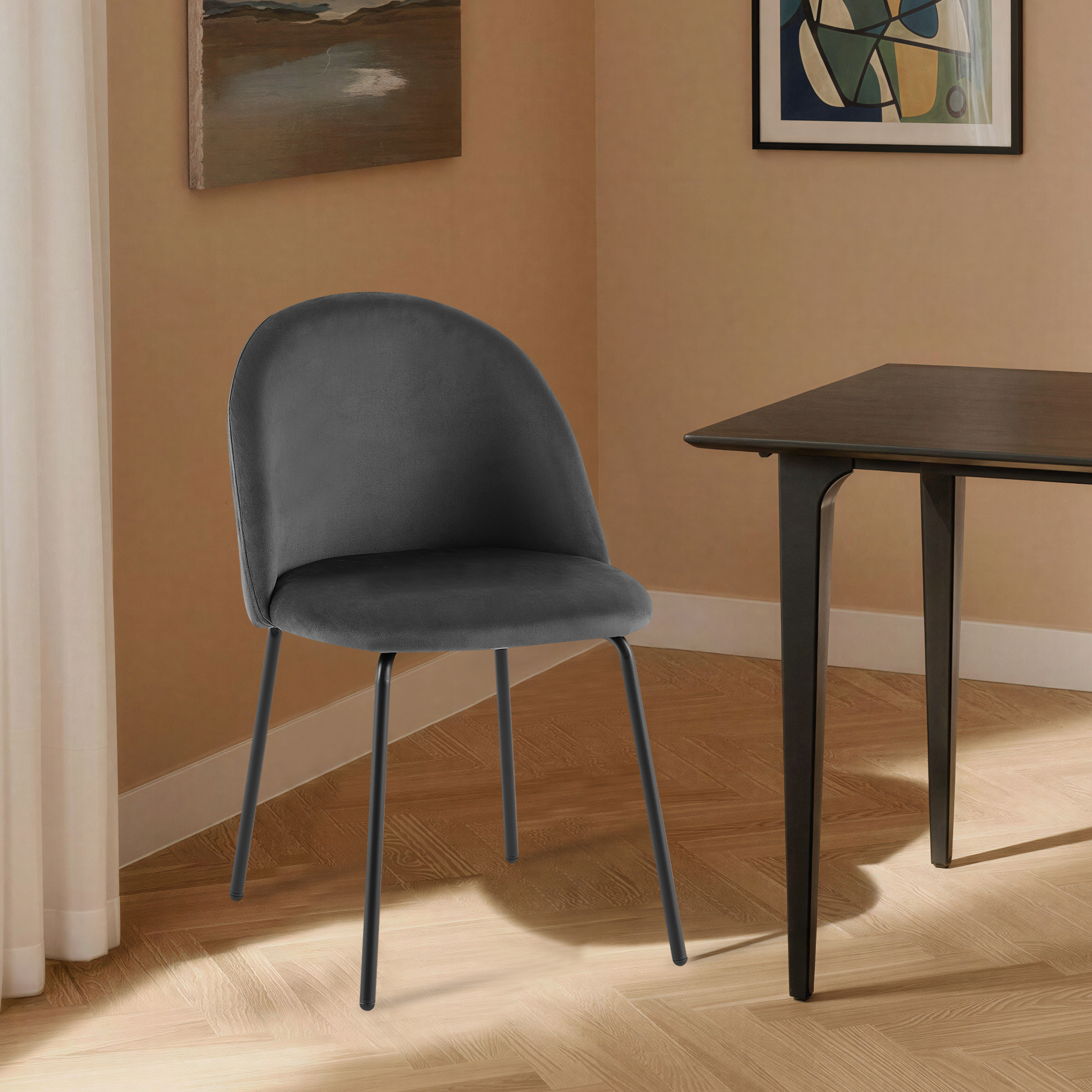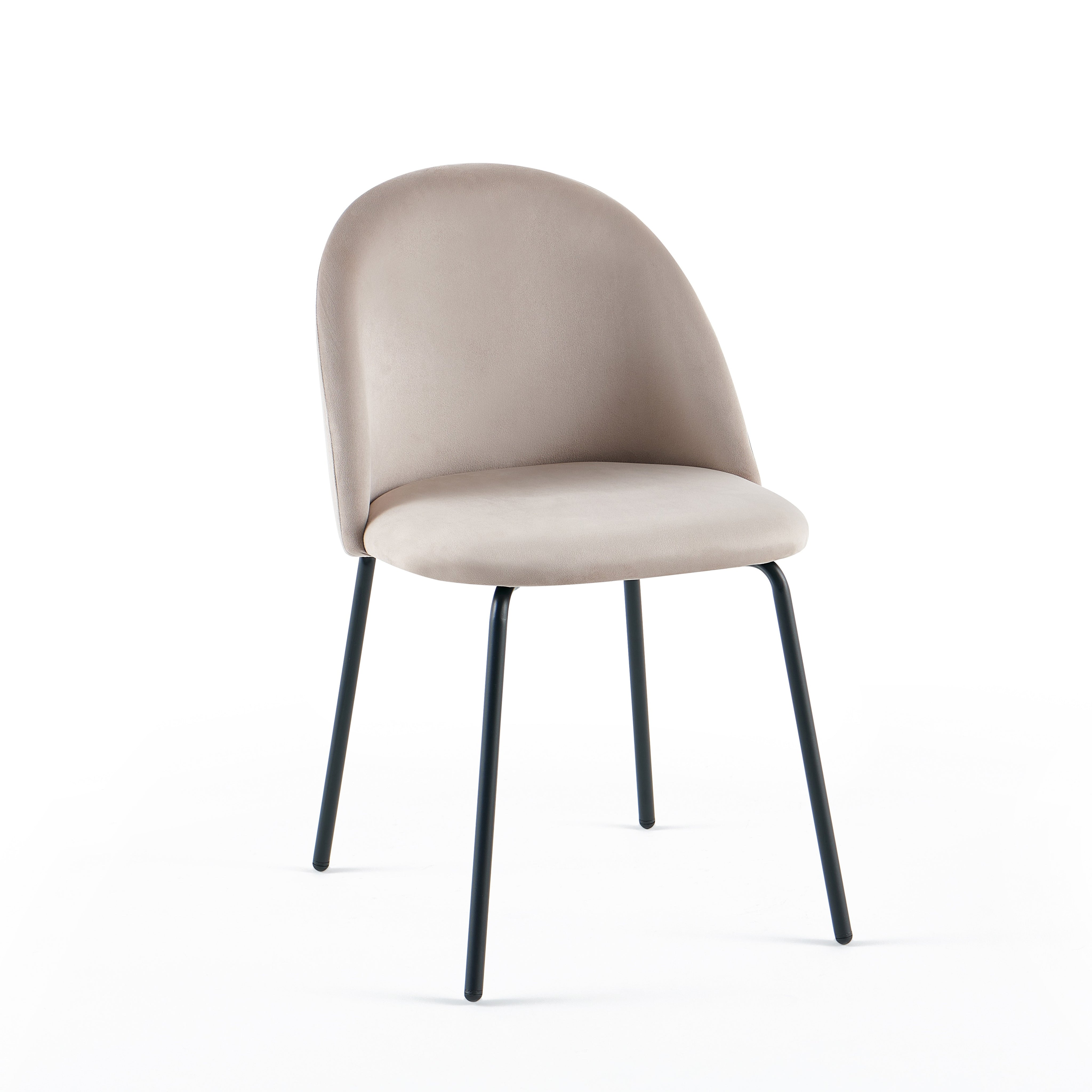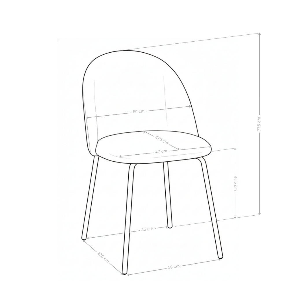 Krzesło Ethereal to idealny wybór dla osób ceniących nowoczesny styl połączony z subtelną elegancją. Miękka, wysokiej jakości tapicerka welurowa w szarym kolorze o gładkiej, aksamitnej strukturze otula zaokrąglone oparcie i siedzisko, tworząc spójną, harmonijną formę. Delikatne krzywizny, wygodne podparcie oraz czarne nogi stalowe malowane proszkowo sprawiają, że Ethereal doskonale sprawdzi się w jadalni, salonie, domowym biurze czy eleganckich przestrzeniach usługowych.