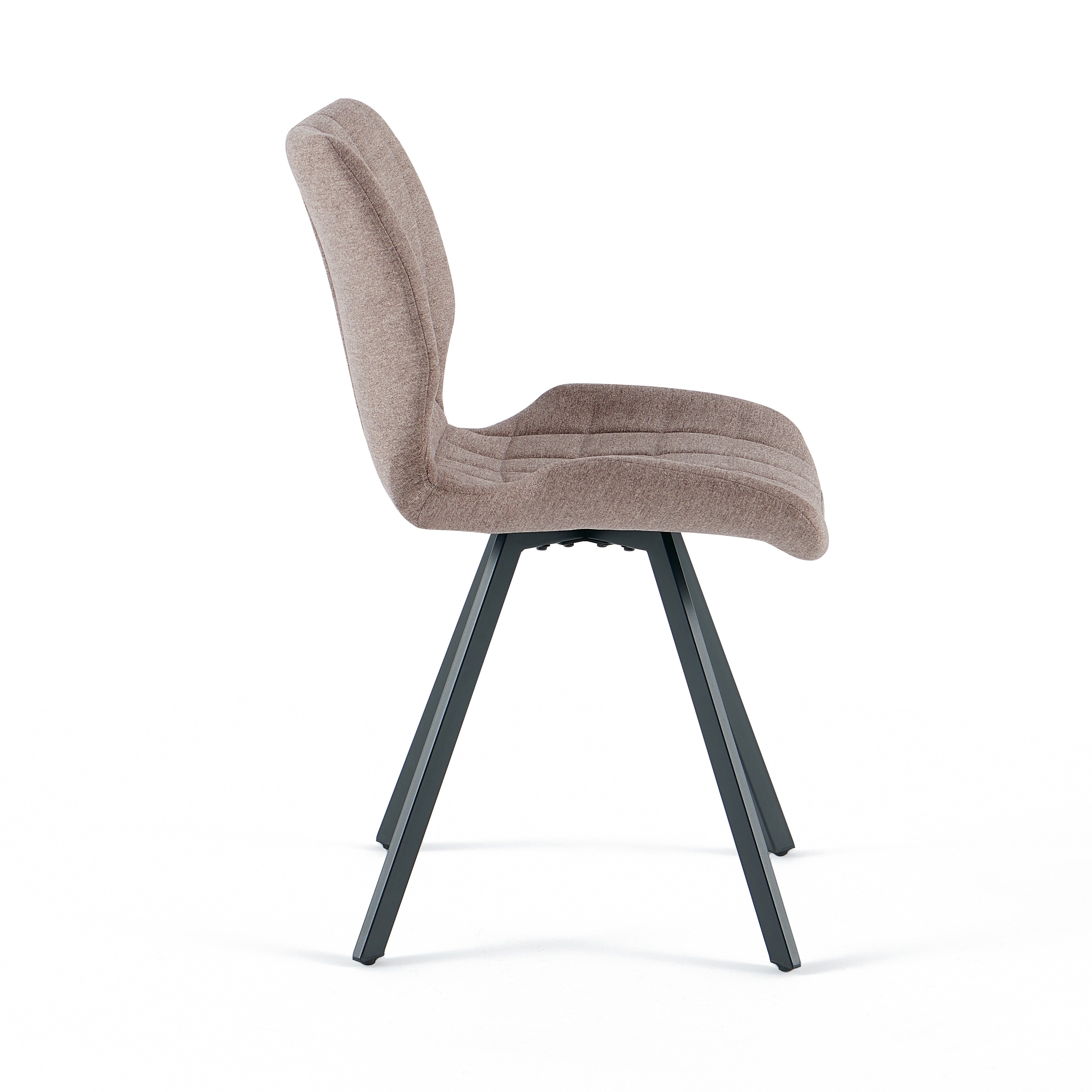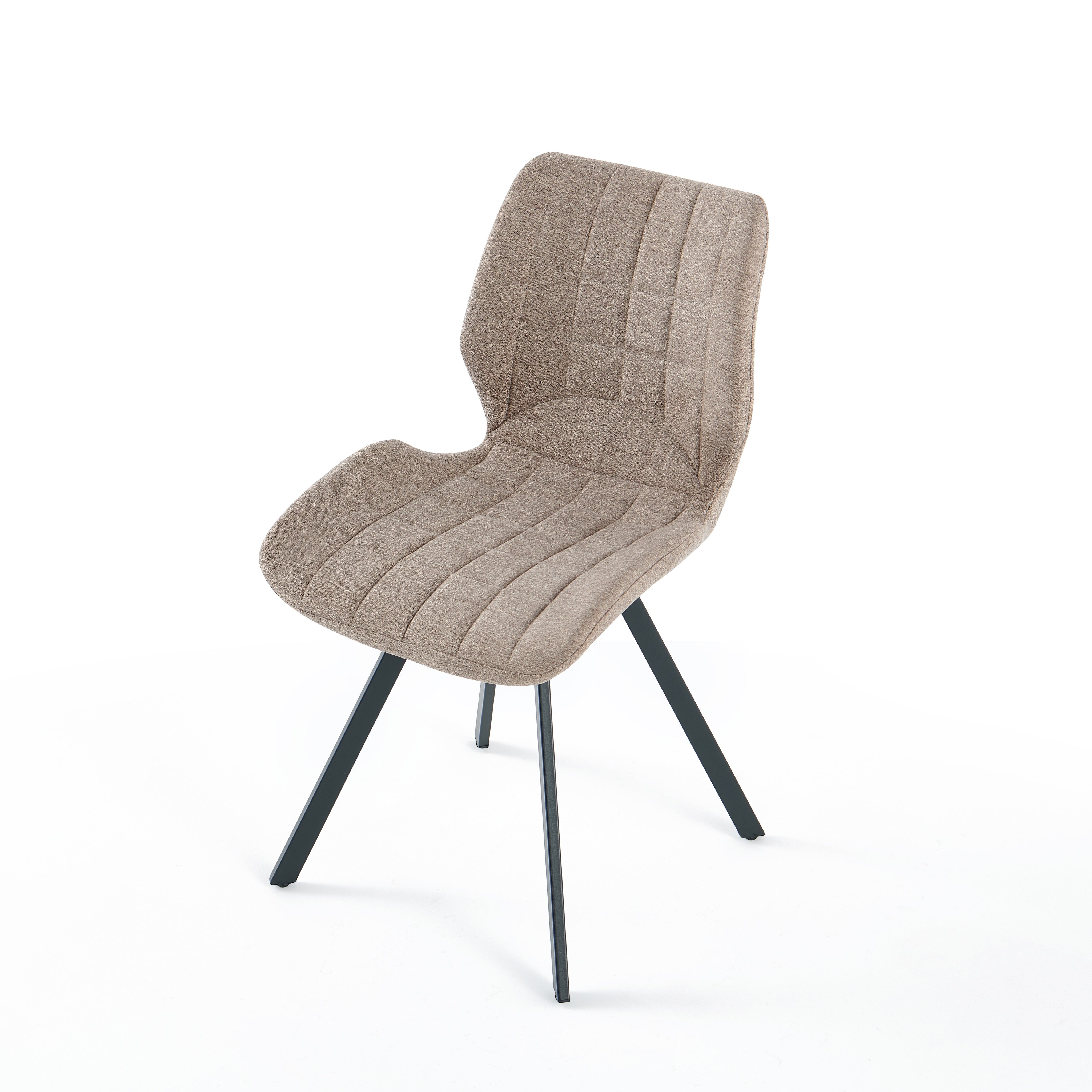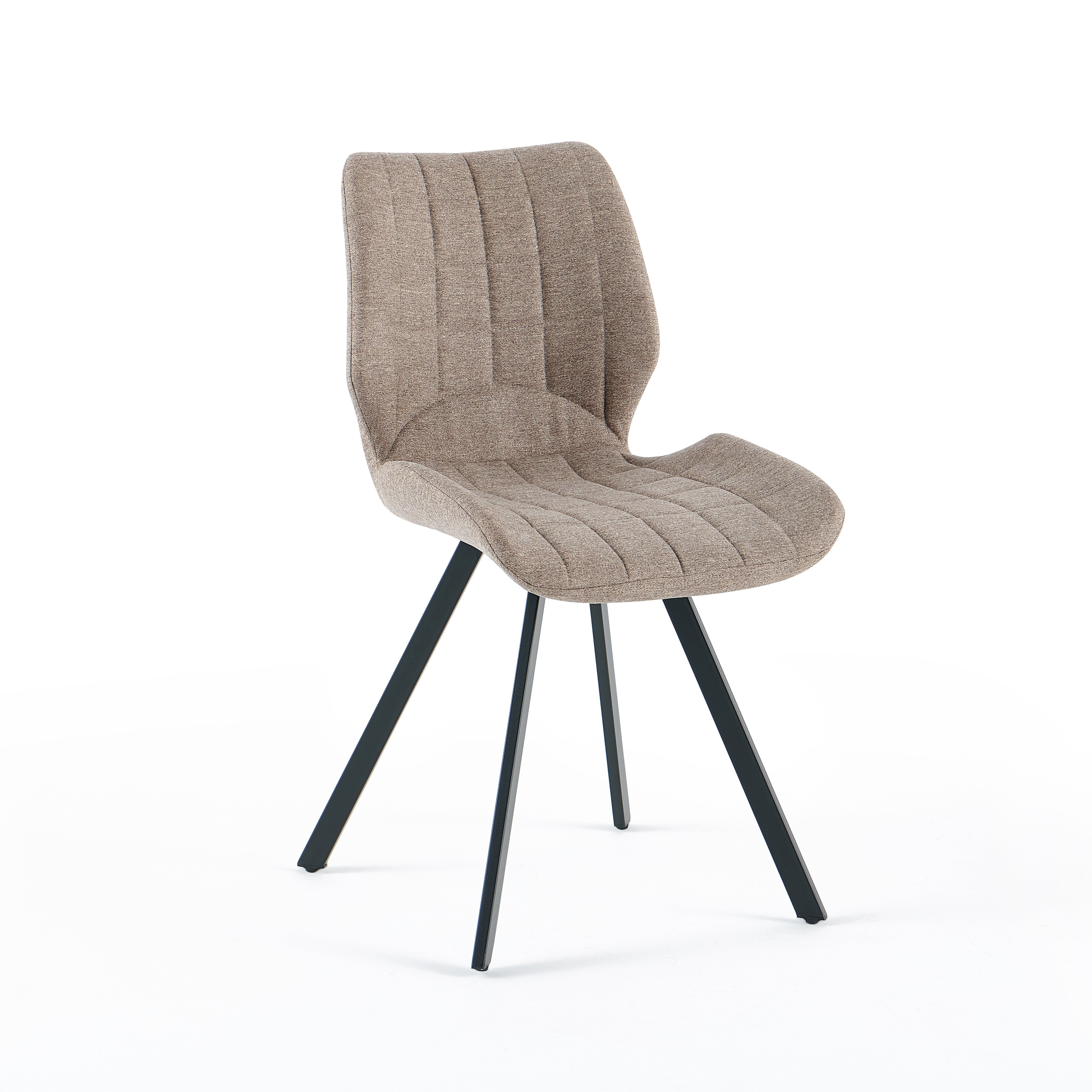 Krzesło Linea w odcieniu ciemnego beżu to synonim elegancji i nowoczesnego komfortu, idealnie wpisujący się w potrzeby współczesnych jadalni. Tapicerka z wysokiej jakości tkaniny zachwyca miękkością oraz stylowymi, pionowymi przeszyciami, które nadają meblowi unikalnego charakteru i wizualnej lekkości. Osadzone na solidnych, czarnych nogach ze stali, krzesło zapewnia stabilność i trwałość, stanowiąc doskonałą bazę dla codziennych posiłków. Jego ergonomiczny profil dba o wygodę pleców, a ciepła kolorystyka wprowadza do wnętrza przytulną, domową atmosferę, doskonale komponując się z aranżacjami w stylu loft, modern czy glamour.