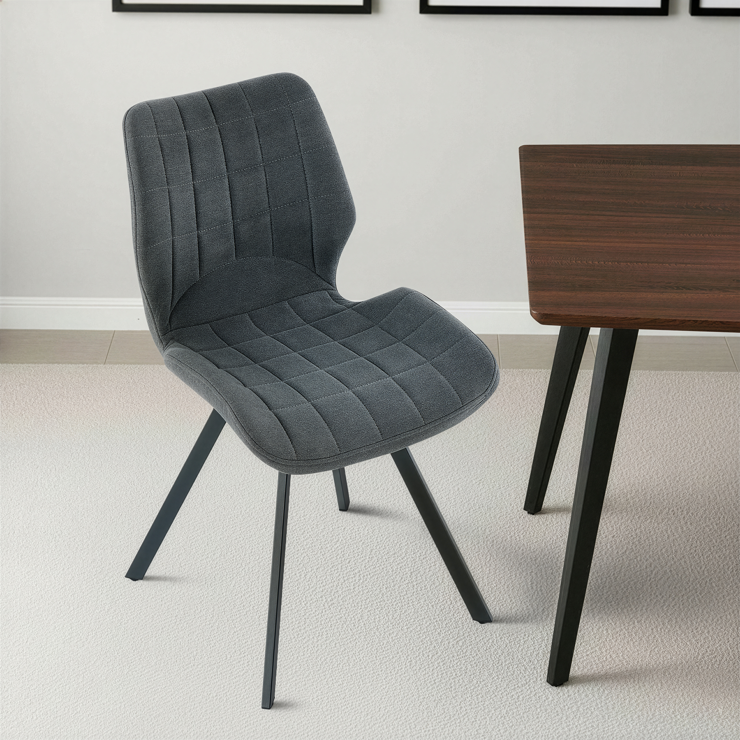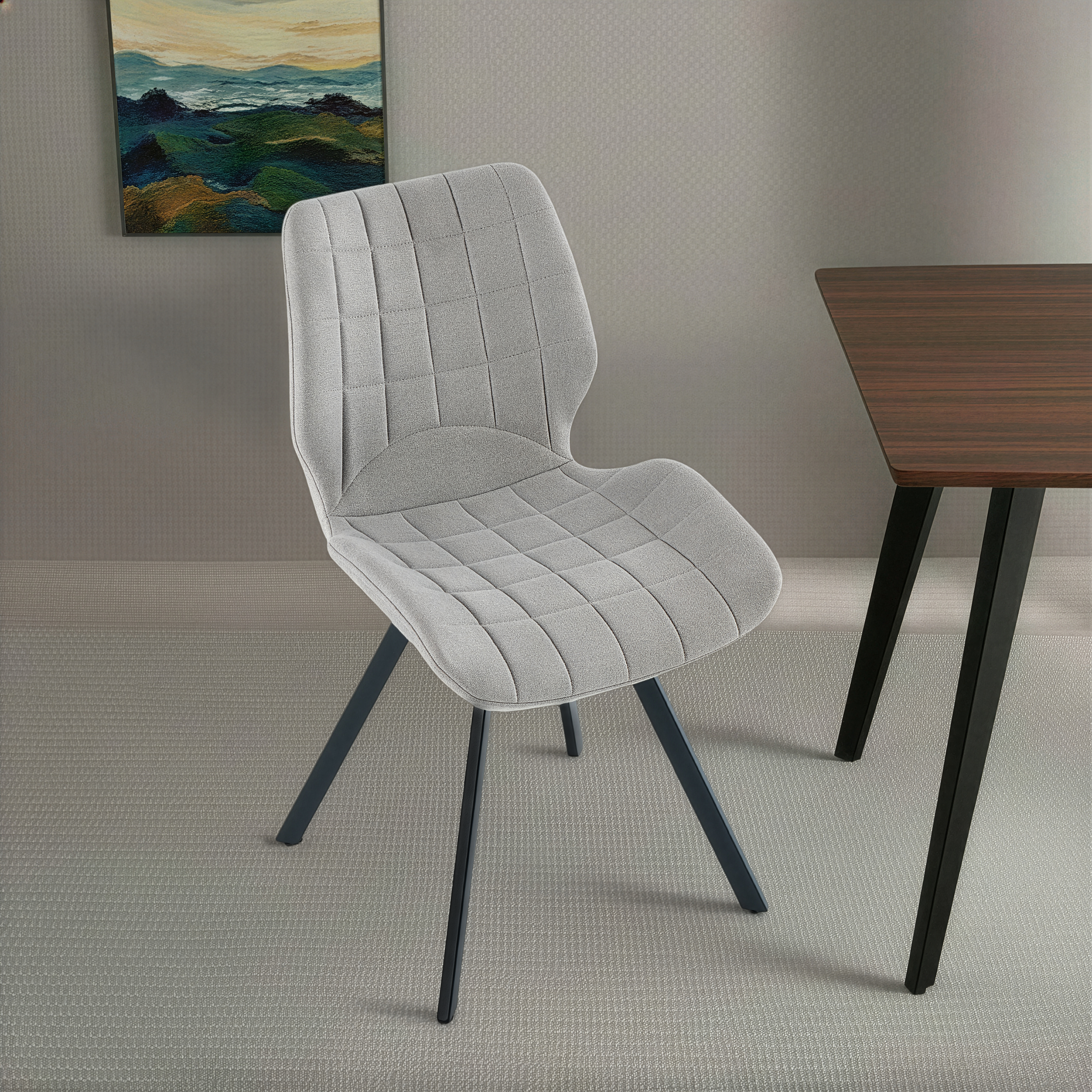 - Krzesło Do Jadalni Tapicerowane Nowoczesne Nogi Stalowe Czarne Linea