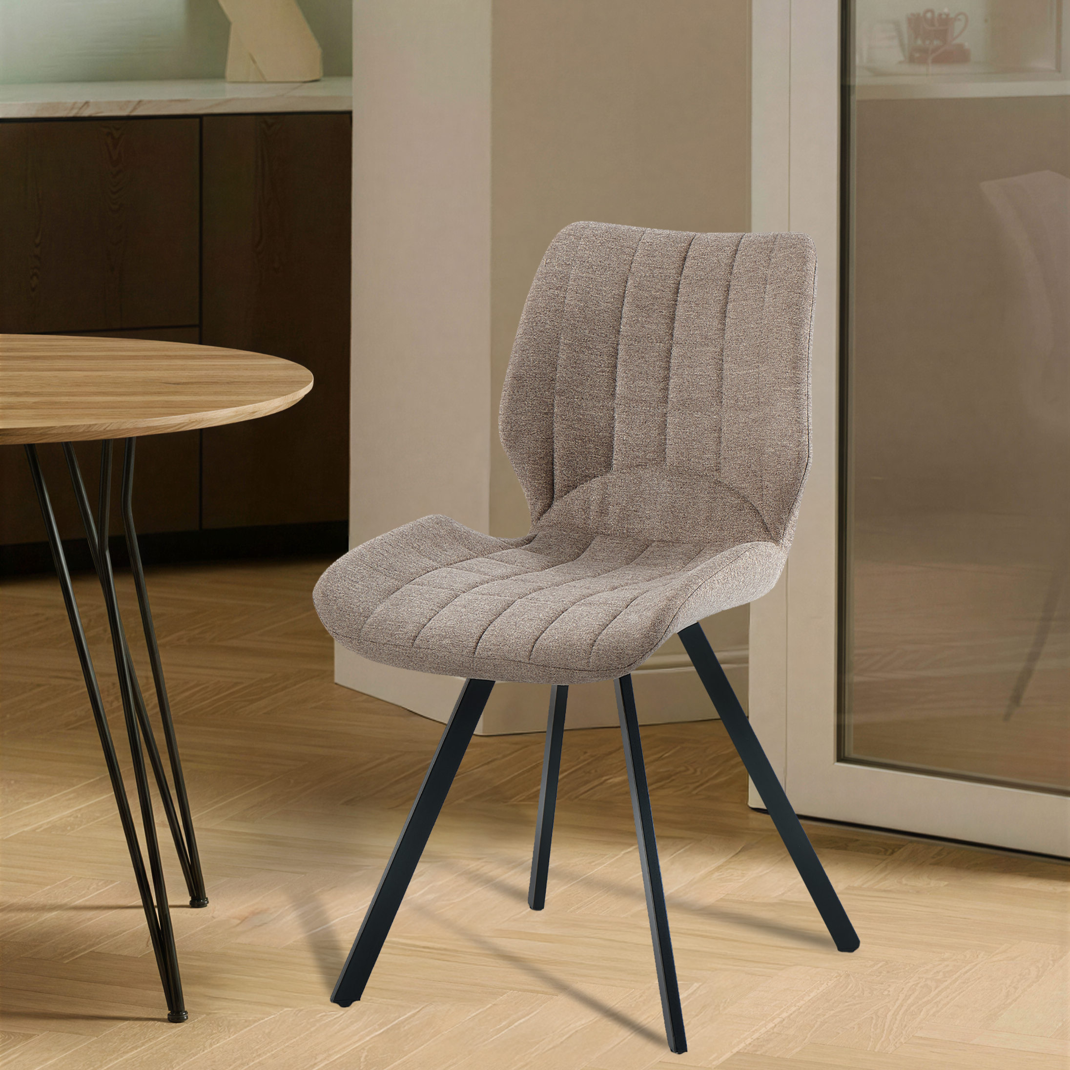 Nowoczesne krzesło jadalniane Linea – Ciemny Beż tapicerowane krzesło do jadalni i salonu