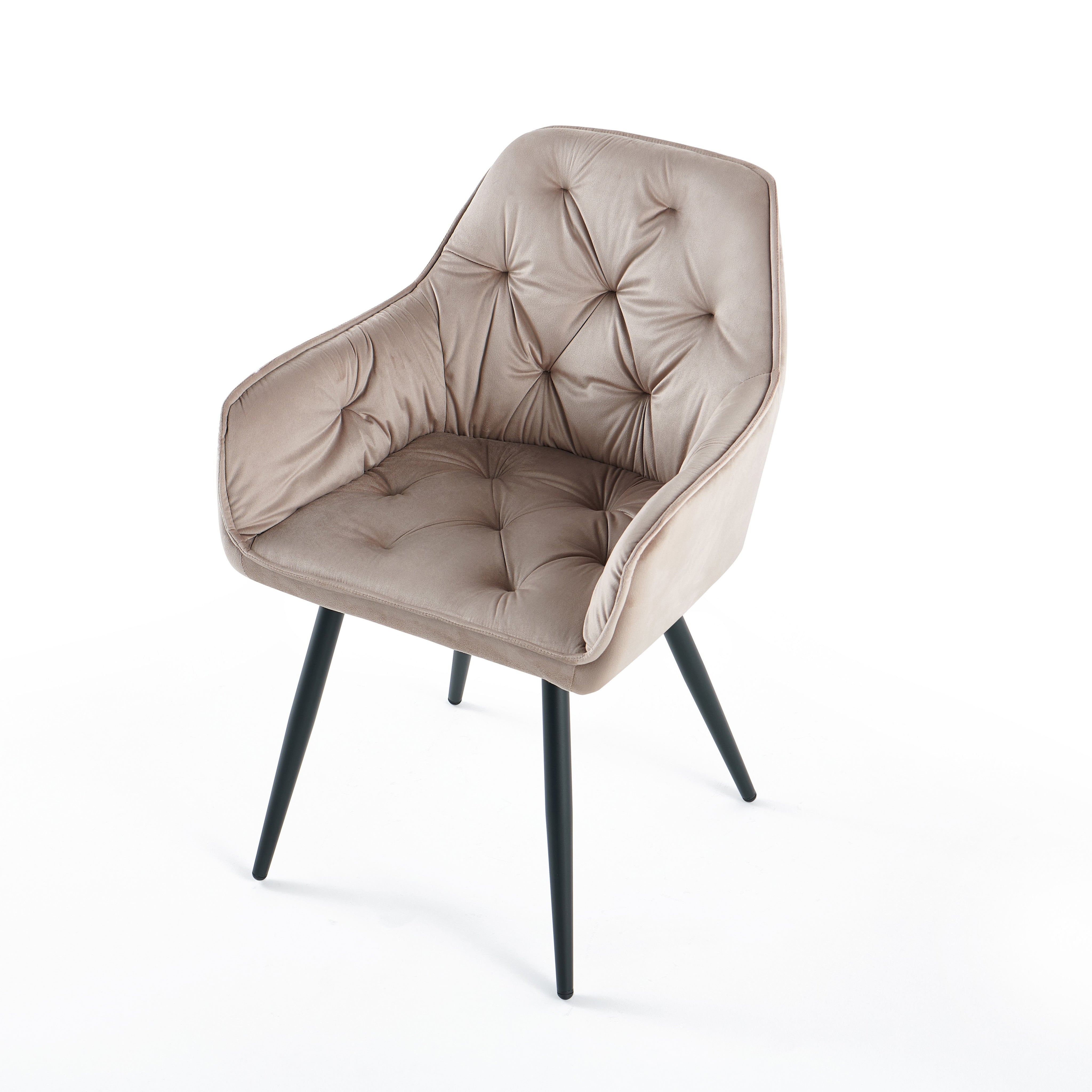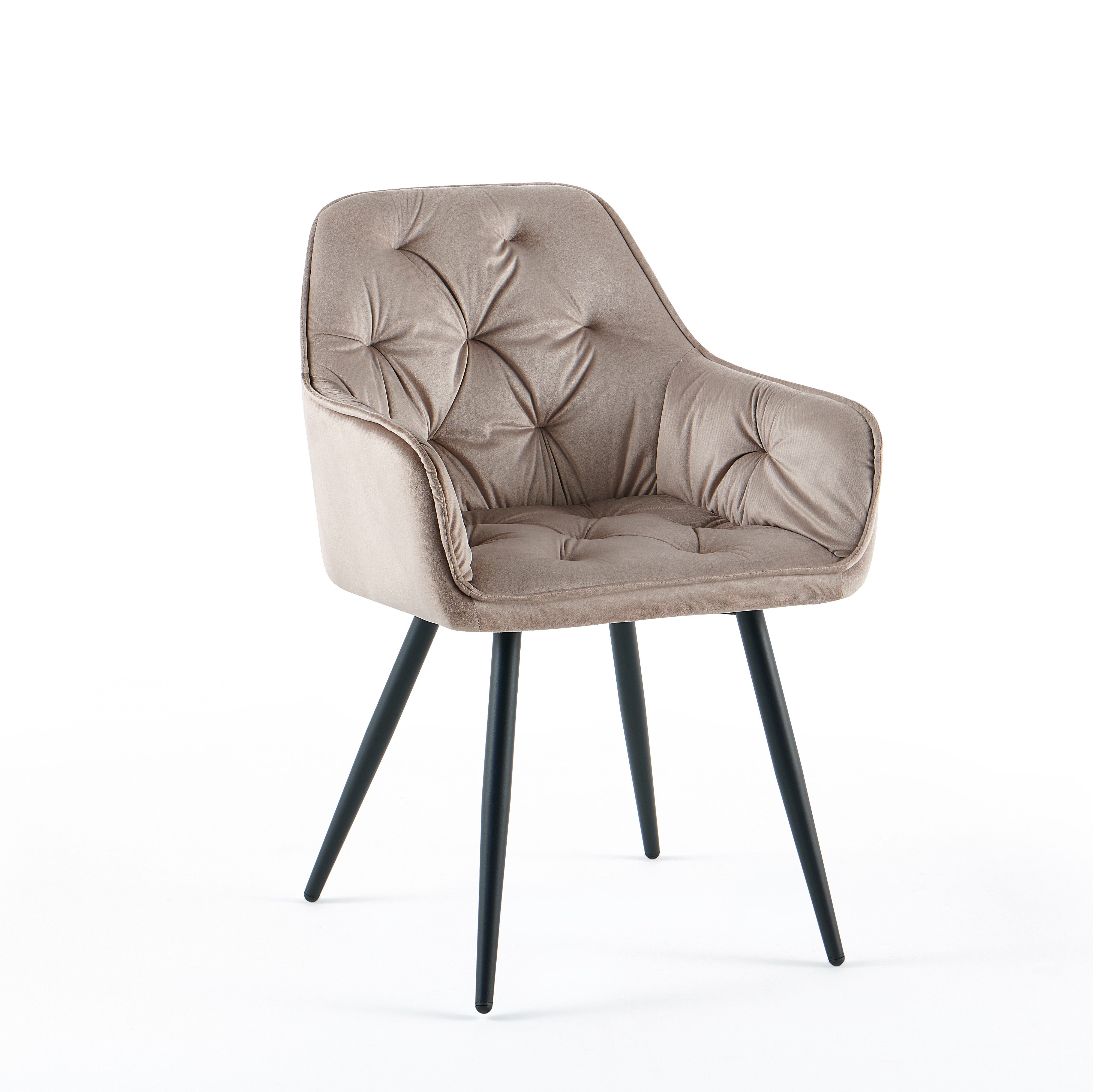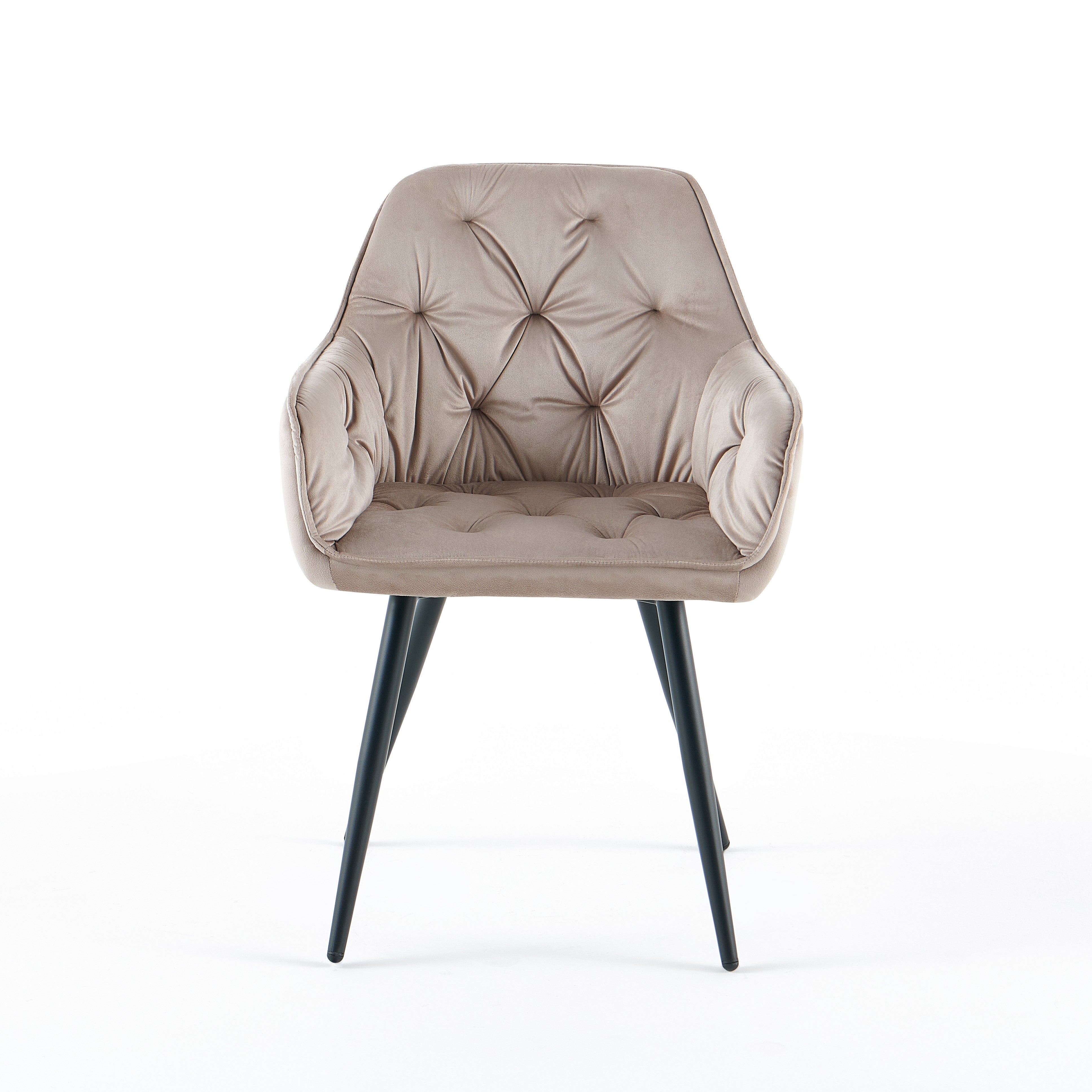 Krzesło Mirage w beżowo-szarym odcieniu to połączenie elegancji, funkcjonalności i nowoczesnego stylu. Welurowa tapicerka o lekkim połysku dodaje wnętrzu przytulności i delikatnego luksusu, a subtelne pikowanie na oparciu i siedzisku podkreśla designerski charakter mebla. Beżowo-szary kolor jest wyjątkowo uniwersalny – doskonale komponuje się z wnętrzami skandynawskimi, minimalistycznymi oraz nowoczesnymi. Stabilne nogi ze stali malowanej proszkowo gwarantują trwałość i świetną stabilność.