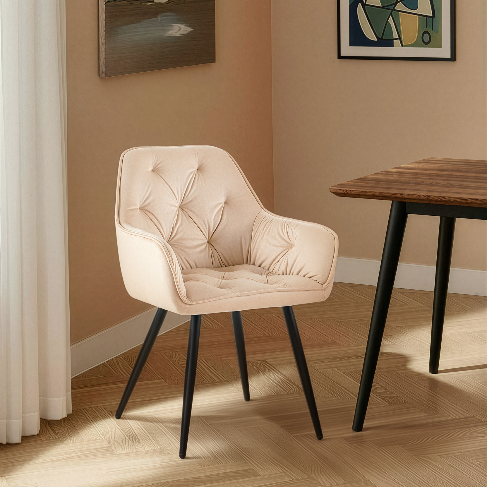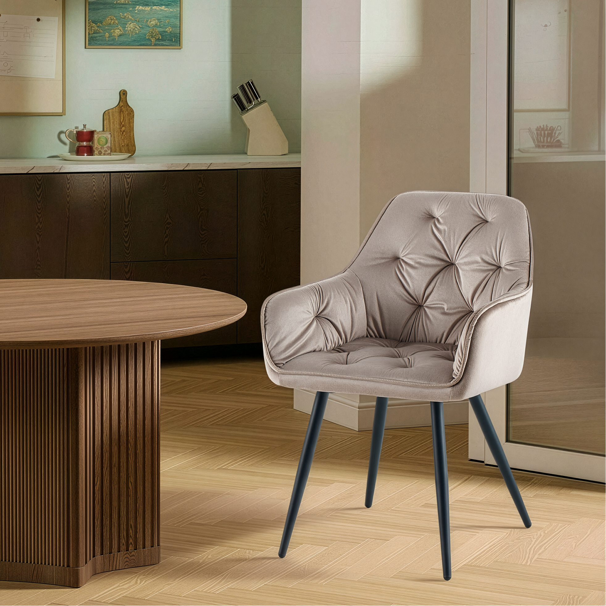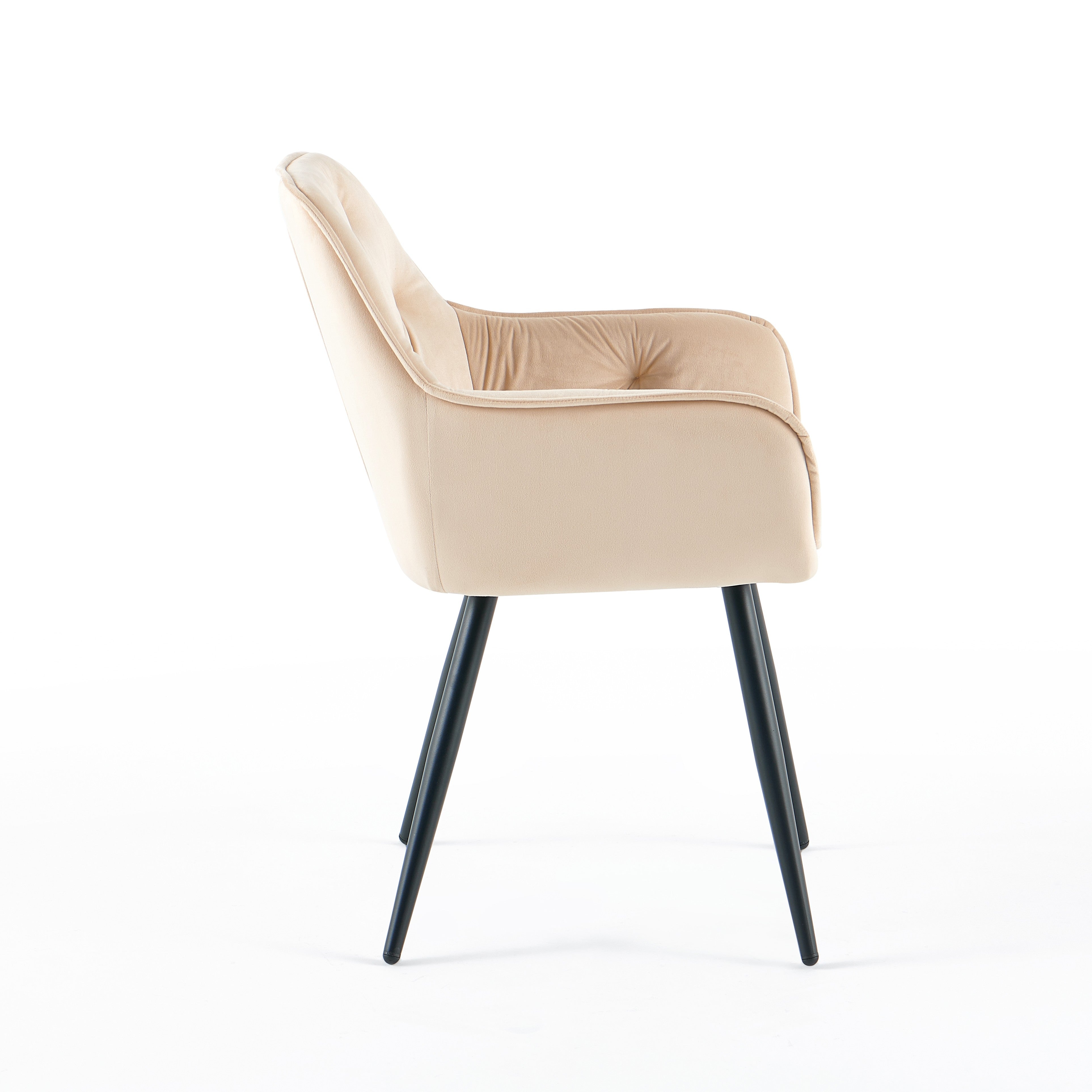 Krzesło Mirage w beżowo-szarym odcieniu to połączenie elegancji, funkcjonalności i nowoczesnego stylu. Welurowa tapicerka o lekkim połysku dodaje wnętrzu przytulności i delikatnego luksusu, a subtelne pikowanie na oparciu i siedzisku podkreśla designerski charakter mebla. Beżowo-szary kolor jest wyjątkowo uniwersalny – doskonale komponuje się z wnętrzami skandynawskimi, minimalistycznymi oraz nowoczesnymi. Stabilne nogi ze stali malowanej proszkowo gwarantują trwałość i świetną stabilność.
