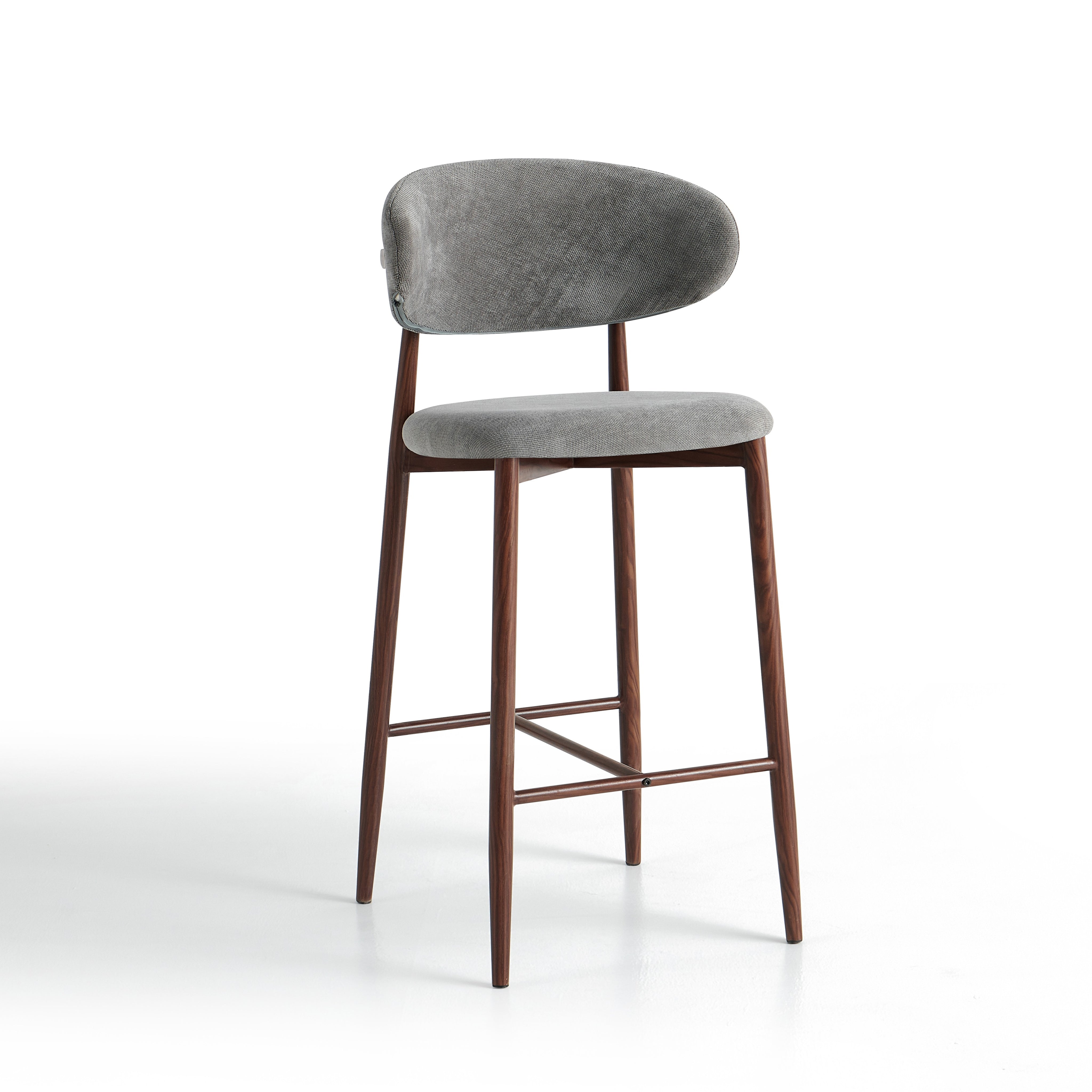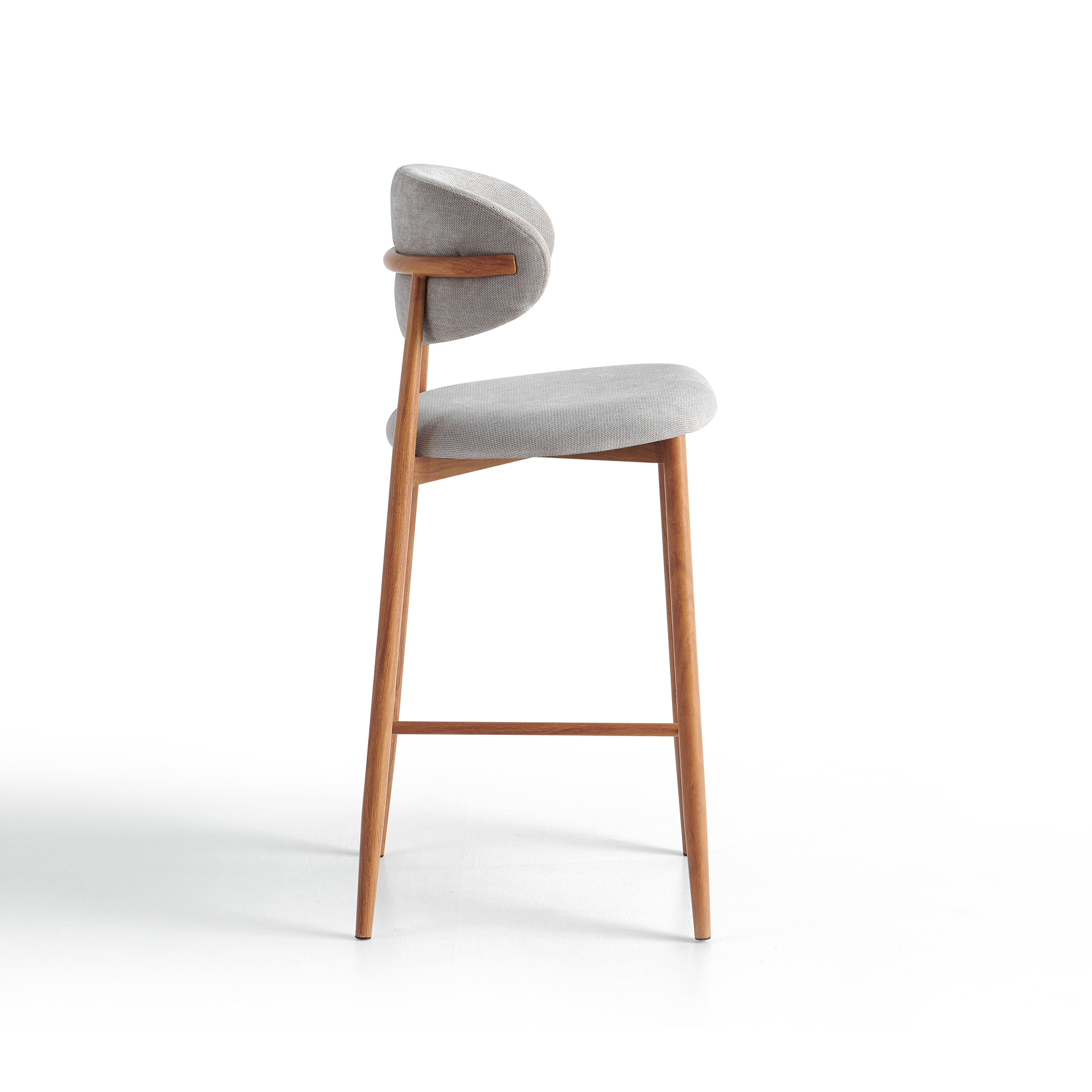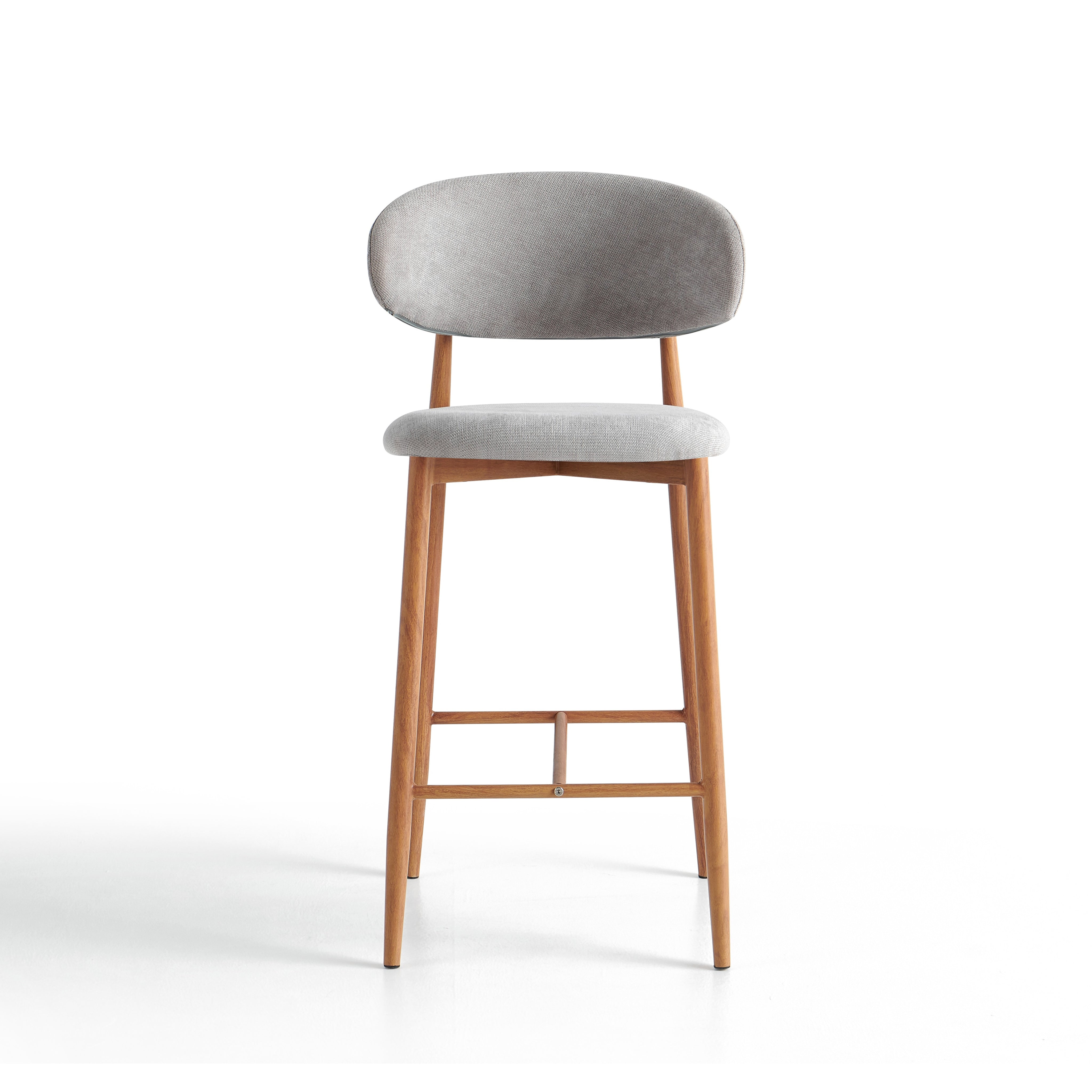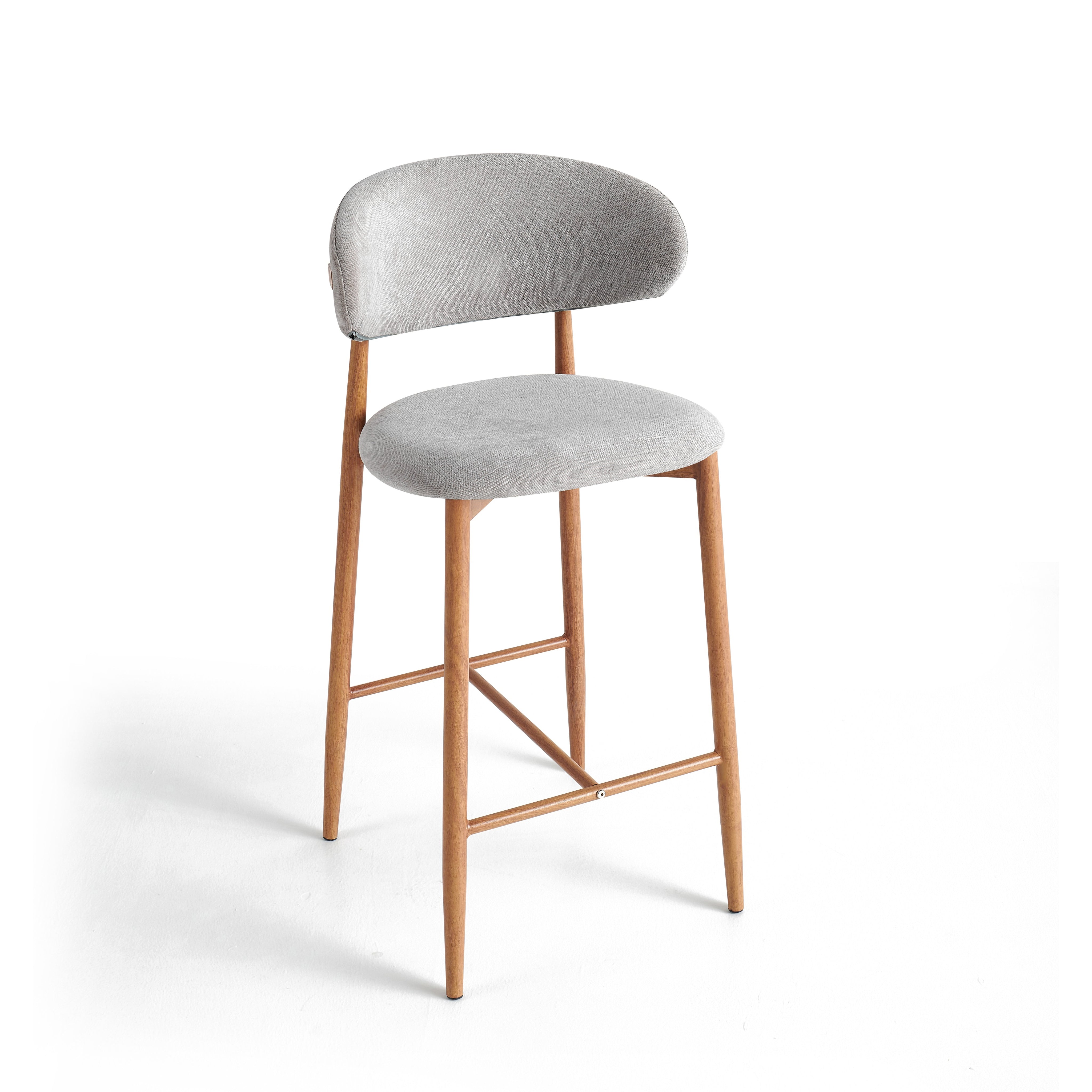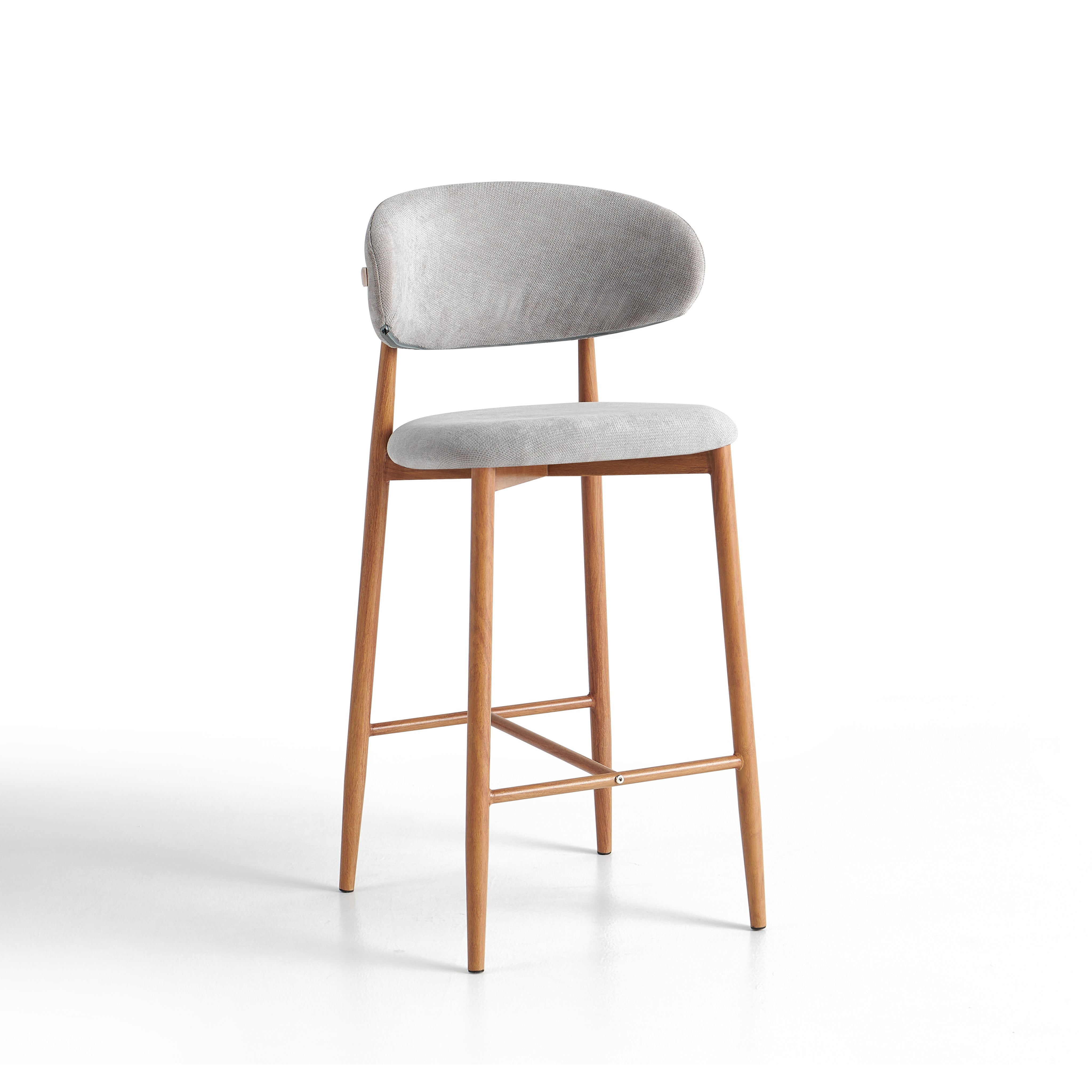 Hoker barowy 6083H to nowoczesny model przeznaczony do kuchni, wysp kuchennych oraz wysokich blatów. Siedzisko i oparcie zostały tapicerowane jasnoszarą tkaniną o wyczuwalnej strukturze, która jest przyjemna w użytkowaniu i łatwa do dopasowania do nowoczesnych oraz jasnych aranżacji wnętrz.