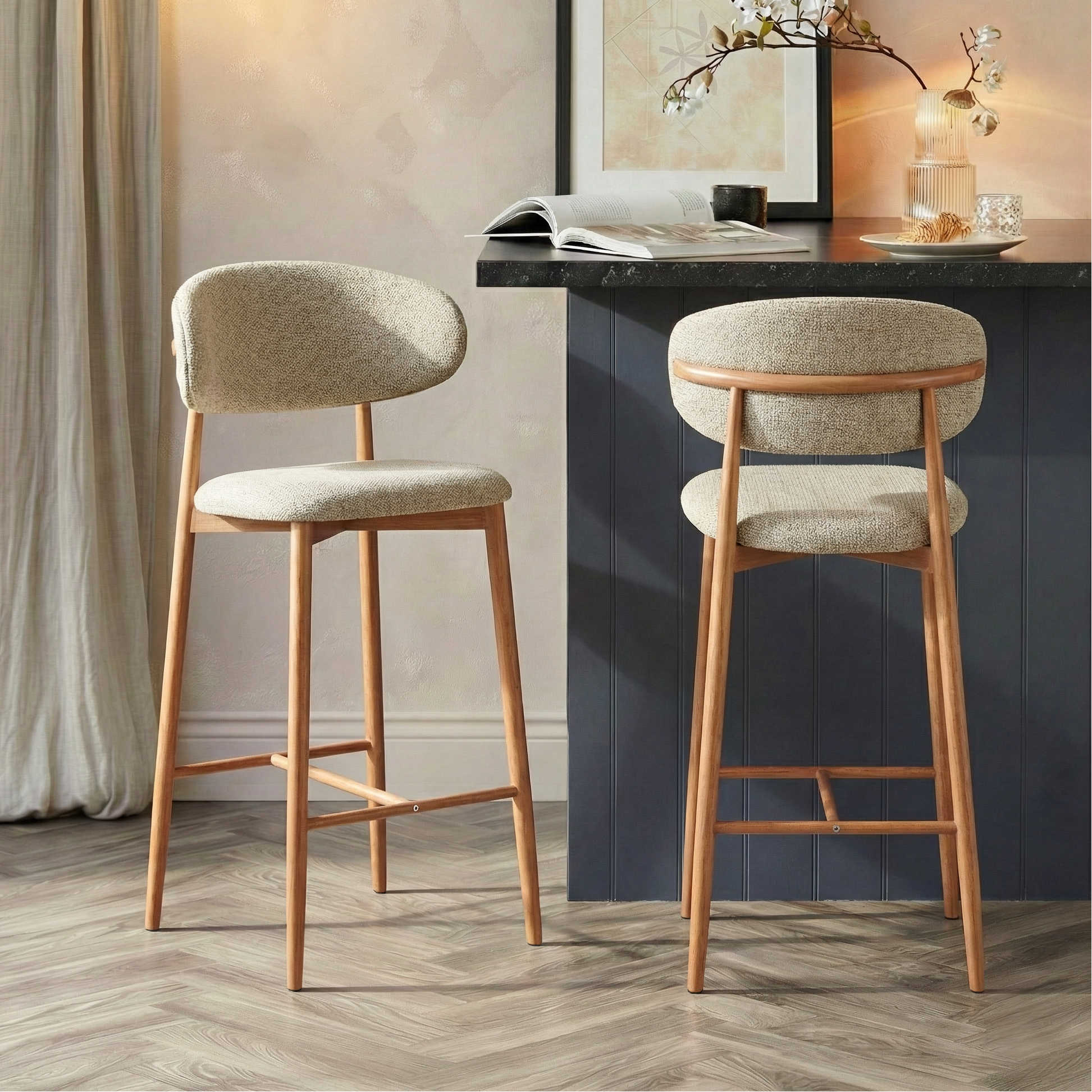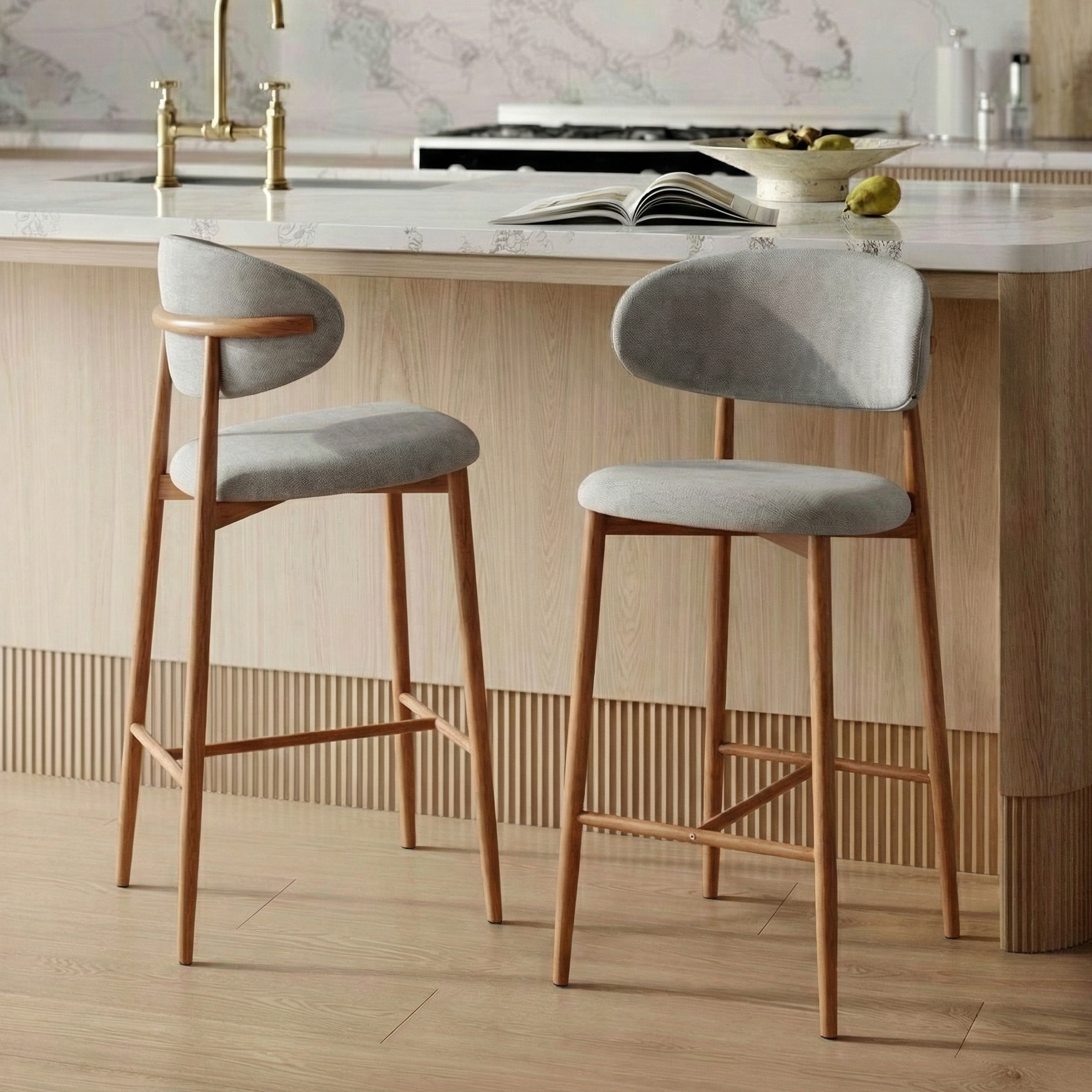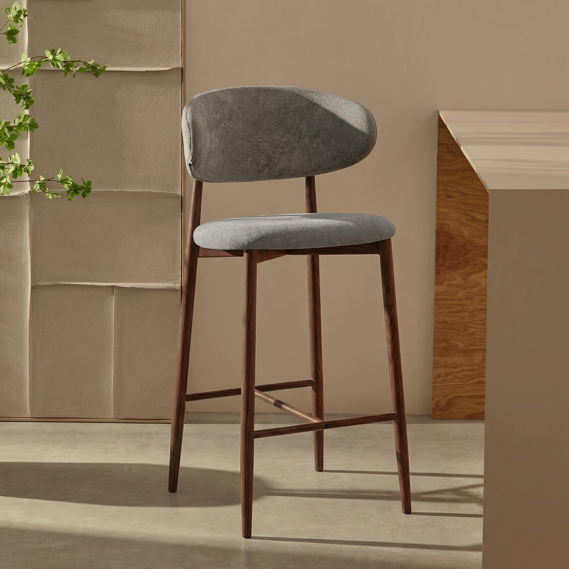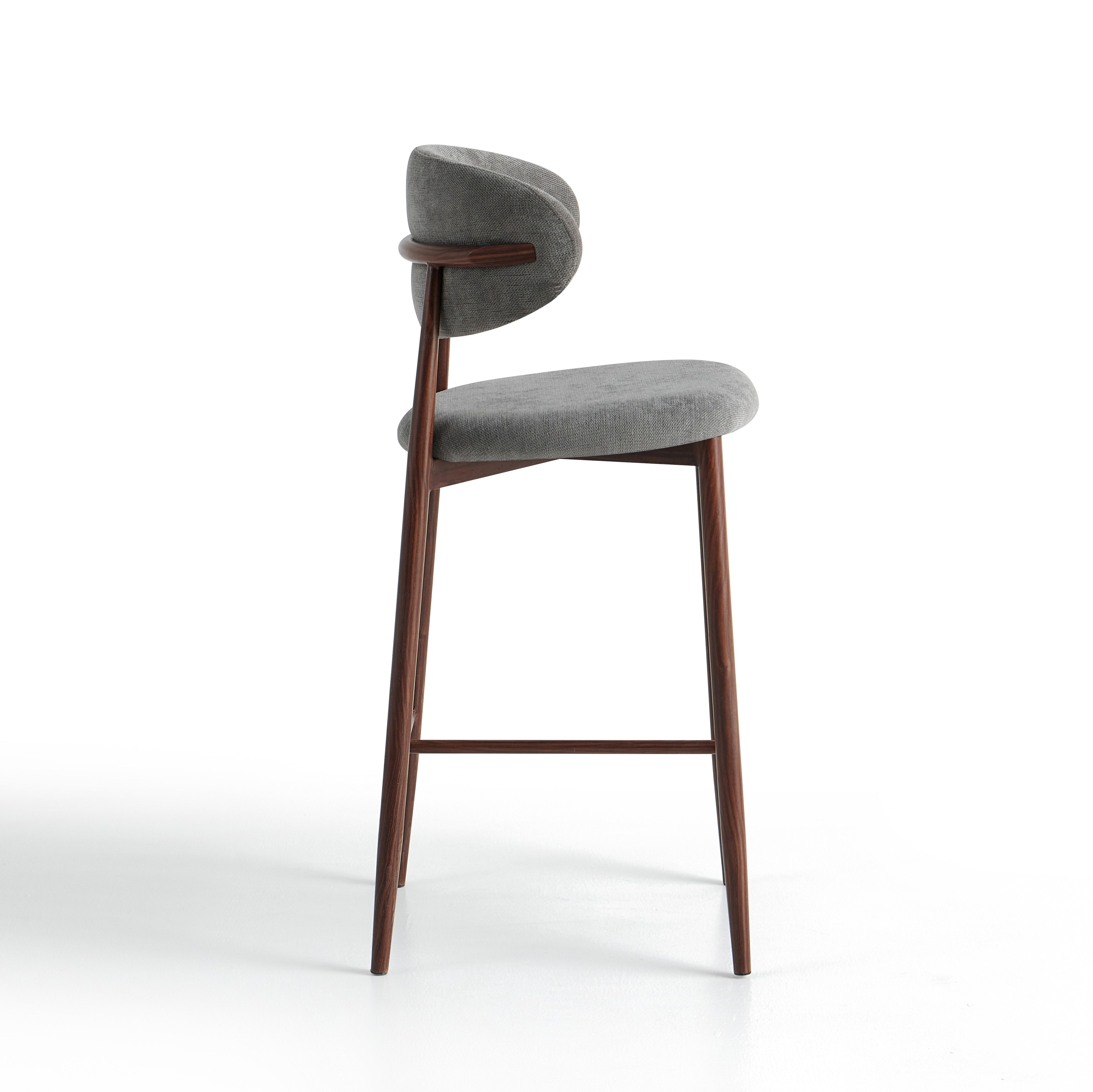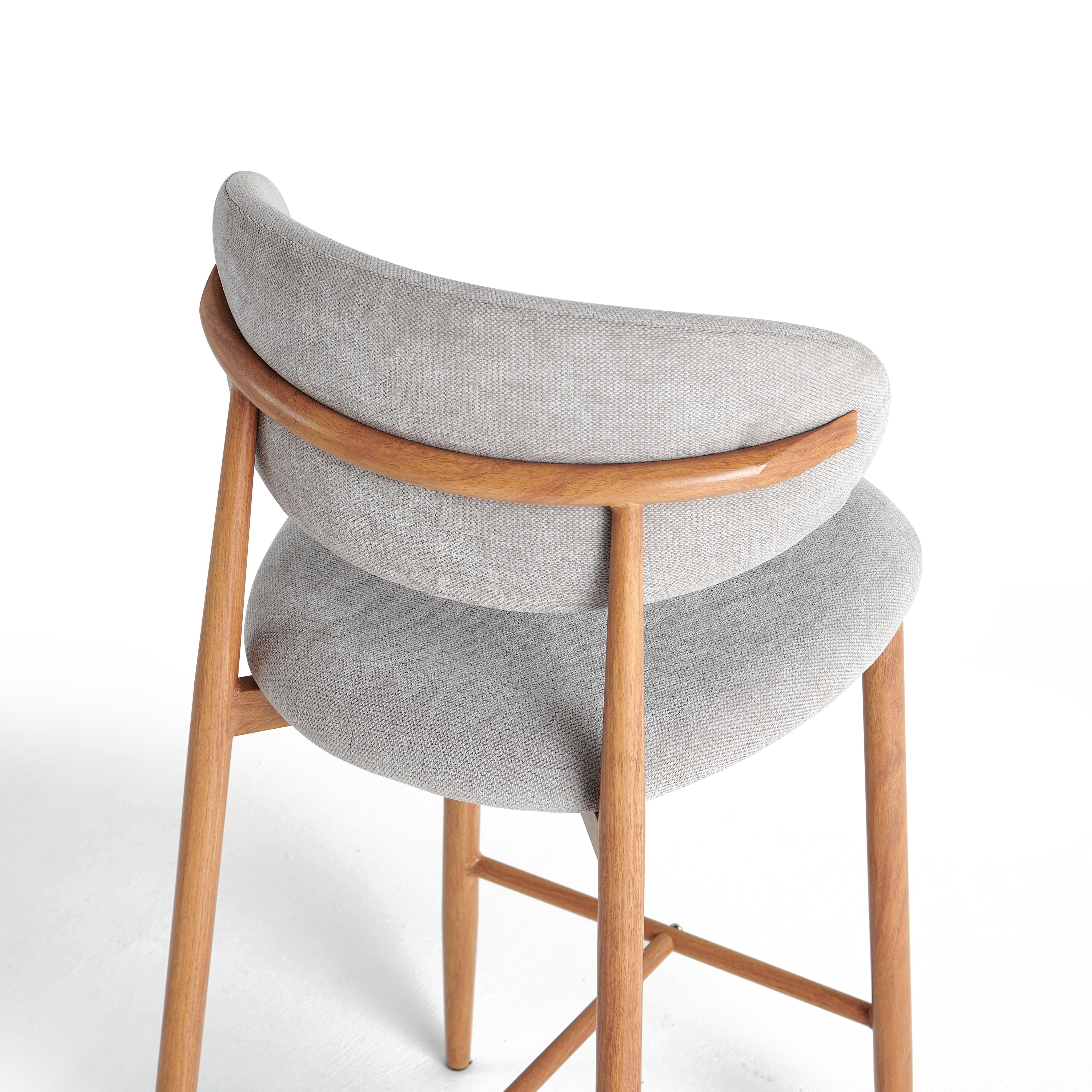 Hoker barowy 6083H to nowoczesny model przeznaczony do kuchni, wysp kuchennych oraz wysokich blatów. Siedzisko i oparcie zostały tapicerowane jasnoszarą tkaniną o wyczuwalnej strukturze, która jest przyjemna w użytkowaniu i łatwa do dopasowania do nowoczesnych oraz jasnych aranżacji wnętrz.