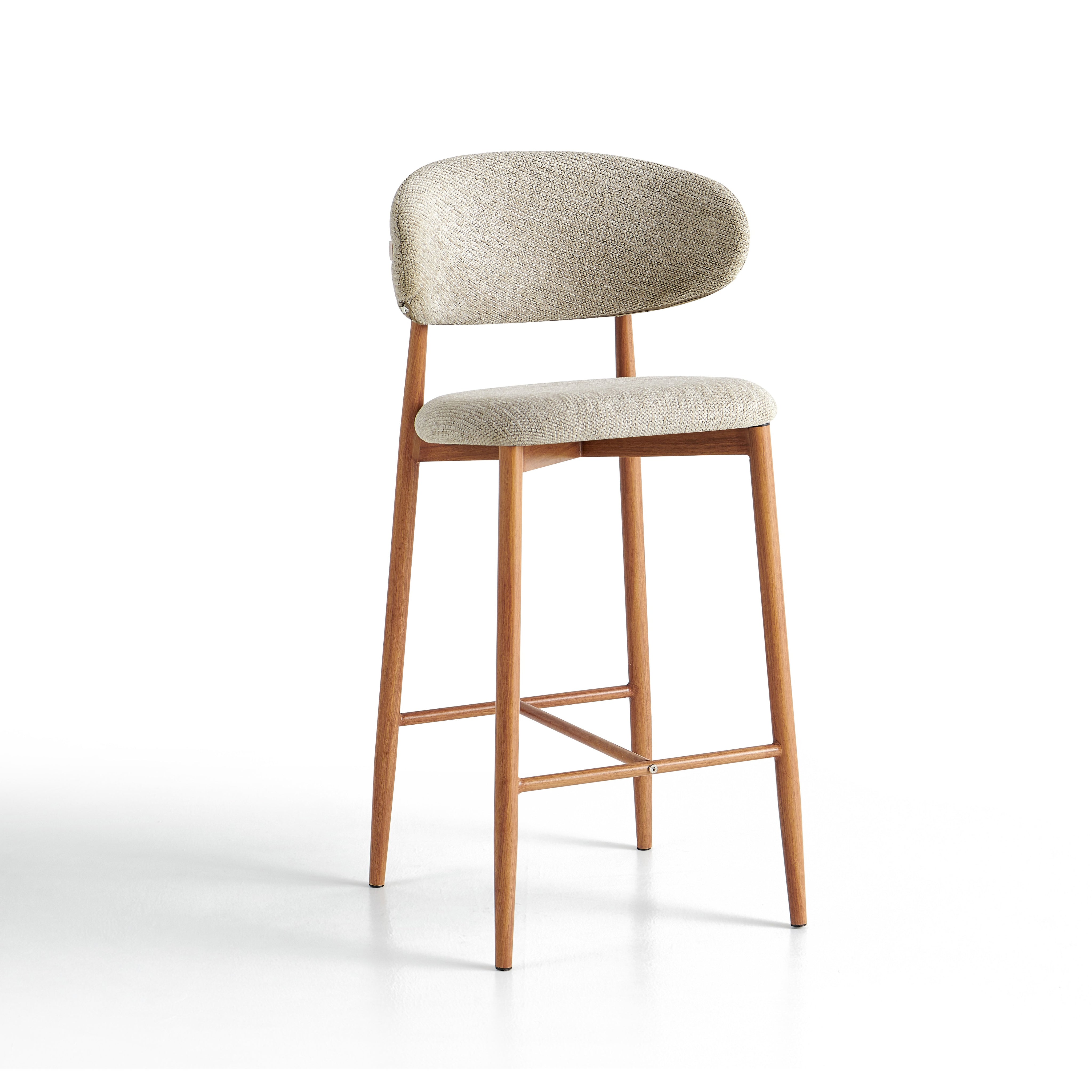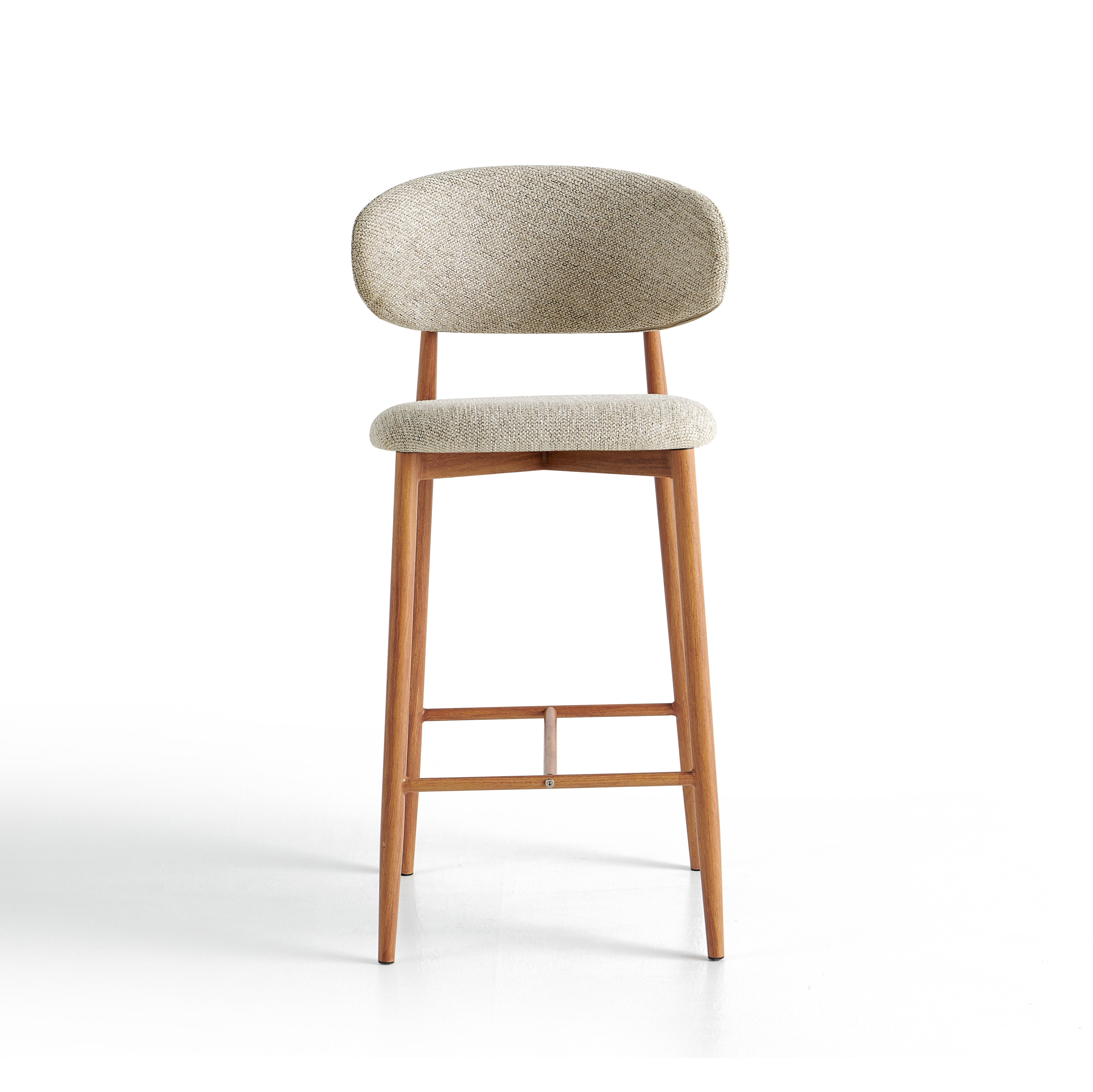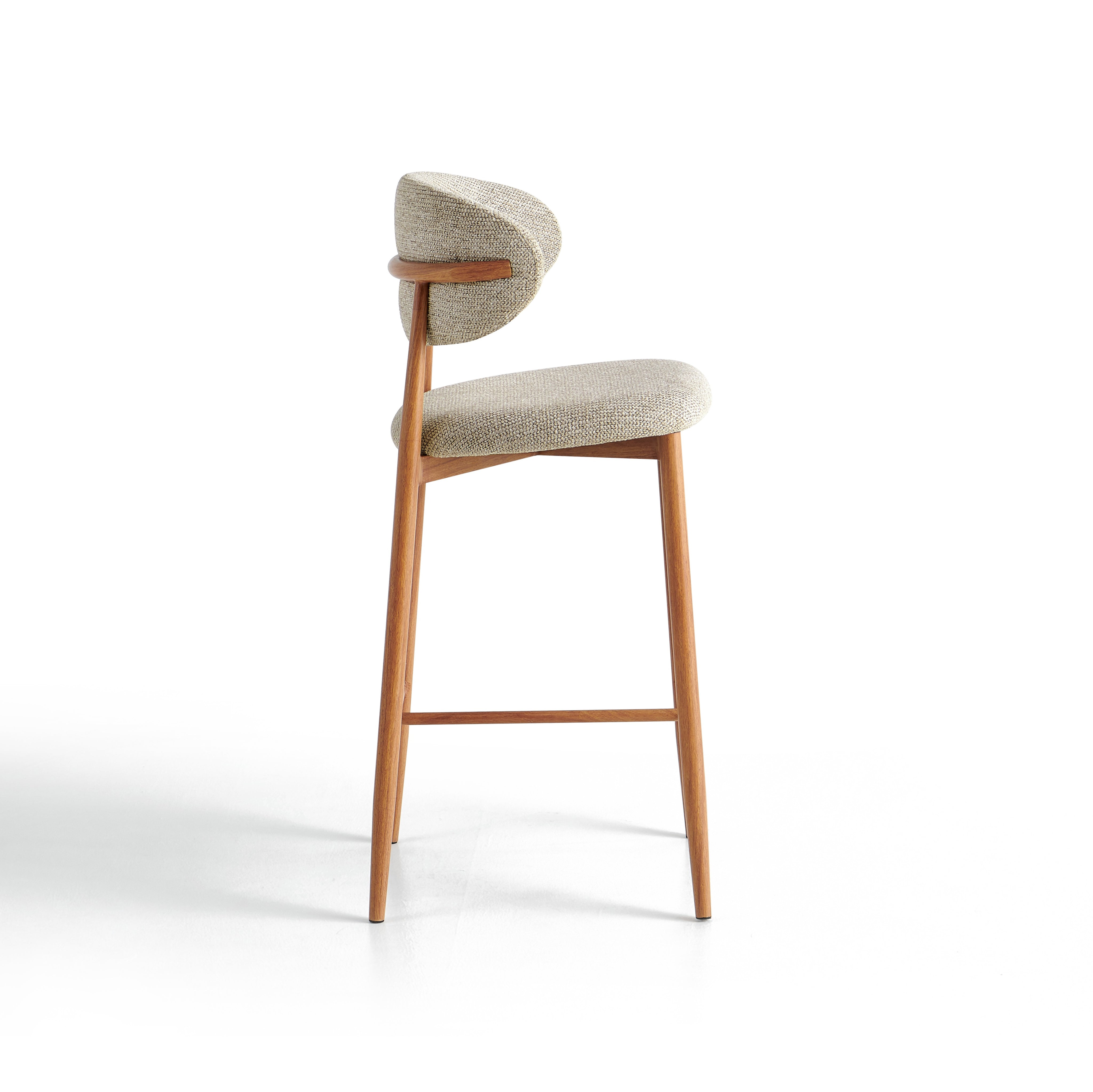 Stalowa rama malowana proszkowo w kolorze dębu nadaje konstrukcji nowoczesny, loftowy charakter oraz zapewnia trwałość i stabilność. Dodatkowy podnóżek poprawia wygodę siedzenia. Model 6083H sprawdzi się w nowoczesnych kuchniach, barach oraz kawiarniach.