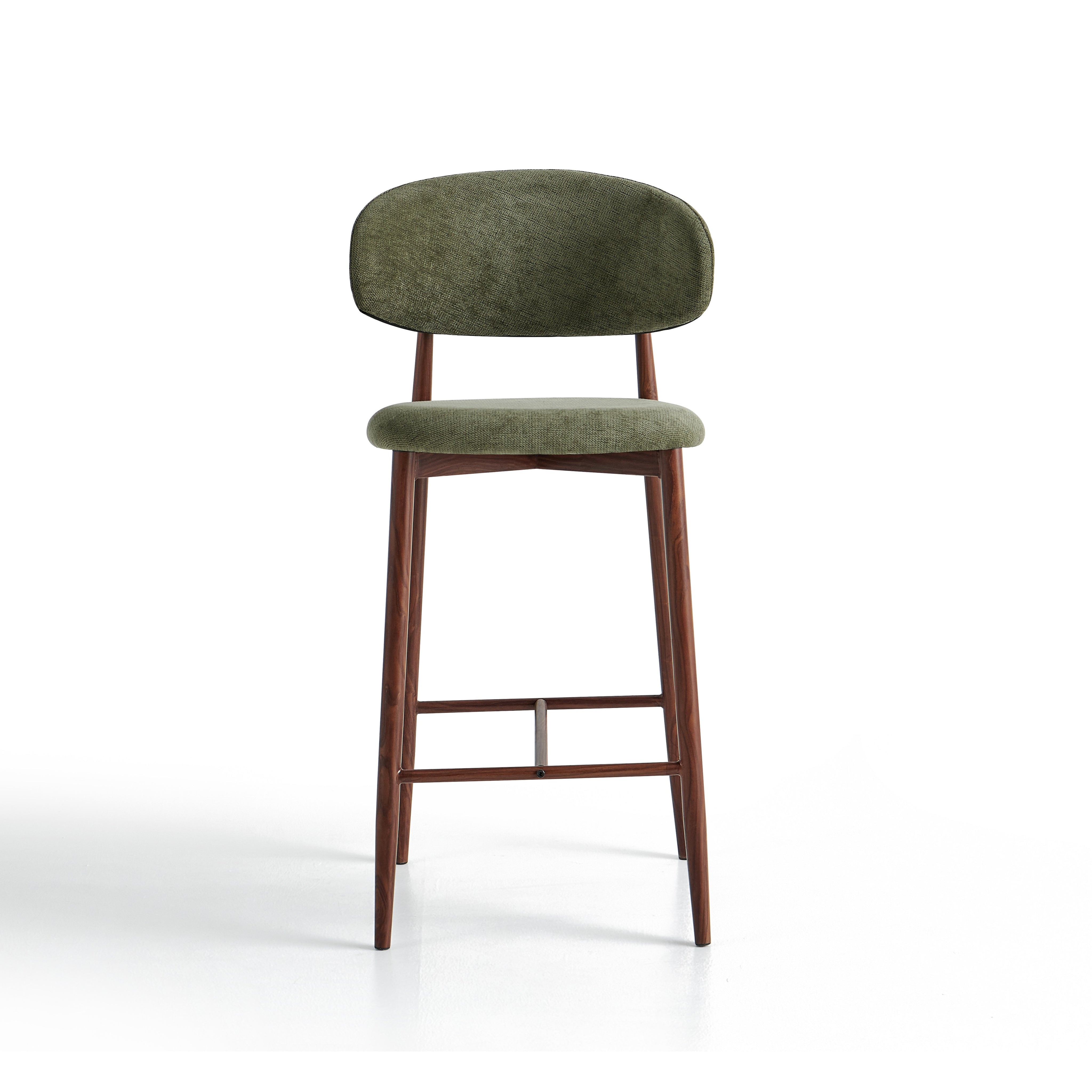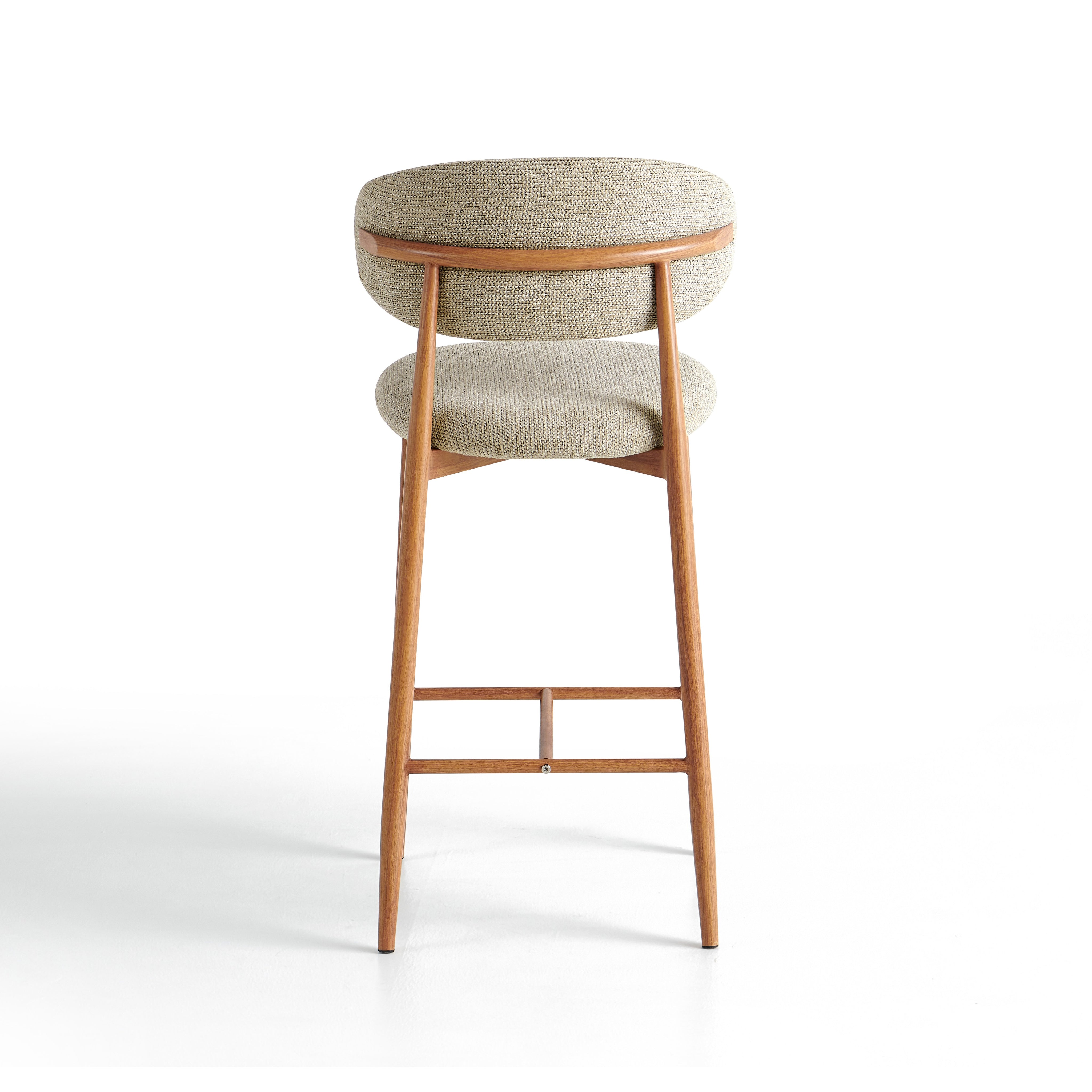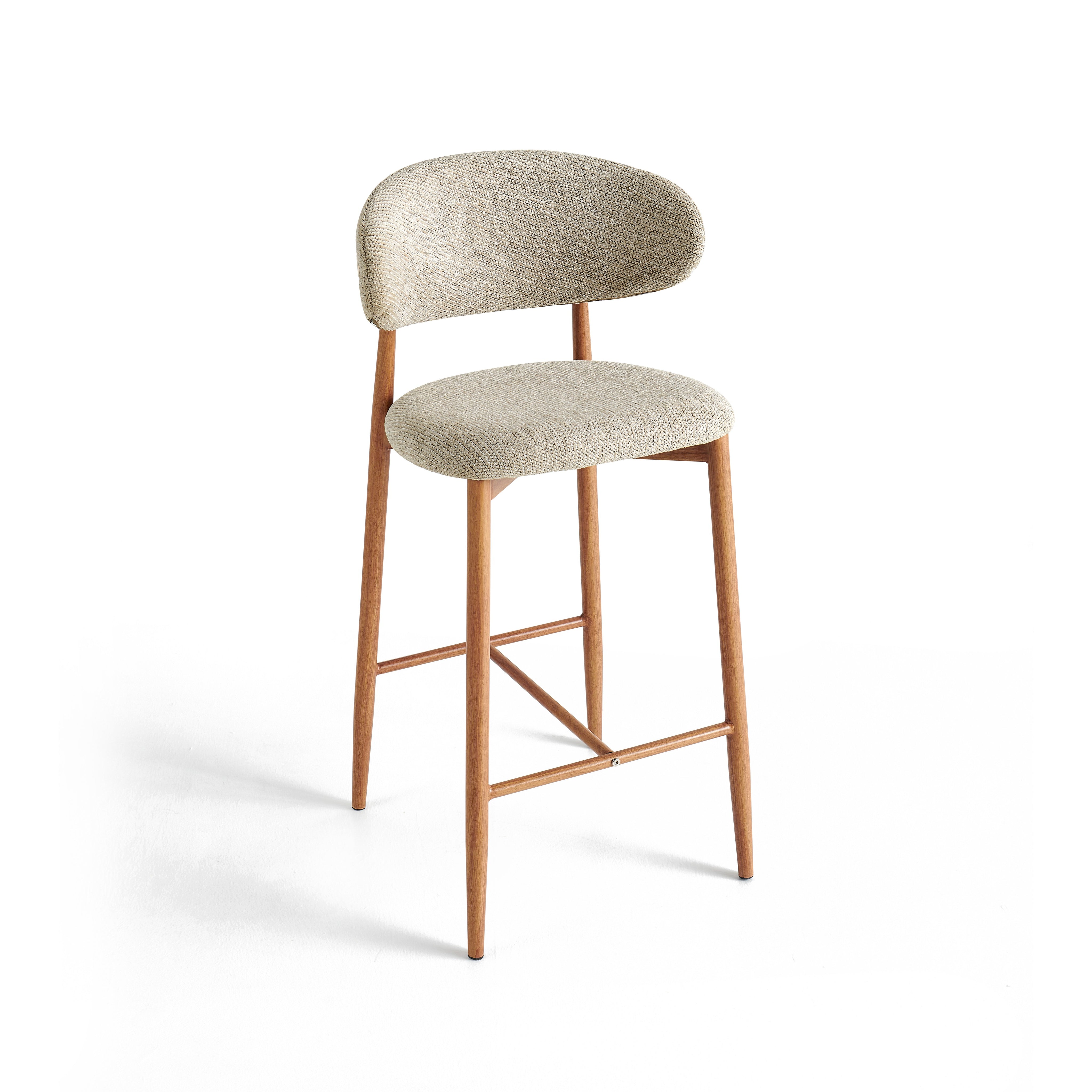 Stalowa rama malowana proszkowo w kolorze dębu nadaje konstrukcji nowoczesny, loftowy charakter oraz zapewnia trwałość i stabilność. Dodatkowy podnóżek poprawia wygodę siedzenia. Model 6083H sprawdzi się w nowoczesnych kuchniach, barach oraz kawiarniach.
