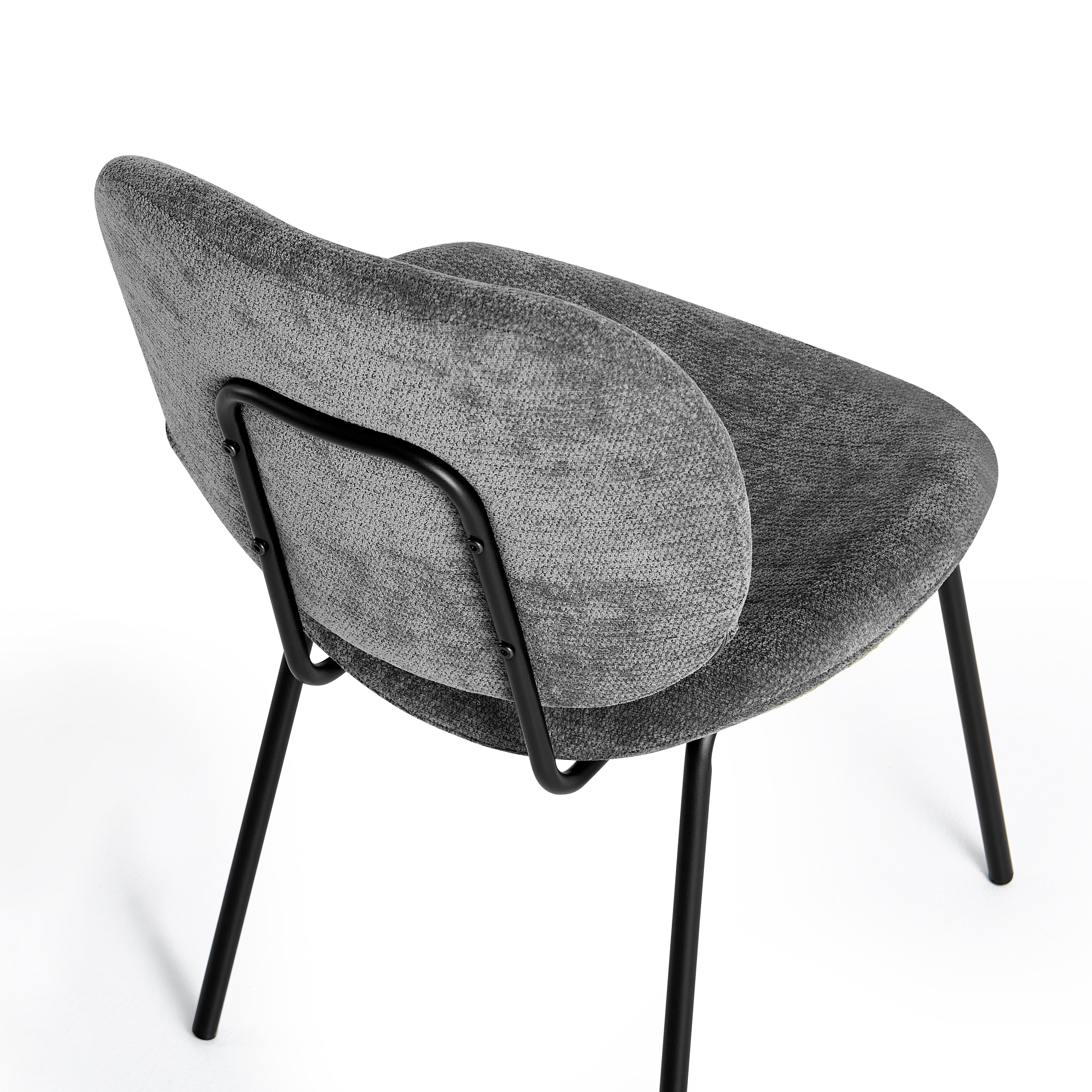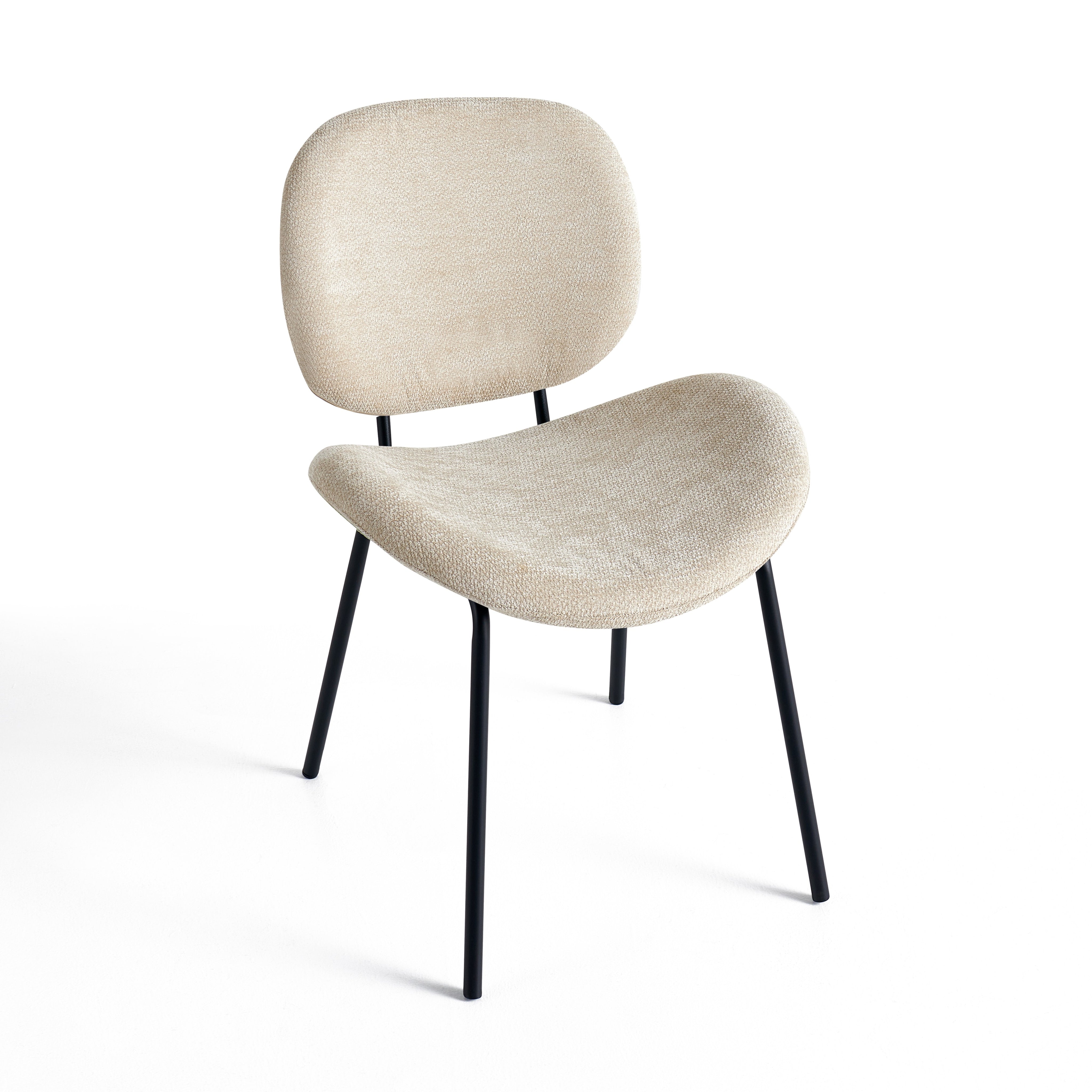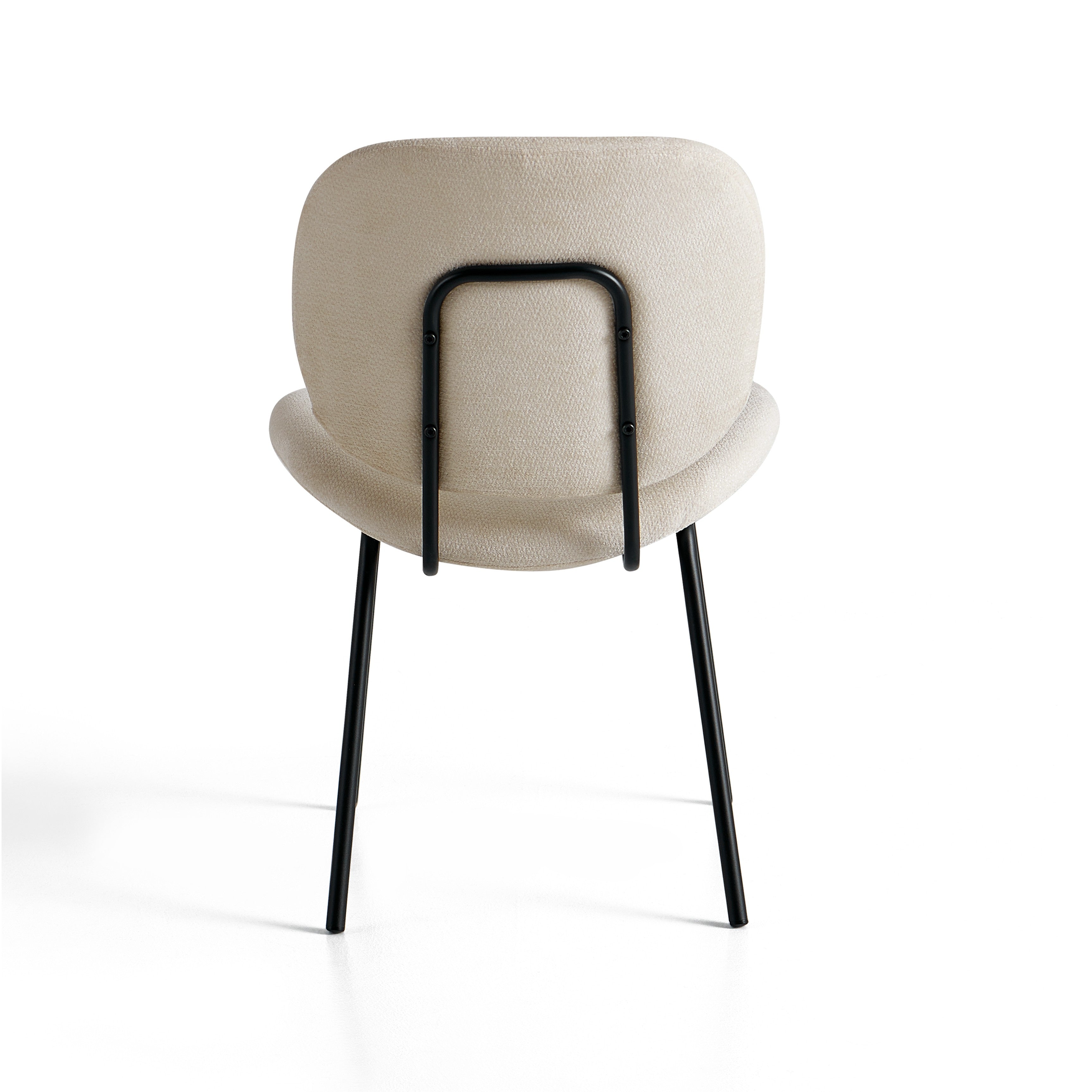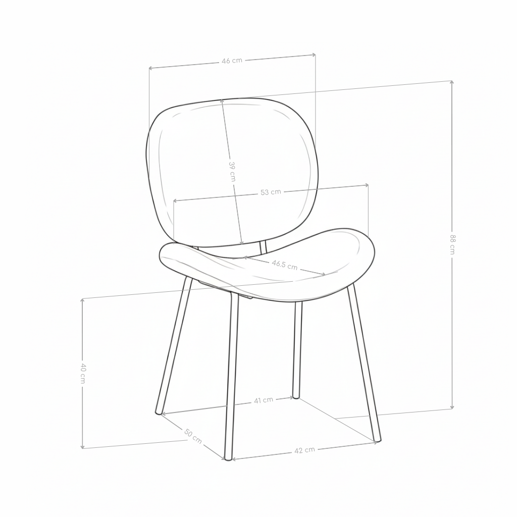 Smukłe nogi wykonane z metalu w kolorze czarnym gwarantują stabilność oraz trwałość konstrukcji. Dzięki uniwersalnemu designowi krzesło sprawdzi się przy stole w jadalni, w kuchni, salonie, a także w nowoczesnych przestrzeniach użytkowych.