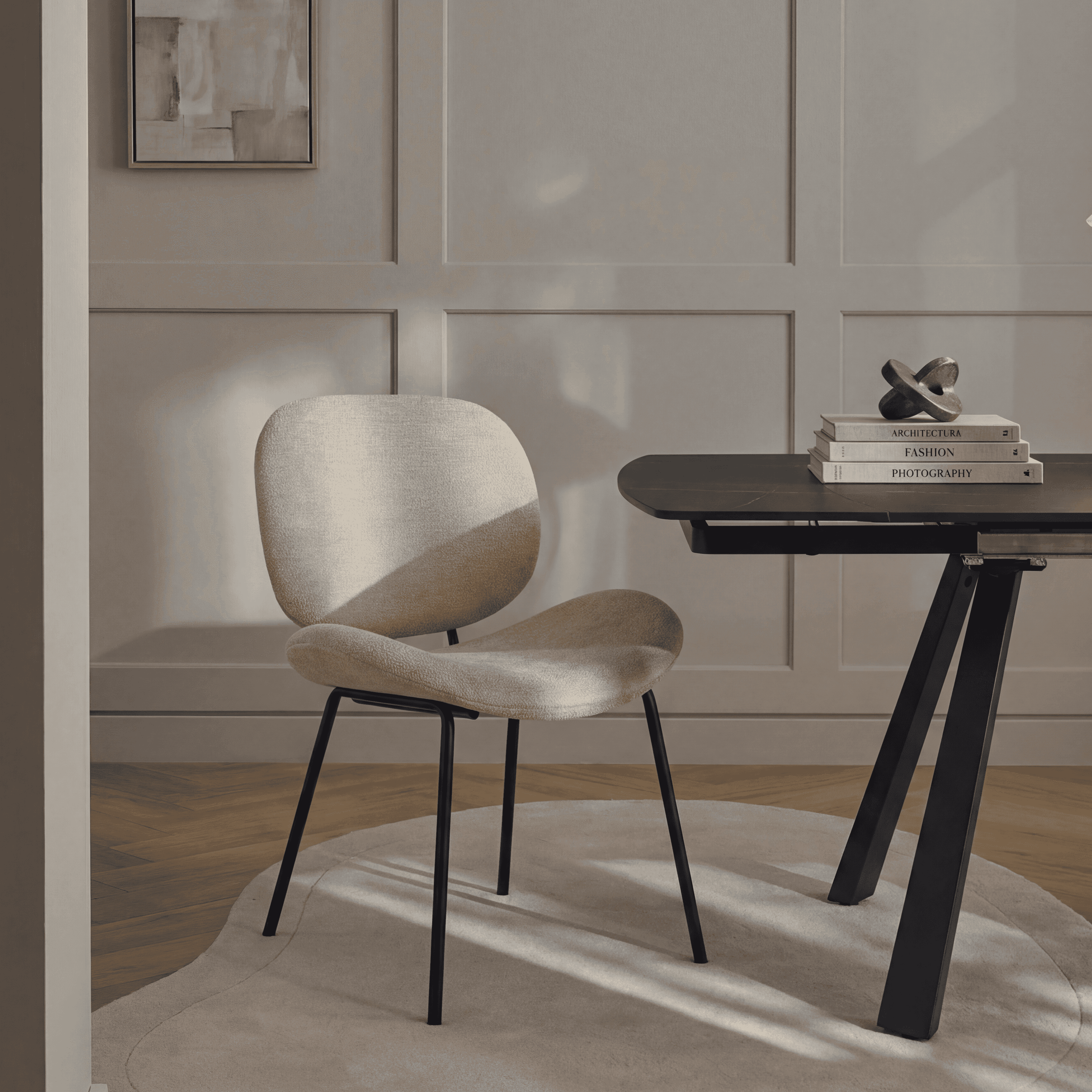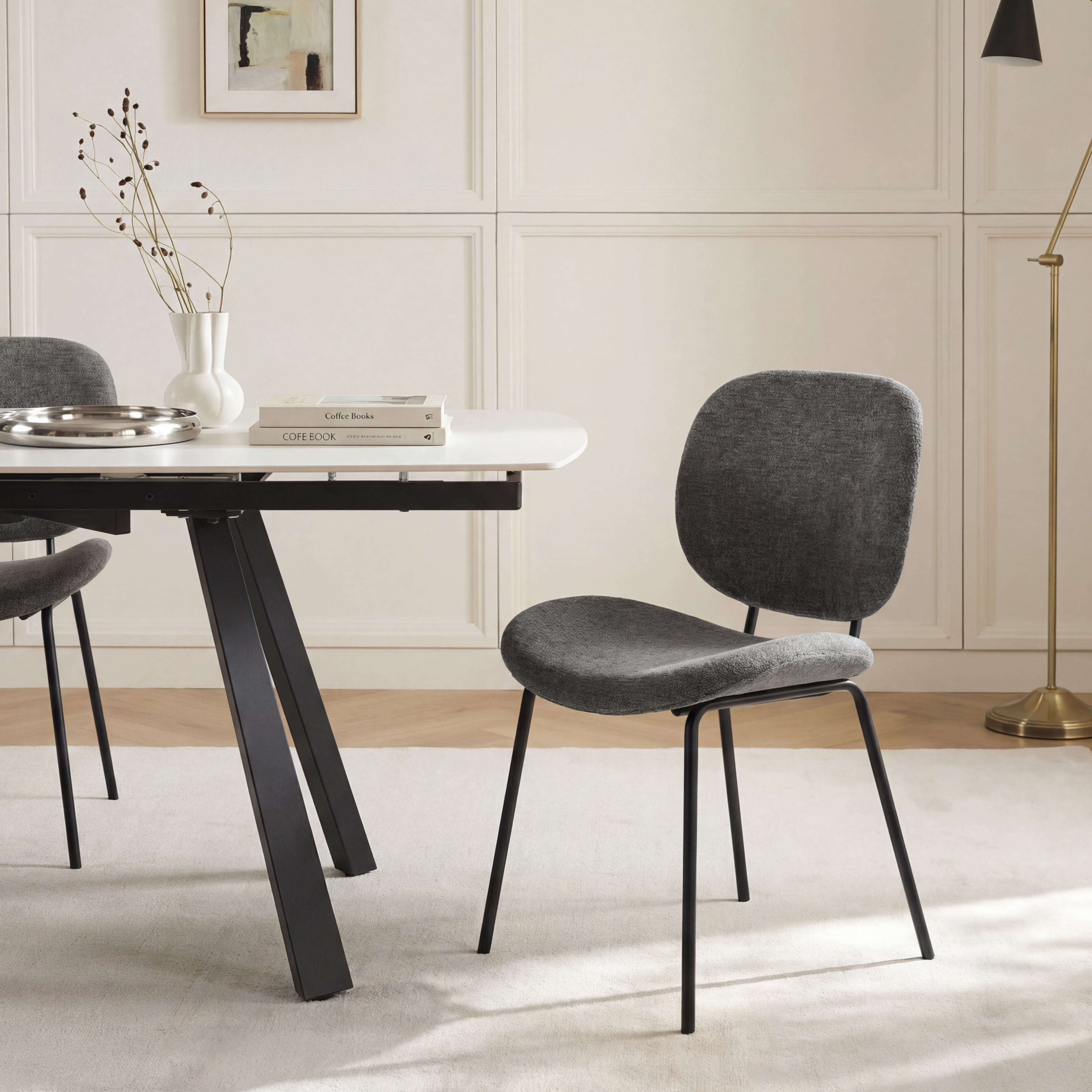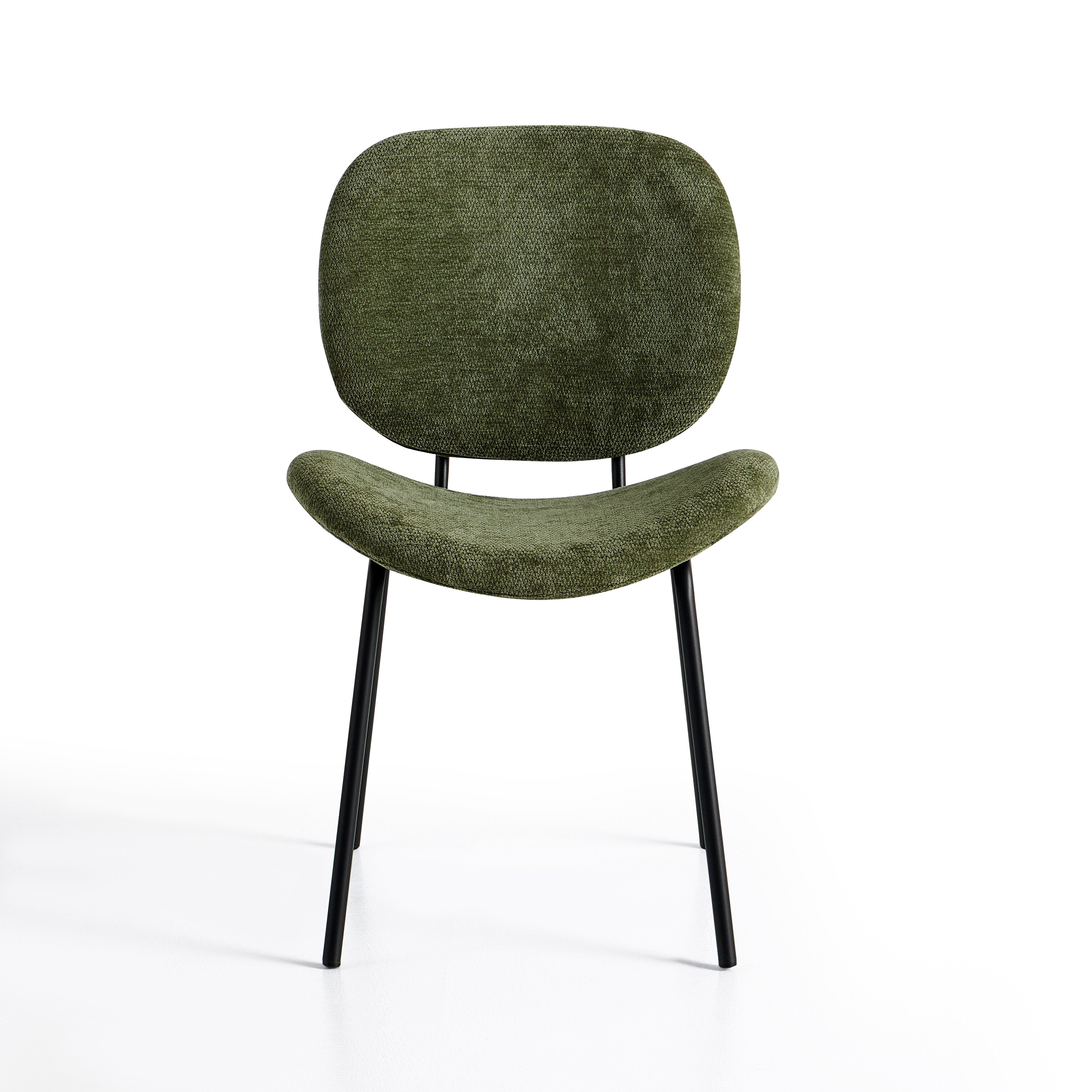 Smukłe nogi wykonane z metalu w kolorze czarnym gwarantują stabilność oraz trwałość konstrukcji. Dzięki uniwersalnemu designowi krzesło sprawdzi się przy stole w jadalni, w kuchni, salonie, a także w nowoczesnych przestrzeniach użytkowych.