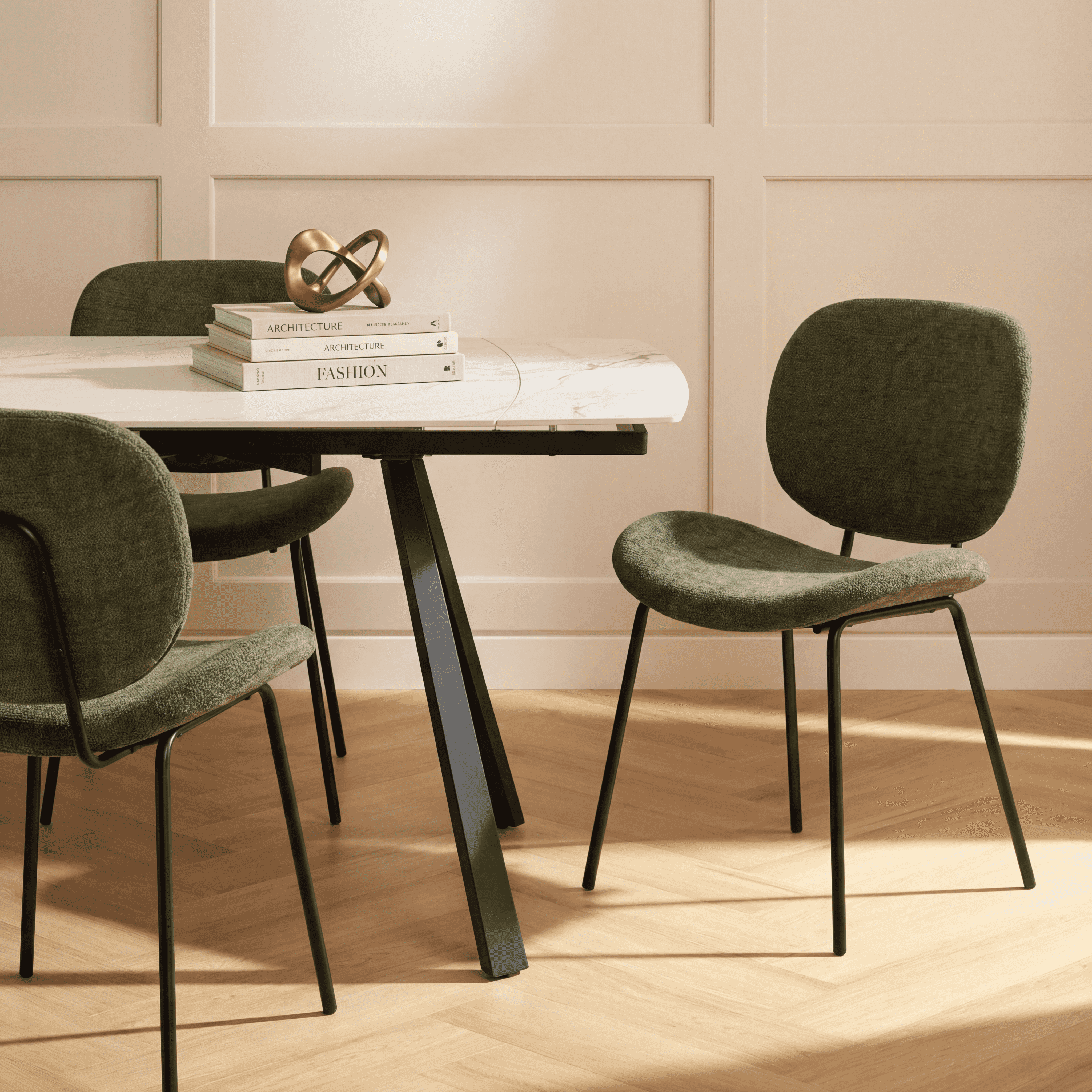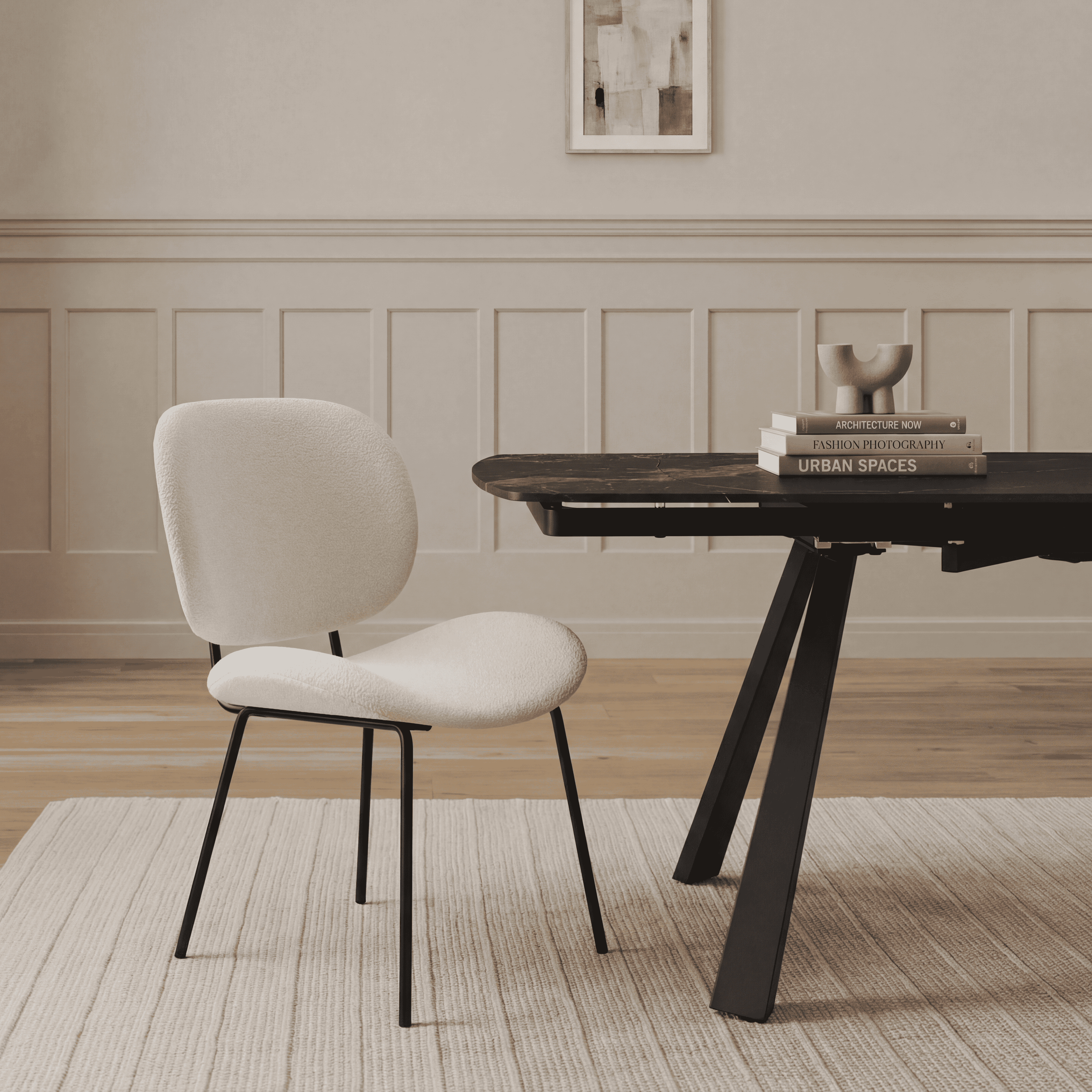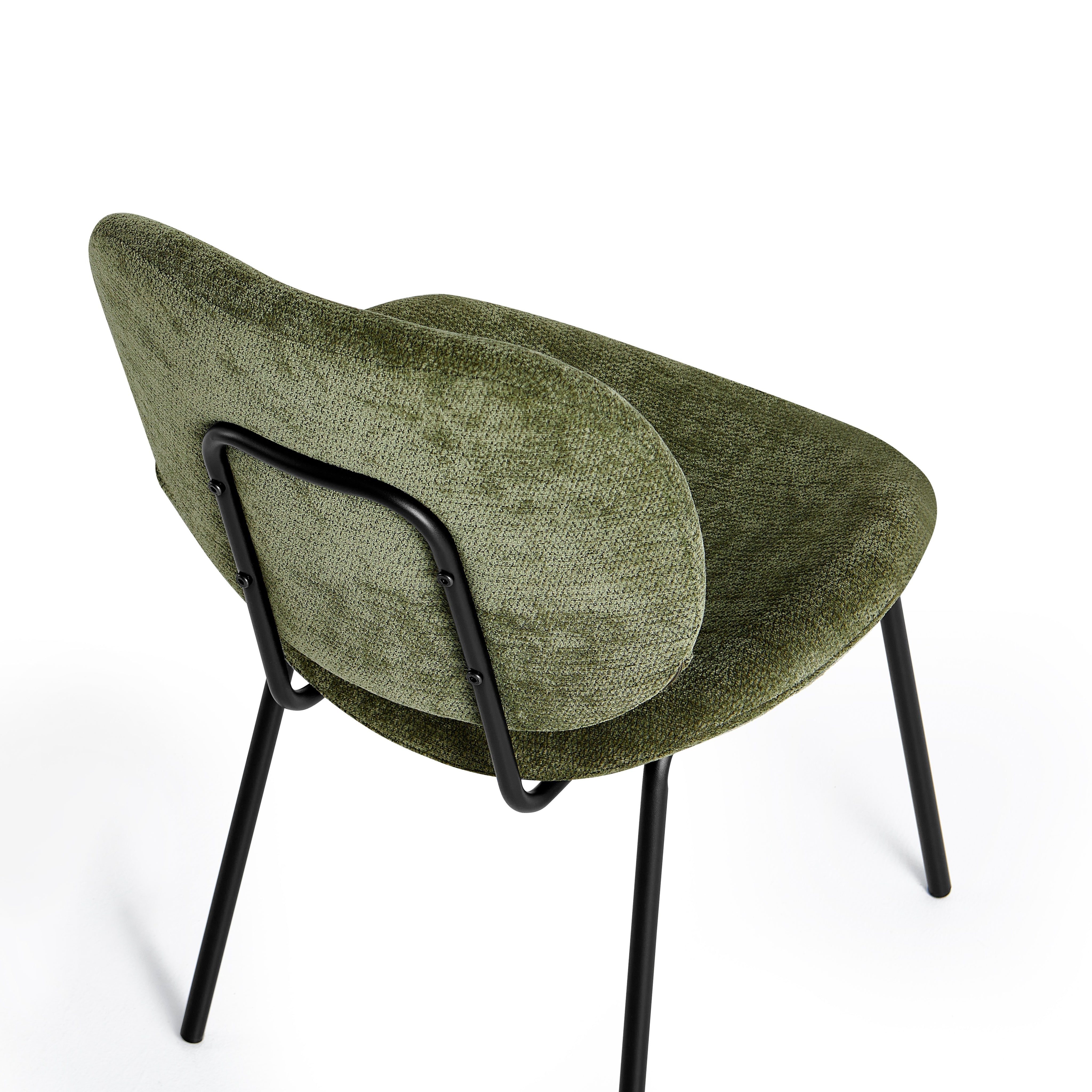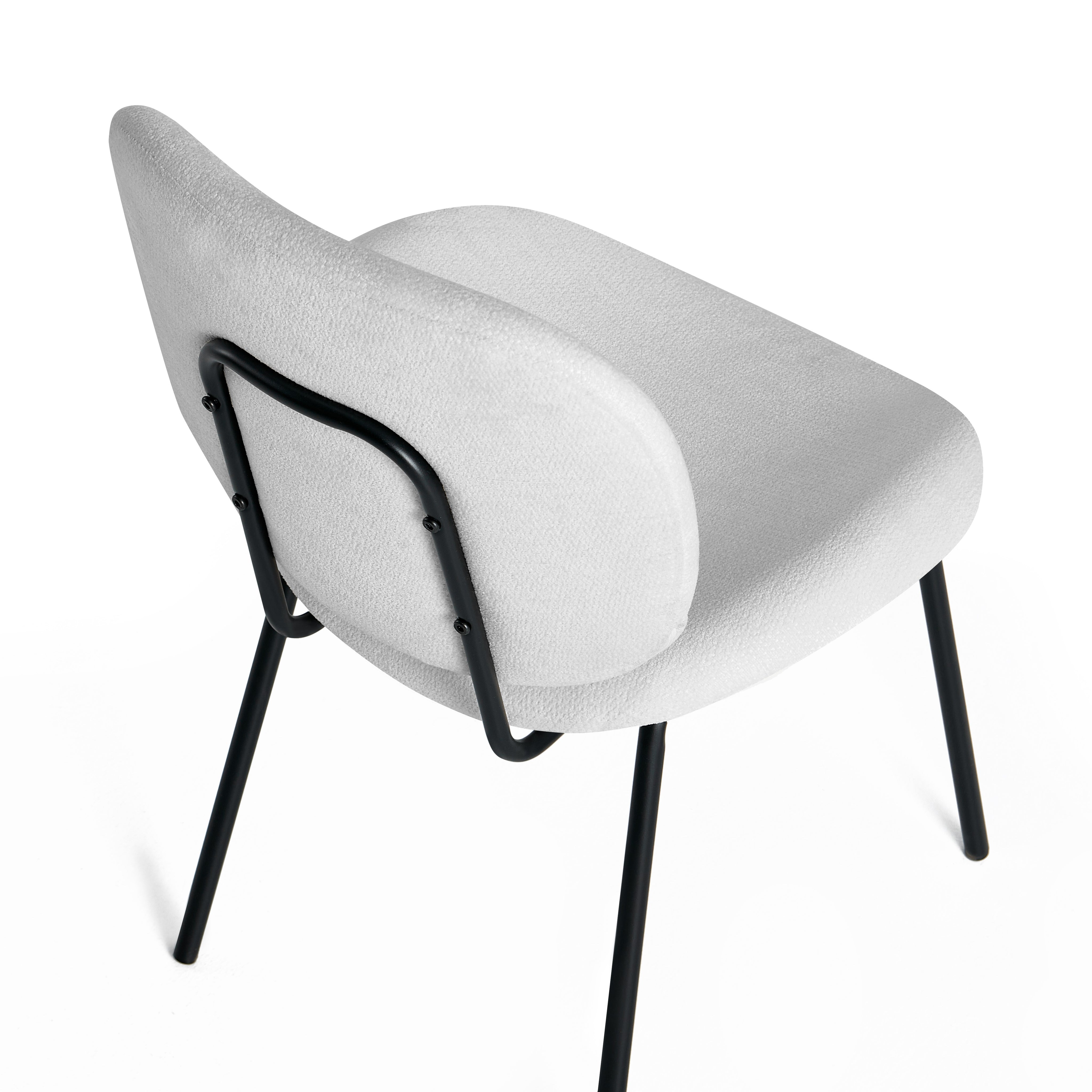 Smukłe nogi wykonane z metalu w kolorze czarnym gwarantują stabilność oraz trwałość konstrukcji. Dzięki uniwersalnemu designowi krzesło sprawdzi się przy stole w jadalni, w kuchni, salonie, a także w nowoczesnych przestrzeniach użytkowych.