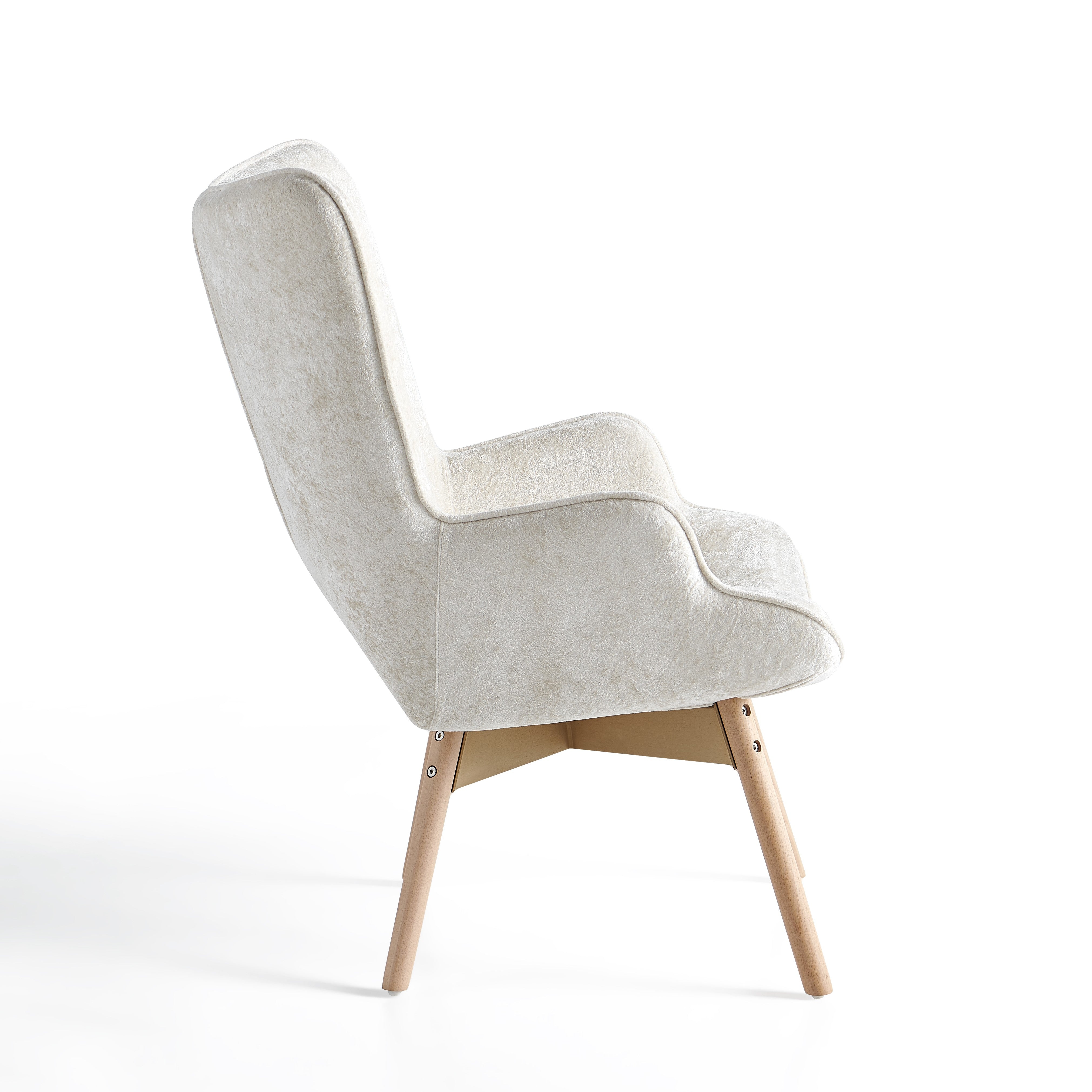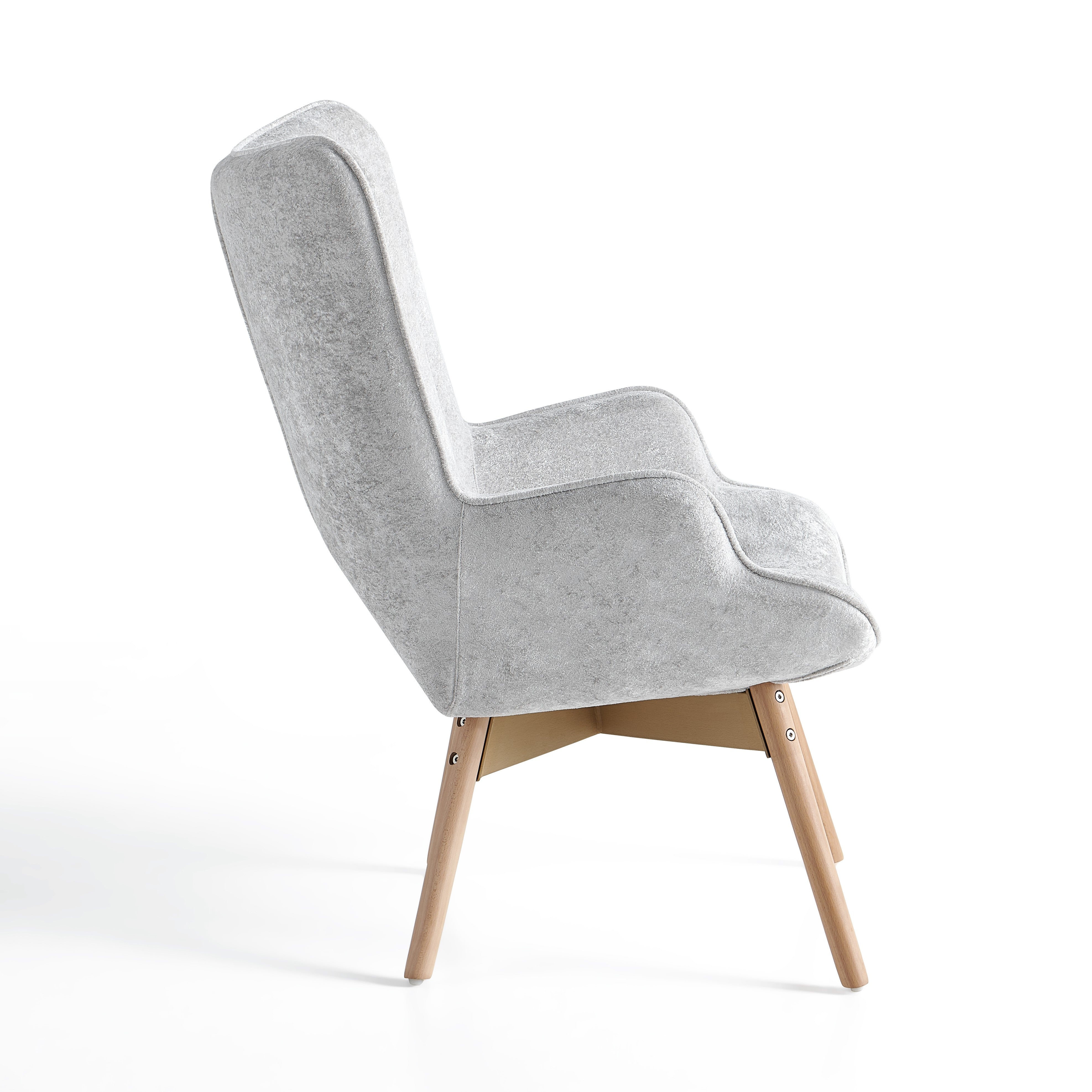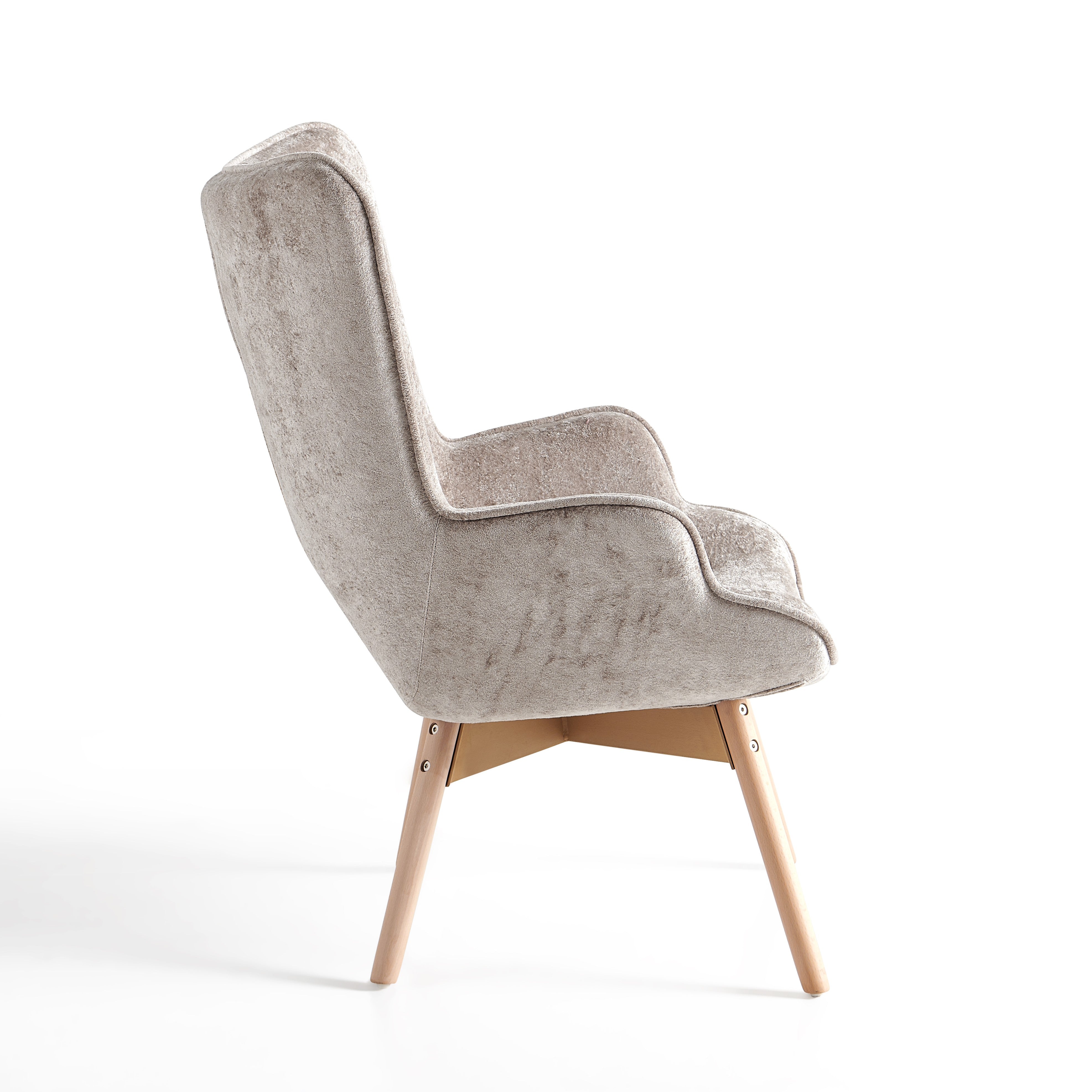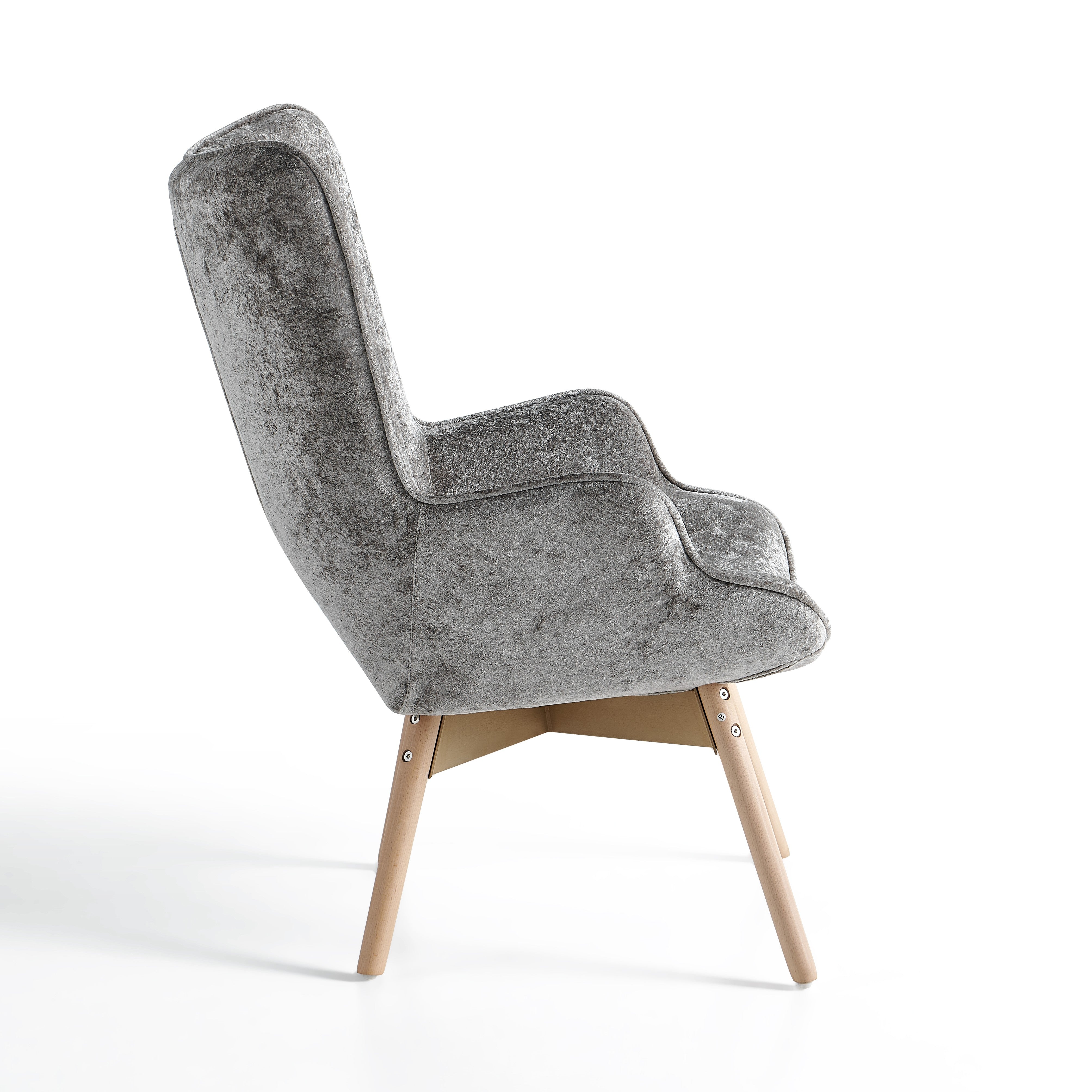 Szczególną uwagę zwracają solidne nogi wykonane z naturalnego drewna wiązowego. Drewno wiązowe cenione jest za swoją wytrzymałość, stabilność oraz piękne naturalne usłojenie. Dzięki swojej gęstej strukturze zapewnia wysoką trwałość i długą żywotność mebla, a jednocześnie nadaje fotelowi elegancki, naturalny charakter.
