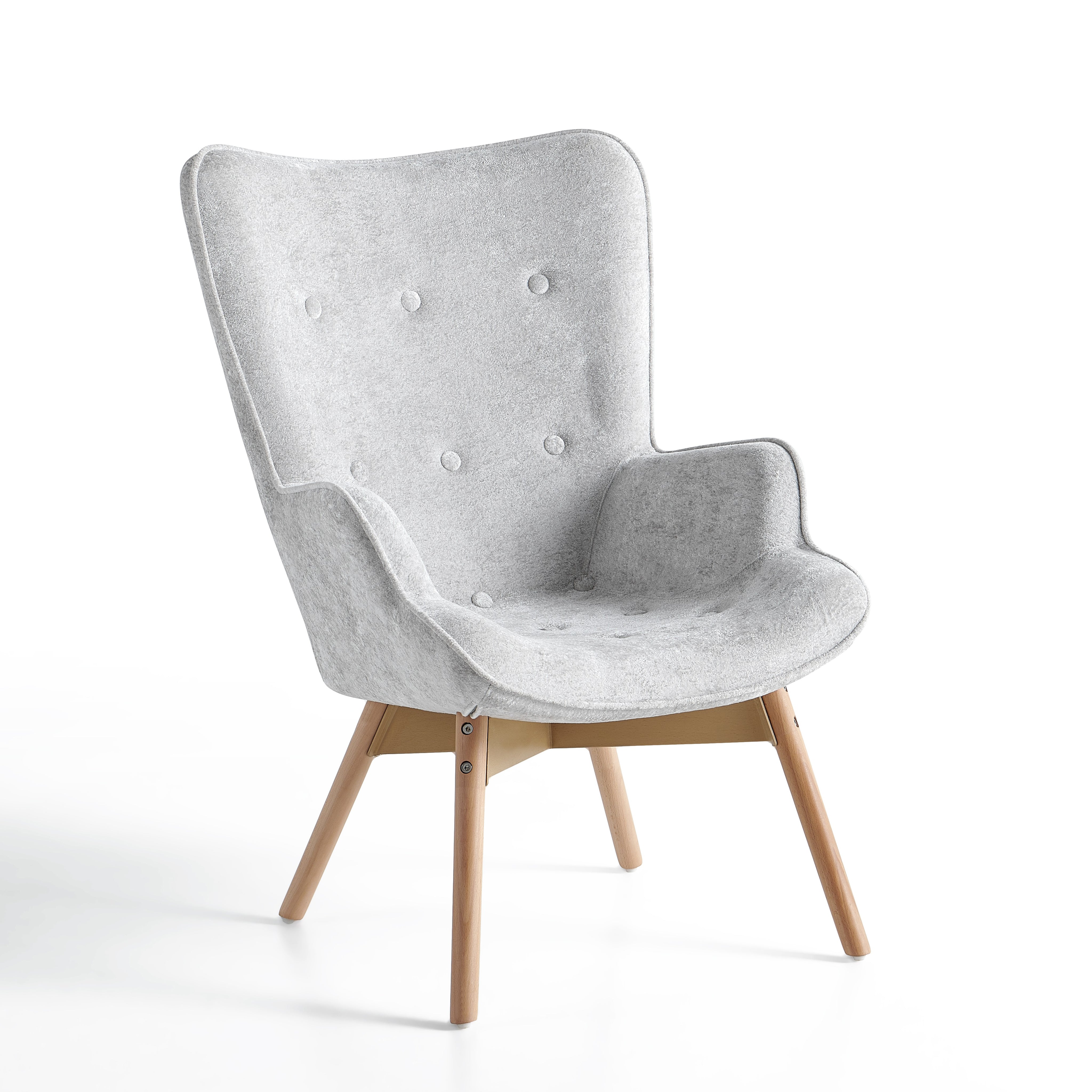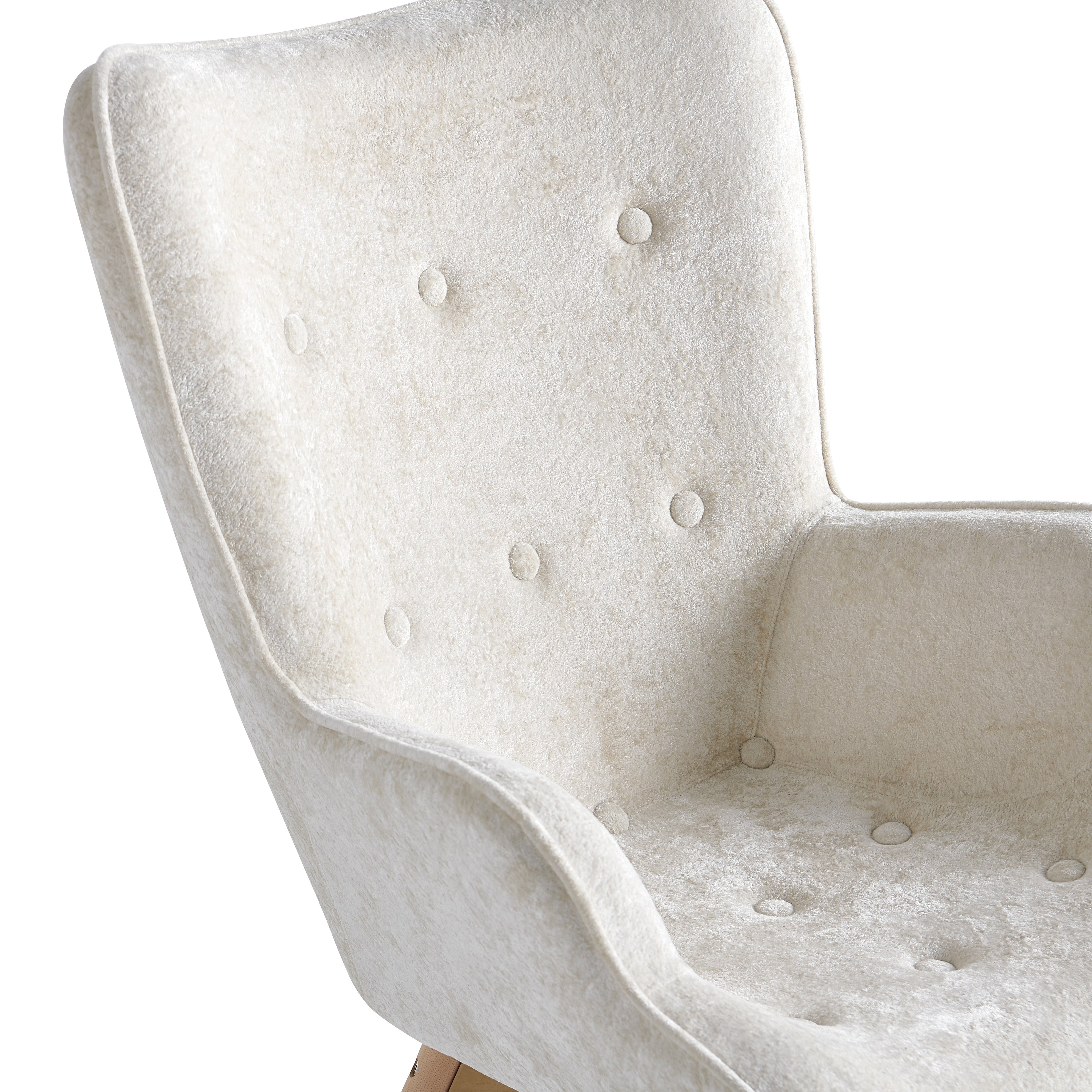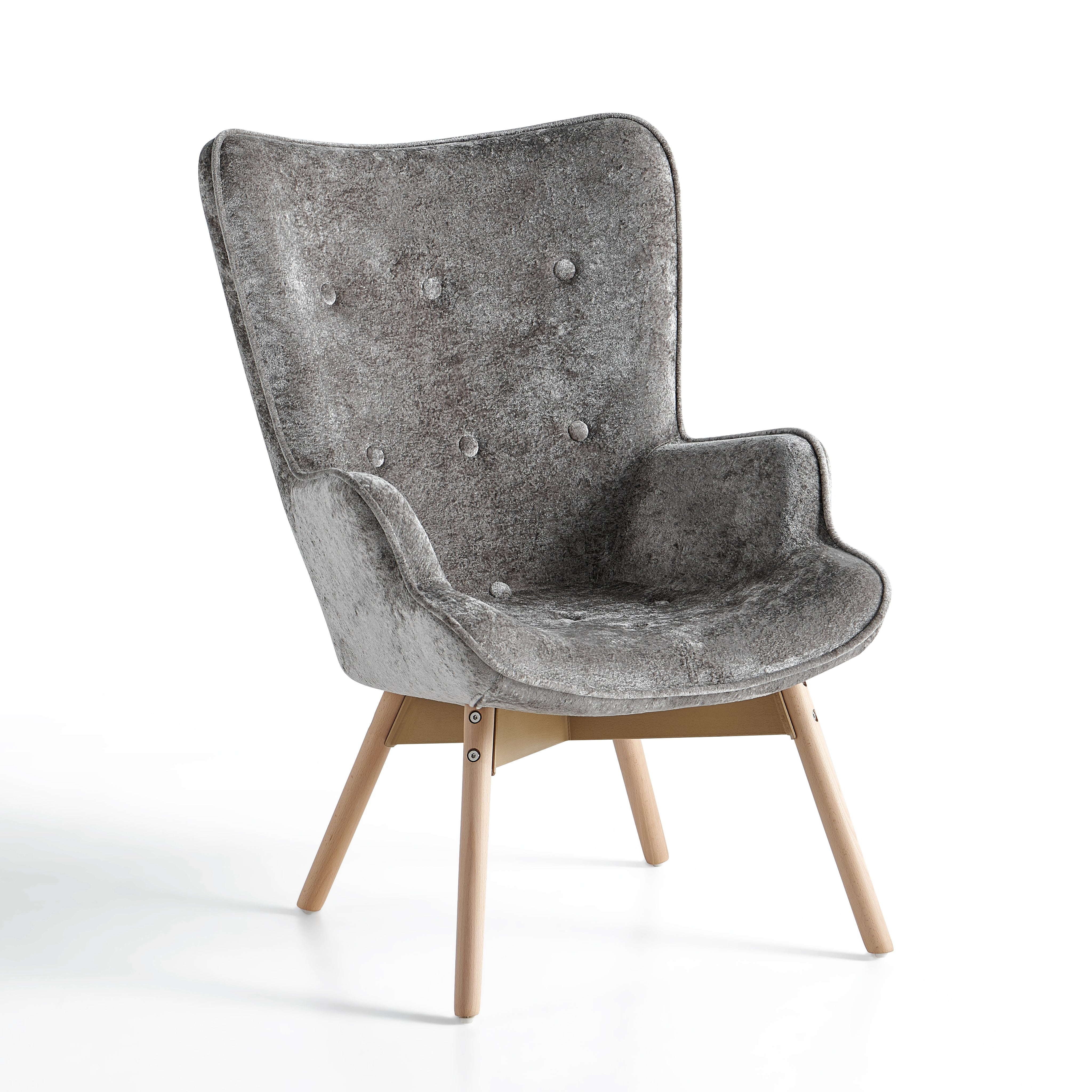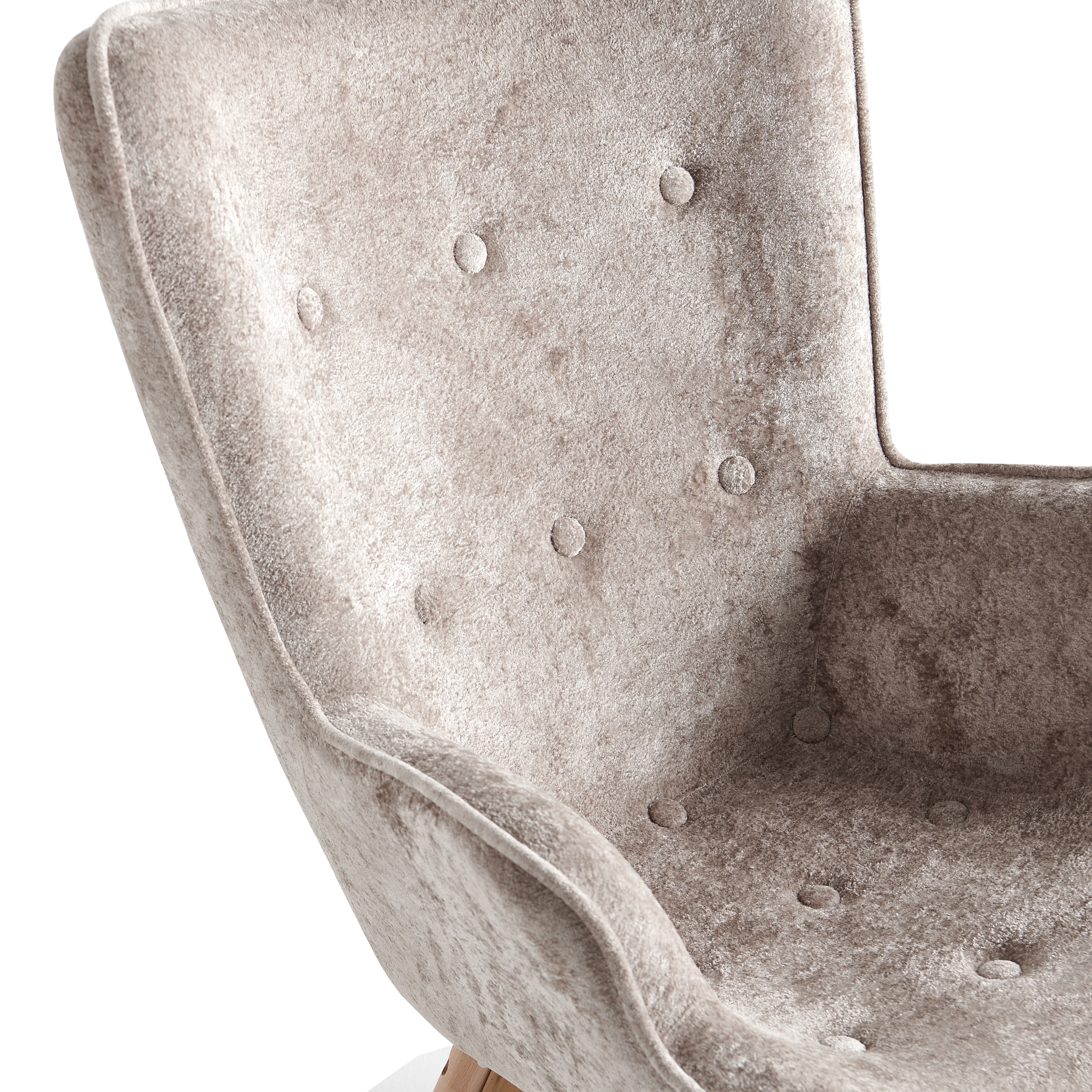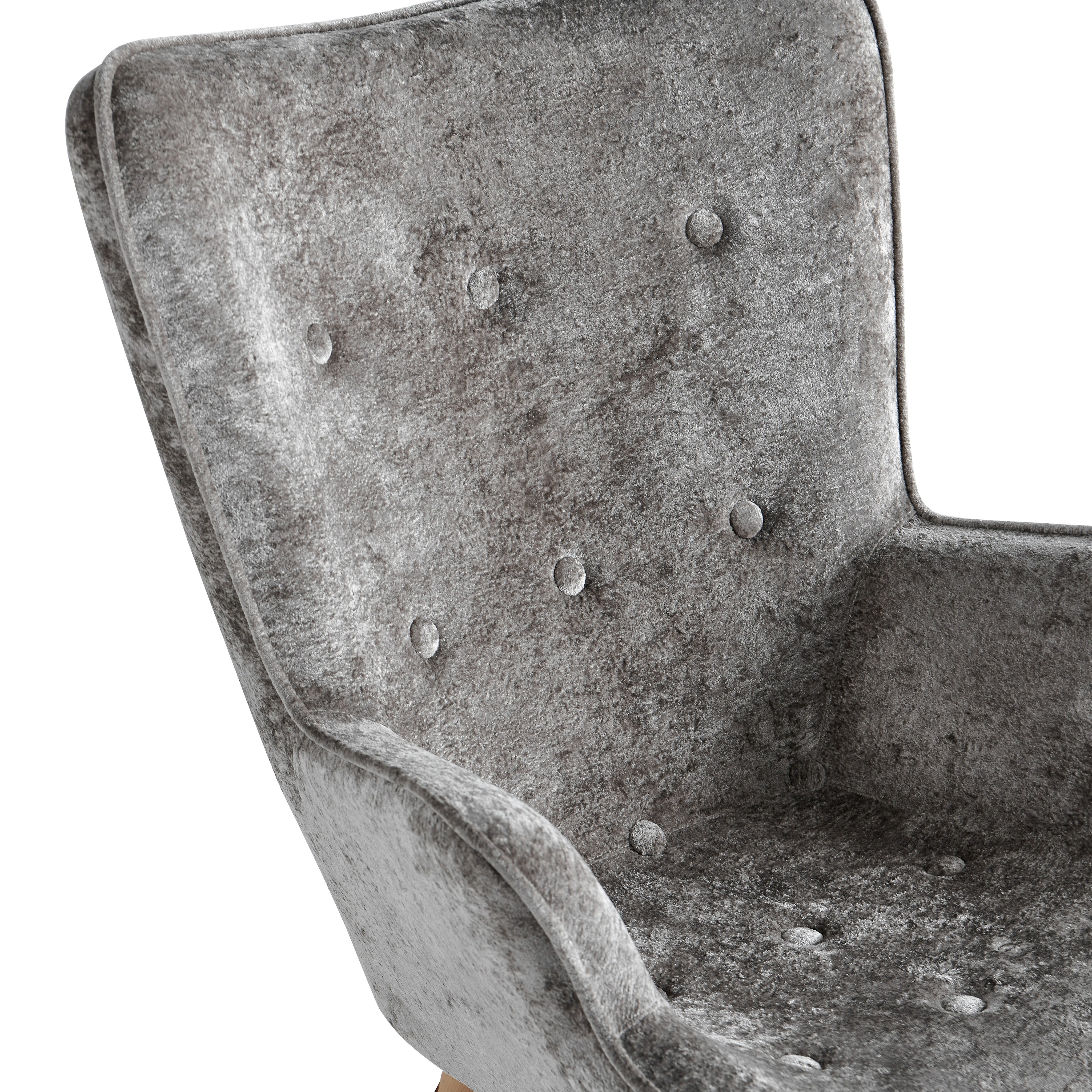 Szerokie, profilowane oparcie oraz zintegrowane podłokietniki delikatnie otulają sylwetkę i zwiększają komfort siedzenia. Dekoracyjne pikowanie z guzikami na oparciu nadaje fotelowi elegancki charakter oraz podkreśla jego nowoczesny styl.
