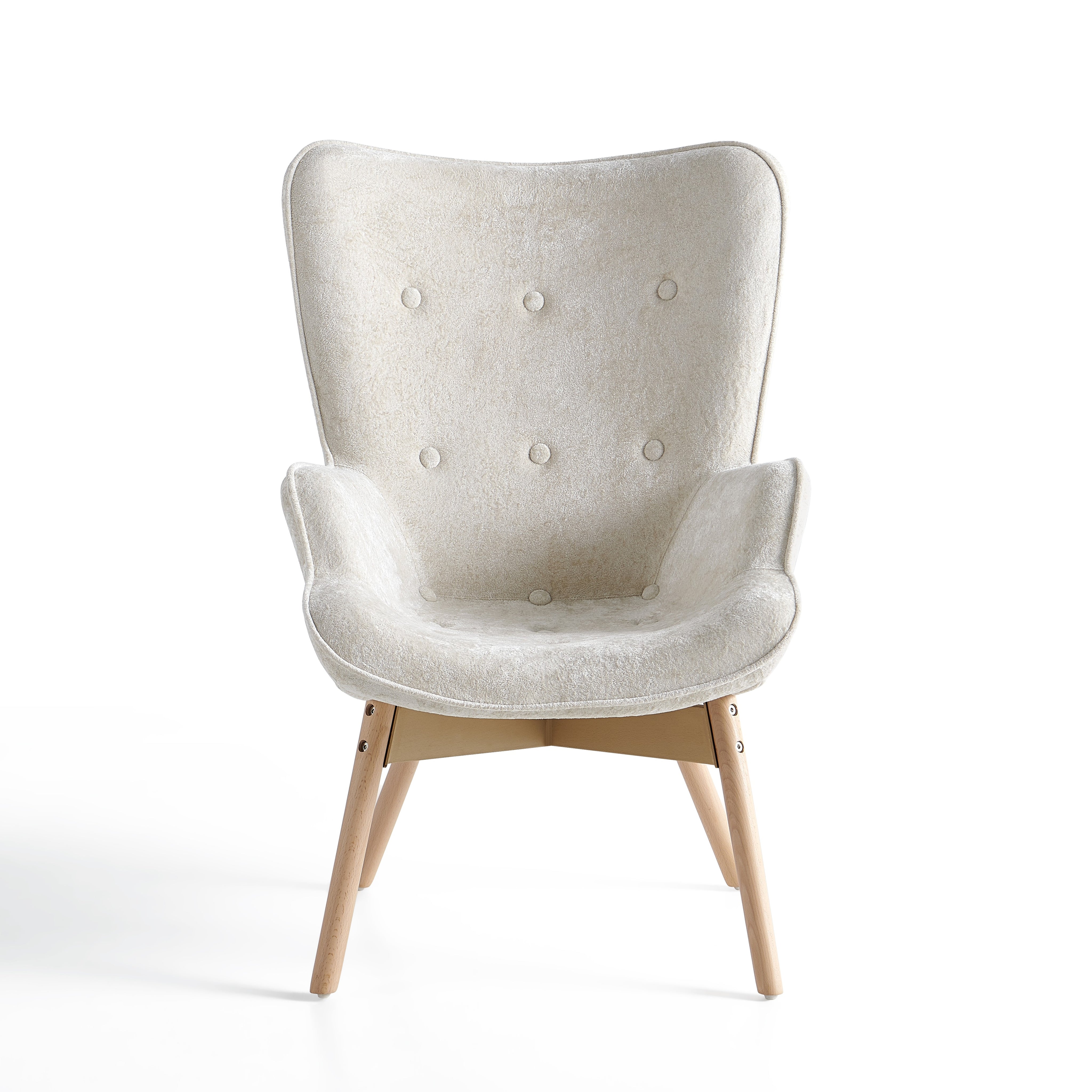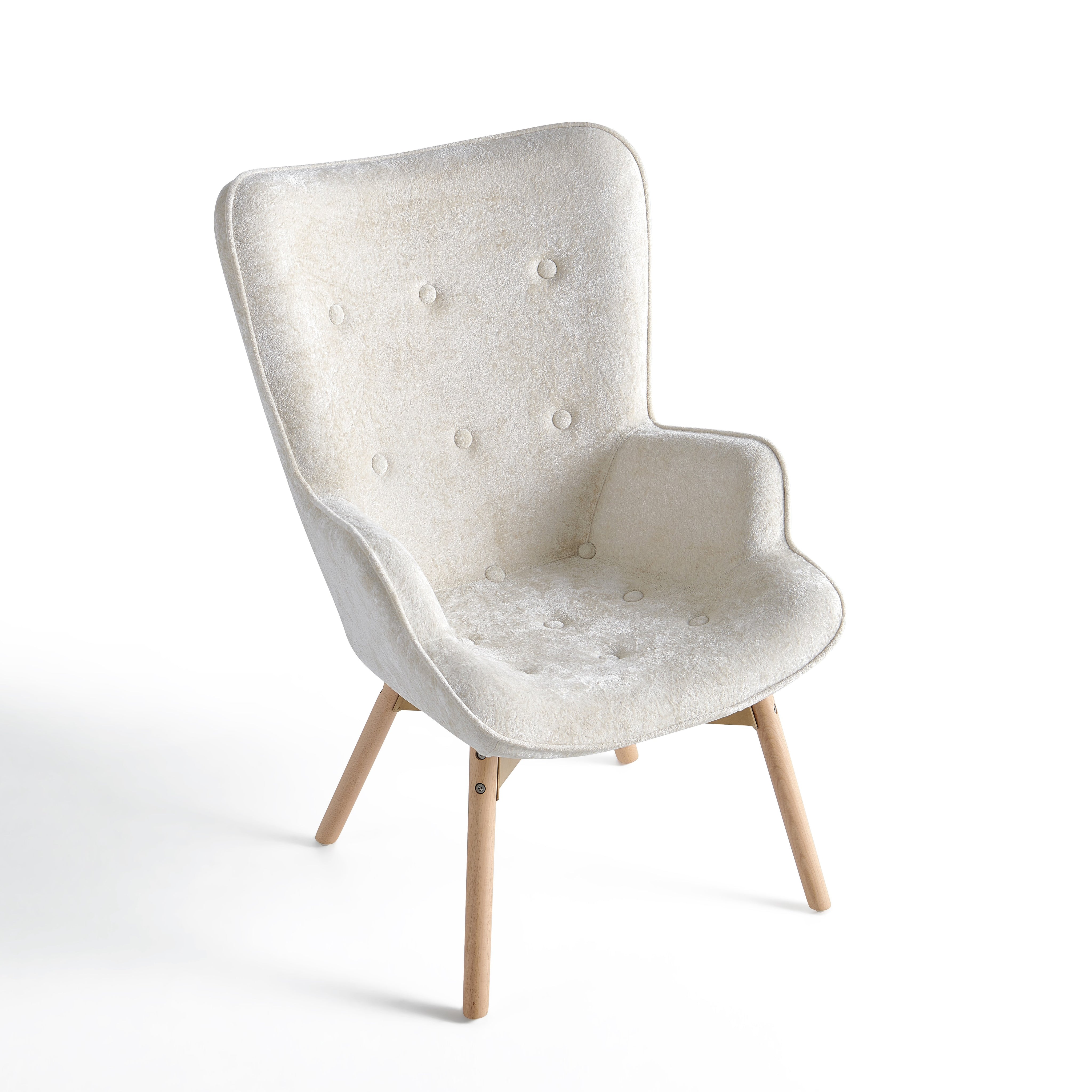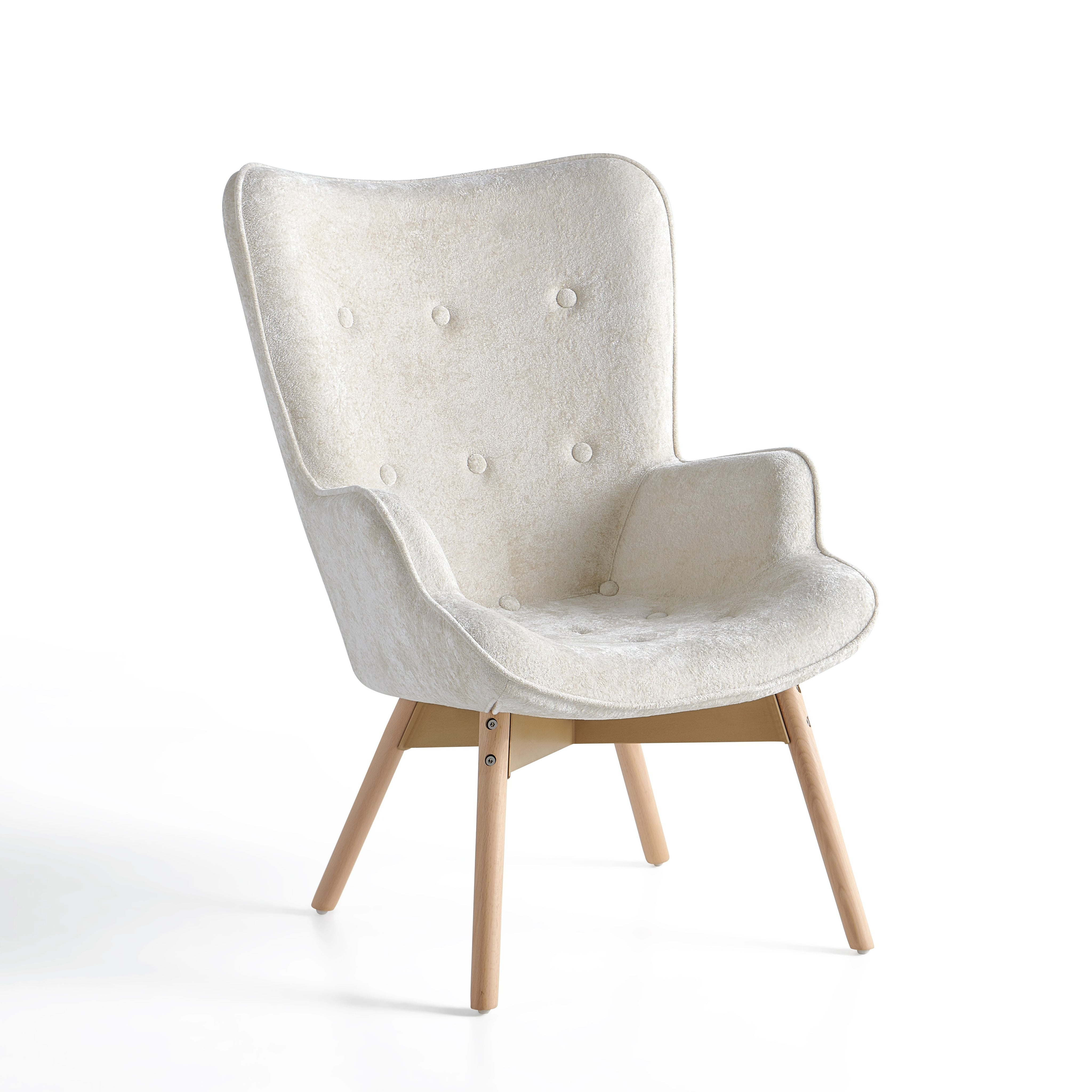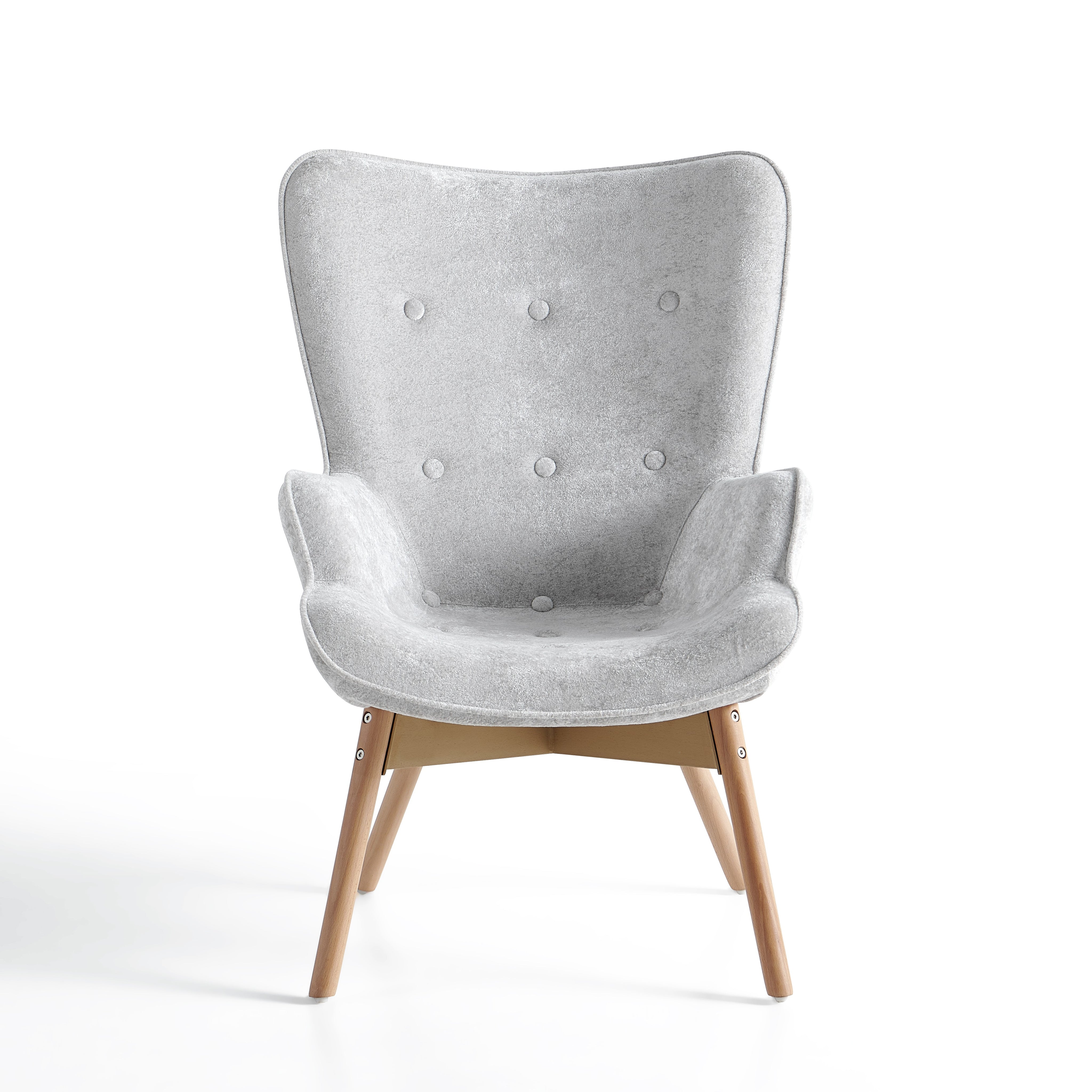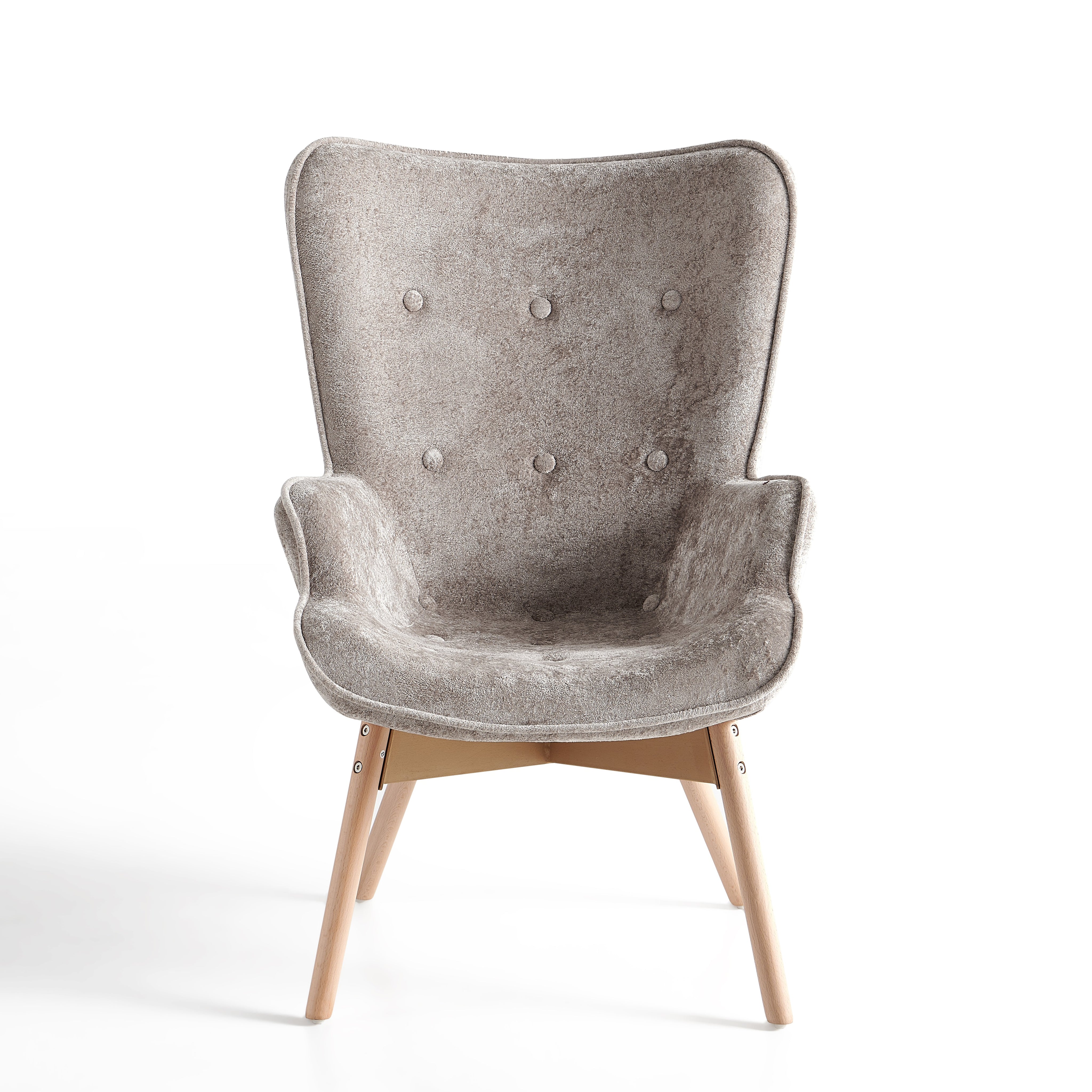 Szerokie, profilowane oparcie oraz zintegrowane podłokietniki delikatnie otulają sylwetkę i zwiększają komfort siedzenia. Dekoracyjne pikowanie z guzikami na oparciu nadaje fotelowi elegancki charakter oraz podkreśla jego nowoczesny styl.