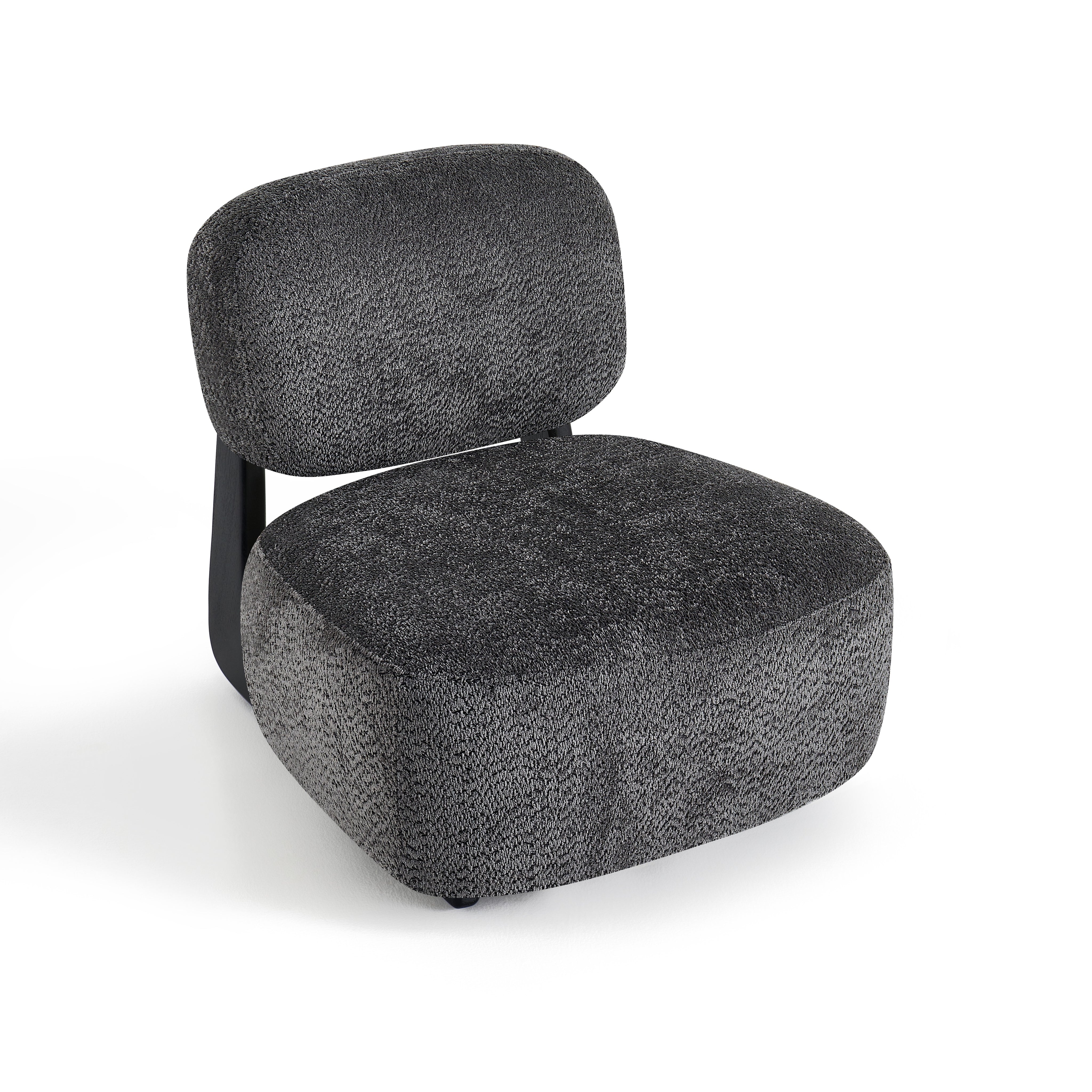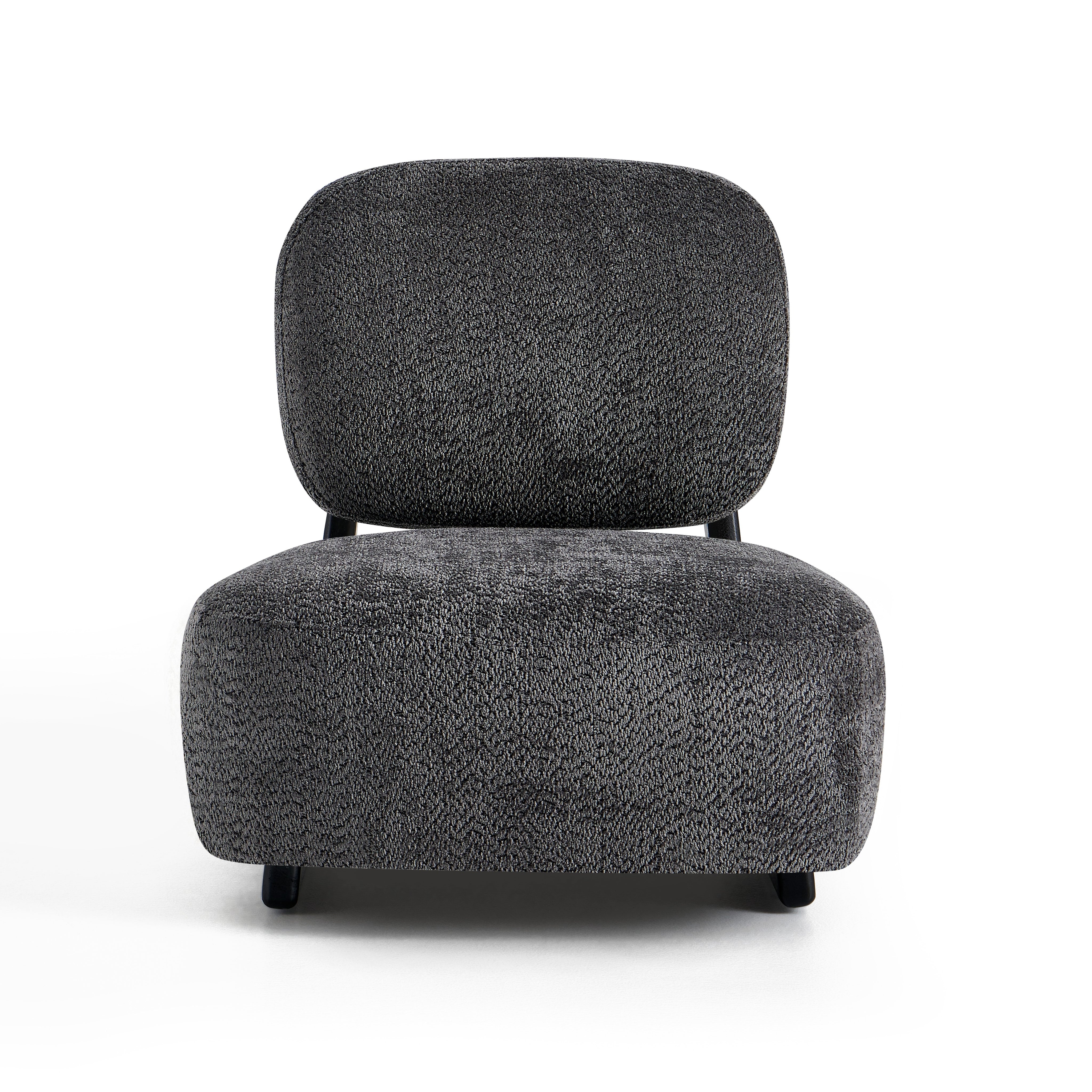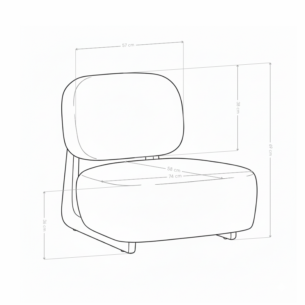 Szerokie, wygodne siedzisko oraz miękkie oparcie zapewniają wysoki komfort podczas codziennego odpoczynku. Tapicerka z tkaniny premium jest przyjemna w dotyku i trwała, natomiast czarna metalowa podstawa podkreśla nowoczesny design oraz gwarantuje stabilność konstrukcji.
