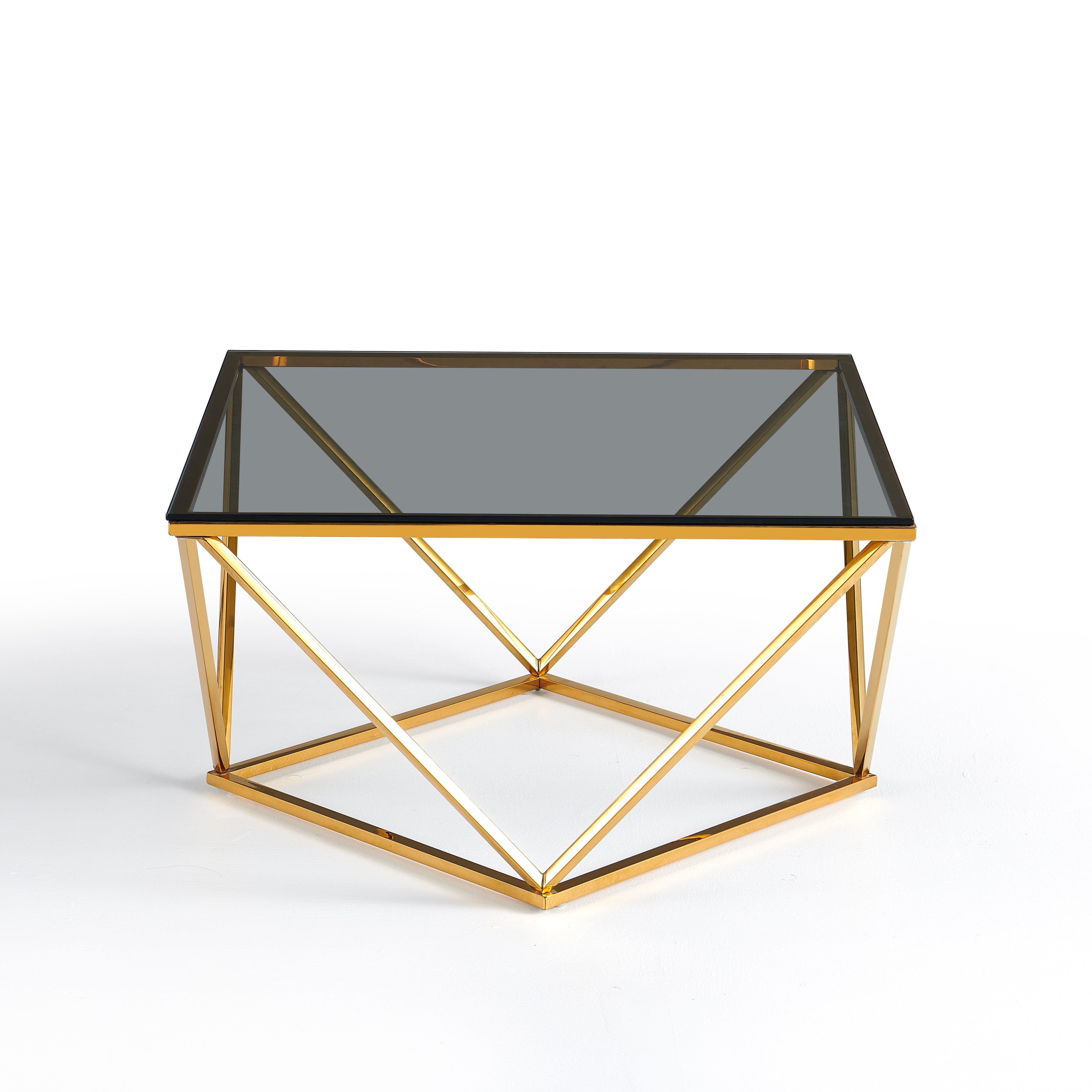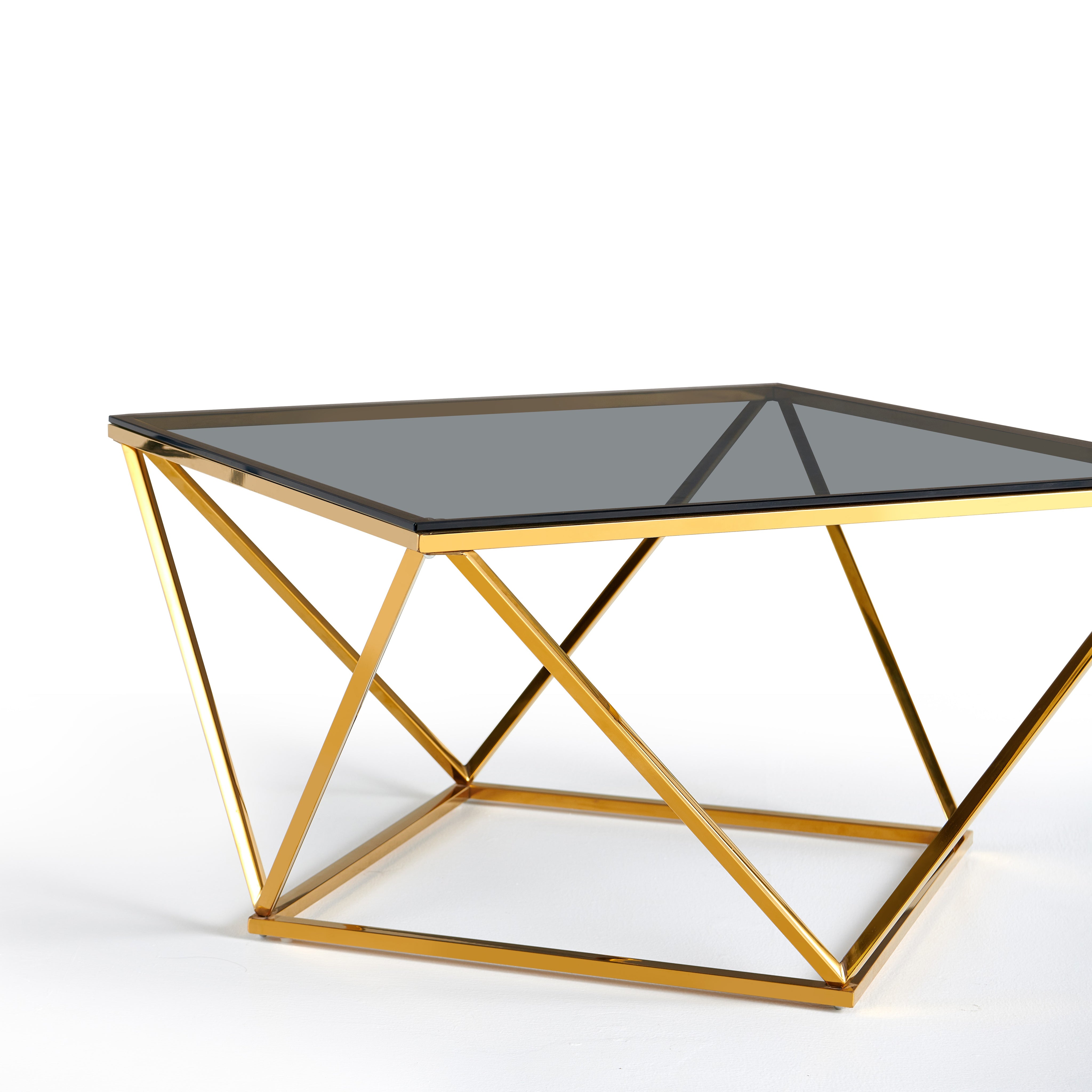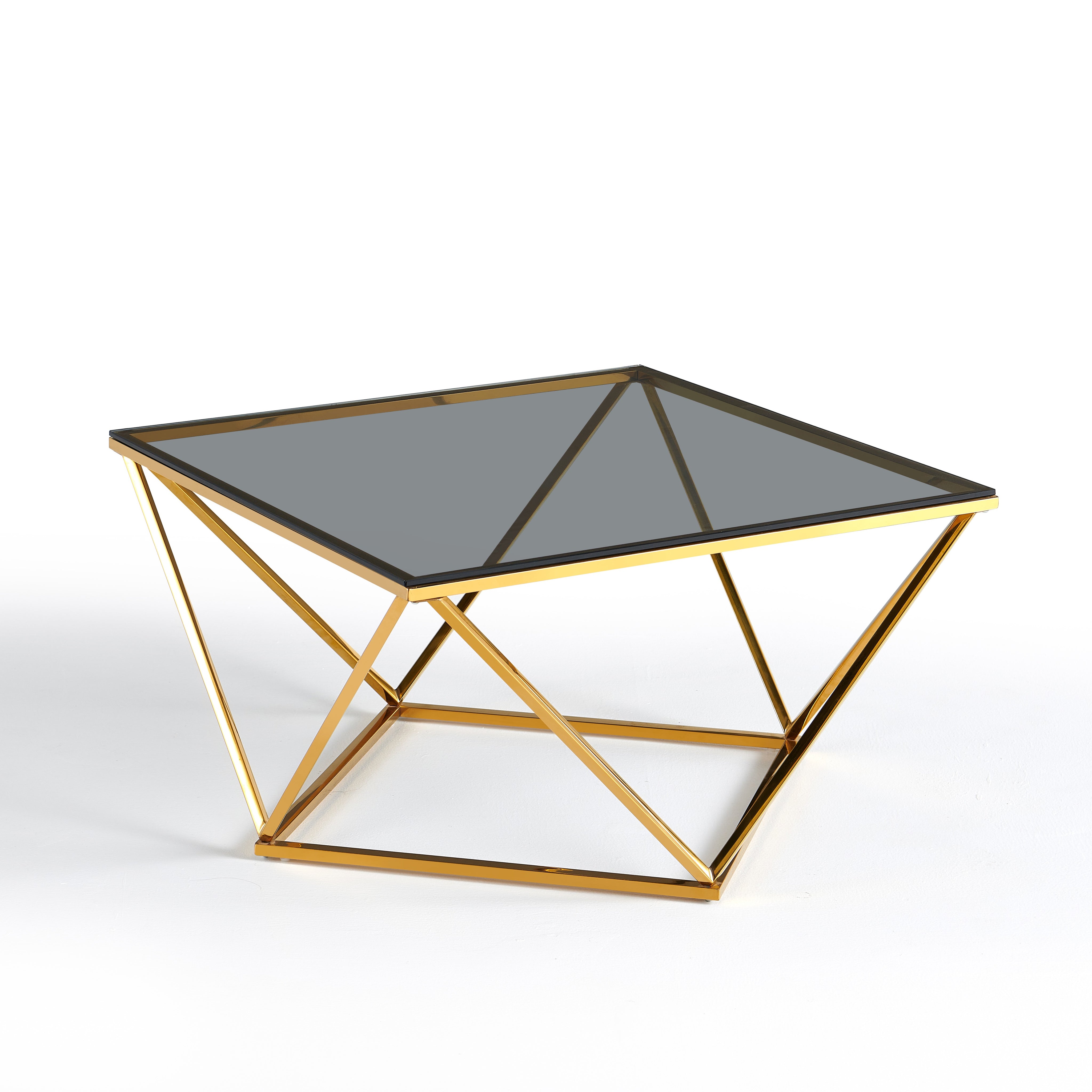 - Stolik Kawowy Kwadratowy Szkło Hartowane Nogi Ze Stali Nierdzewnej 80cm Nimbus