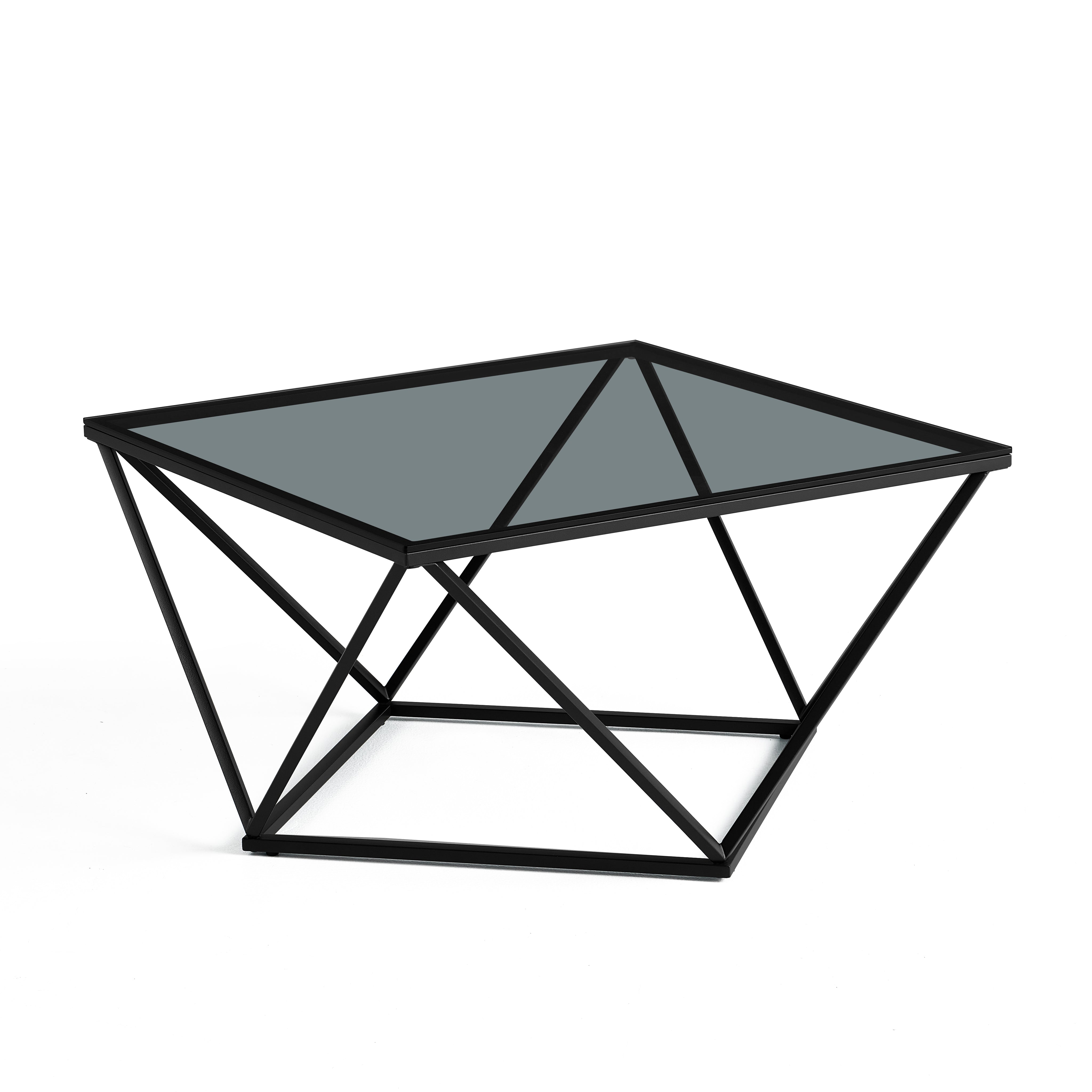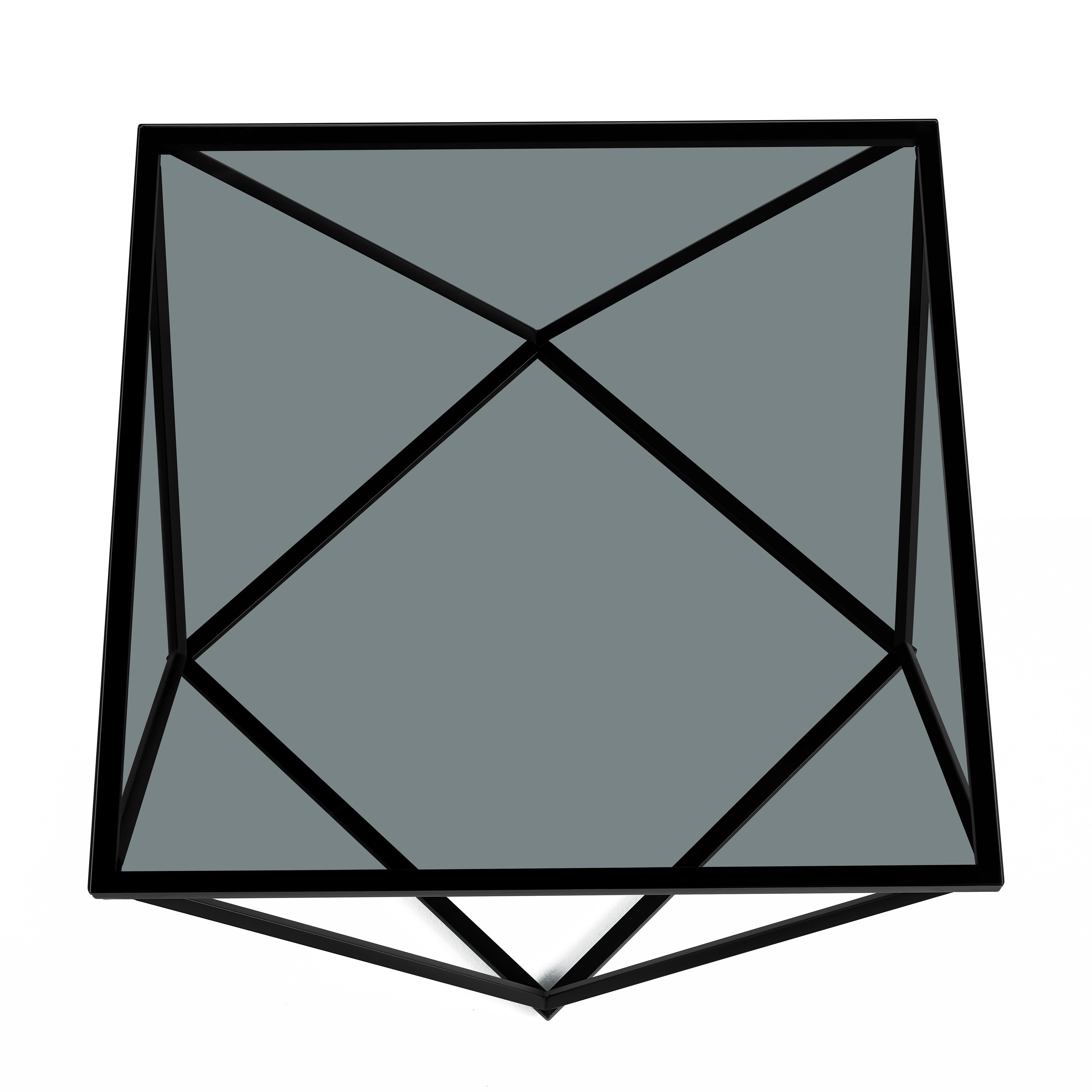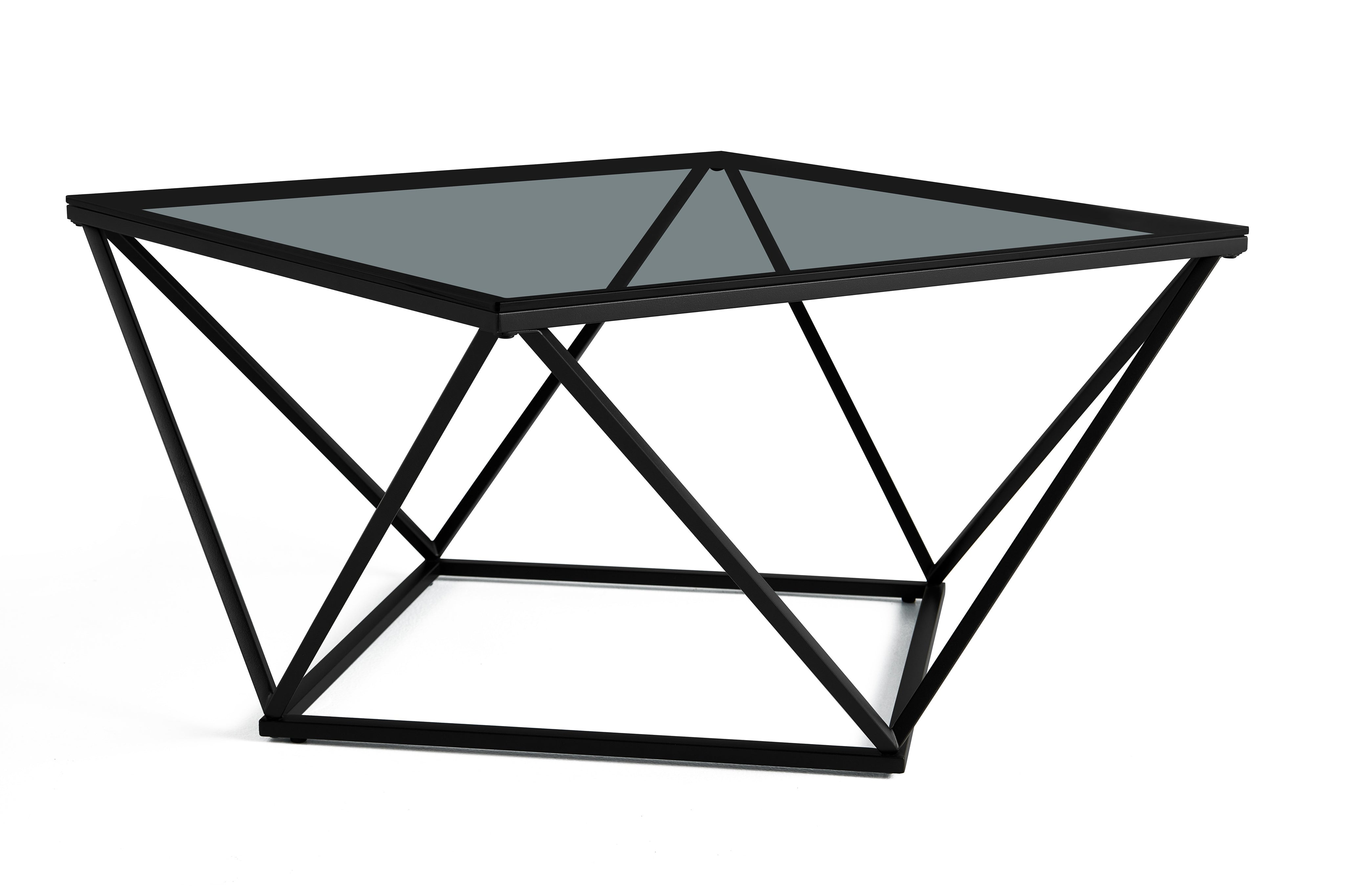 Nowoczesny stolik kawowy Nimbus czarne szkło hartowane 80x80 cm czarne nogi ze stali nierdzewnej