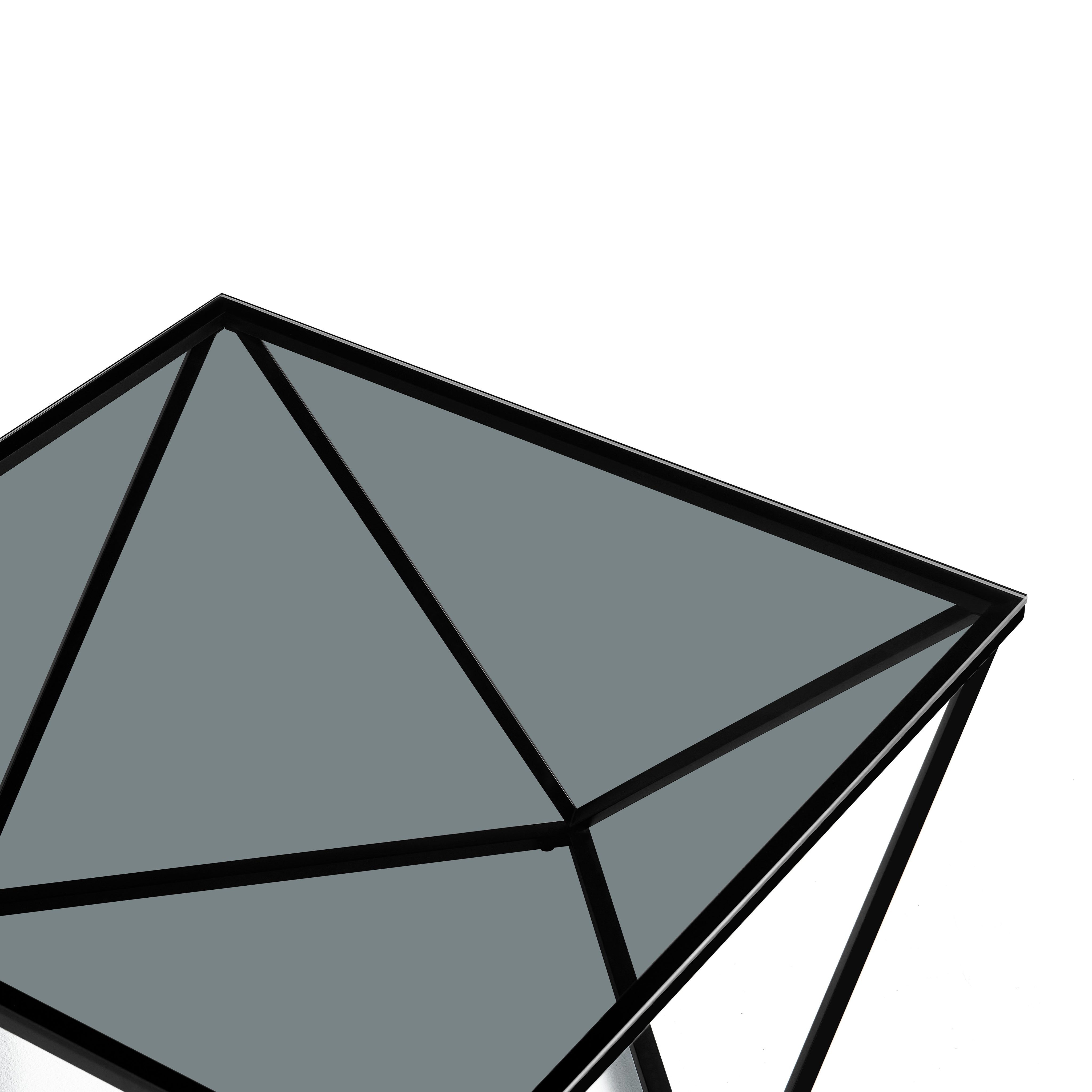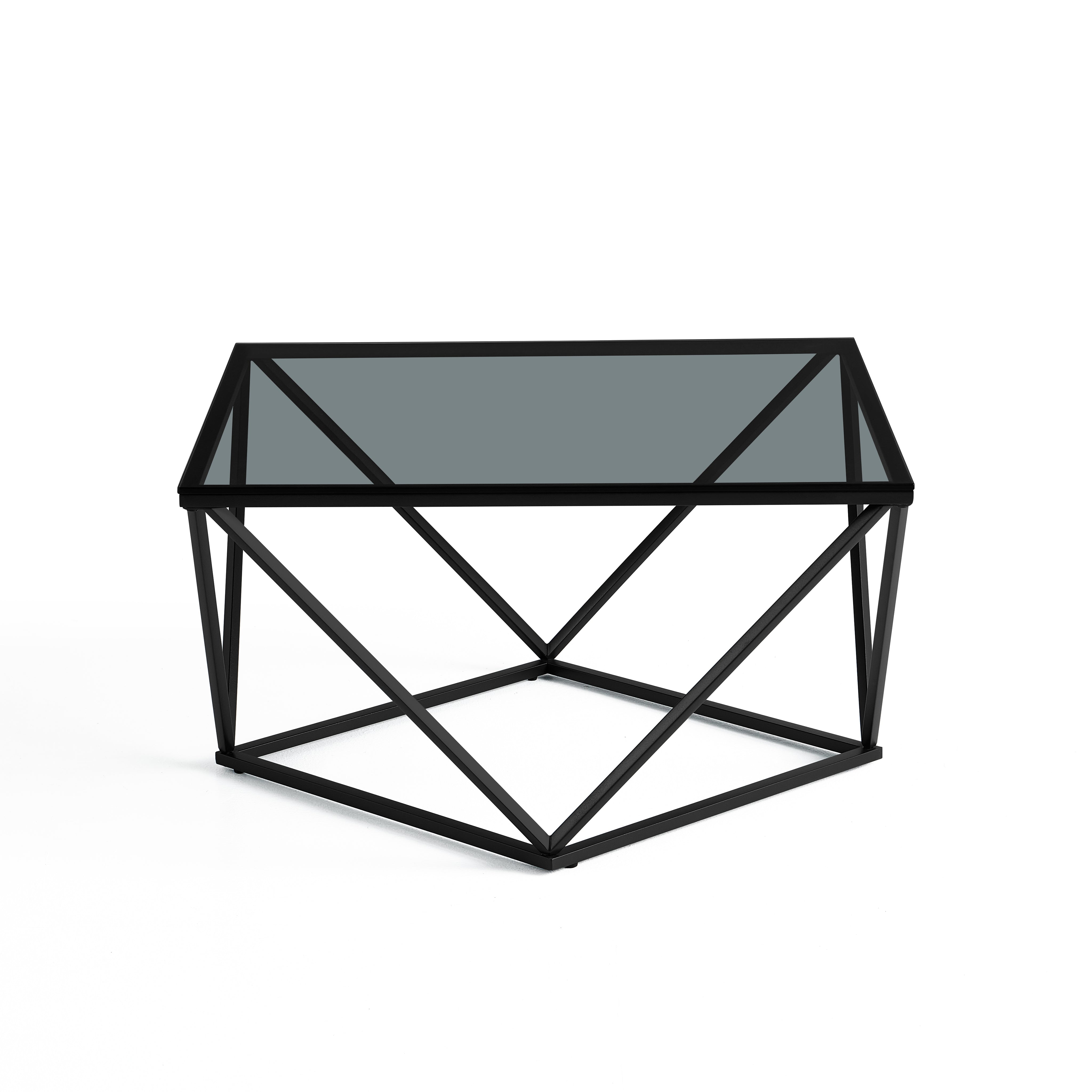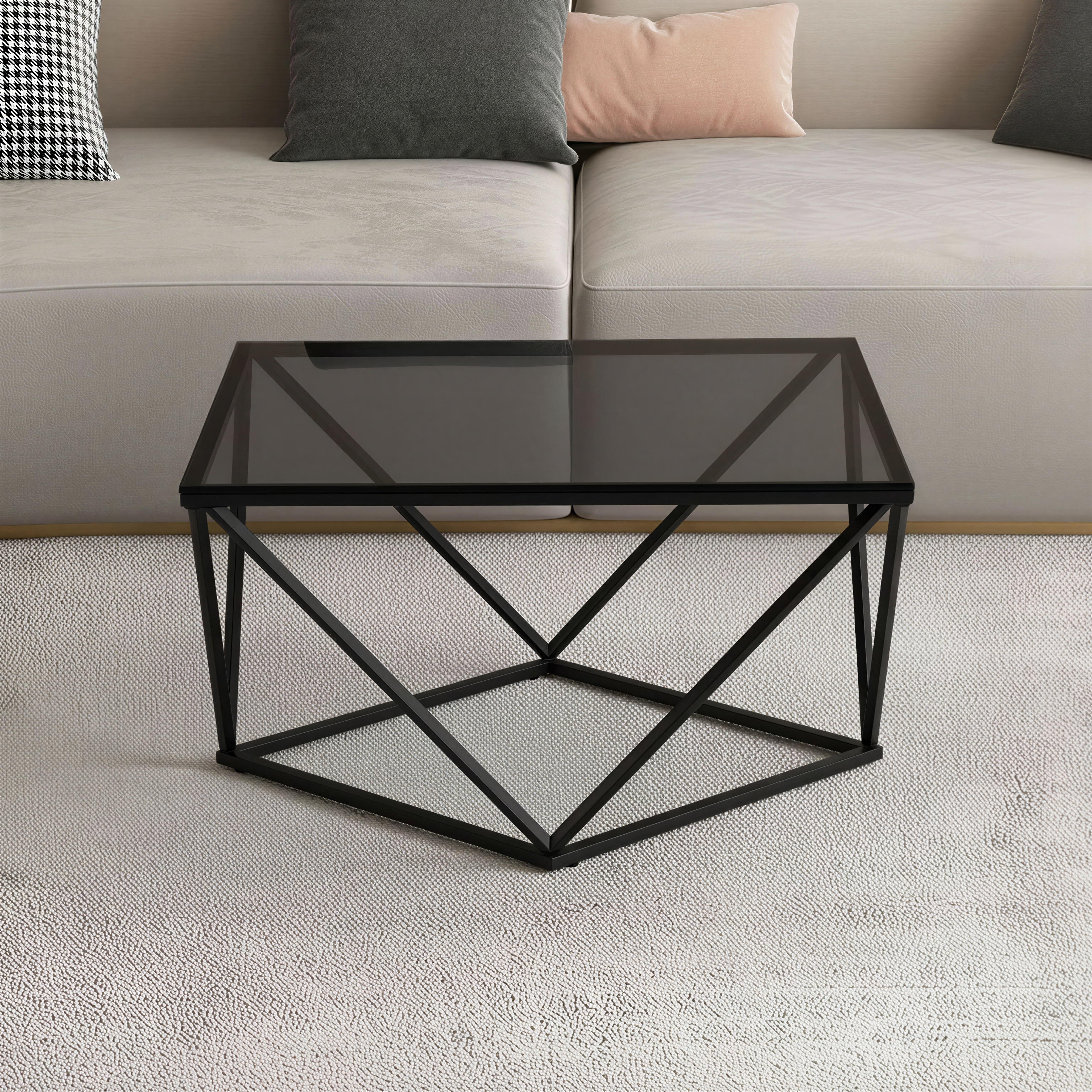 Nowoczesny stolik kawowy Nimbus czarne szkło hartowane 80x80 cm czarne nogi ze stali nierdzewnej