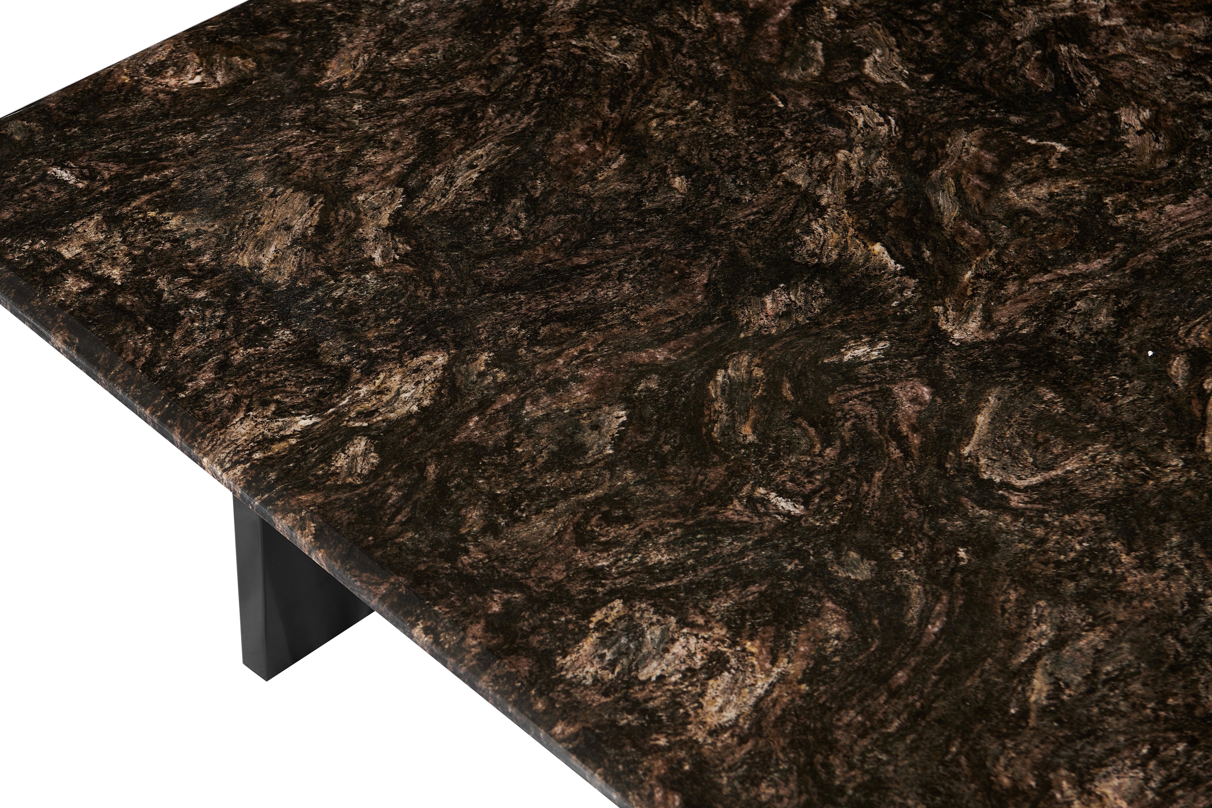 - Blat z ciemnego marmuru z brązowo-złotymi żyłkami