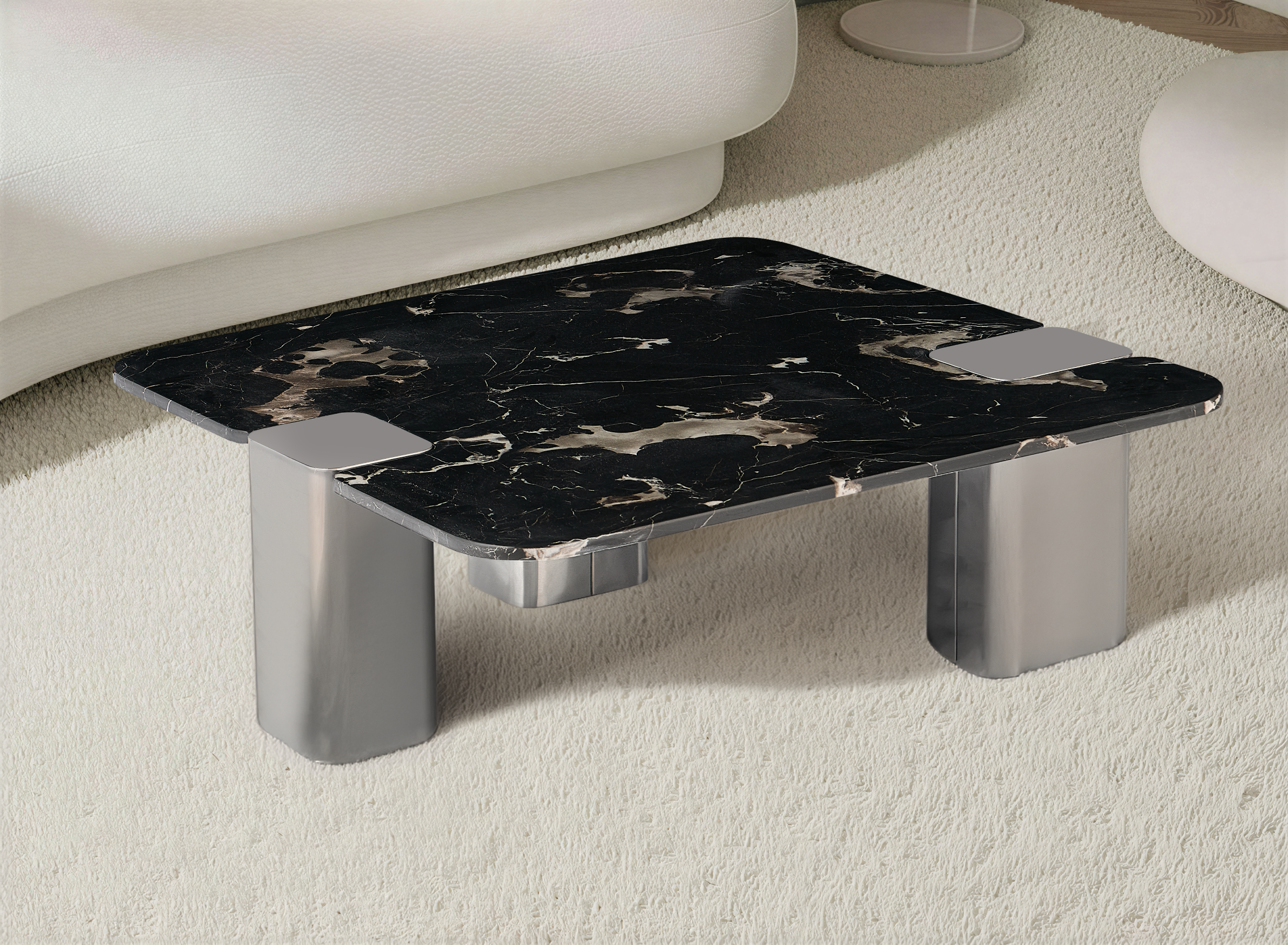 Blat osadzony jest na podstawie z inoxu chromowanego, która dodaje konstrukcji lekkości, elegancji i współczesnego charakteru. Stabilność, wytrzymałość oraz staranne wykończenie sprawiają, że stolik jest nie tylko piękny, ale również bardzo praktyczny i trwały.